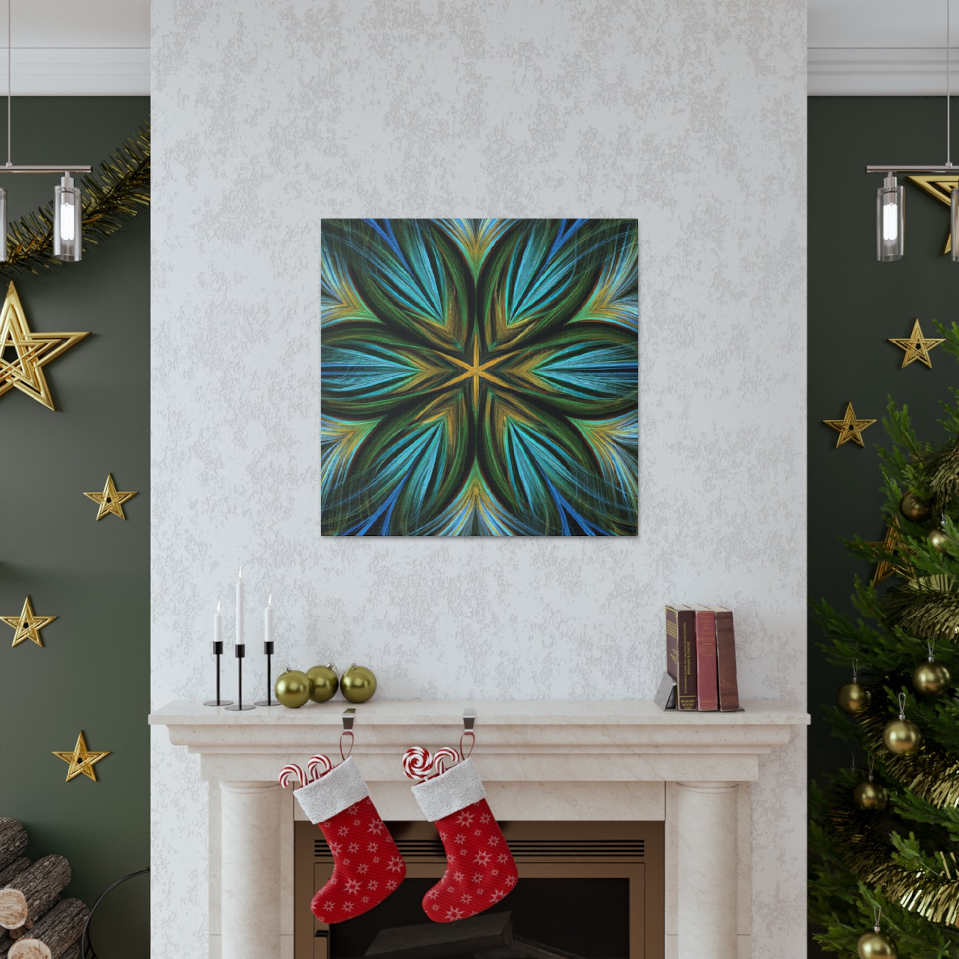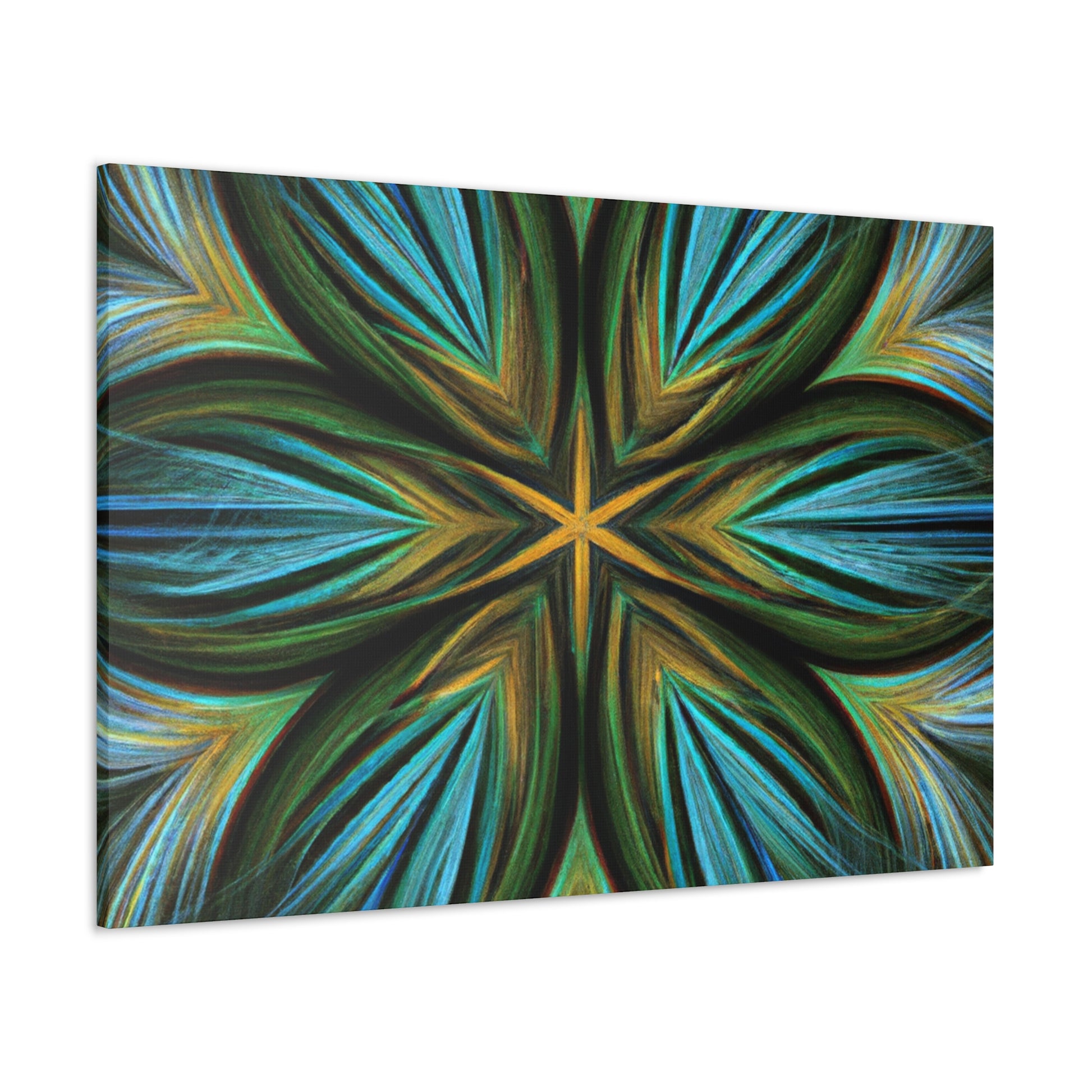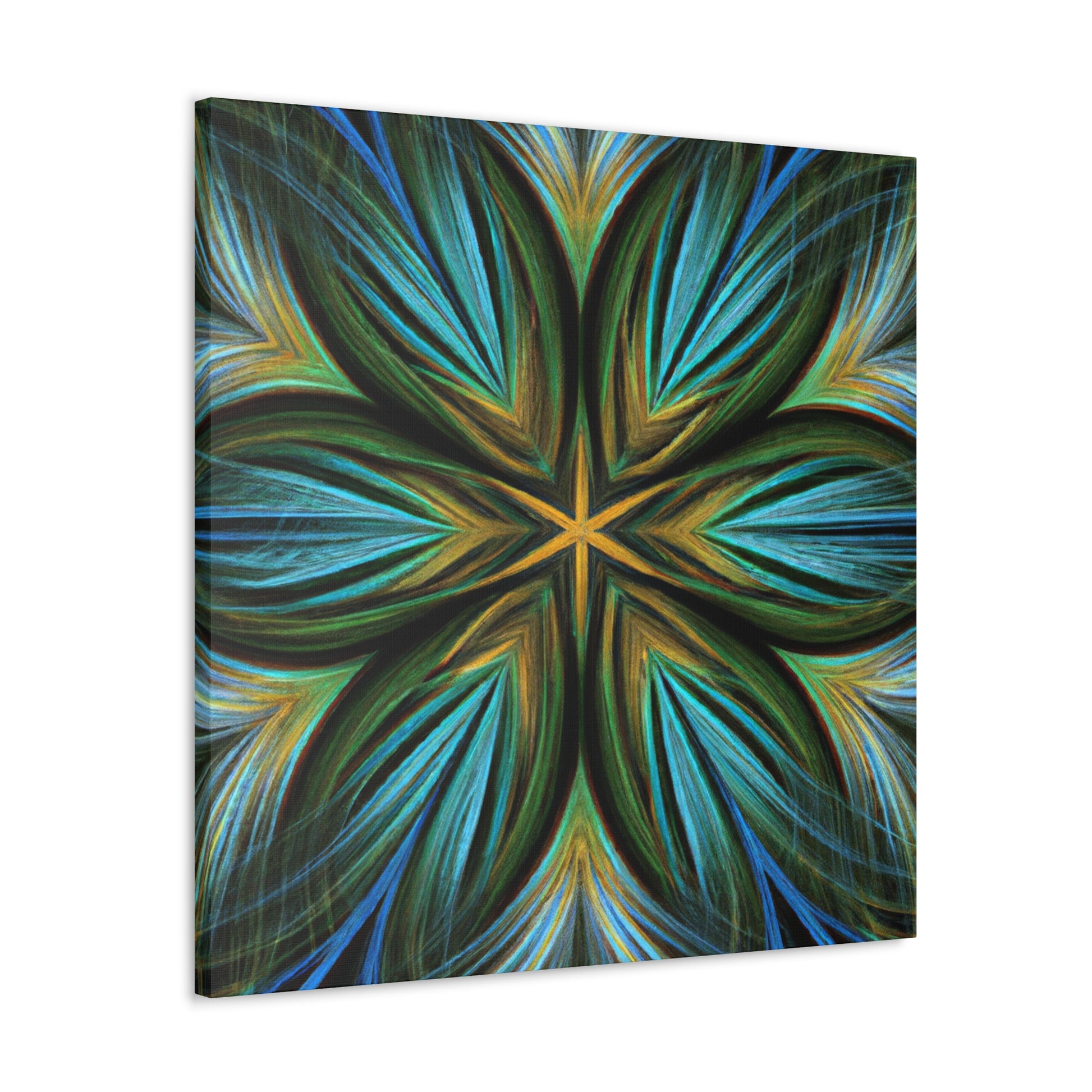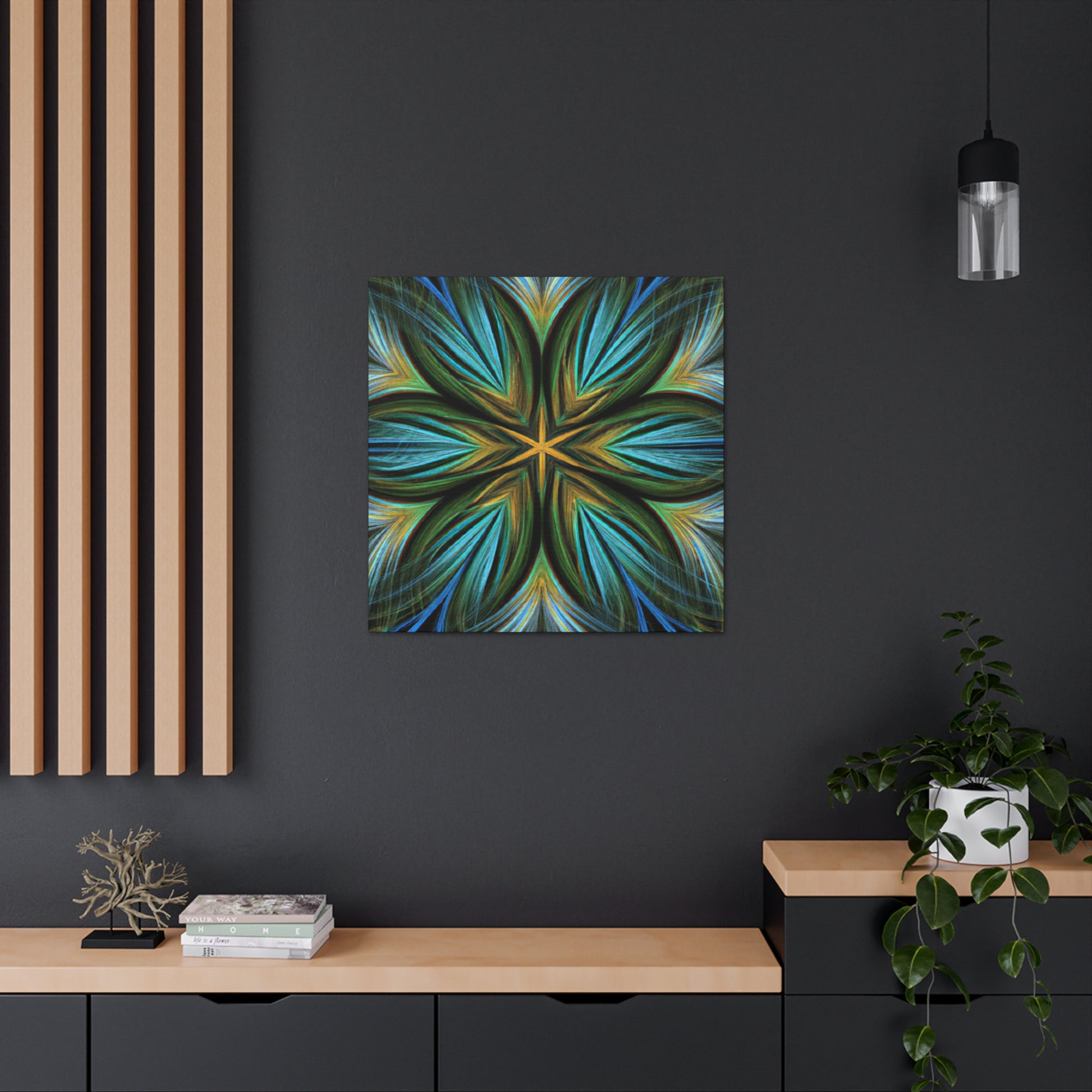 This vibrant abstract work of art will captivate any art lover! Featuring trippy geometric palm leaves, kaleidoscope, digital art, and 3D lines, it makes a unique statement in any space. Fractal elements and bright colors give a surreal picture that will be treasured for years. #abstractart #digitalart #3Dart #kaleidoscope #palmleaves #fractalart #vibrantcolors #geometricart #canvasart #surrealart