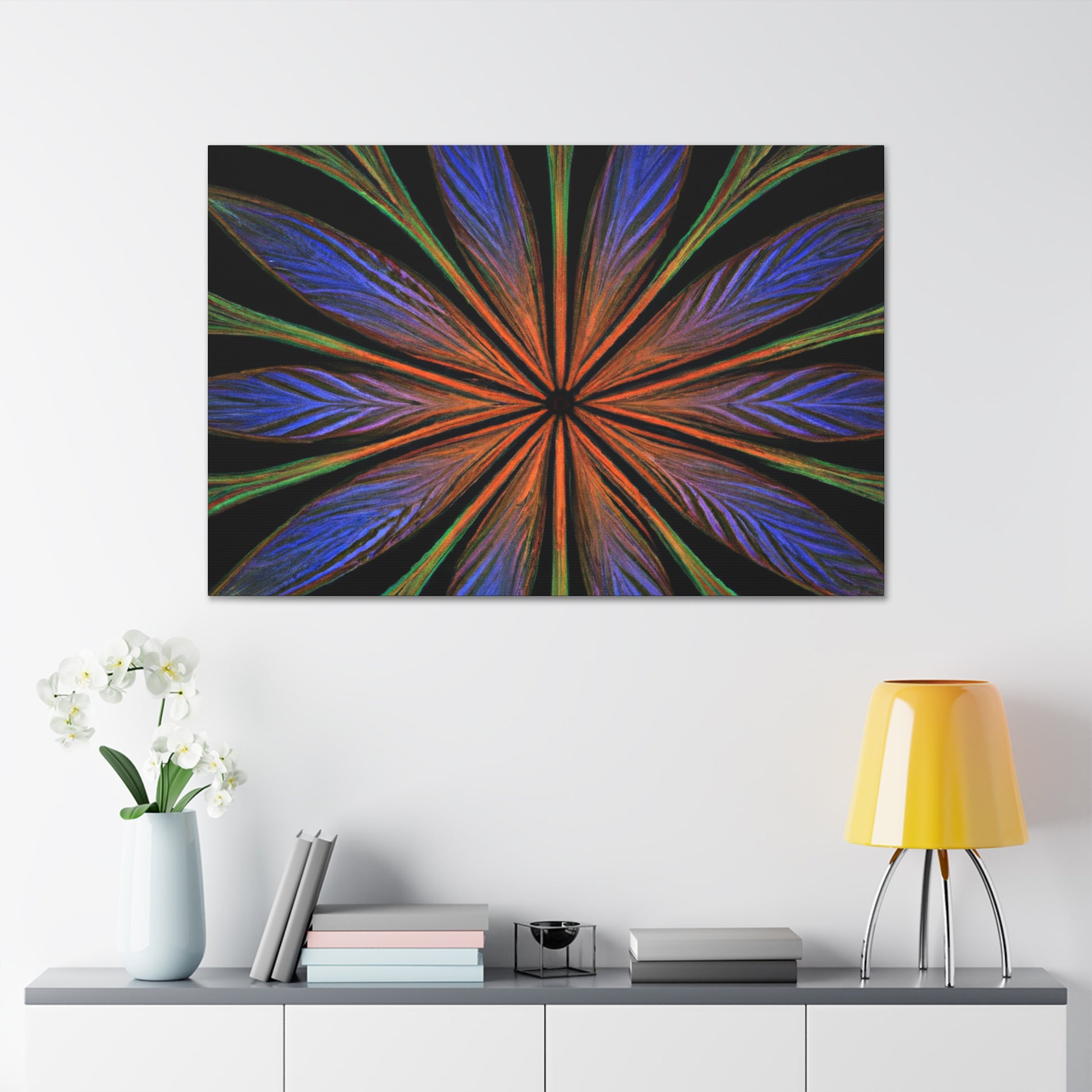 This modern abstract masterpiece is full of vibrant colors and 3D lines framed in canvas. Kaleidoscope breaking and fractal fragments delightfully intertwines with geometric palm leaves to complete a dynamic, trippy, and digital design. Perfect for elevating an art-driven interior decor, it will be sure to captivate and intrigue all. #Texture #Art #HomeDecor #Vibrant #Geometric #Abstract #Fractal #PalmLeaves #Kaleidoscope #DigitalArt #Trippy
