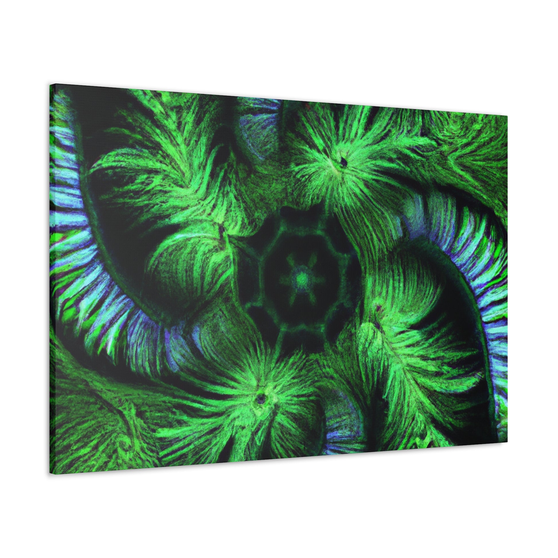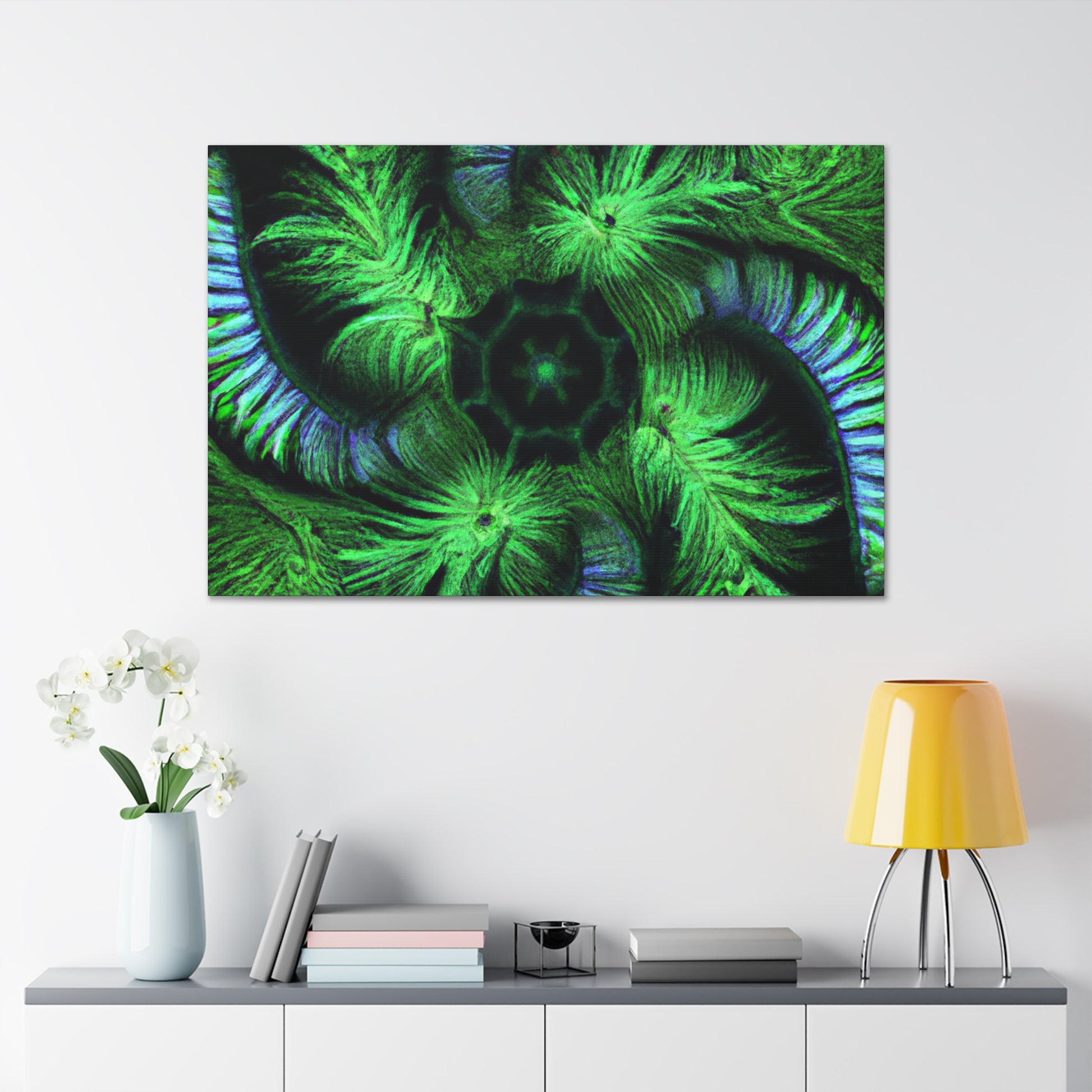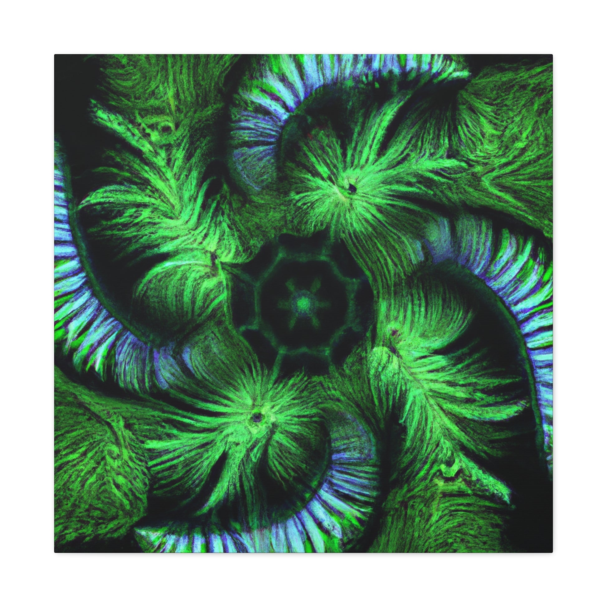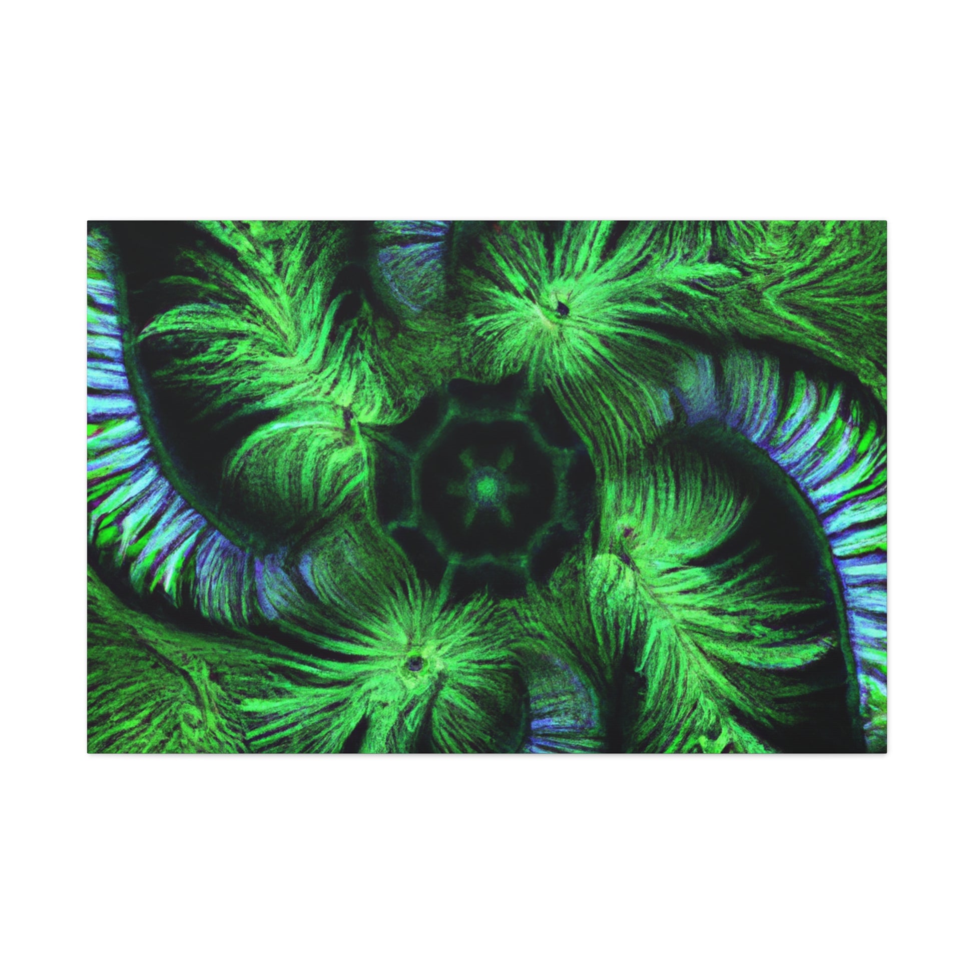 A stunning digital art canvas for your living space. Delight in the abstract and mesmerizing look of this canvas, full of vibrant colors, Trippy geometric palm leaves, kaleidoscope, 3D lines and fractal designs. It's as if you can get lost in all its vivid swirls and patterns. Make a statement and bring vibrant life to any room with this digital painting. #AbstractArt #DigitalArt #CanvasArt #TrippyArt #GeometricPalmLeaves #Kaleidoscope #Abstract #Digital #VibrantColors #3DLines #Fractal