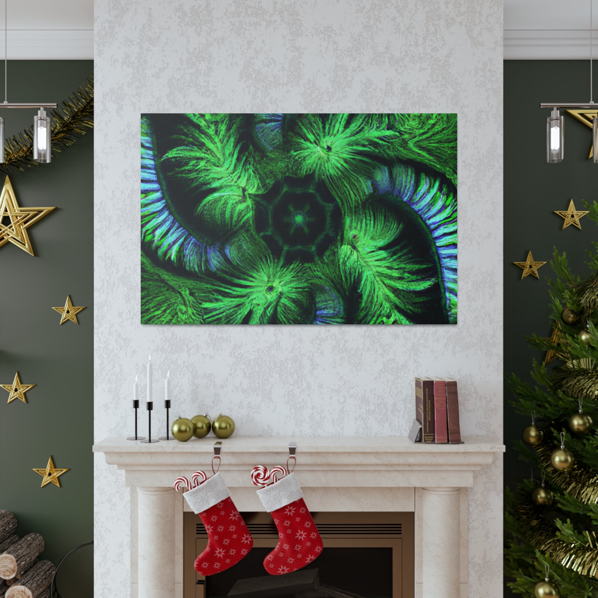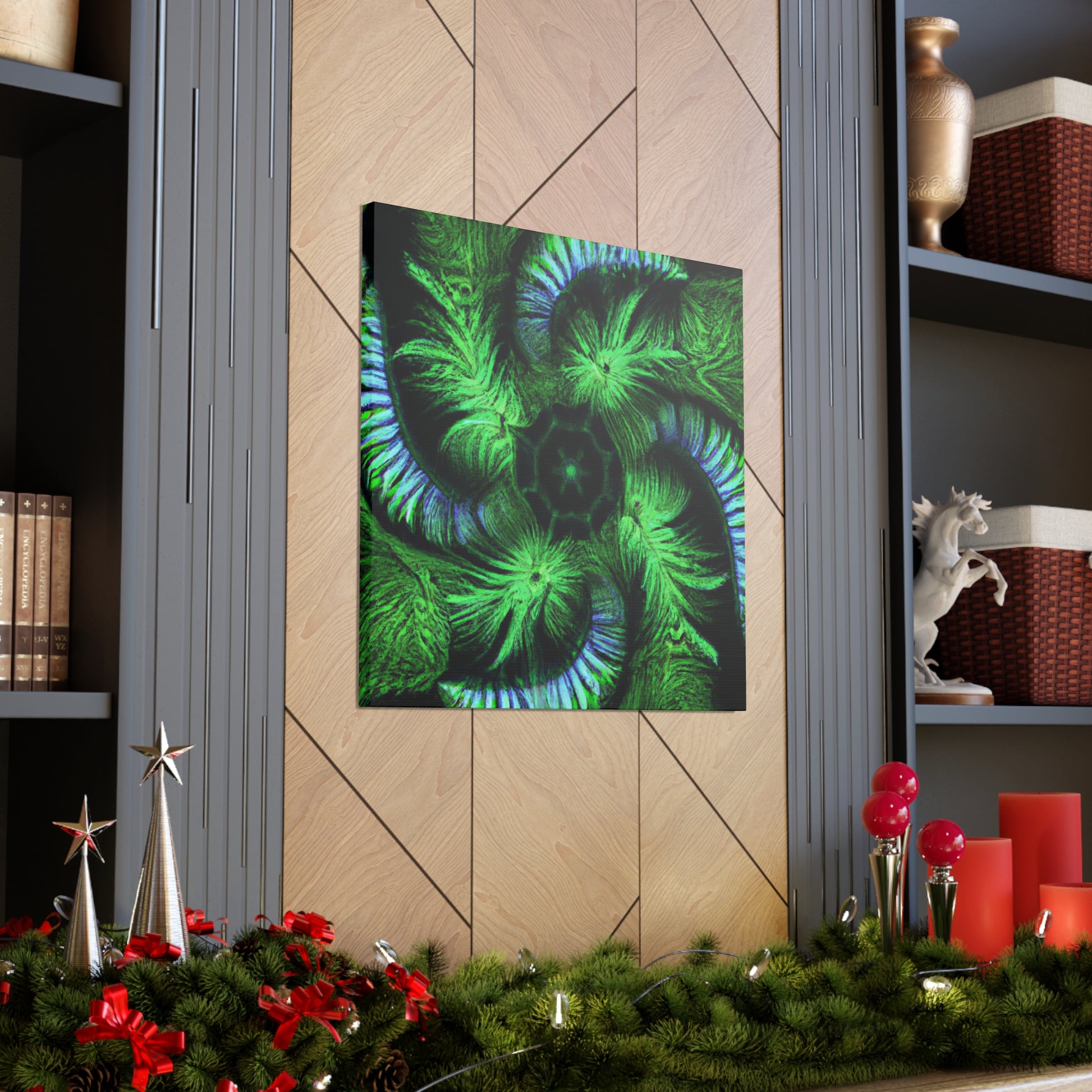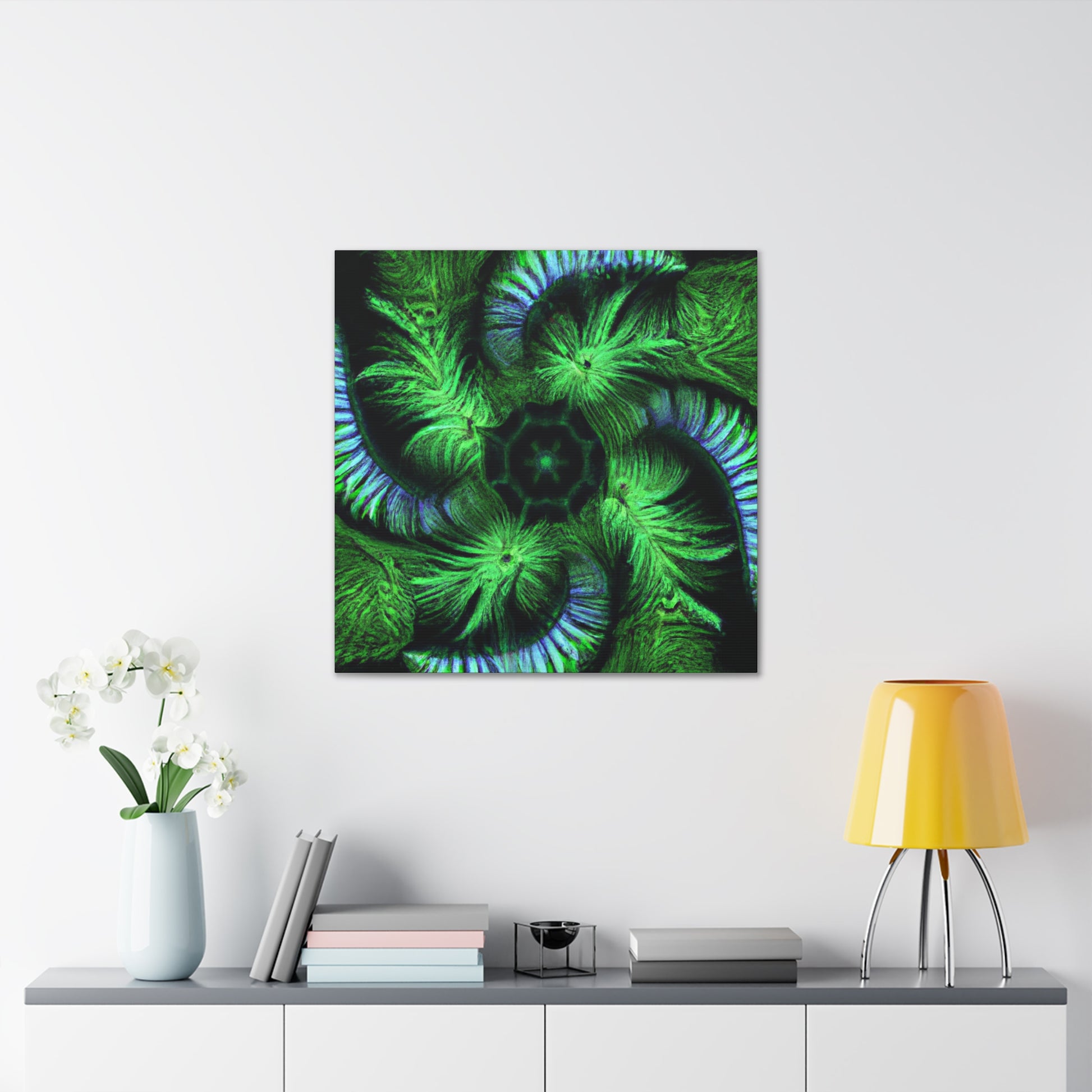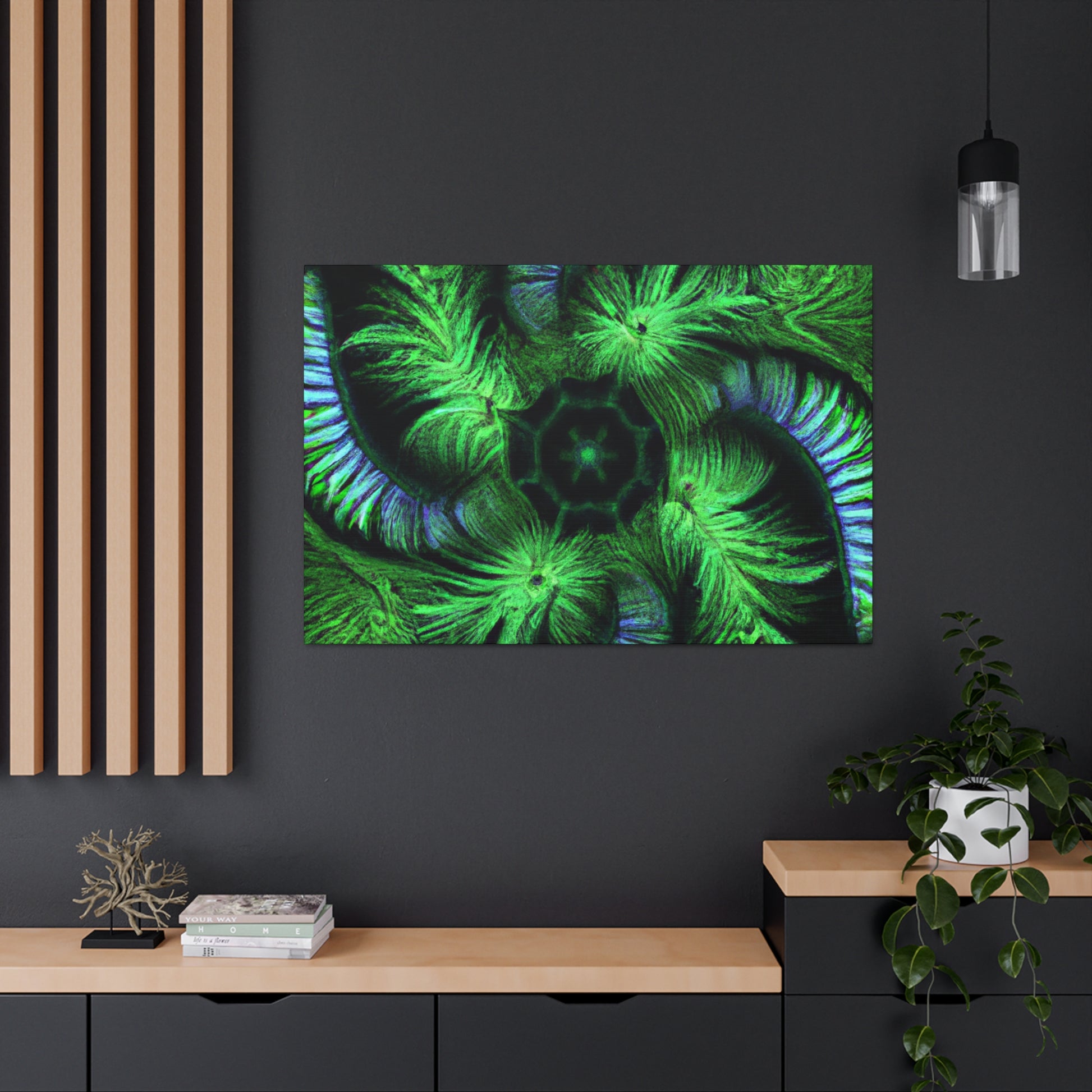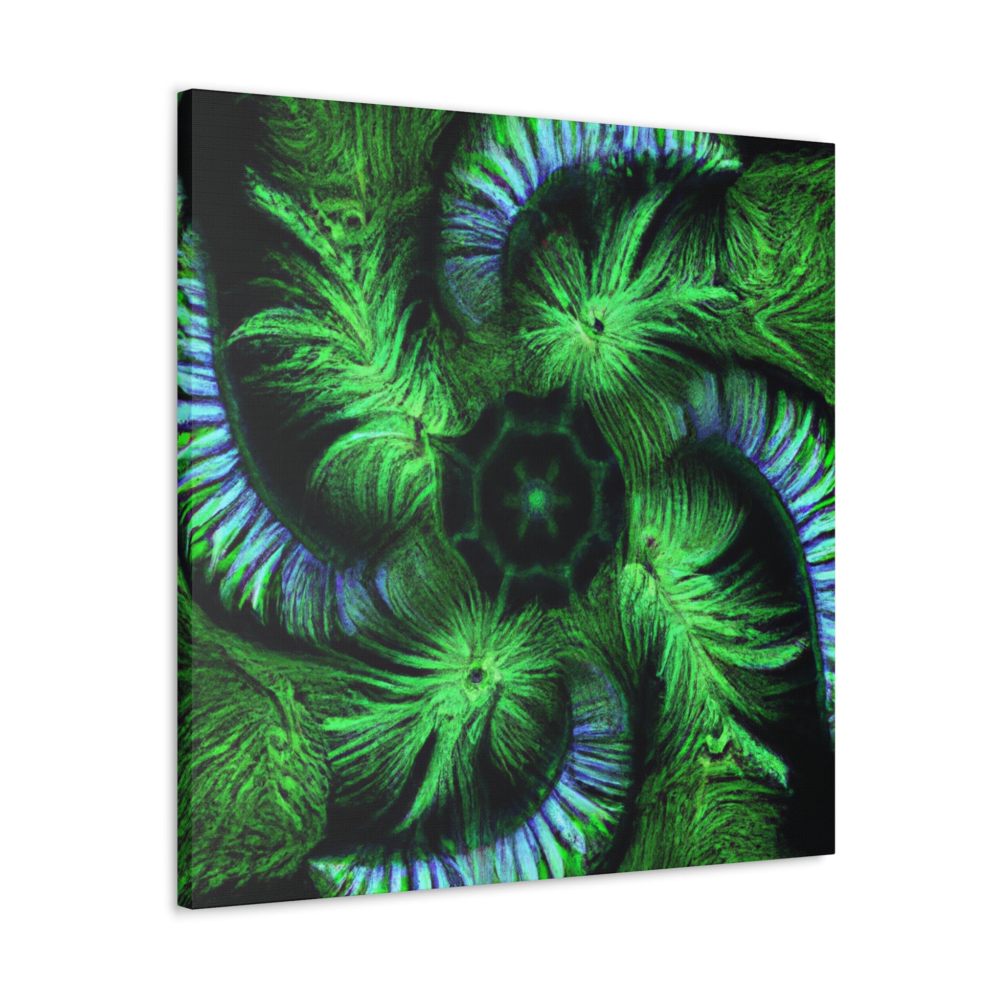 A stunning digital art canvas for your living space. Delight in the abstract and mesmerizing look of this canvas, full of vibrant colors, Trippy geometric palm leaves, kaleidoscope, 3D lines and fractal designs. It's as if you can get lost in all its vivid swirls and patterns. Make a statement and bring vibrant life to any room with this digital painting. #AbstractArt #DigitalArt #CanvasArt #TrippyArt #GeometricPalmLeaves #Kaleidoscope #Abstract #Digital #VibrantColors #3DLines #Fractal