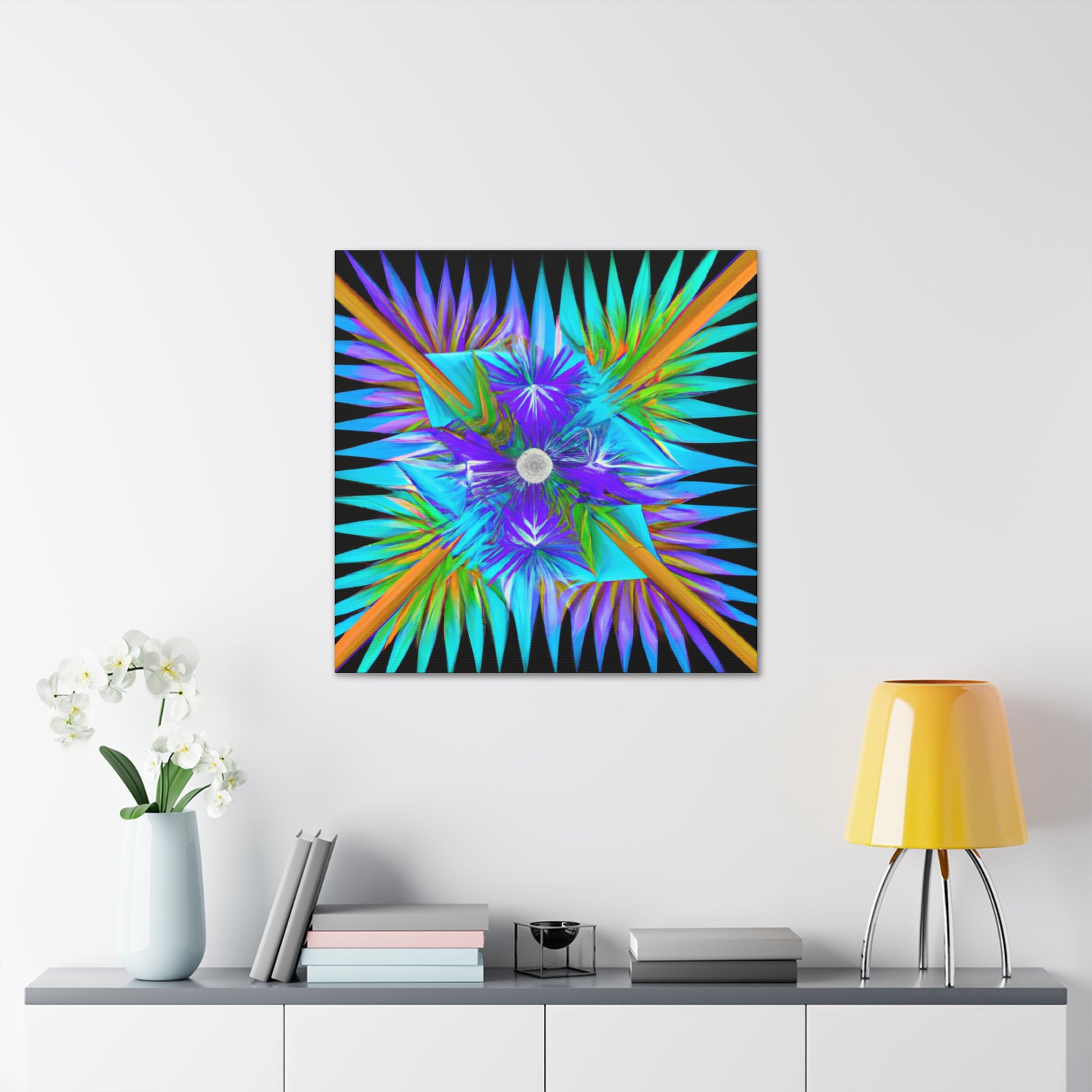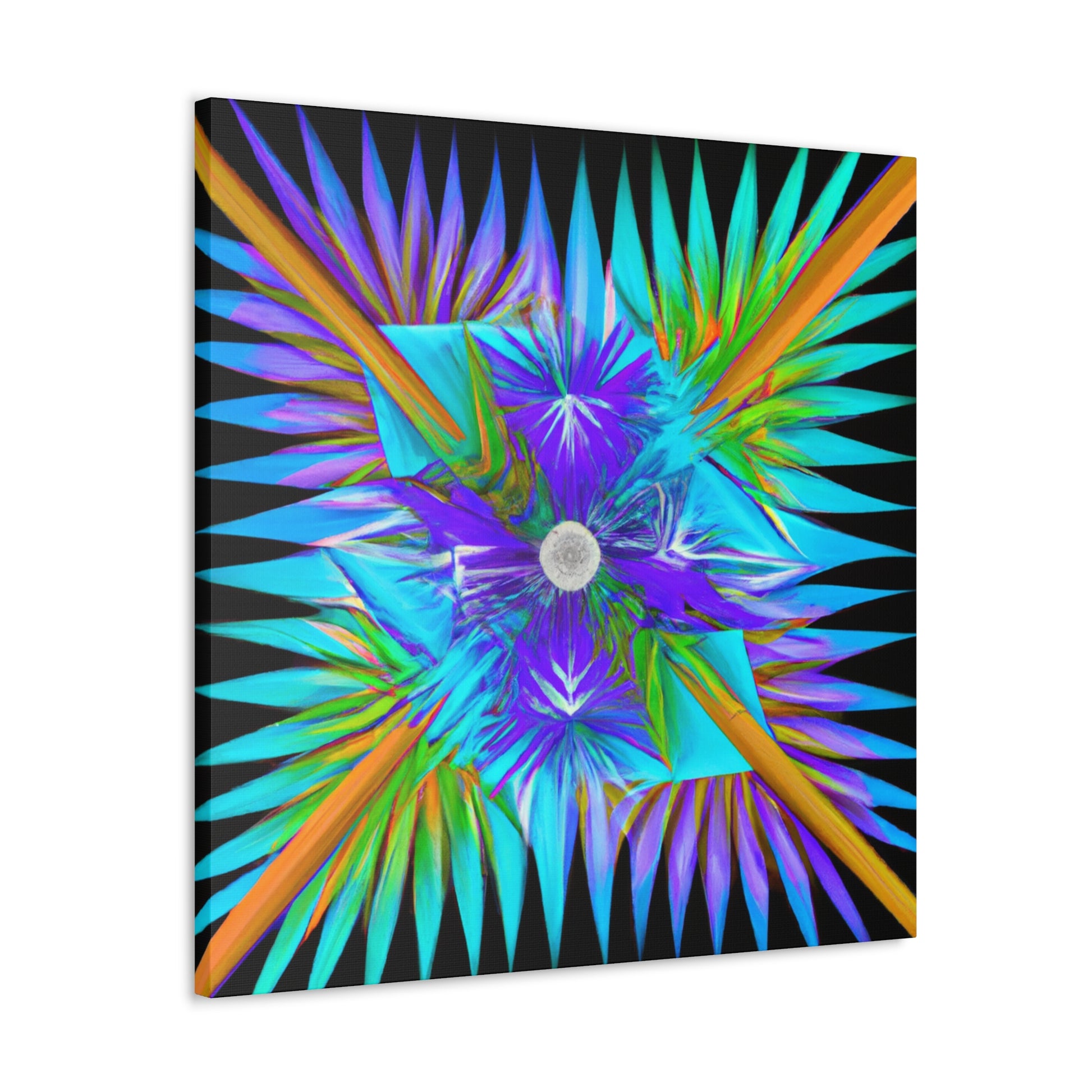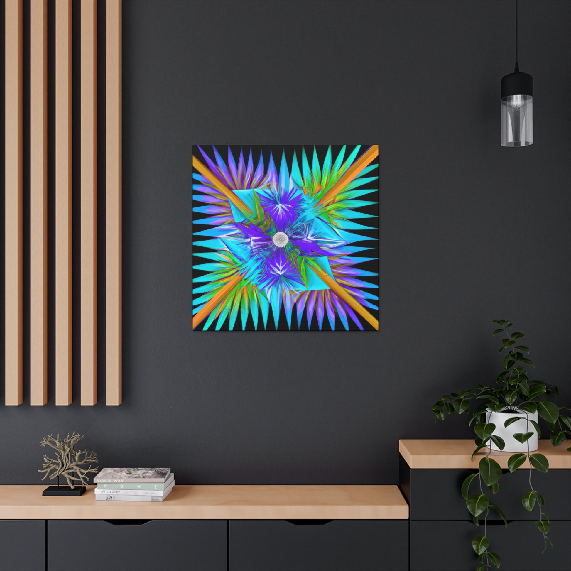 Vibrant and trippy, this abstract digital art canvas brings together kaleidoscope, geometric palm leaves and vibrantly colored 3D lines for a truly mesmerizing art experience. A unique take on fractal art, this piece will standout as a conversation starter in any home or workplace. #AbstractArt #digitalart #fractalart #kaleidoscope #geometricart #palmleaves #3dlines #vibrantcolors #canvasart #trippyart #mesmerizingart