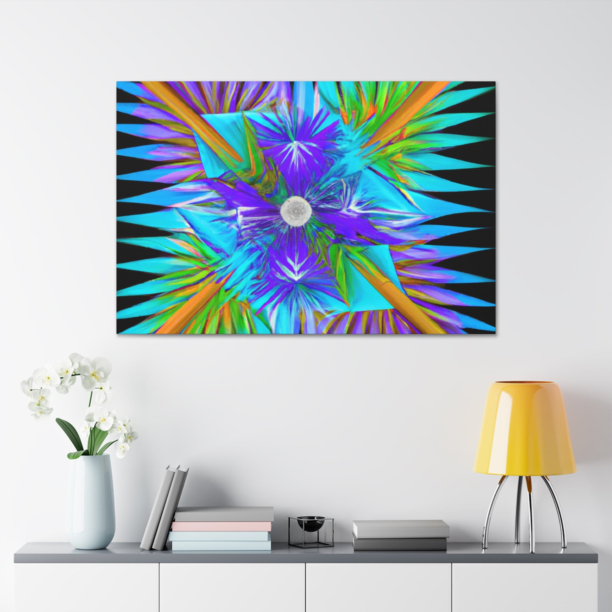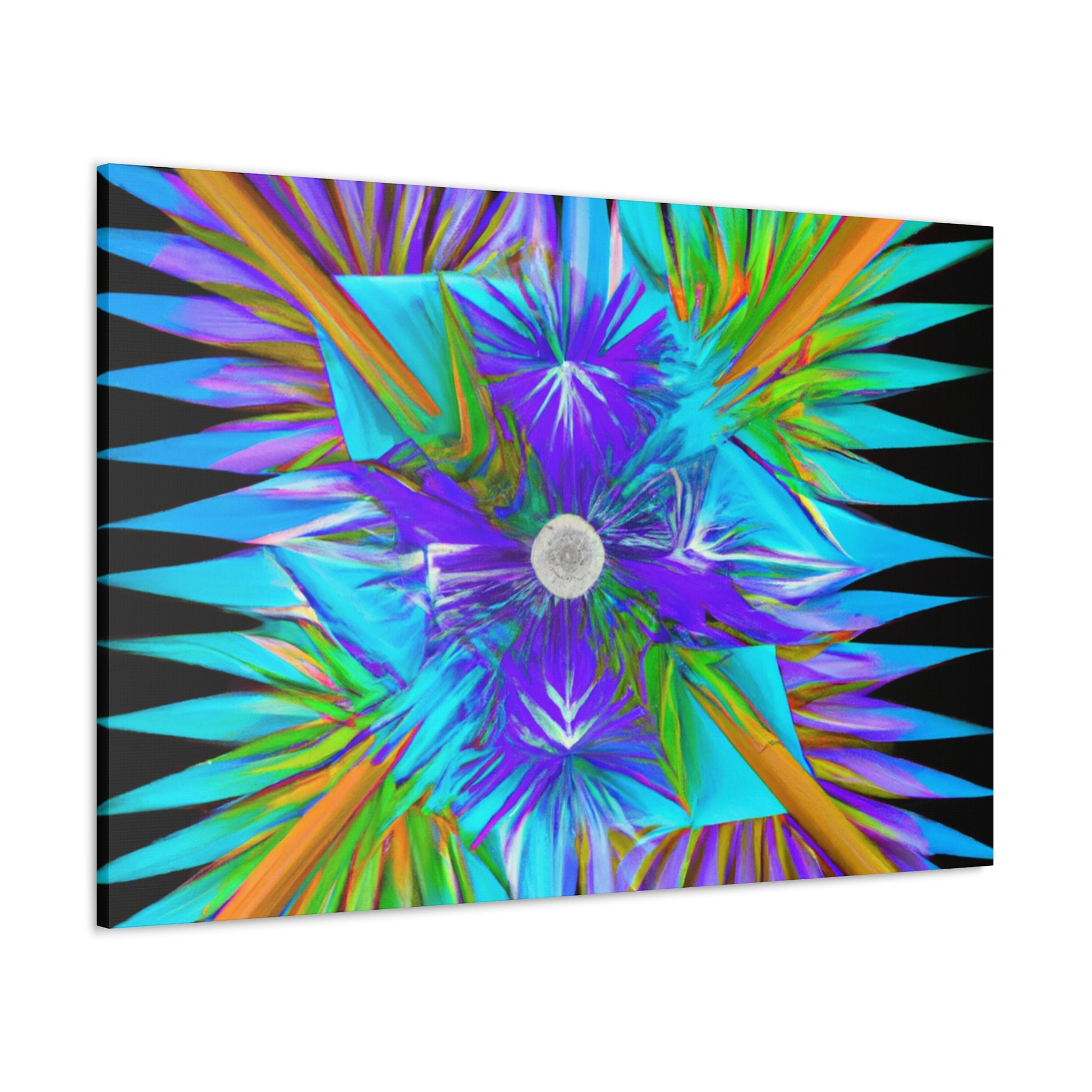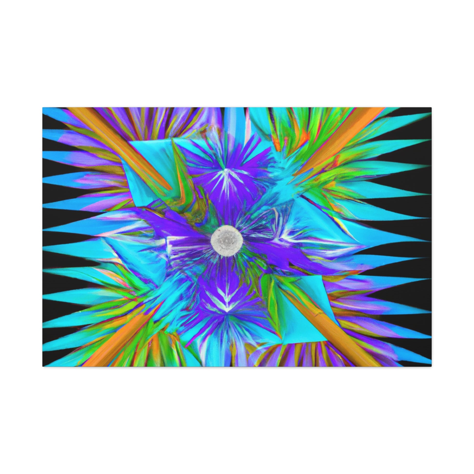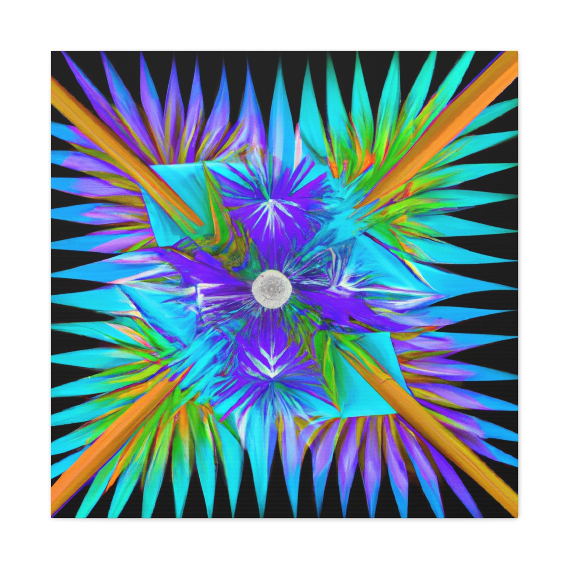 Vibrant and trippy, this abstract digital art canvas brings together kaleidoscope, geometric palm leaves and vibrantly colored 3D lines for a truly mesmerizing art experience. A unique take on fractal art, this piece will standout as a conversation starter in any home or workplace. #AbstractArt #digitalart #fractalart #kaleidoscope #geometricart #palmleaves #3dlines #vibrantcolors #canvasart #trippyart #mesmerizingart