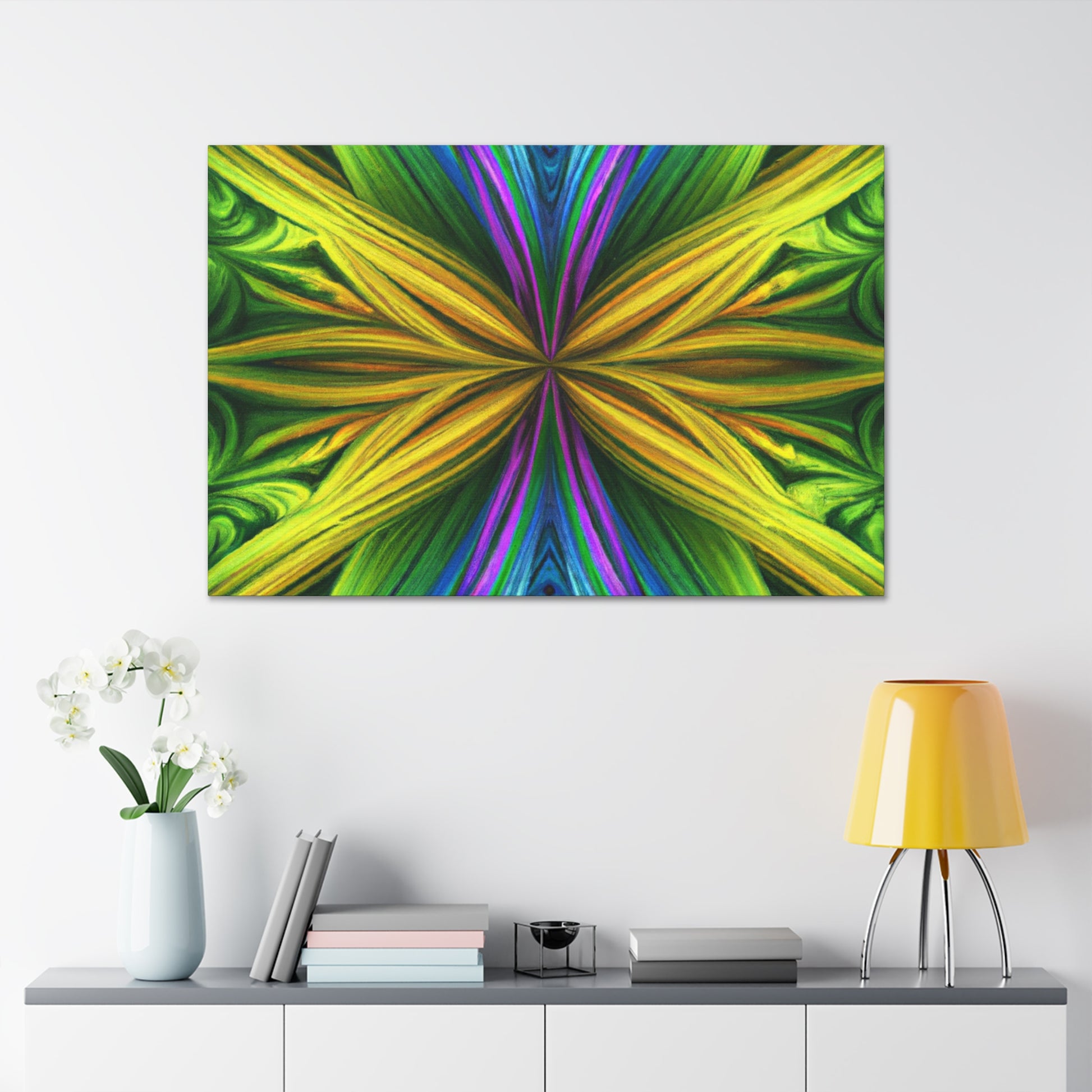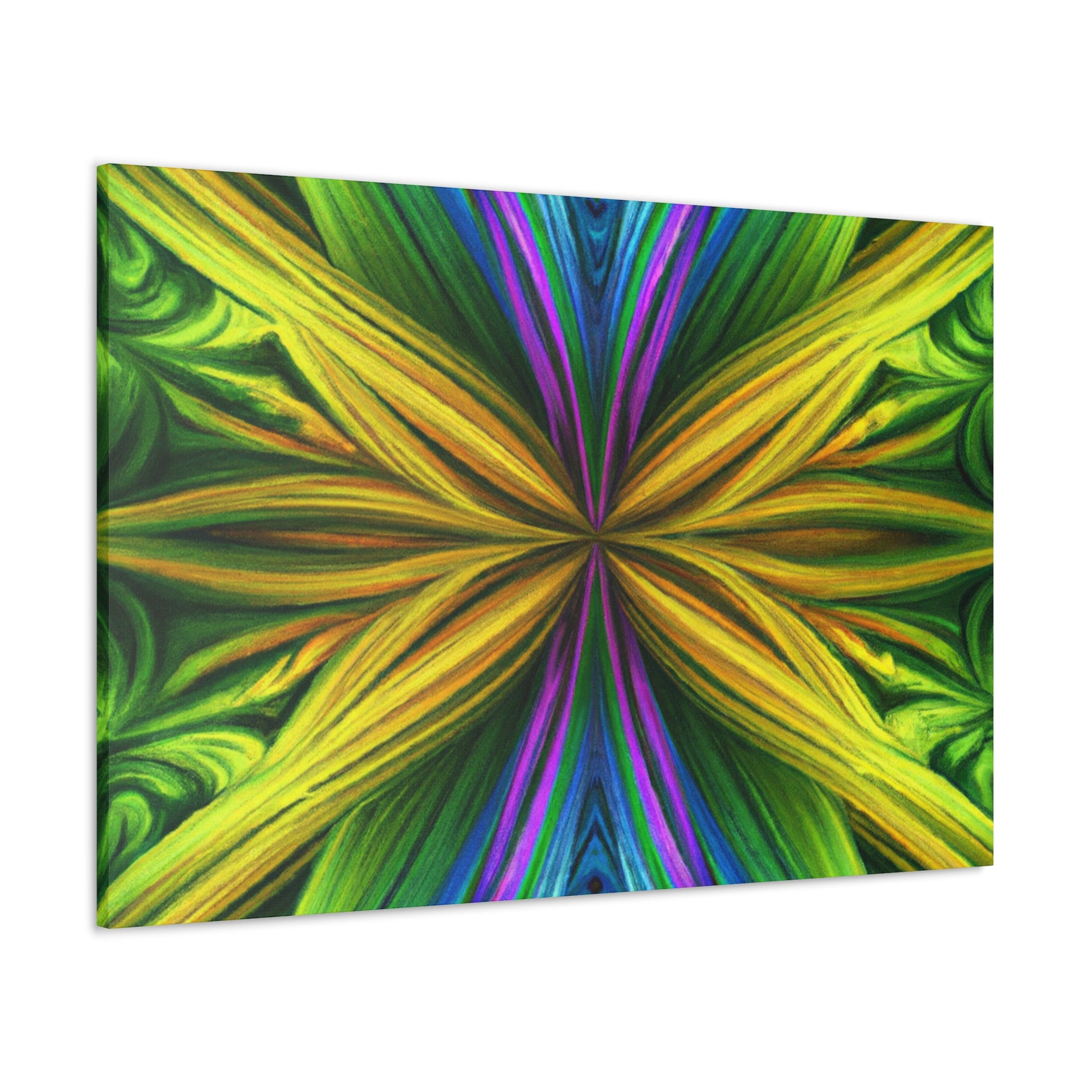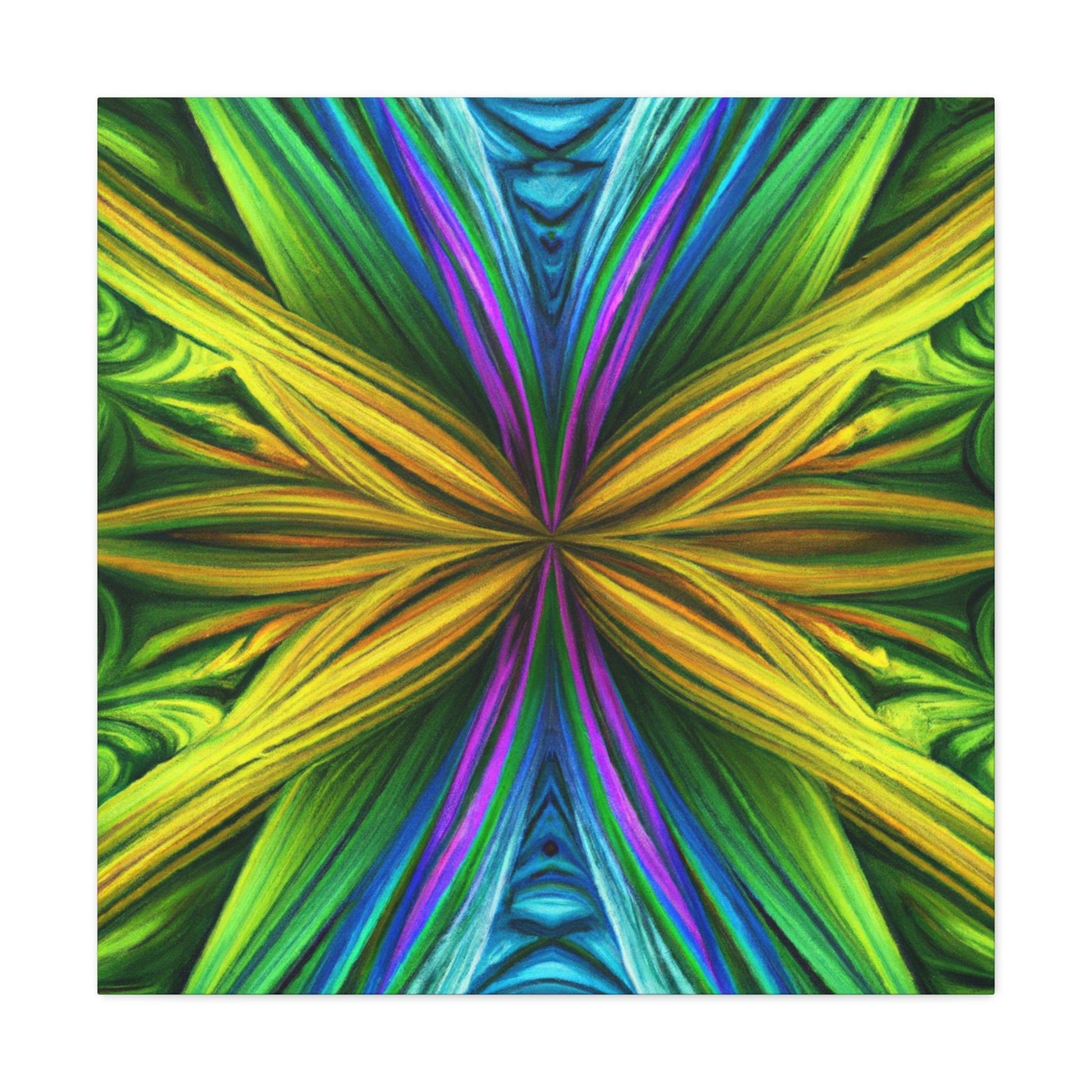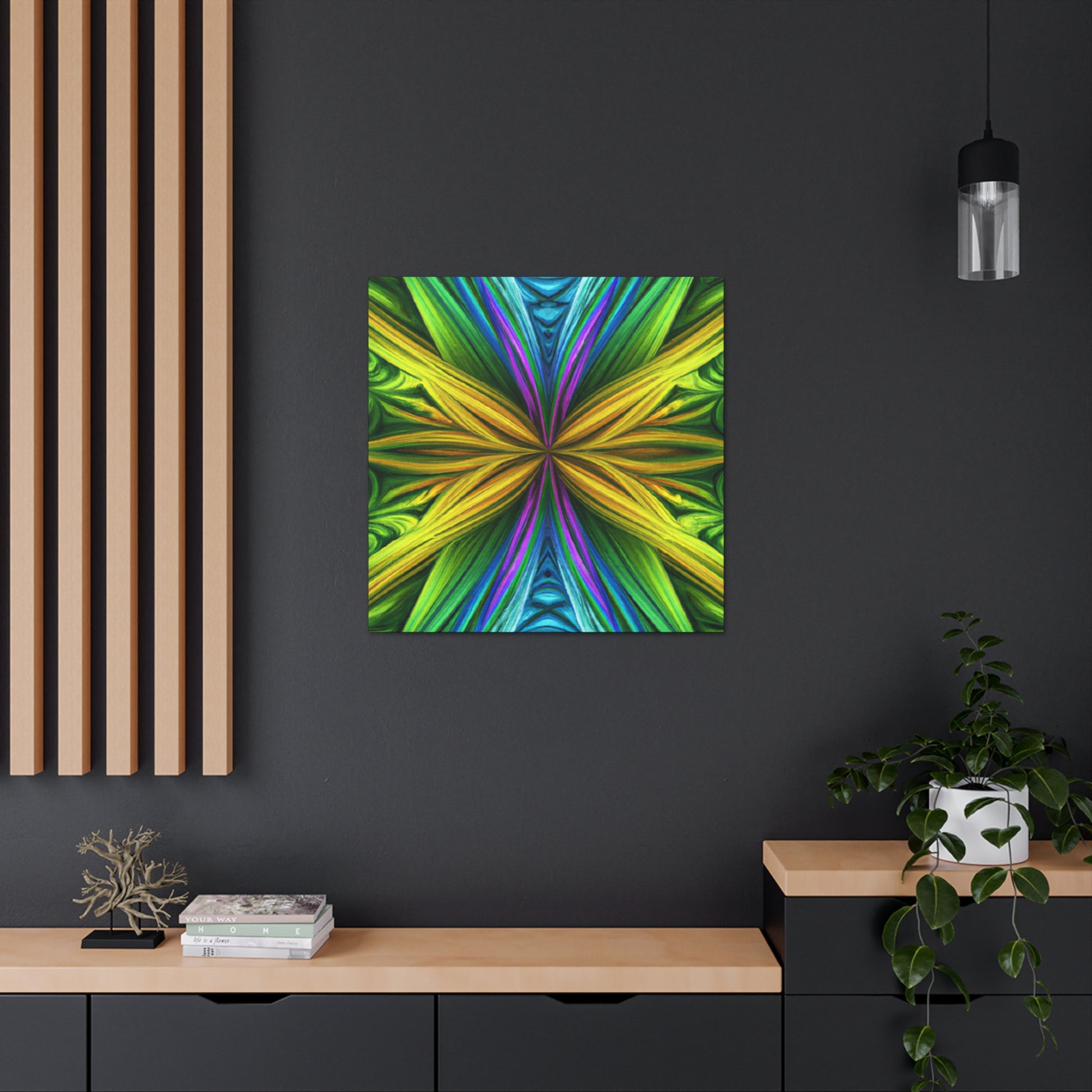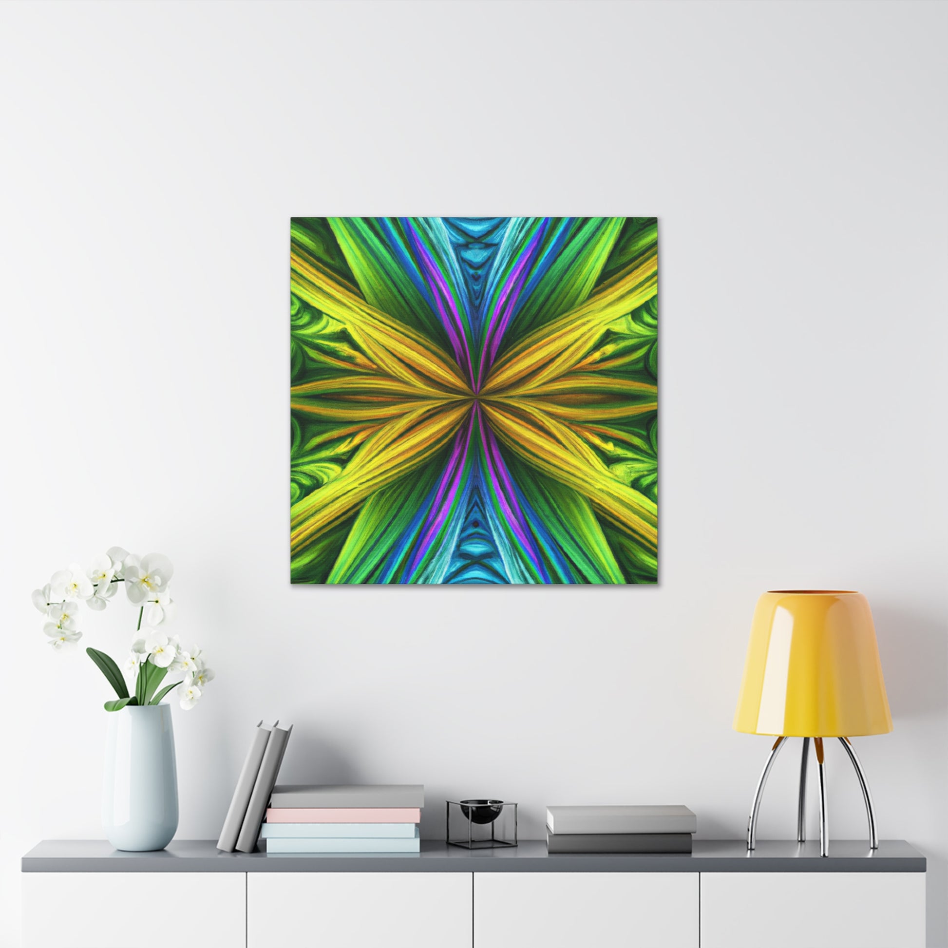 This canvas of Trippy Geometric Palm Leaves will add an interesting element to any home. Featuring kaleidoscope, abstract, digital art, vibrant colors, 3D lines, and a fractal design, this piece will bring a lively atmosphere to a room. Enjoy the special blend of shapes and colors for years to come. #abstractart #vibrantcolors #3Dlines #fractalart #trippyart #digitalart #palmleaves #kaleidoscope #fractaldesign #abstractcanvas #canvasart