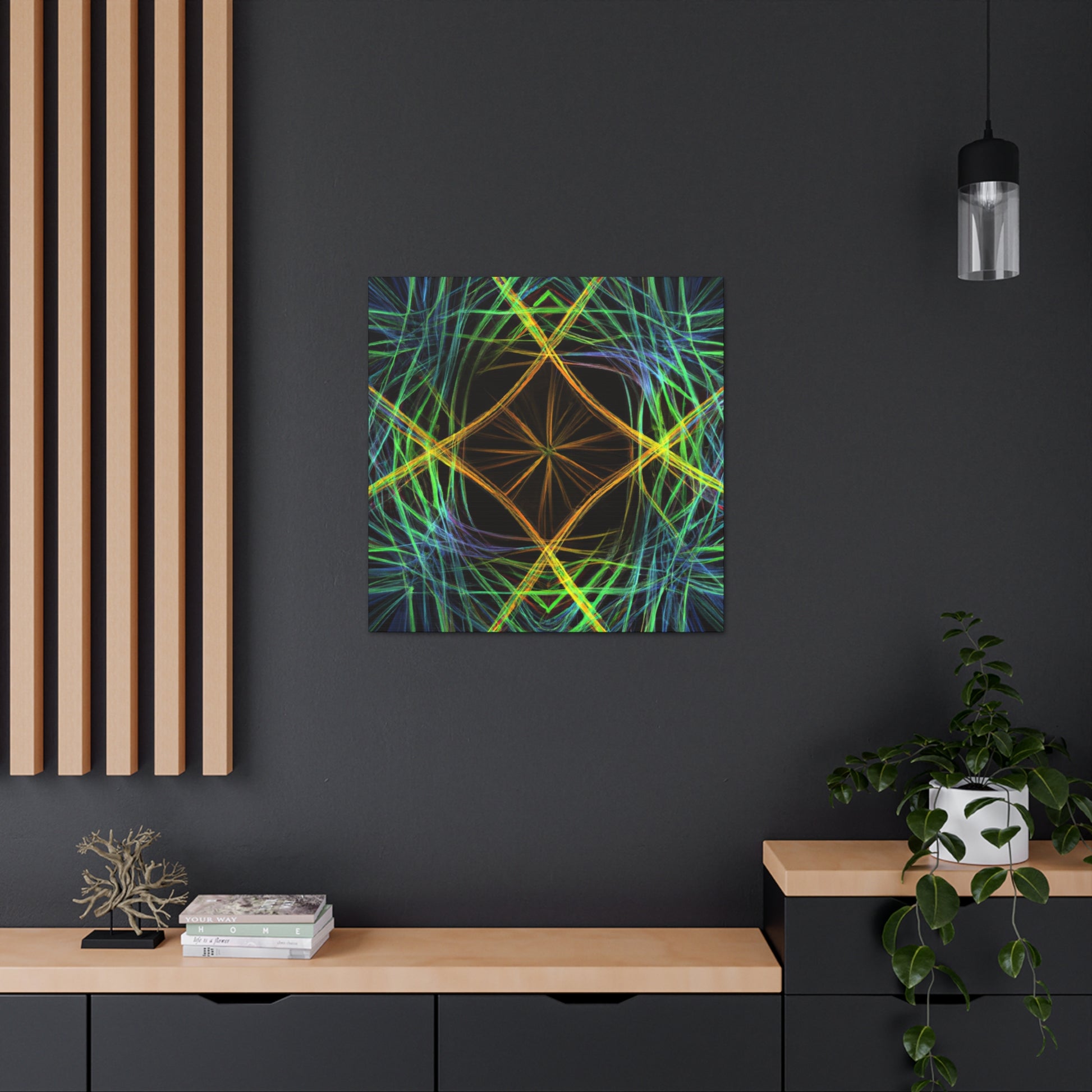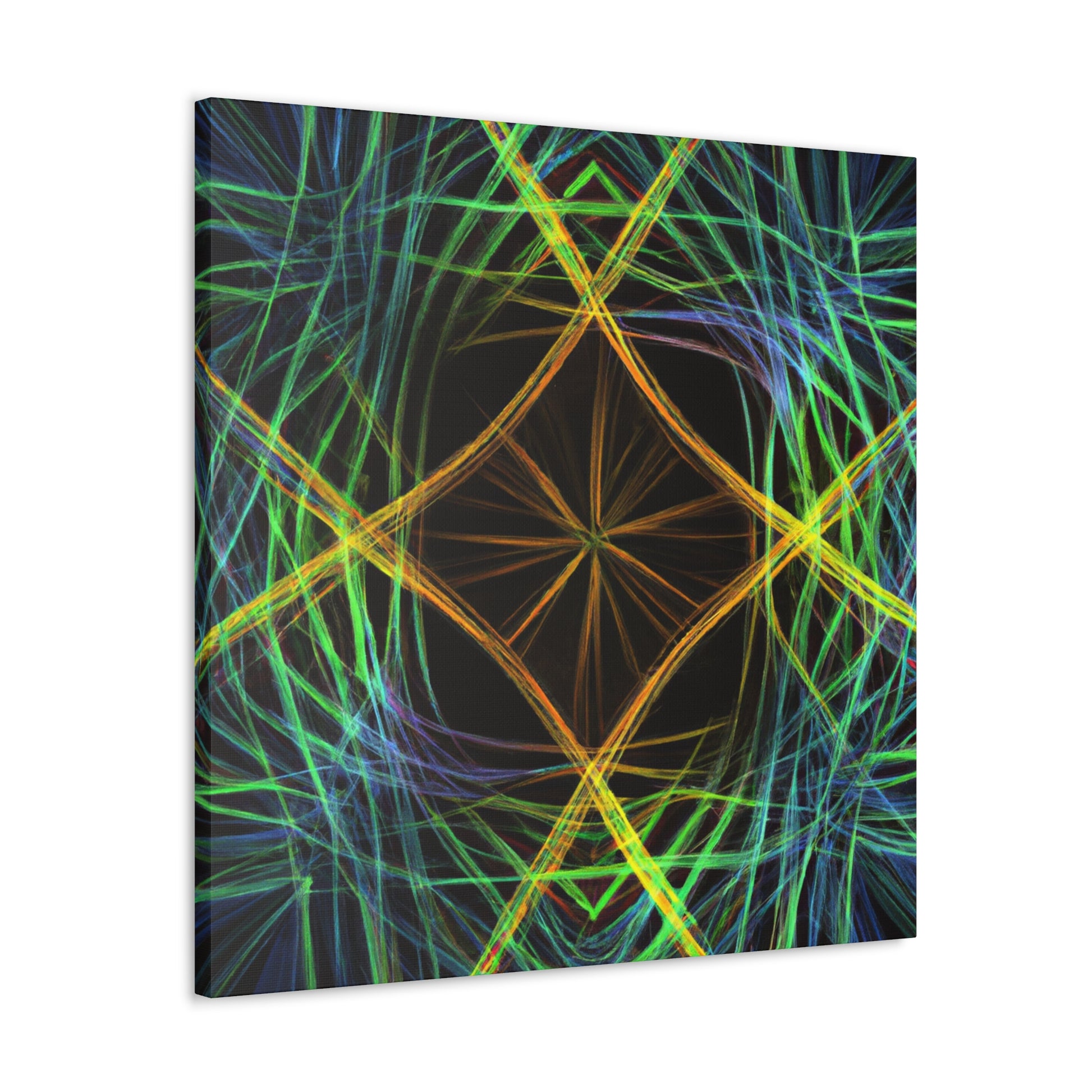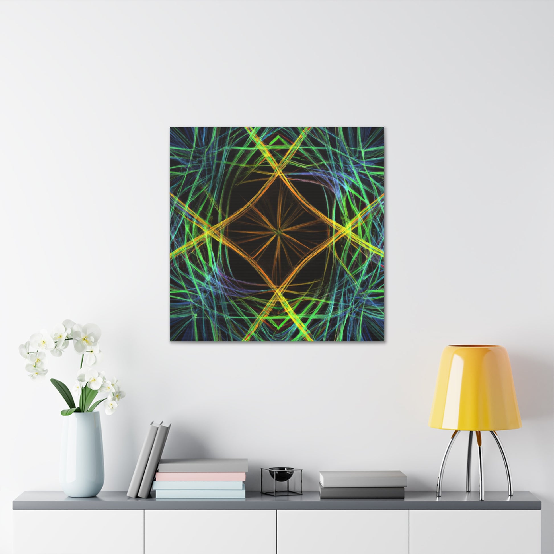 This vivid canvas print is sure to be a showstopper in any room. It features an eye-catching arrangement of trippy geometric palm leaves, kaleidoscope, abstract, digital art, and vibrant colors, all brought together with 3D lines and fractals. This statement piece is sure to make a statement and adds a touch of fun to any wall. #trippy #geometric #palmleaves #kaleidoscope #abstract #digitalart #vibrantcolors #3Dlines #fractal #statementpiece #statementwall