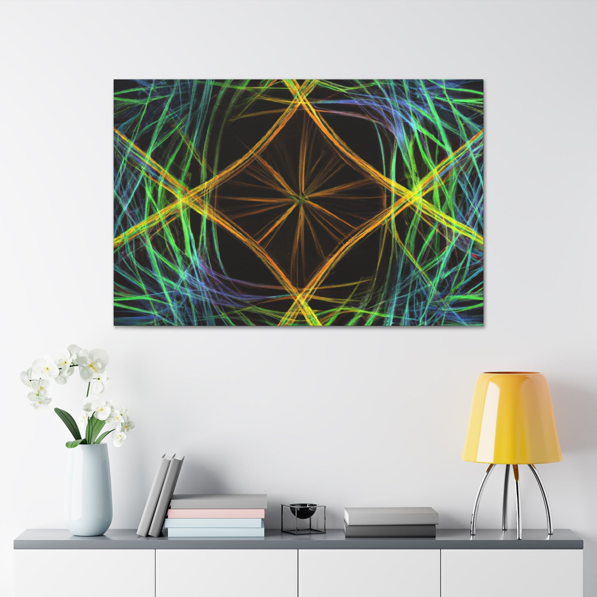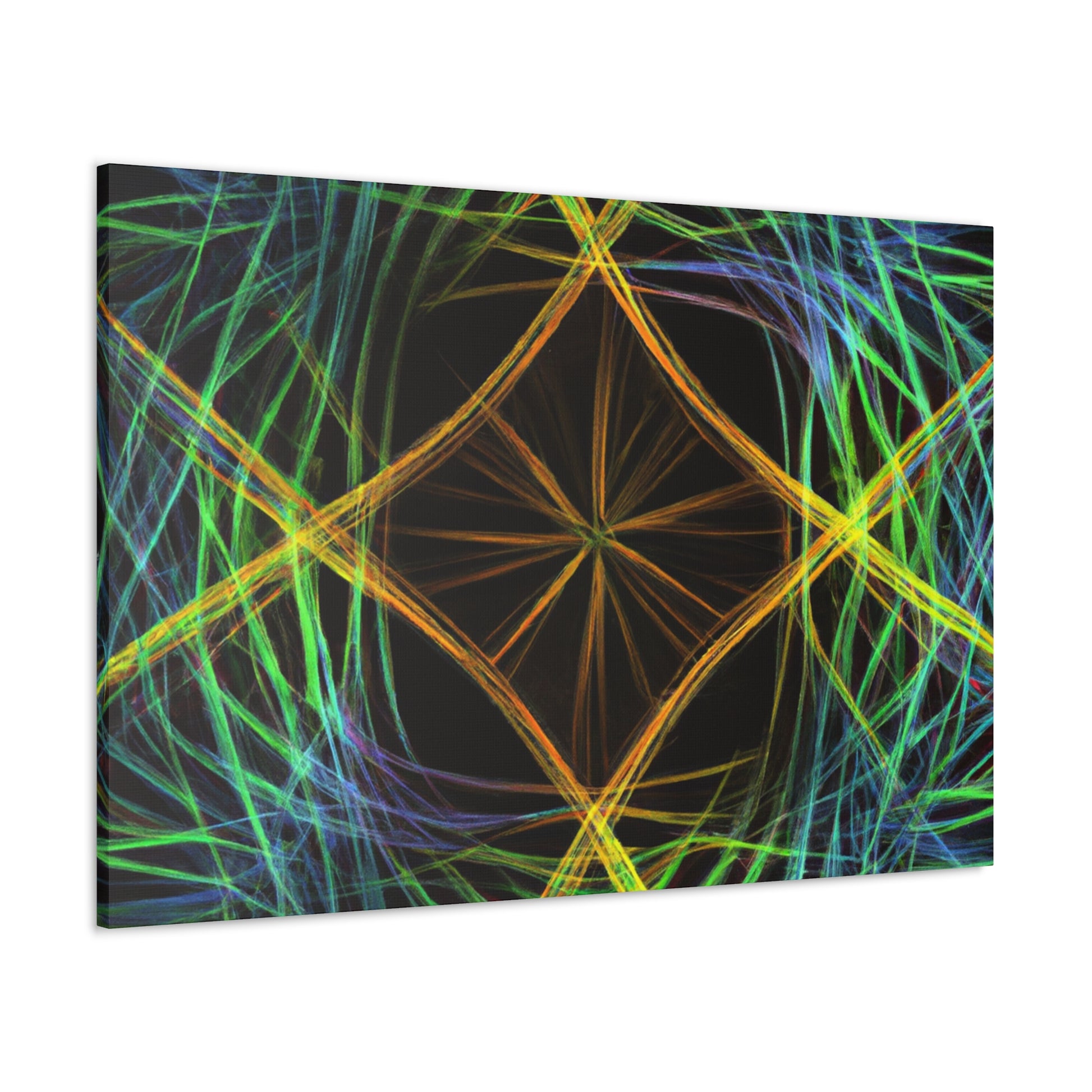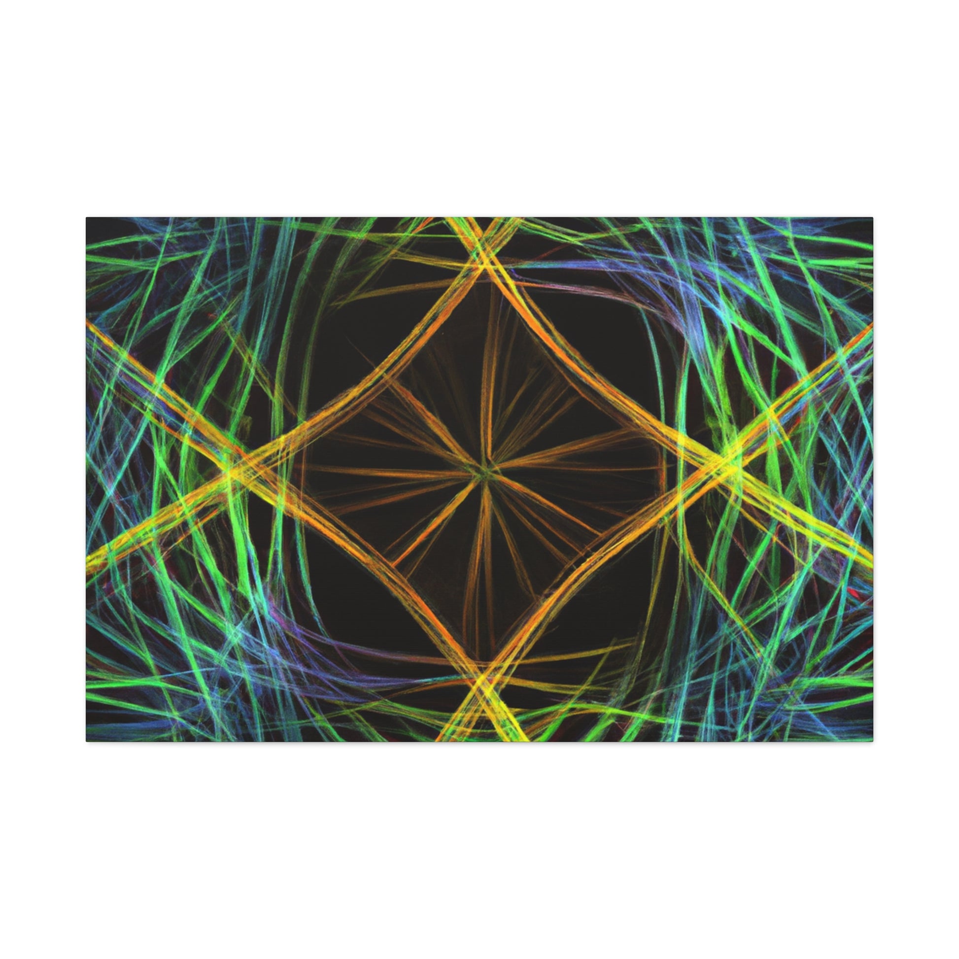 This vivid canvas print is sure to be a showstopper in any room. It features an eye-catching arrangement of trippy geometric palm leaves, kaleidoscope, abstract, digital art, and vibrant colors, all brought together with 3D lines and fractals. This statement piece is sure to make a statement and adds a touch of fun to any wall. #trippy #geometric #palmleaves #kaleidoscope #abstract #digitalart #vibrantcolors #3Dlines #fractal #statementpiece #statementwall