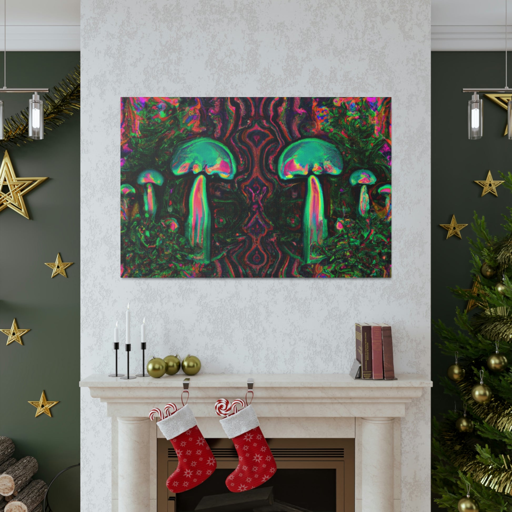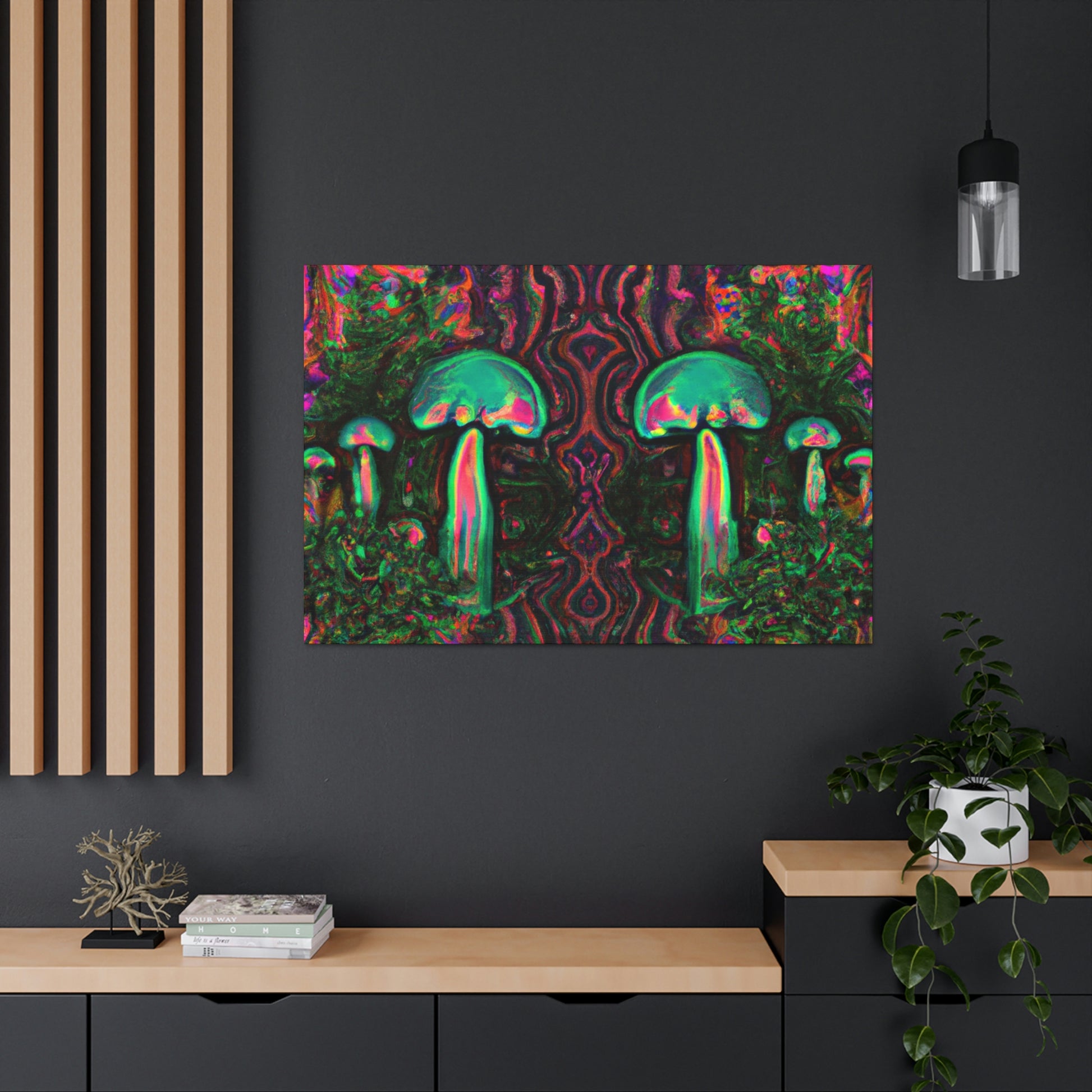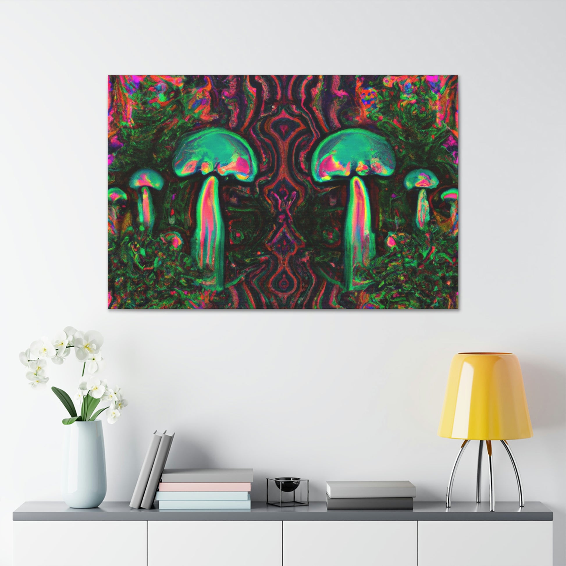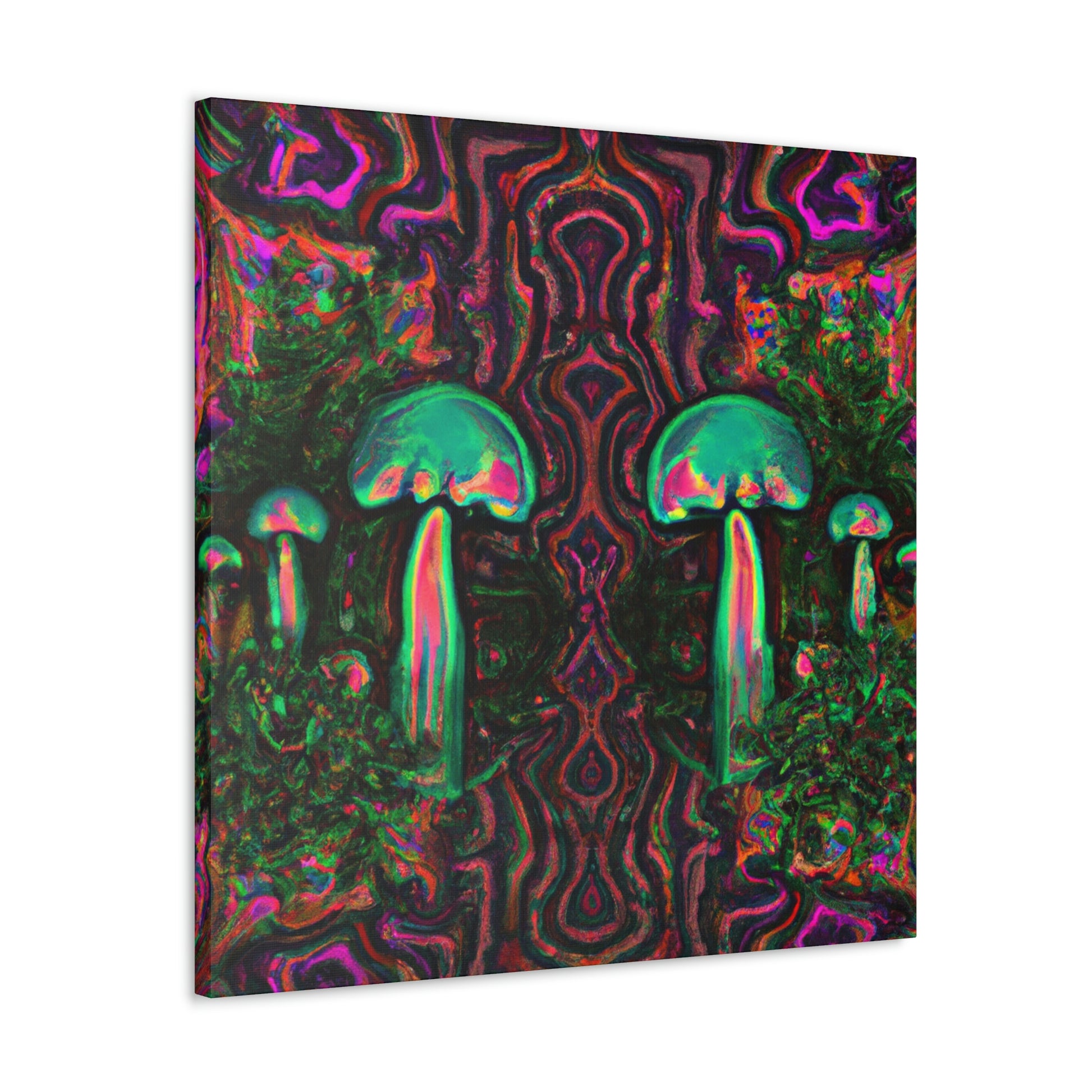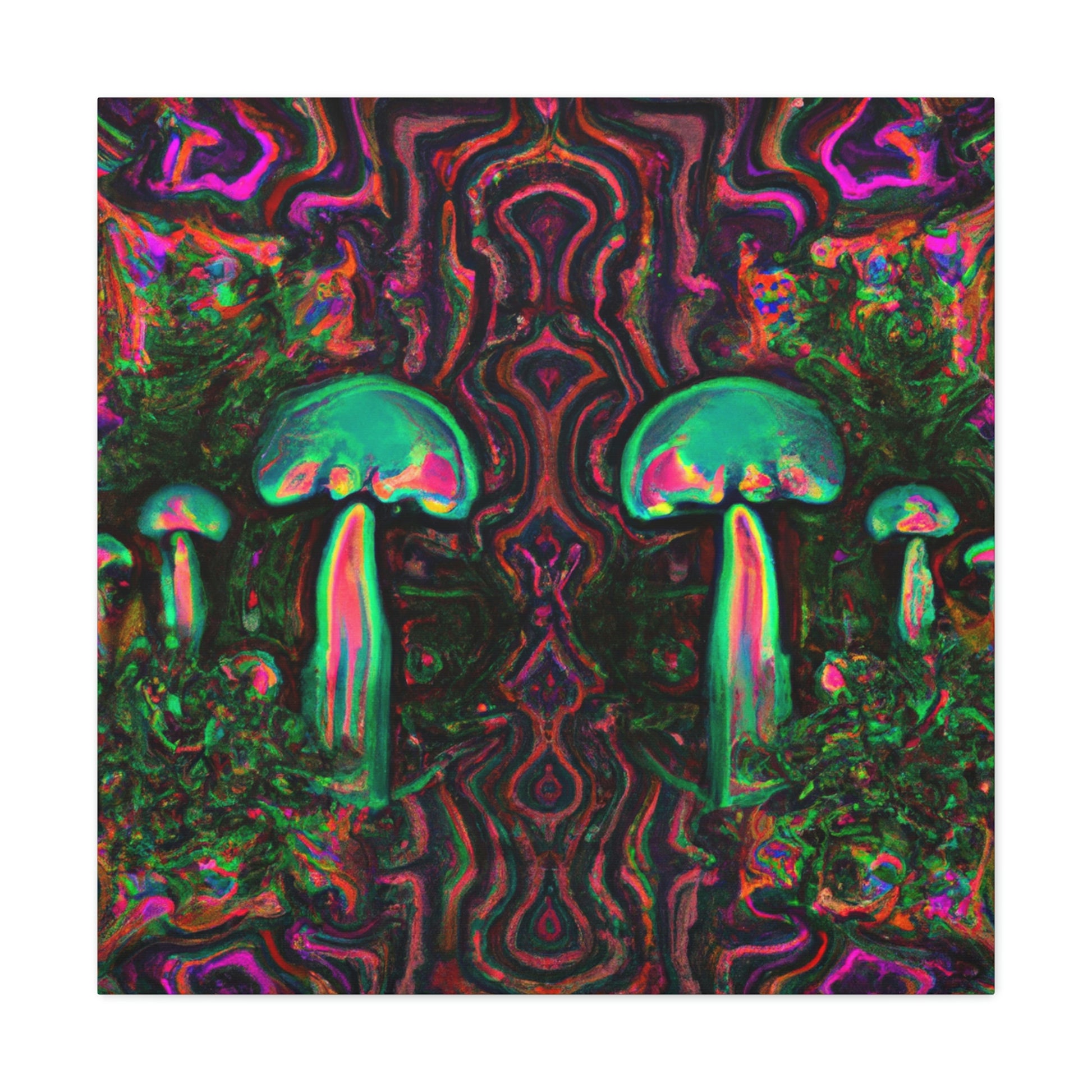 Bring the fun and motion of a surreal dream to your wall with this vibrant, colorful canvas of Trippy mushrooms, kaleidoscope, abstract and digital art. This eye-catching piece of cyperpunkin art is perfect for bringing a unique energy to any wall, and the vivid shades of color will bring a touch of surreal style to your space. #surrealart #vibrantcanvas #kaleidoscopeart #digitalart #abstractart #cyperpunkinart #mushroomart #trippyart #brightcolors #surrealdream #dynamicart