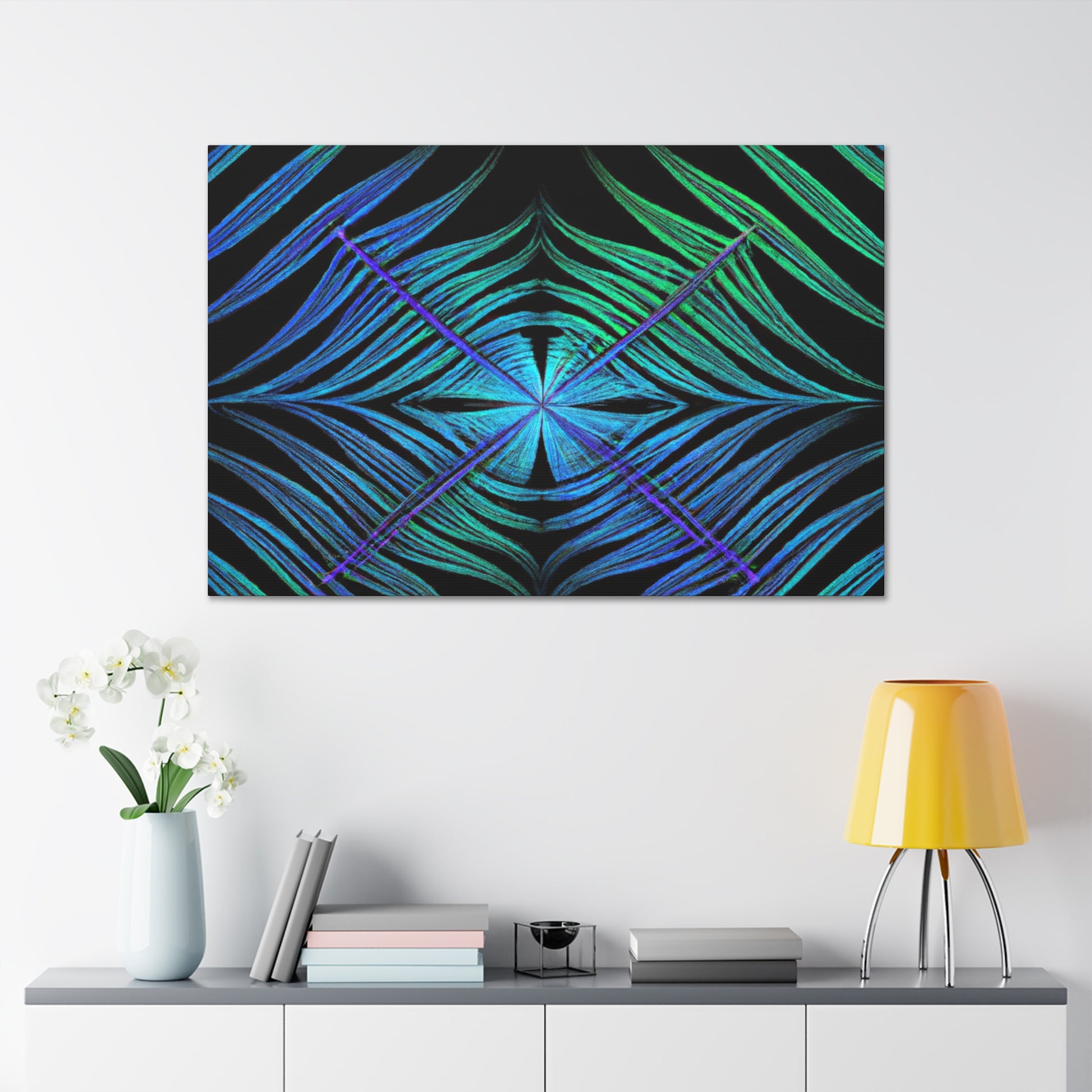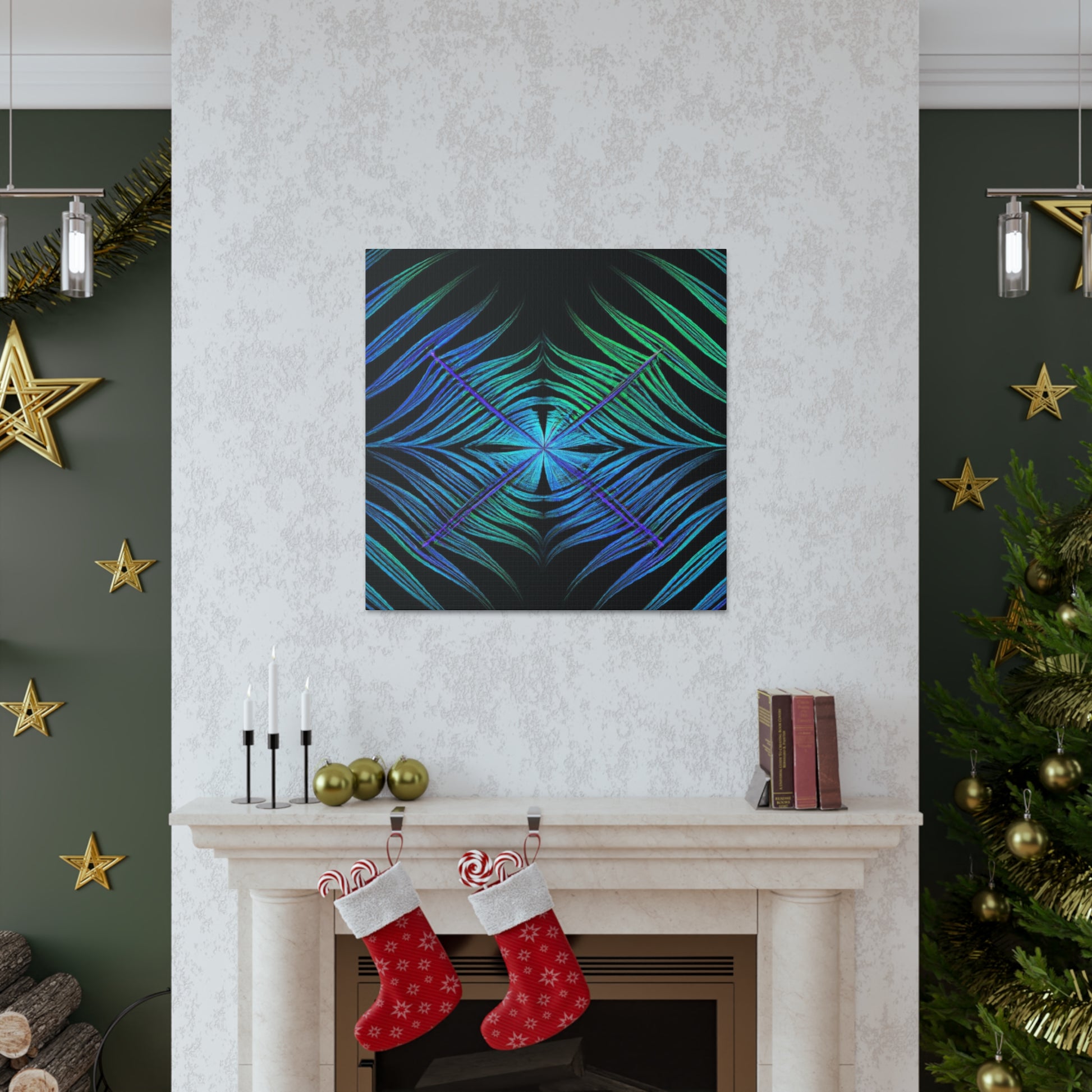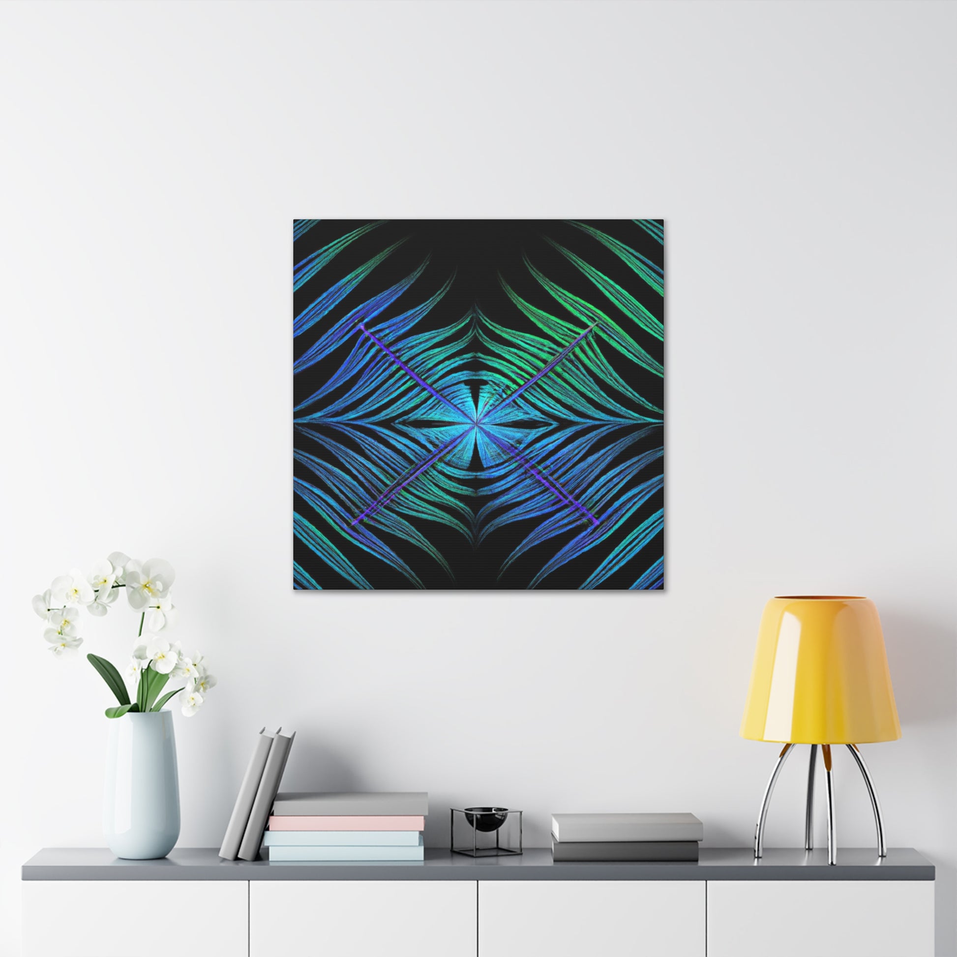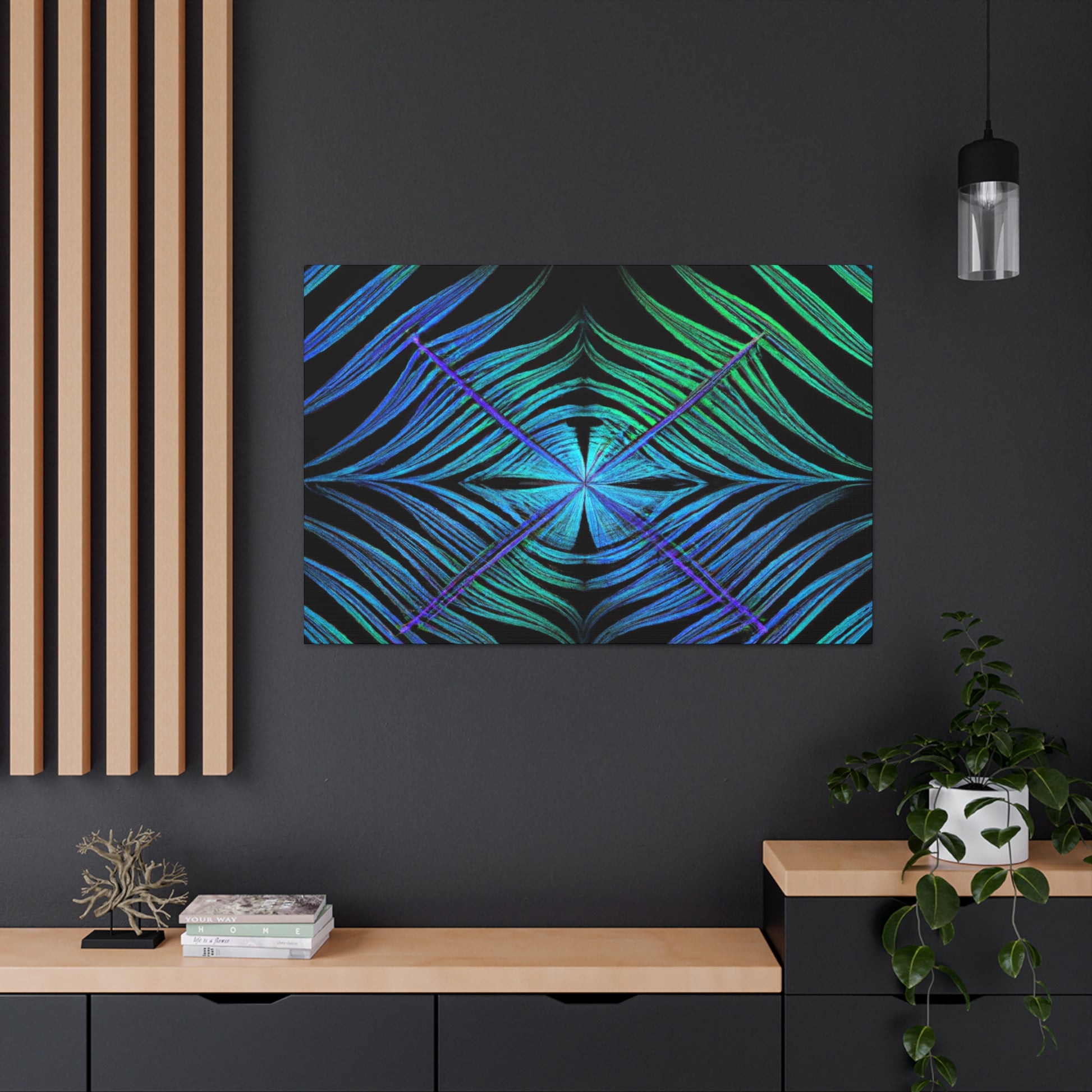Vibrant and modern, this Trippy Geometric Palm Leaves canvas will make a statement in any space. The kaleidoscope of abstract digital art, 3D lines, and fractal create a mesmerizing 3D depth. The bright colors and powerful imagery come alive with this incredible canvas. Let your space come alive with this dynamic piece of art. #abstractart #digitalart #palmleaves #3Dlines #kaleidoscope #fractal #vibrantcolors #modernart #dynamicart #geometricart
