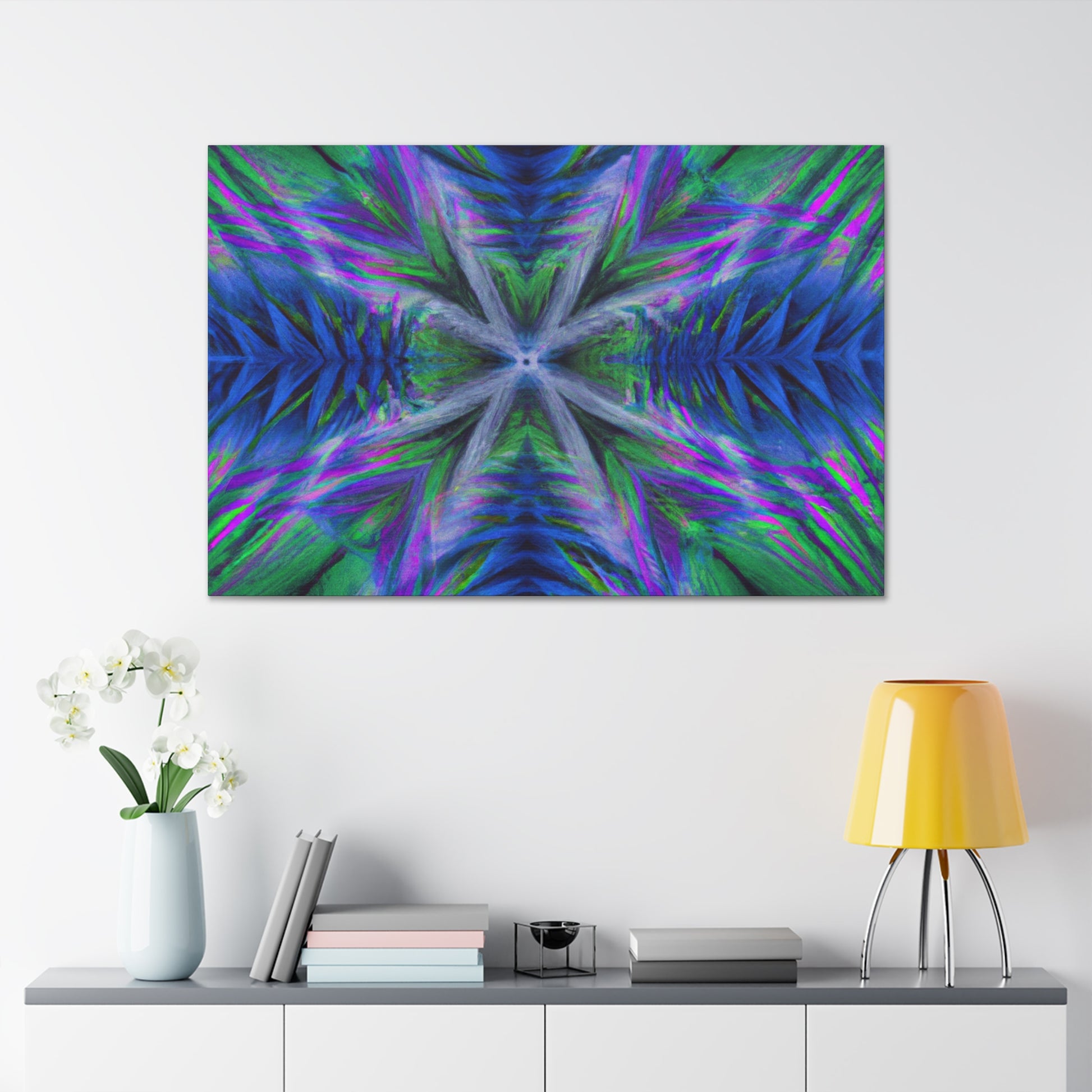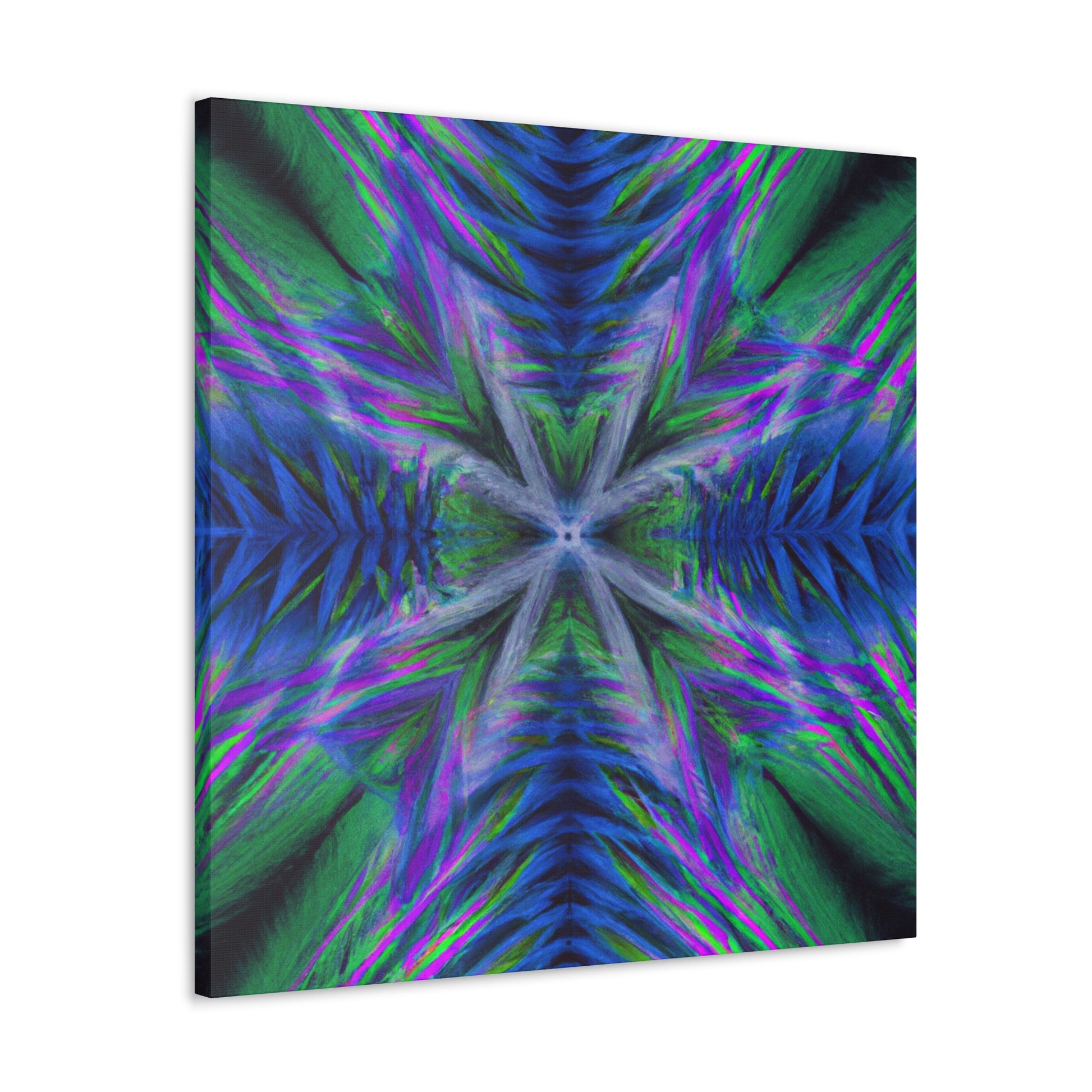 This vivid digital artwork is sure to capture attention with its vibrant colors, 3D lines, and kaleidoscopic abstract aesthetic. Its tangled geometric palm leaves and mesmerizing fractal designs will captivate and bring joy to any space. This printable canvas will fill your home or office with art that ignites the imagination. #abstractart #digitalart #fractal #canvasprint #geometricart #palmleaves #vividcolors #kaleidoscope #3Dlines #trippyart #fancydecor