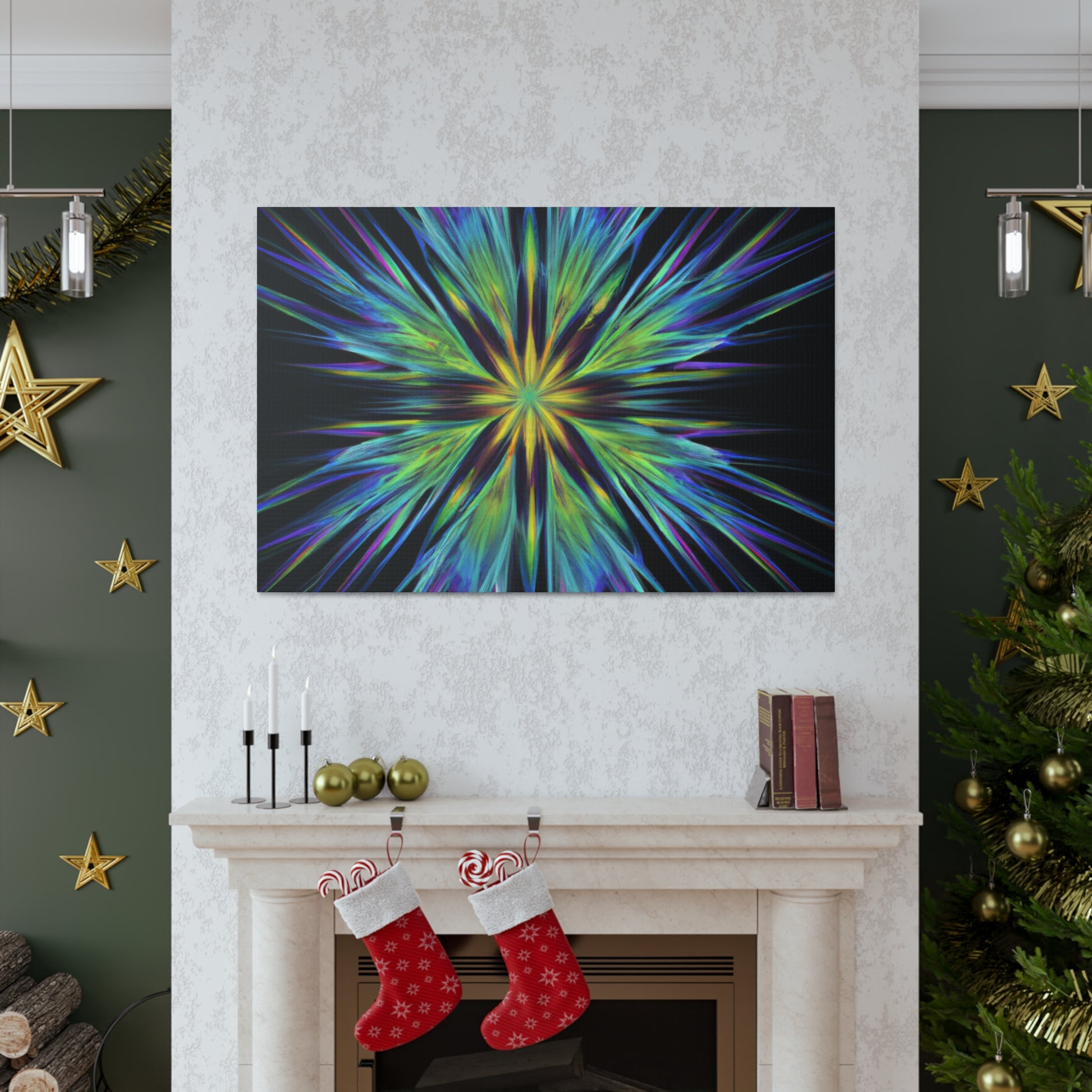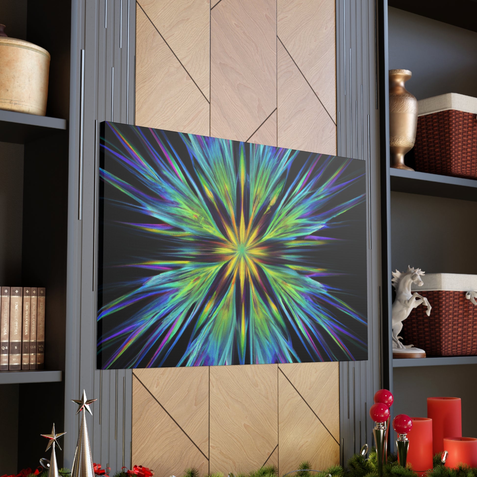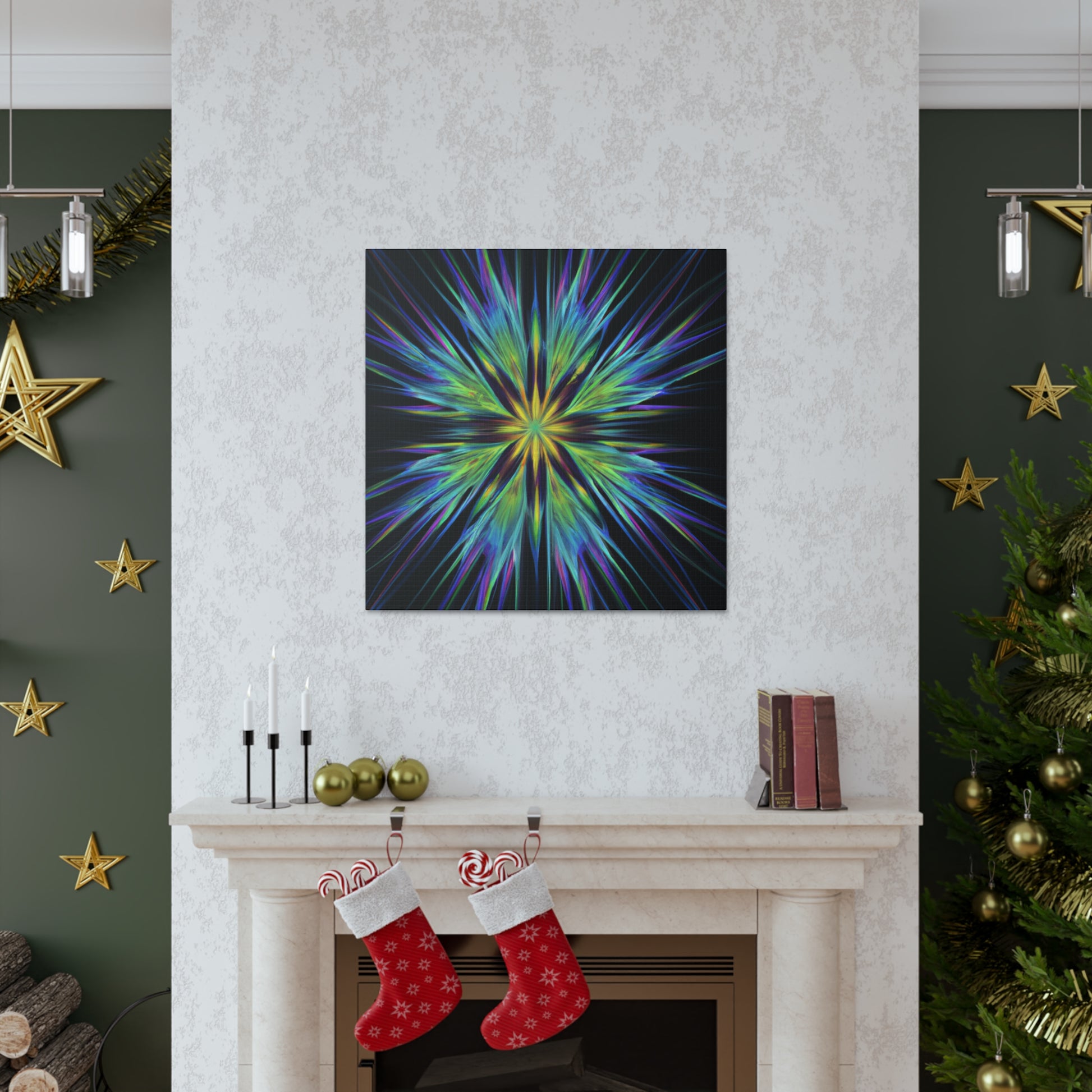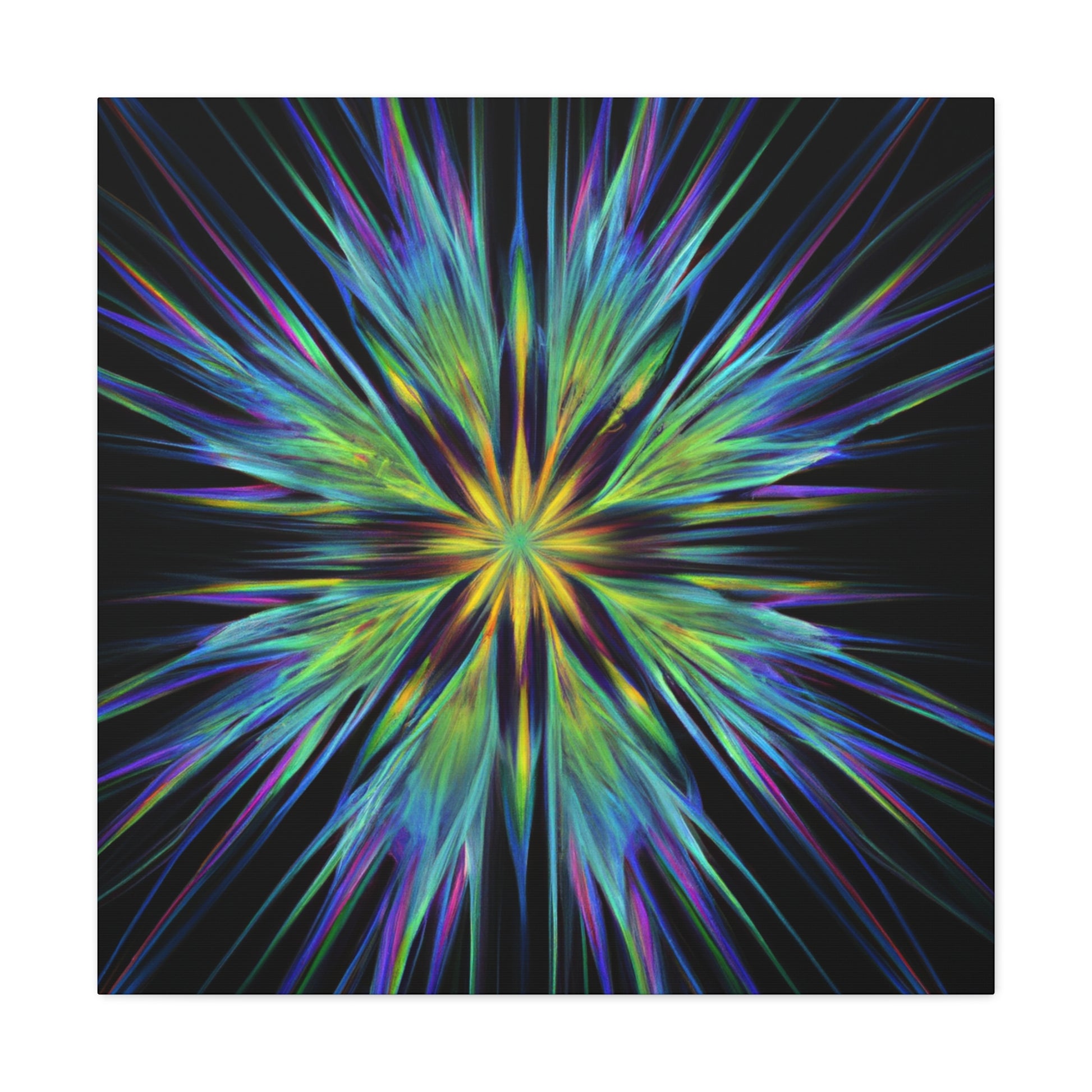 Brighten up your home with this vibrant, one-of-a-kind canvas. Digital art featuring trippy geometric palm leaves, kaleidoscope and 3D lines fills the frame with abstract fractal shapes. This piece will liven up any room with our bold and beautiful colors. #indigodecor #3Dlines #canvasart #fractal #kaleidoscope #trippygeoart #palmleaves #abstractart #digitalart #vibrantcolors #3Dartwork