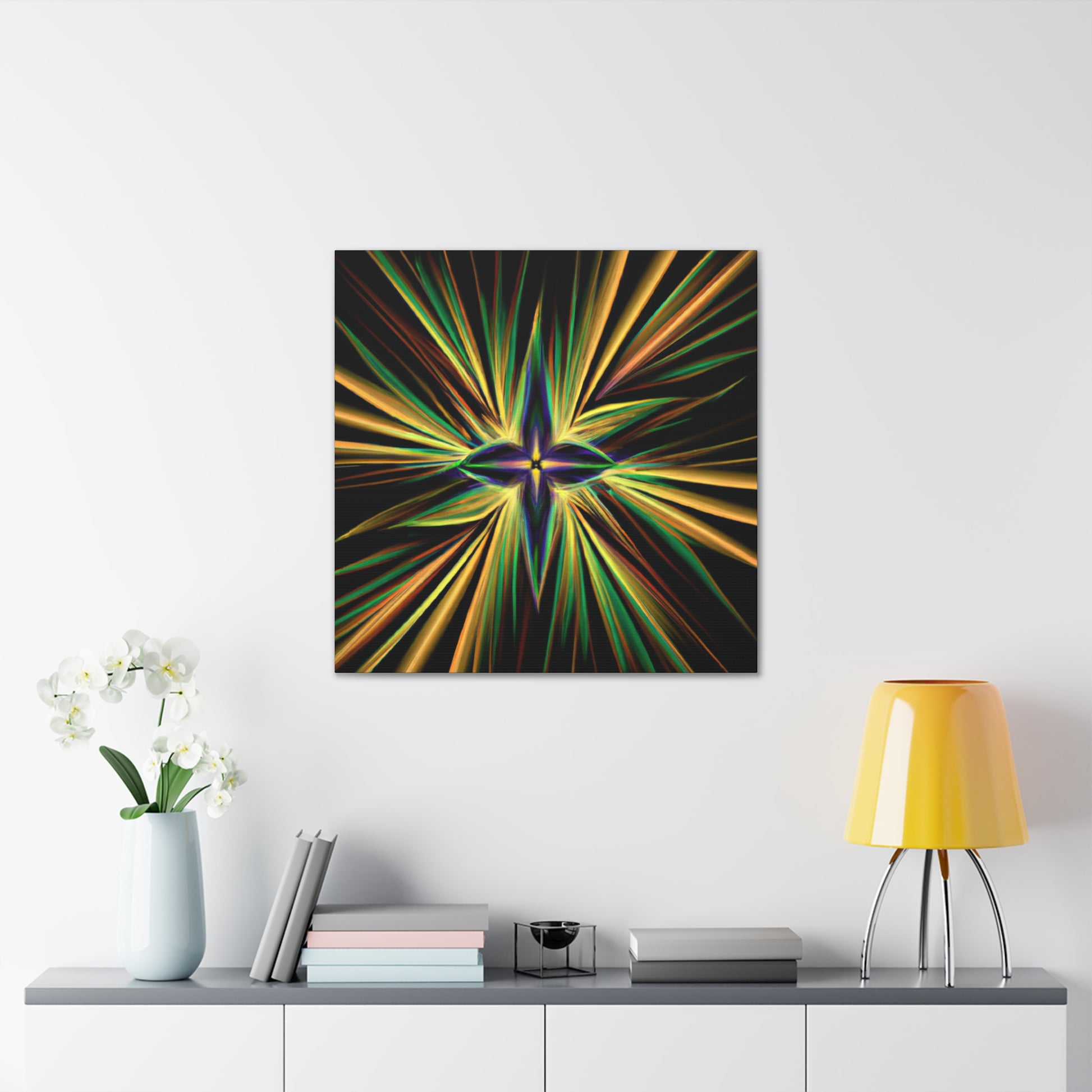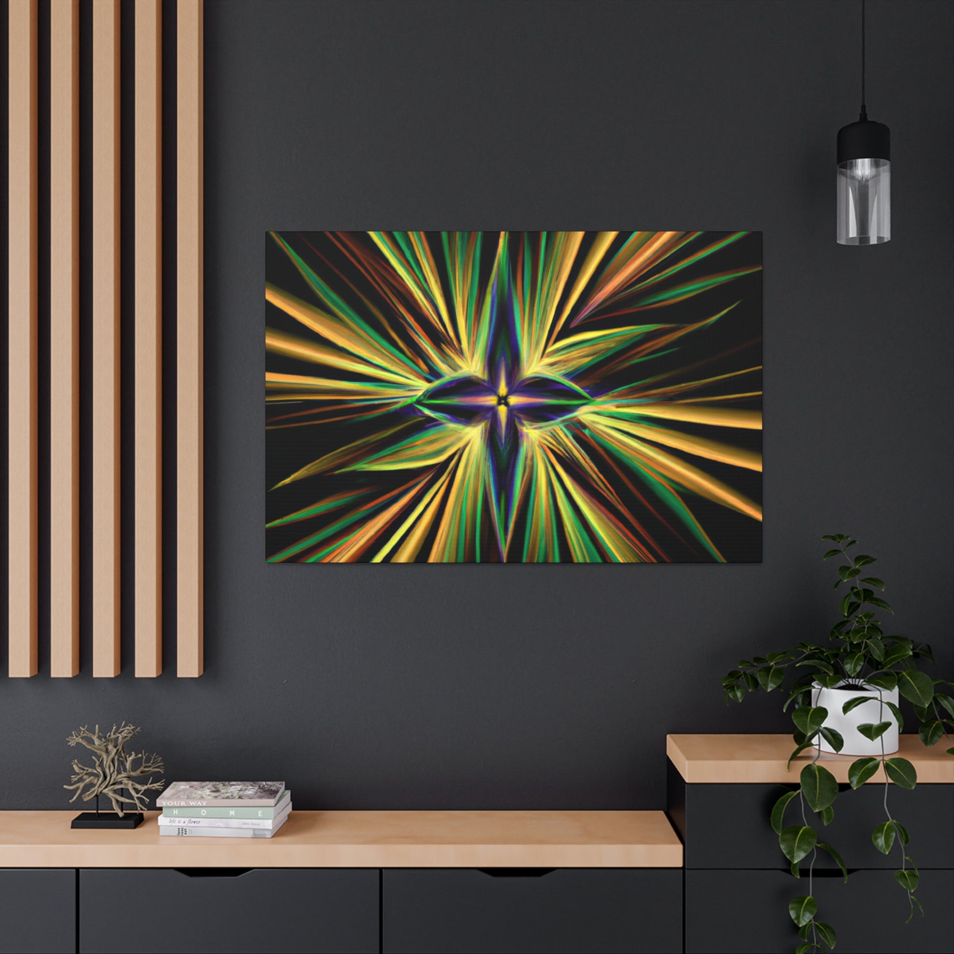 This Trippy Geometric Palm Leaves Kaleidoscope Digital Art Canvas is a vibrant, abstract artwork suitable for any room. Showcasing a 3D effect with fractal and vibrant colors, as well as a unique modern feel, this piece will become the centerpiece of any home. Artistically detailed and stunningly beautiful, it will bring some extra life to any interior. #Abstract #Art #DigitalArt #Geometric #Kaleidoscope #PalmLeaves #3DLines #Fractal #VibrantColors #CanvasArt #InteriorDesign