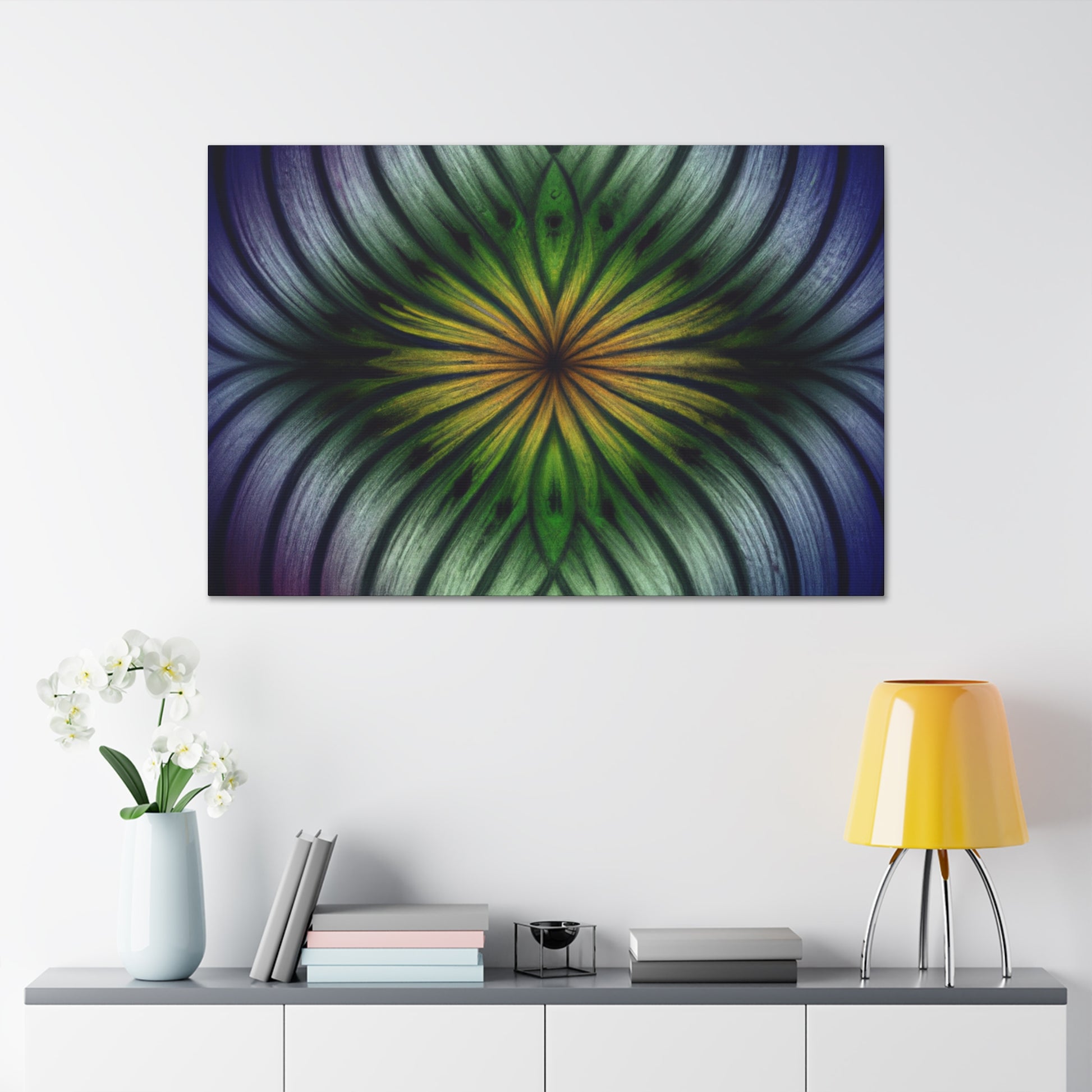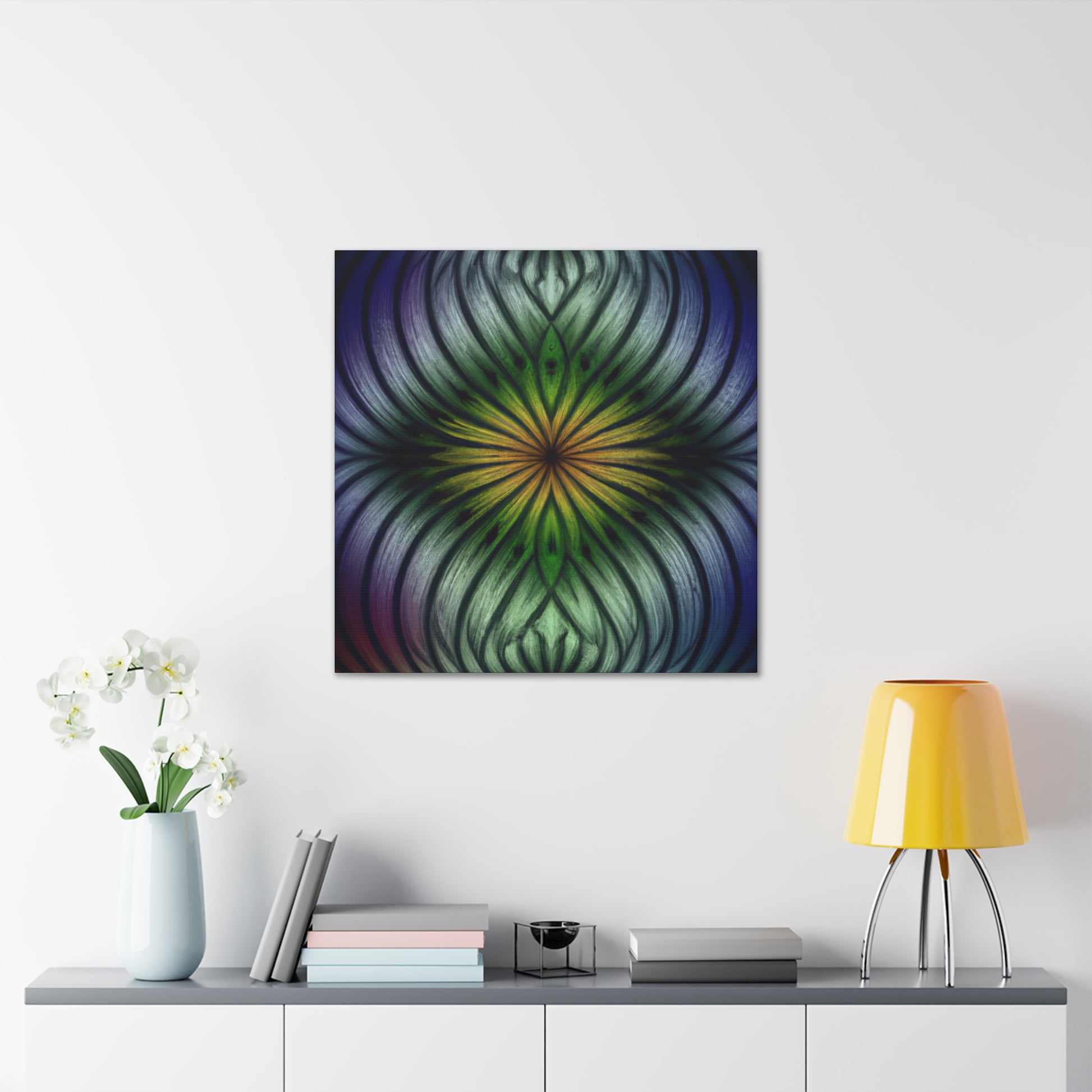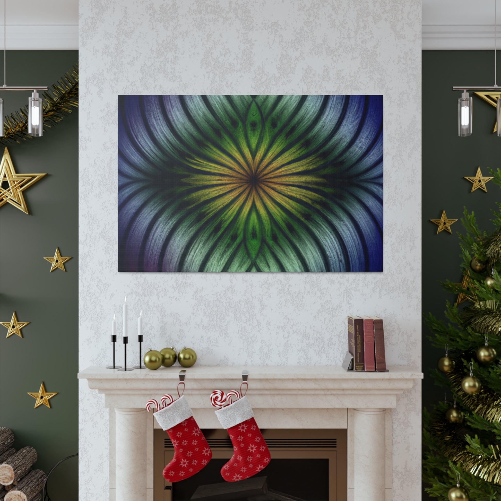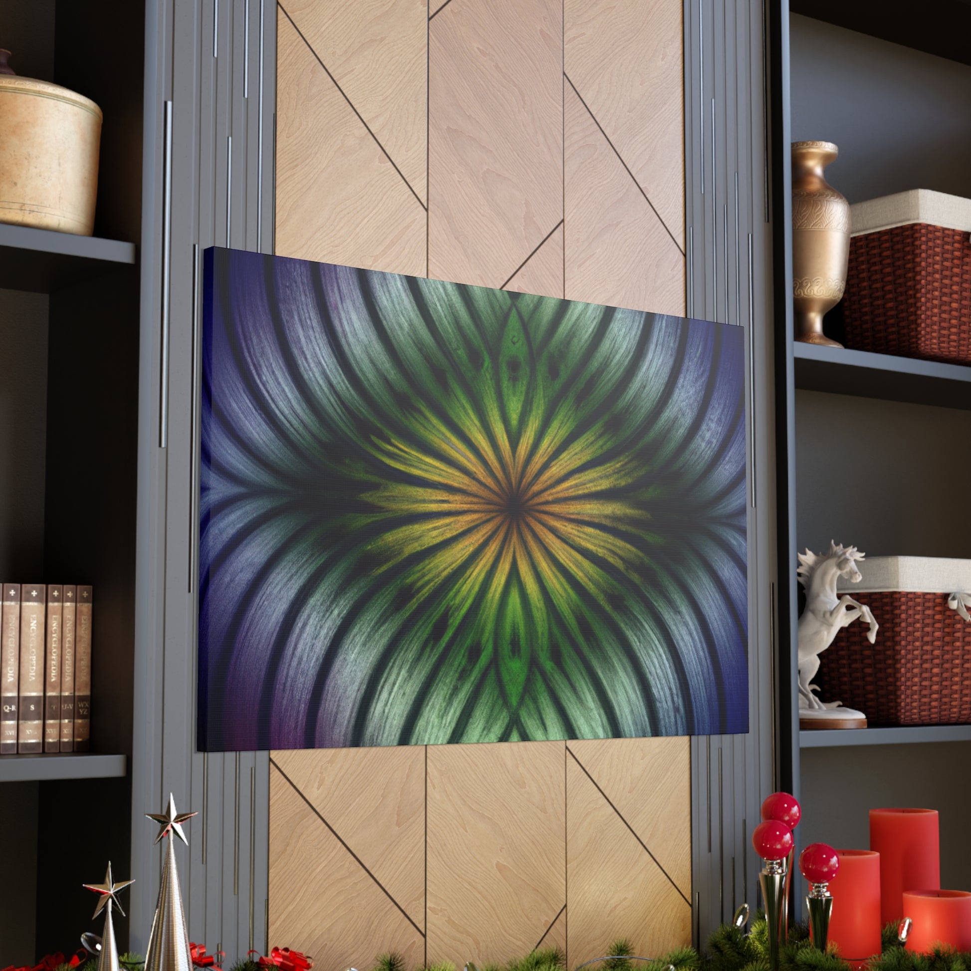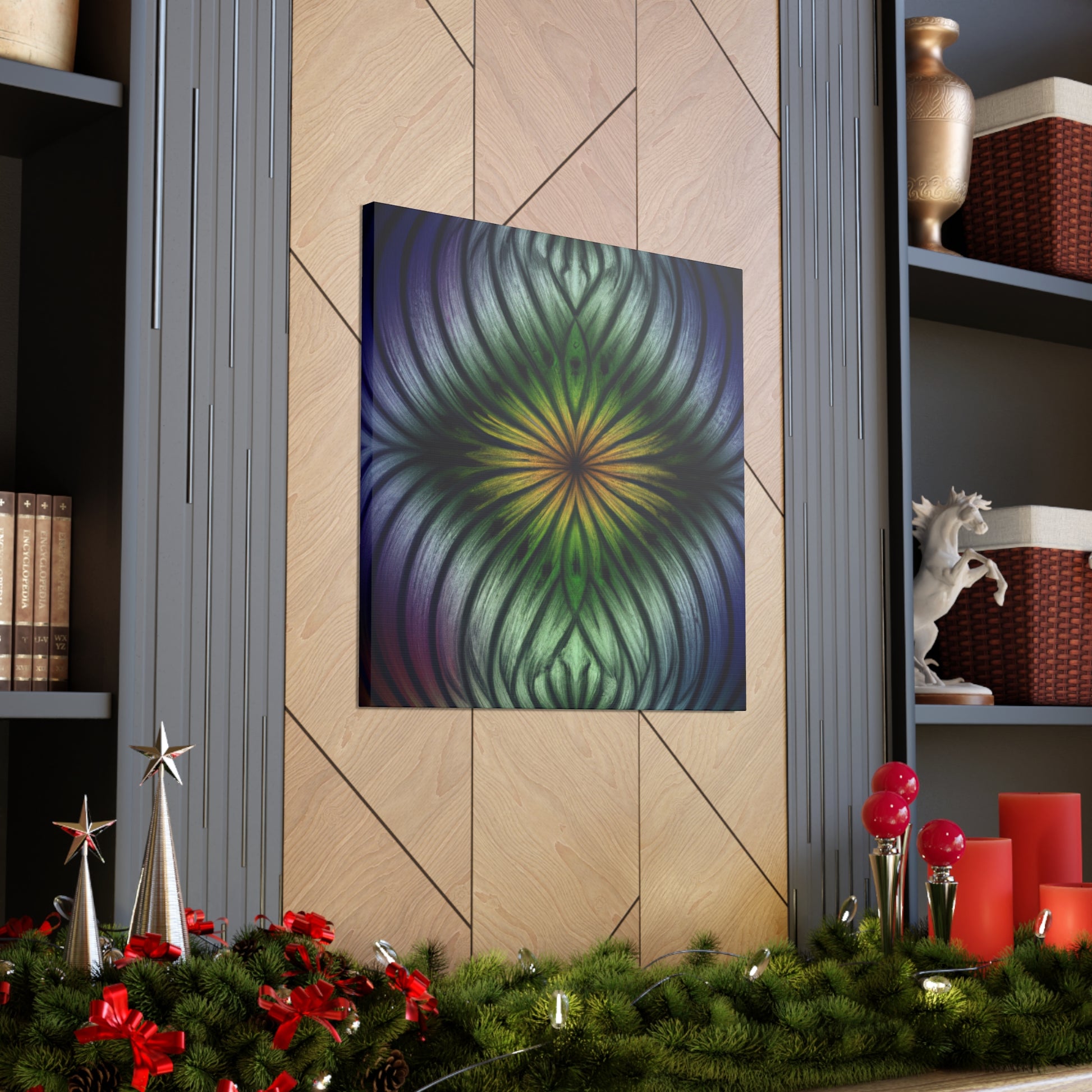 This canvas is filled with captivating abstract geometric shapes, palm leaves, and fracal patterns. It has a kaleidoscope of vibrant colors, dynamic 3D lines, and digital art. Hang it on your wall for a trippy and mesmerizing addition to your interior. Hashtags: #Kaleidoscope #Geometric #PalmLeaves #AbstractArt #DigitalArt #VibrantColors #3DLines #FractalArt #InteriorDesign #WallDecor #CanvasArt