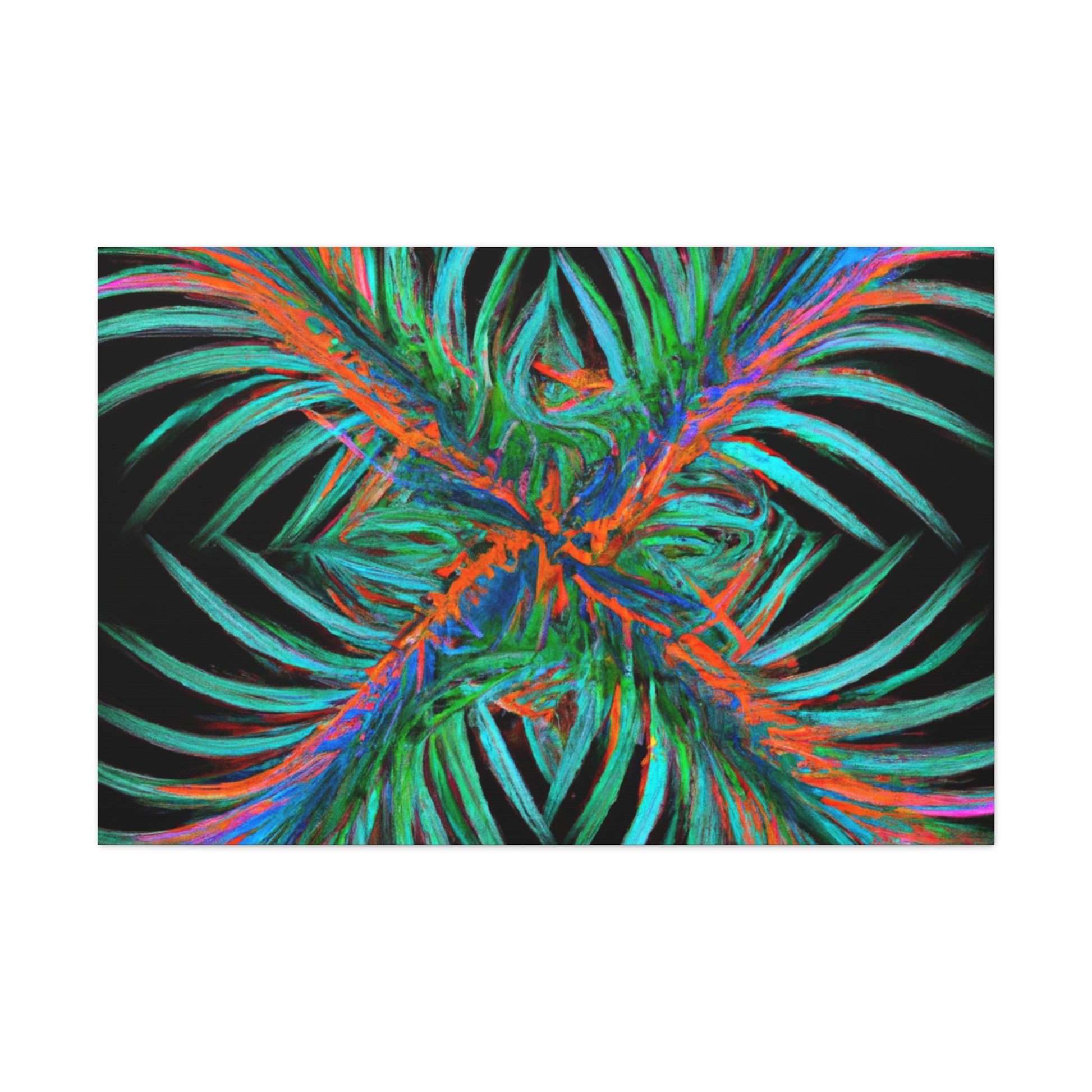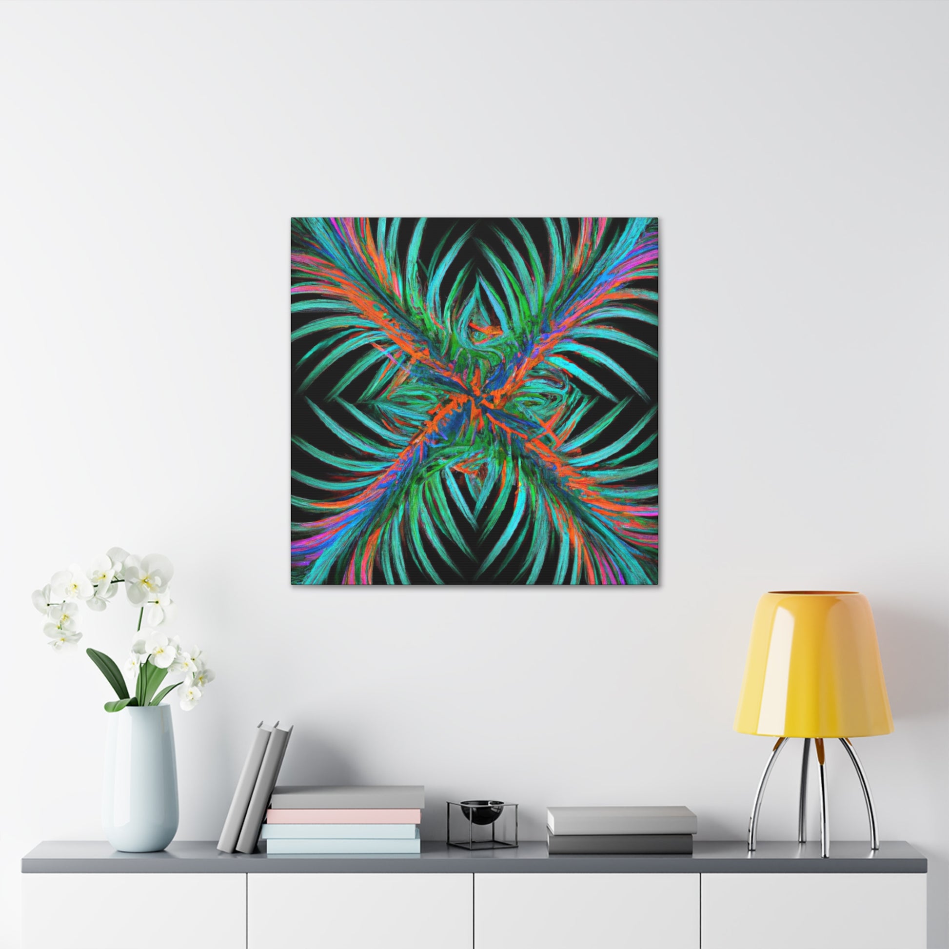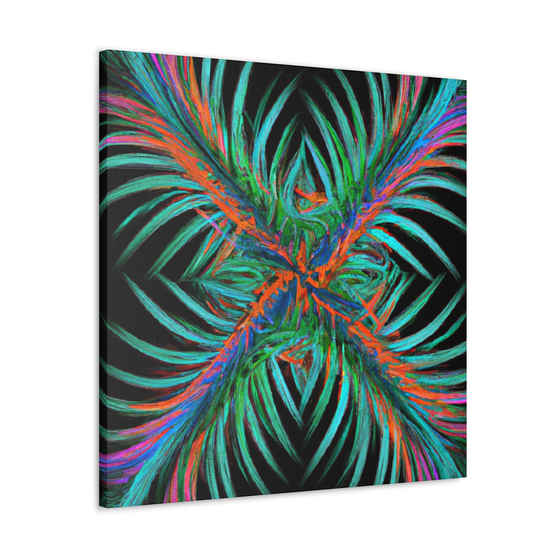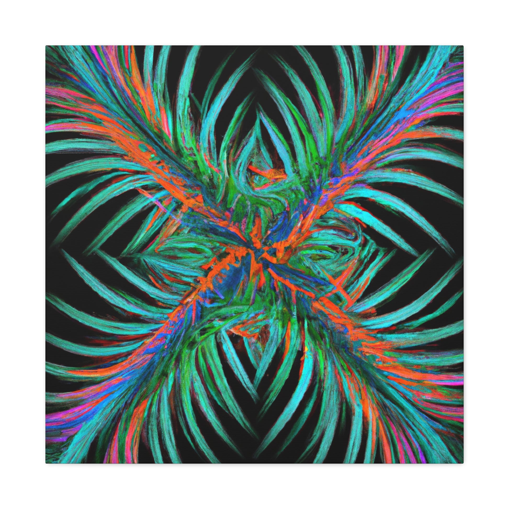 This vibrant abstract painting on canvas will tantalize your senses with its kaleidoscope of 3D lines, bright colors and trippy geometric palm leaves. The digital art and fractal design will light up any room with its warm energy and modern flair. Create a lasting impression by hanging this unique statement piece. #digitalart #abstractpainting #vibrantcolors #canvasart #3dlines #kaleidoscope #fractalart #trippygeometric #palmleaves #abstract #modernart