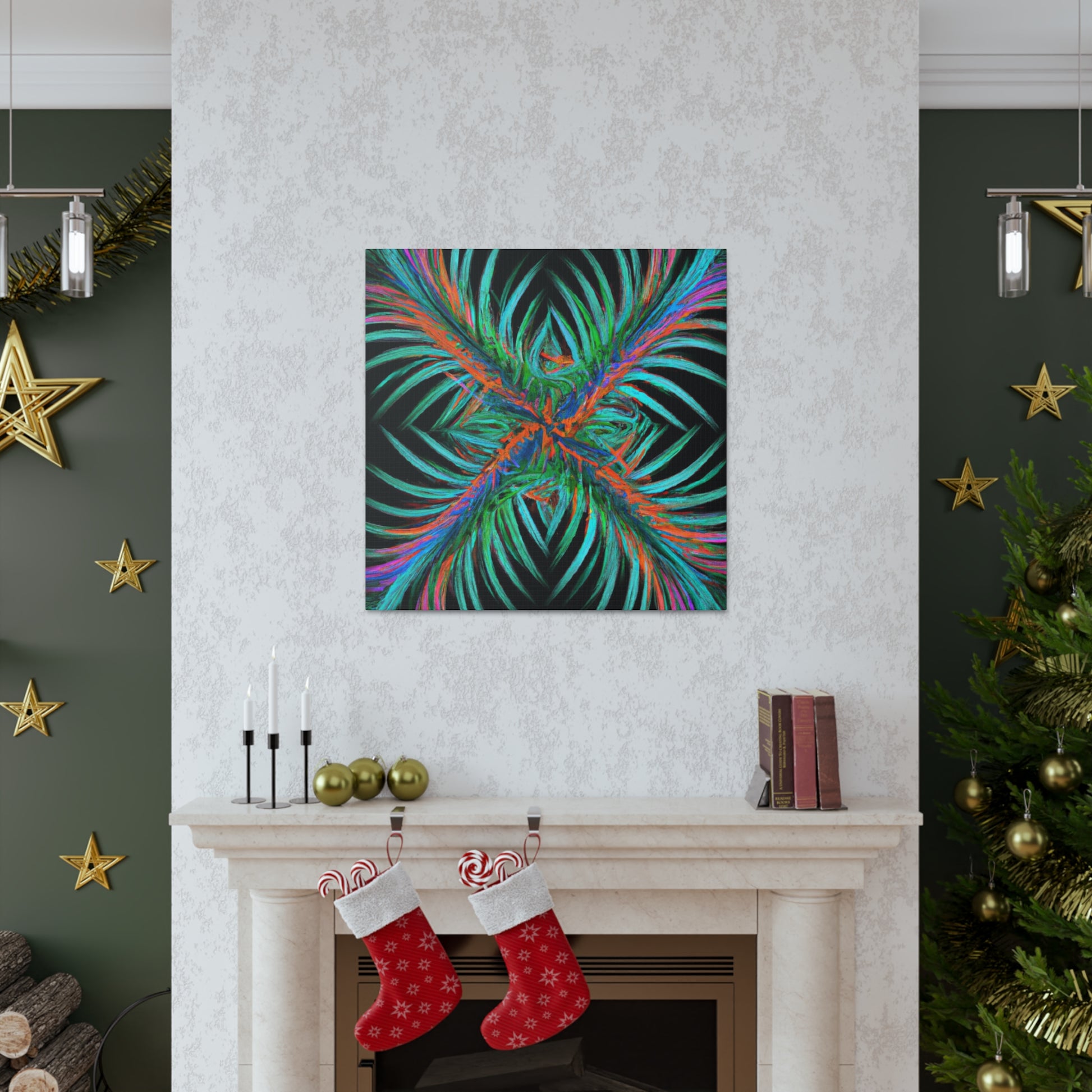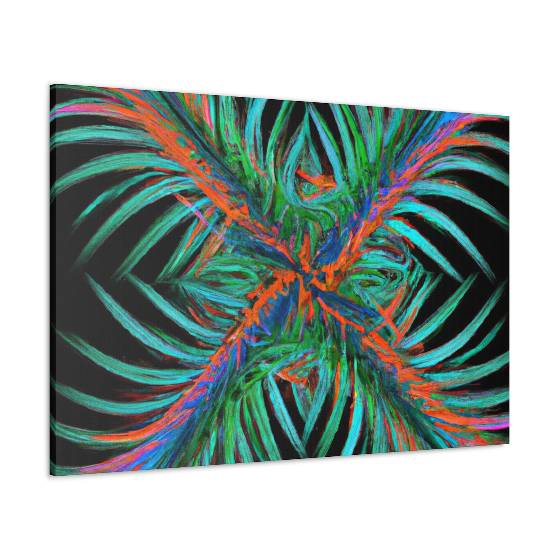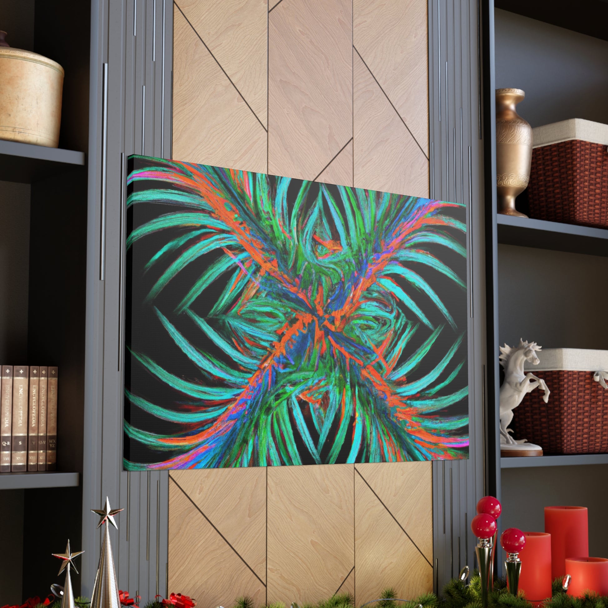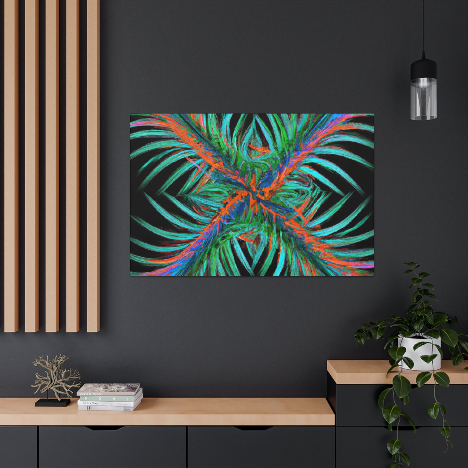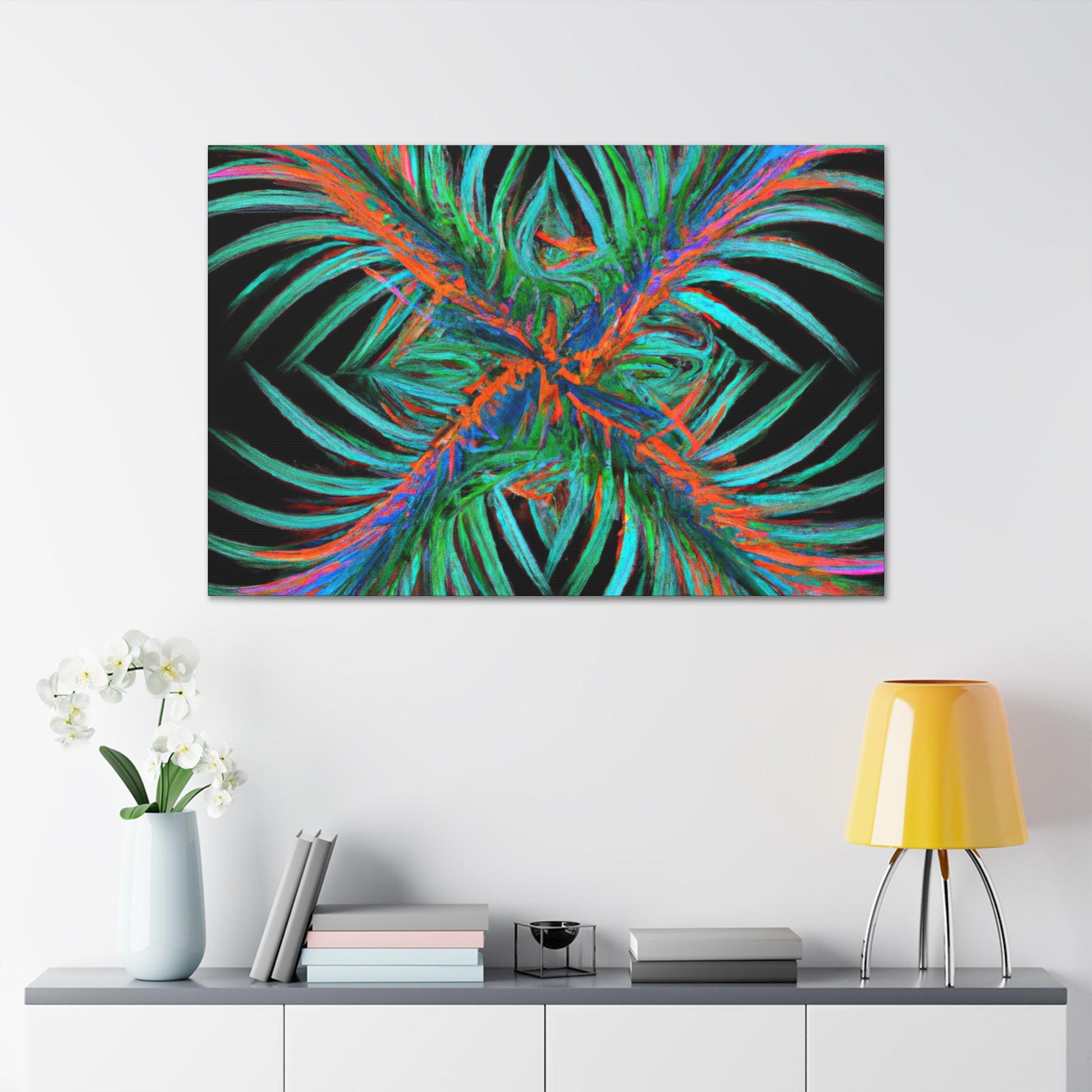 This vibrant abstract painting on canvas will tantalize your senses with its kaleidoscope of 3D lines, bright colors and trippy geometric palm leaves. The digital art and fractal design will light up any room with its warm energy and modern flair. Create a lasting impression by hanging this unique statement piece. #digitalart #abstractpainting #vibrantcolors #canvasart #3dlines #kaleidoscope #fractalart #trippygeometric #palmleaves #abstract #modernart