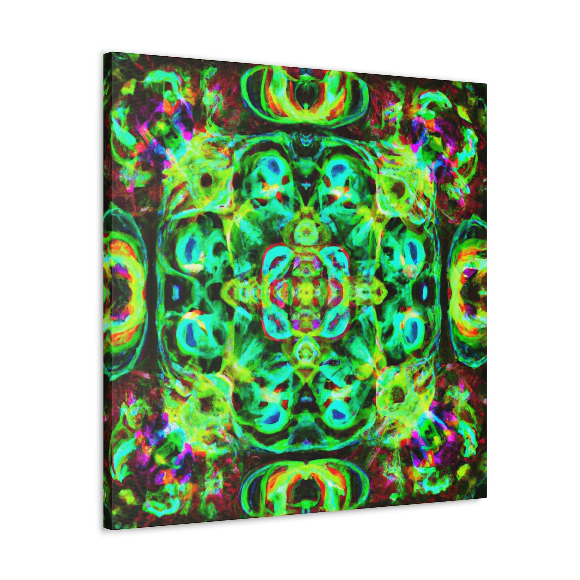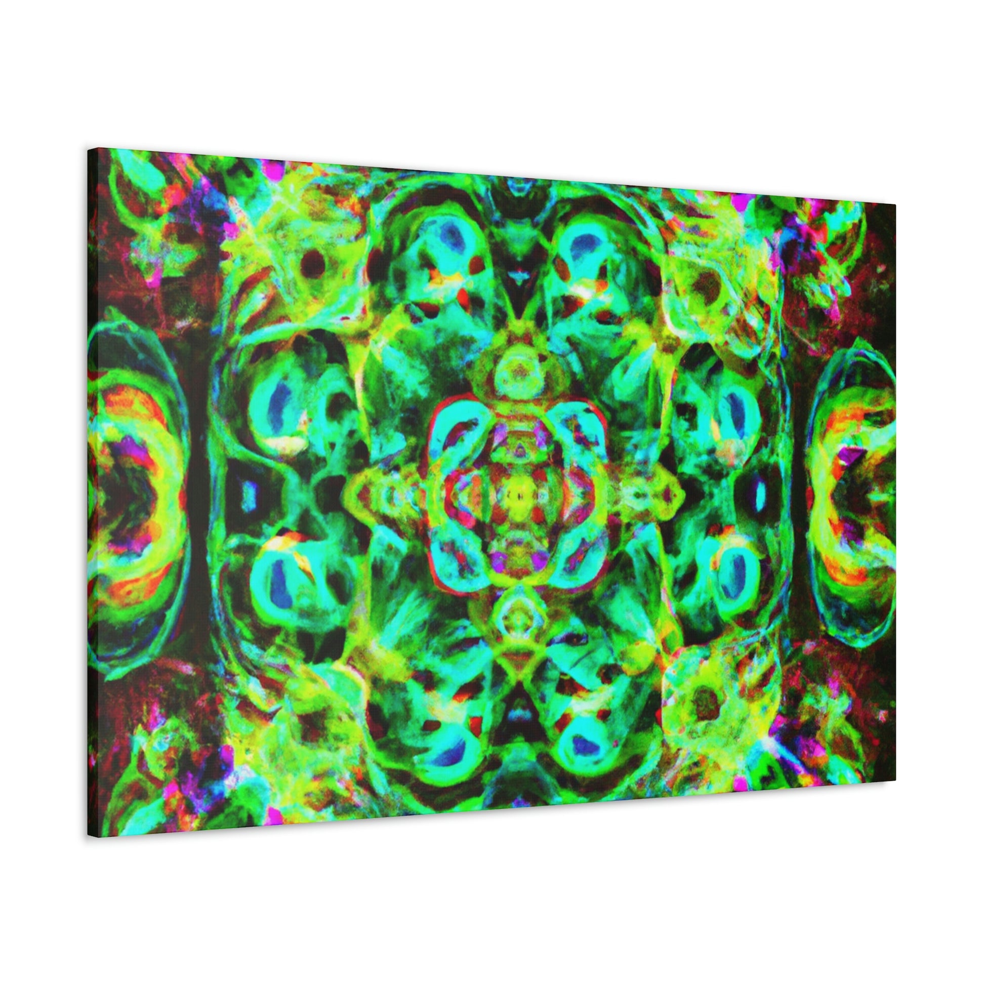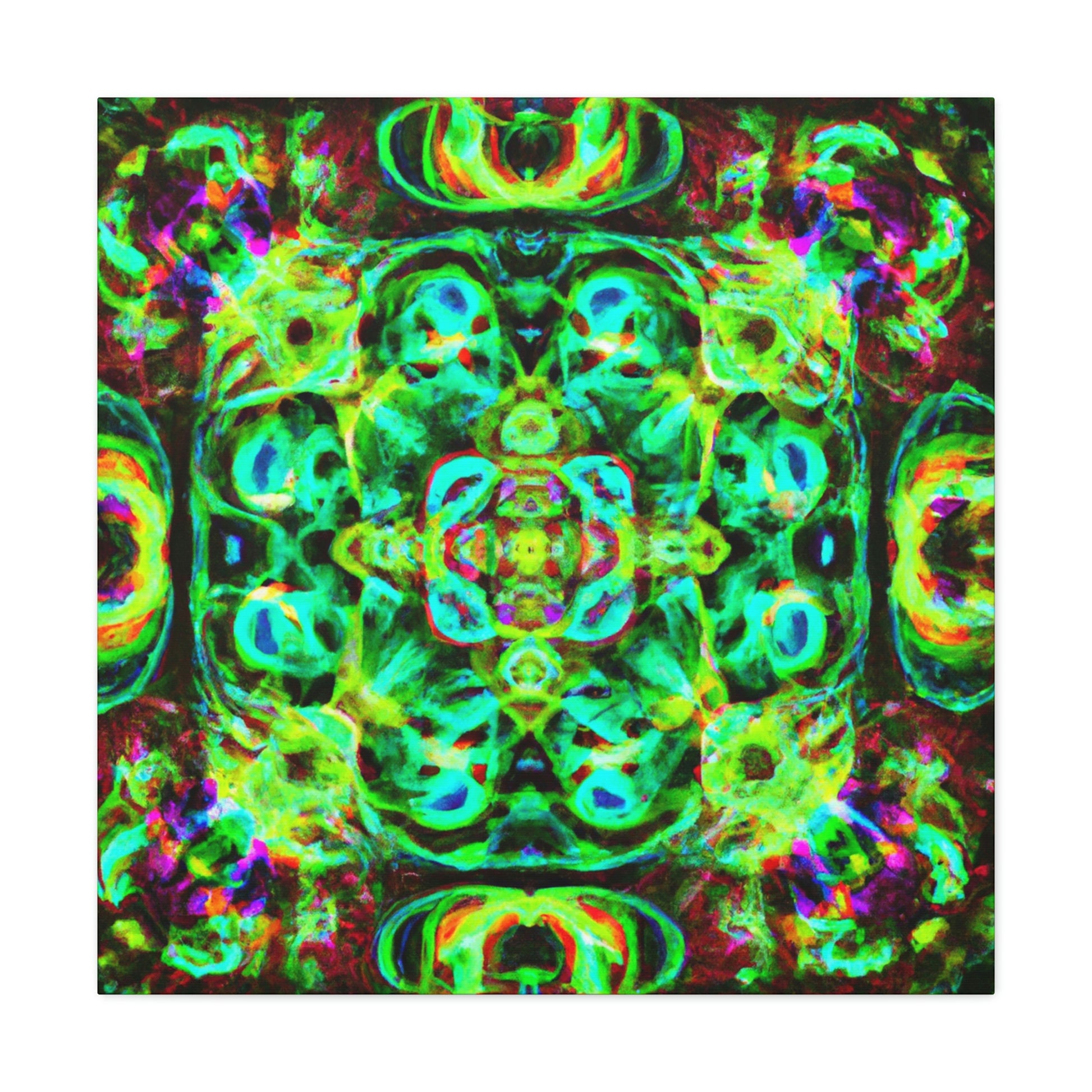 This digital art will have you tripping! This vibrant canvas features a colorful array of abstract and psychedelic mushrooms in a kaleidoscope-like swirl, perfect for bringing life and color to any room. It's a beautiful blend of '70s nostalgia and futuristic cyperpunk that will be sure to add an eye-catching focal point and conversation star! #digitalart #canvasart #kaleidoscope #cyperpunk #cyber #psychadelic #trippy #abstractart #neon #vibrant #artworkandstyle