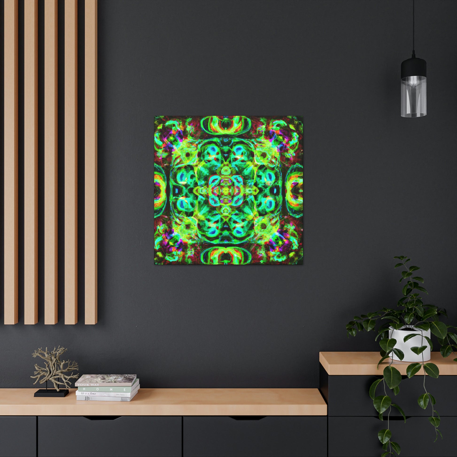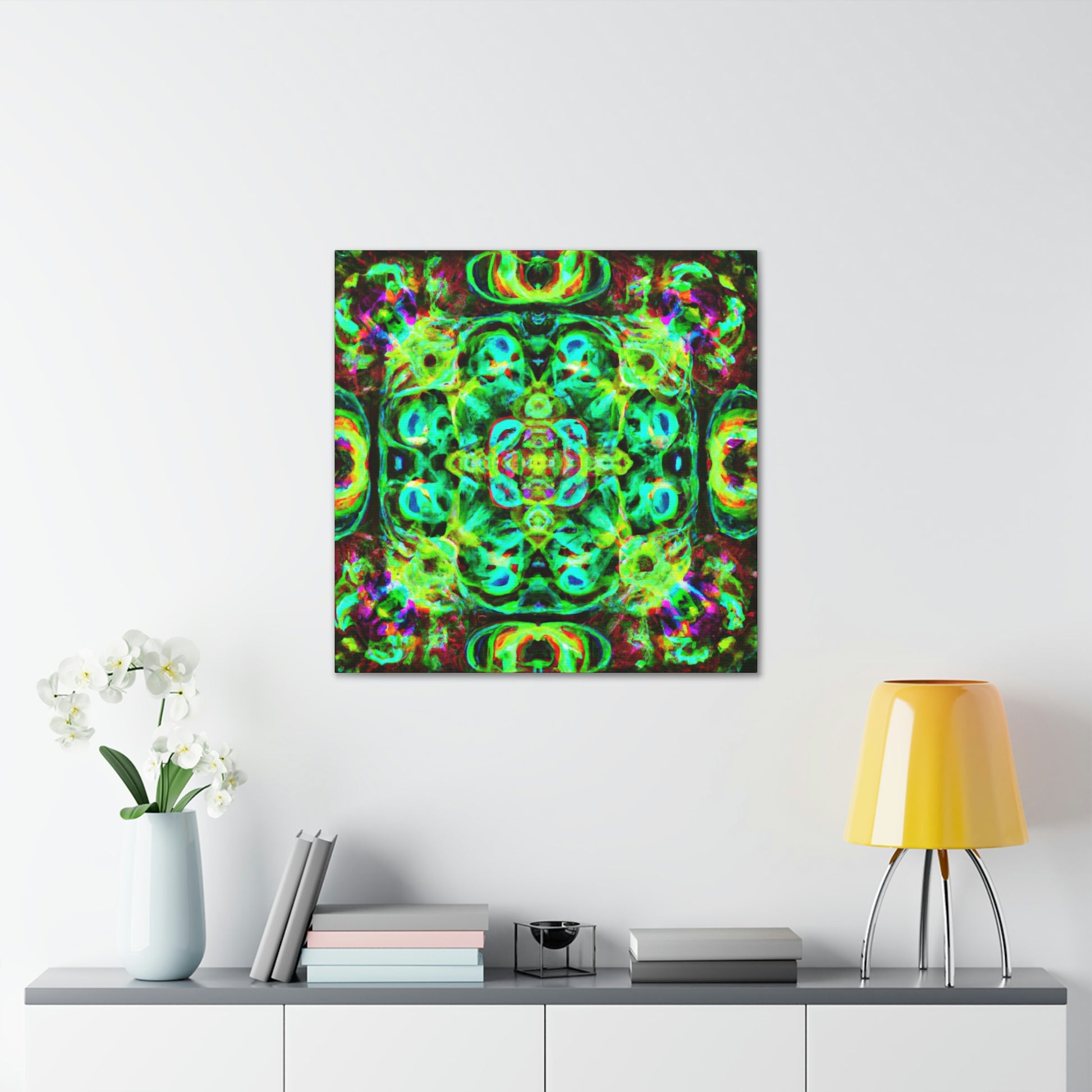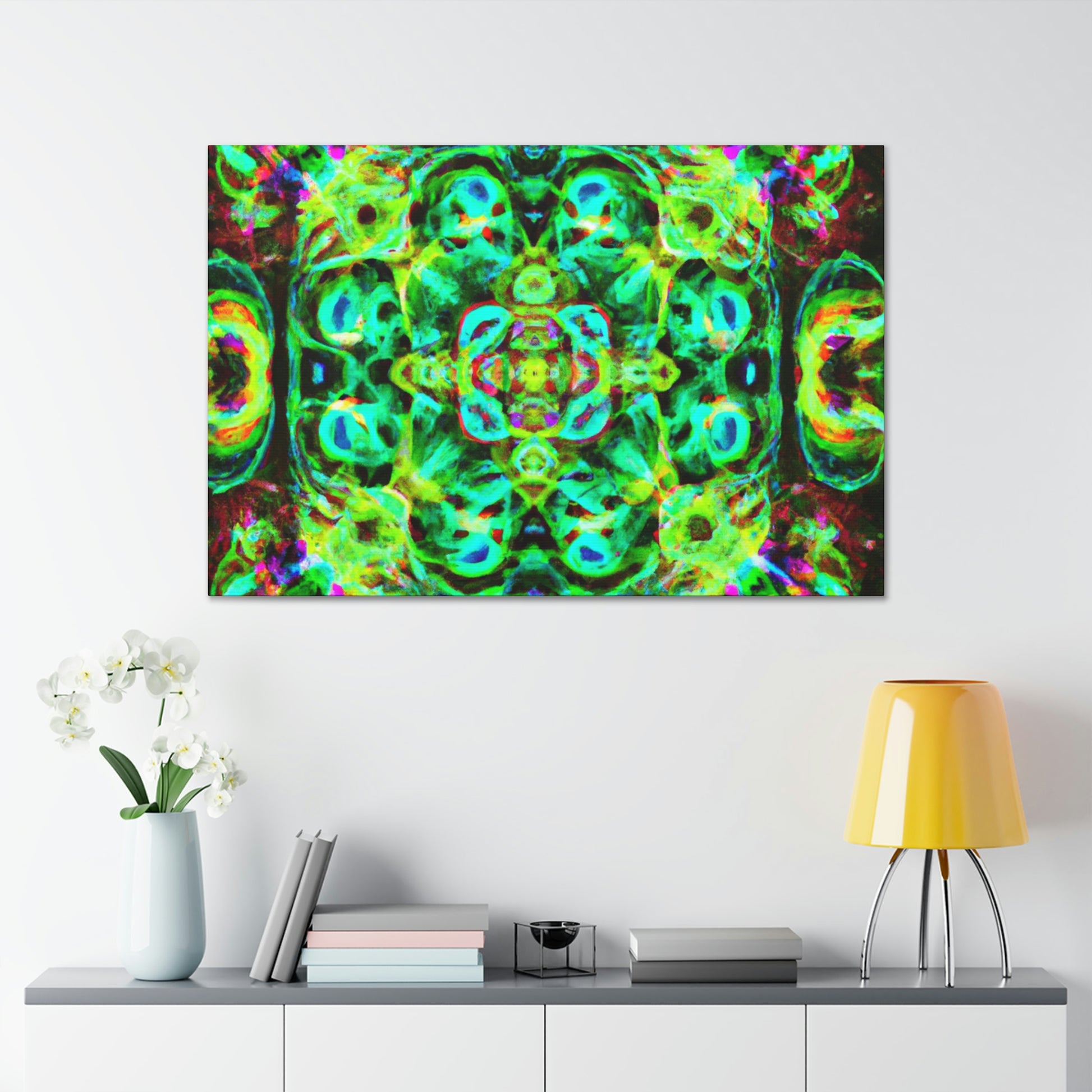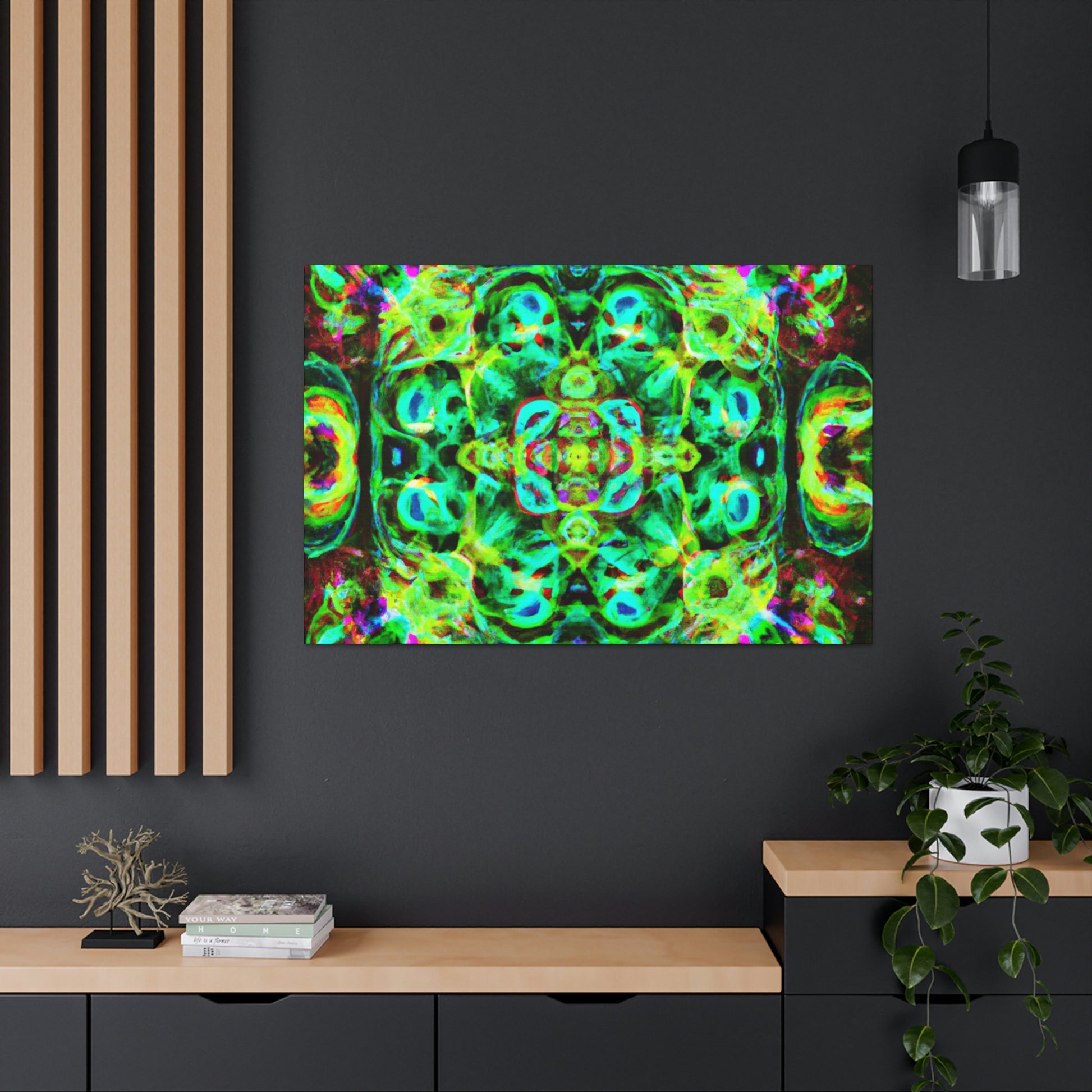 This digital art will have you tripping! This vibrant canvas features a colorful array of abstract and psychedelic mushrooms in a kaleidoscope-like swirl, perfect for bringing life and color to any room. It's a beautiful blend of '70s nostalgia and futuristic cyperpunk that will be sure to add an eye-catching focal point and conversation star! #digitalart #canvasart #kaleidoscope #cyperpunk #cyber #psychadelic #trippy #abstractart #neon #vibrant #artworkandstyle