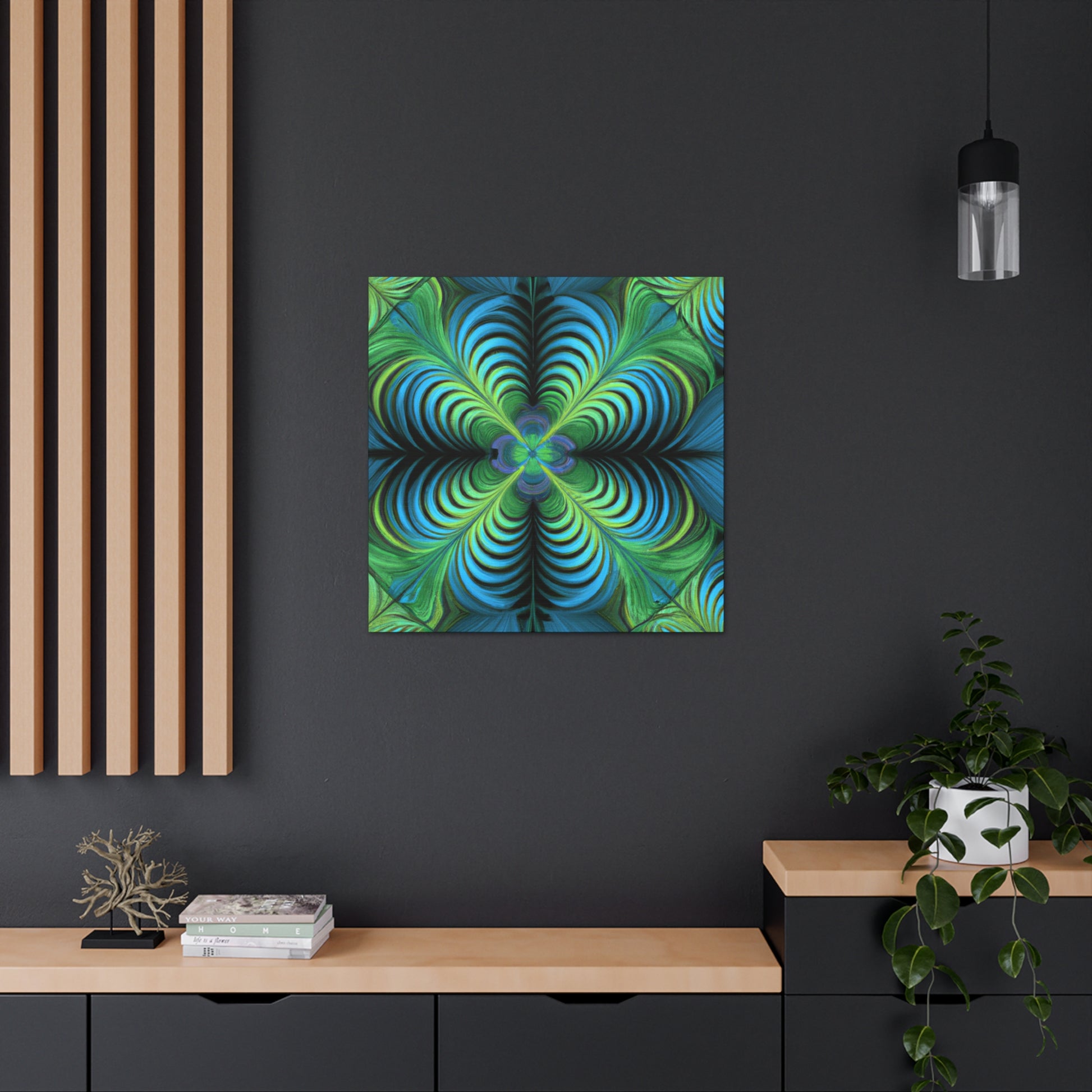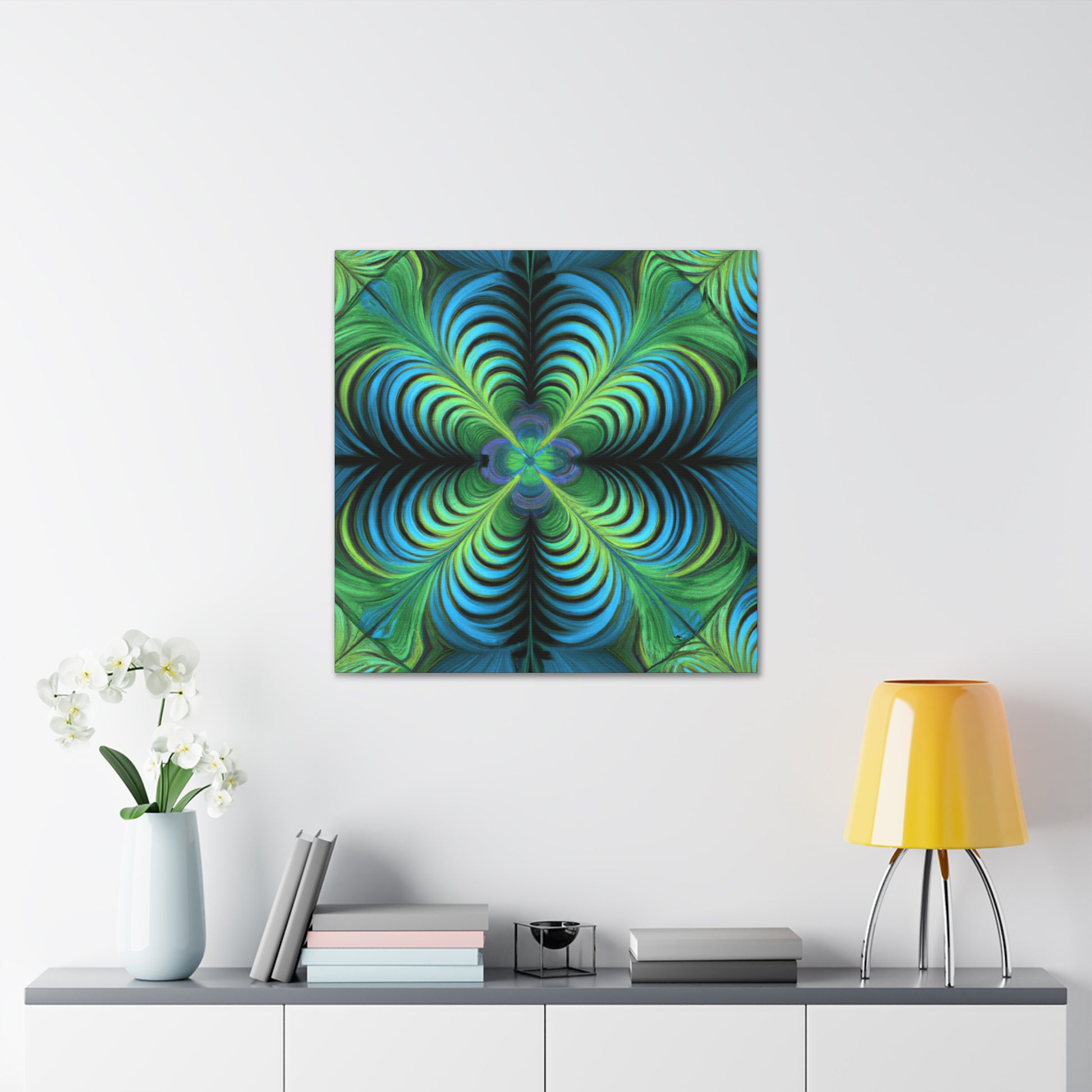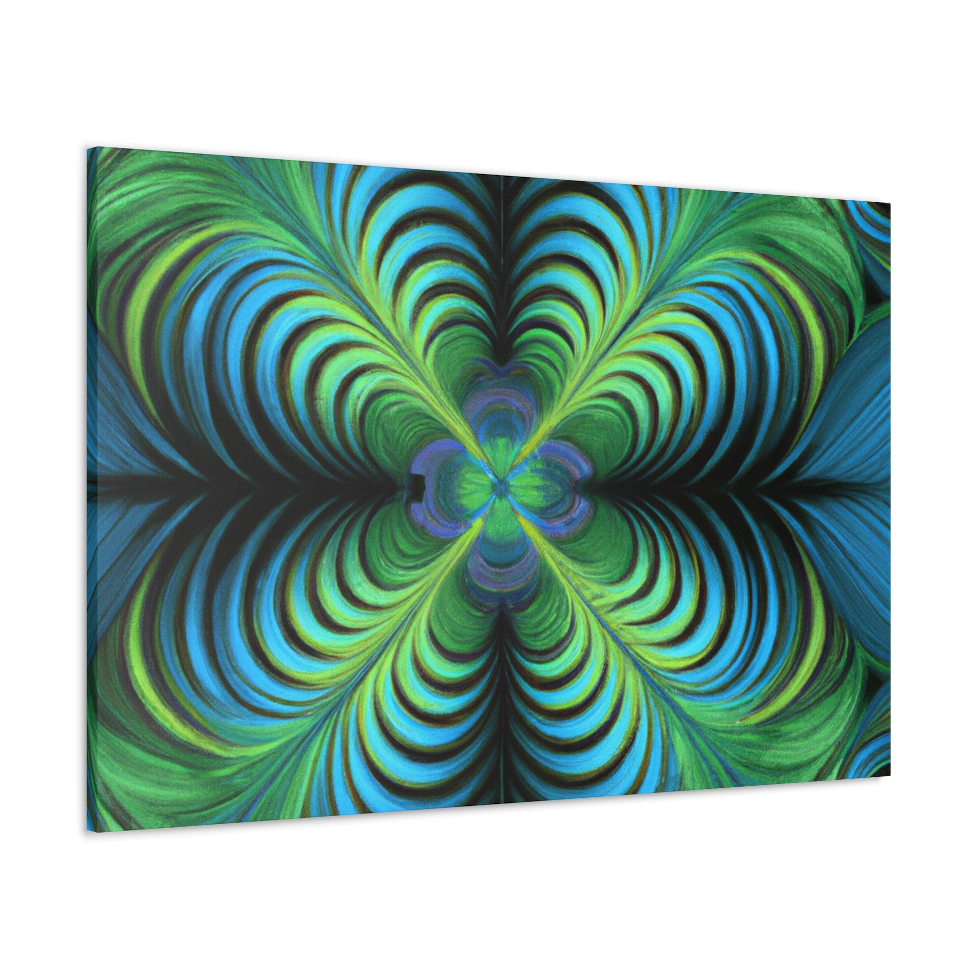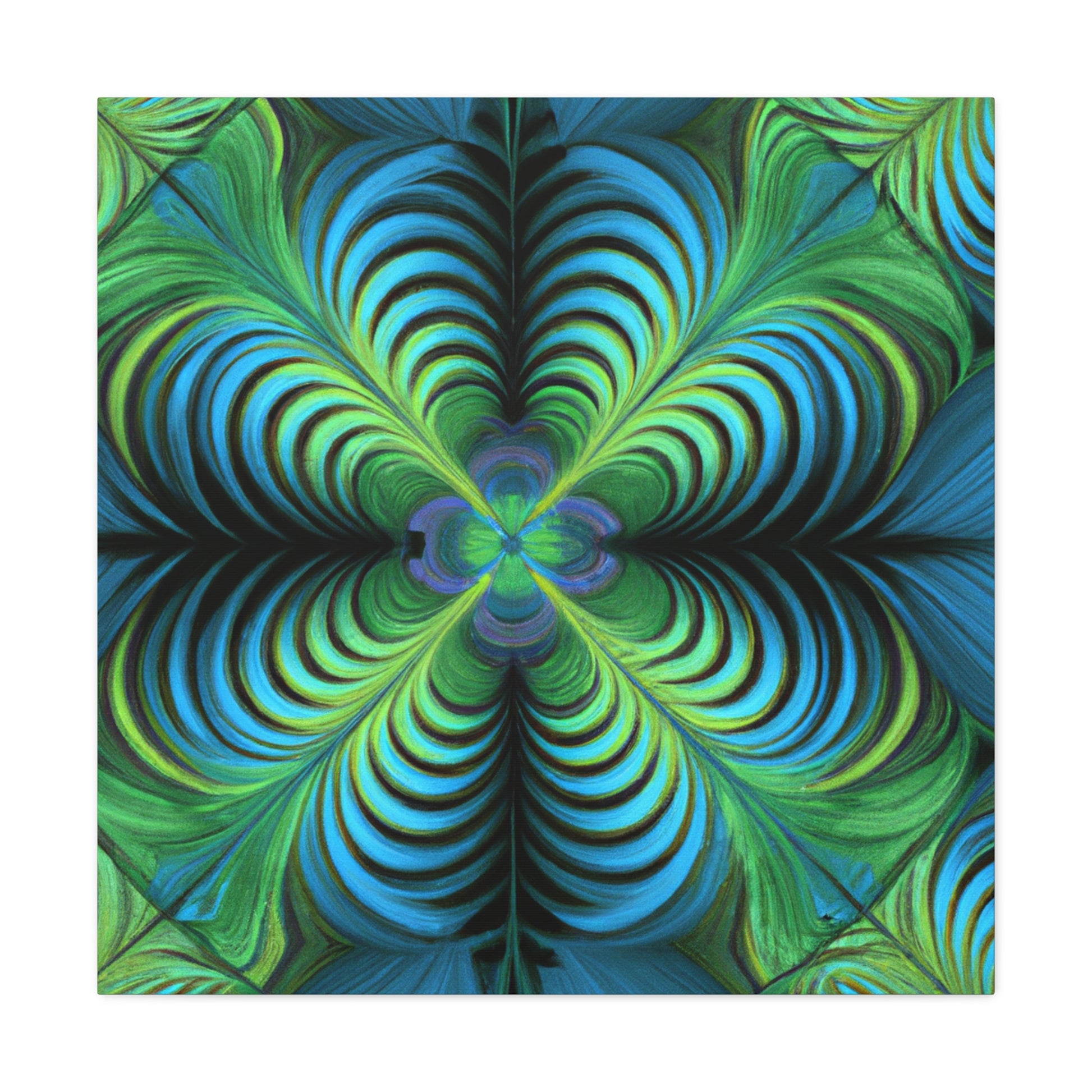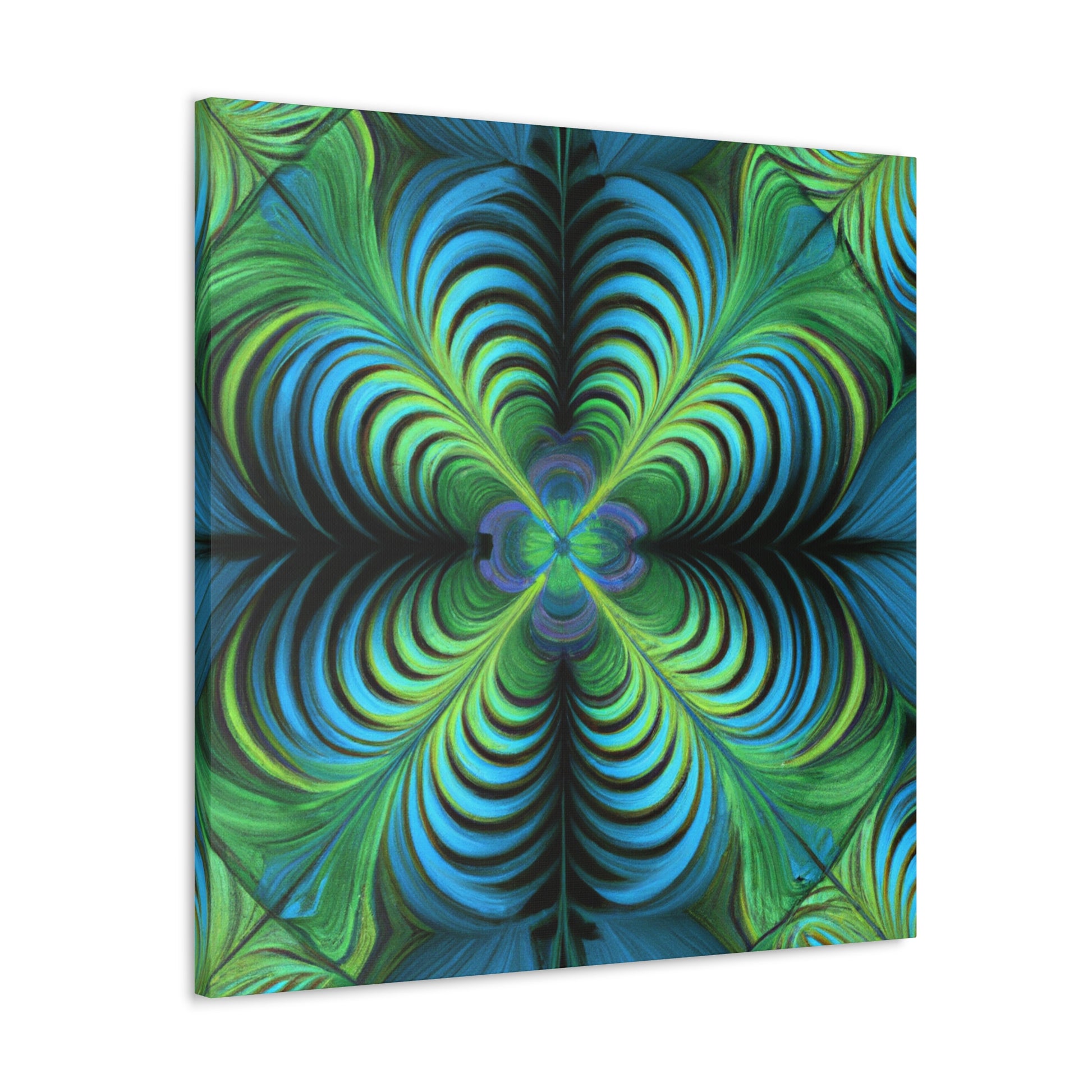 This one-of-a-kind canvas blends trippy geometric shapes, kaleidoscope visuals, abstract images, vibrant colors, 3D lines, and intricate fractals to create an eye-catching work of art. Hanging this canvas in your living space is sure to make an impact! #trippyart #geometricart #abstractart #digitalart #kaleidoscope #vibrantcolors #3Dlines #fractals #canvasart #canvaswallart #artwork