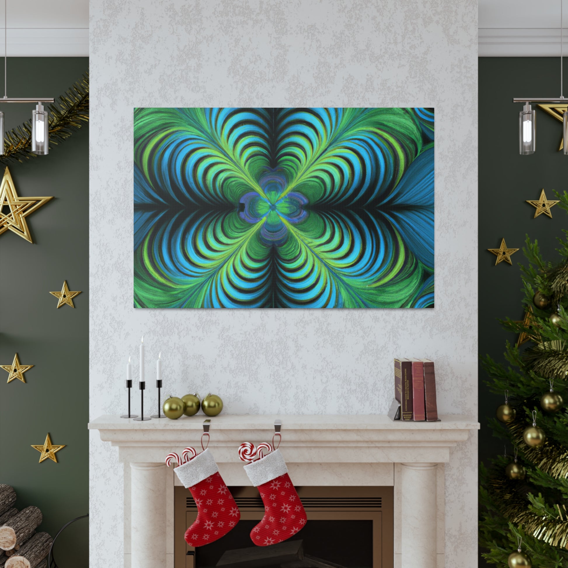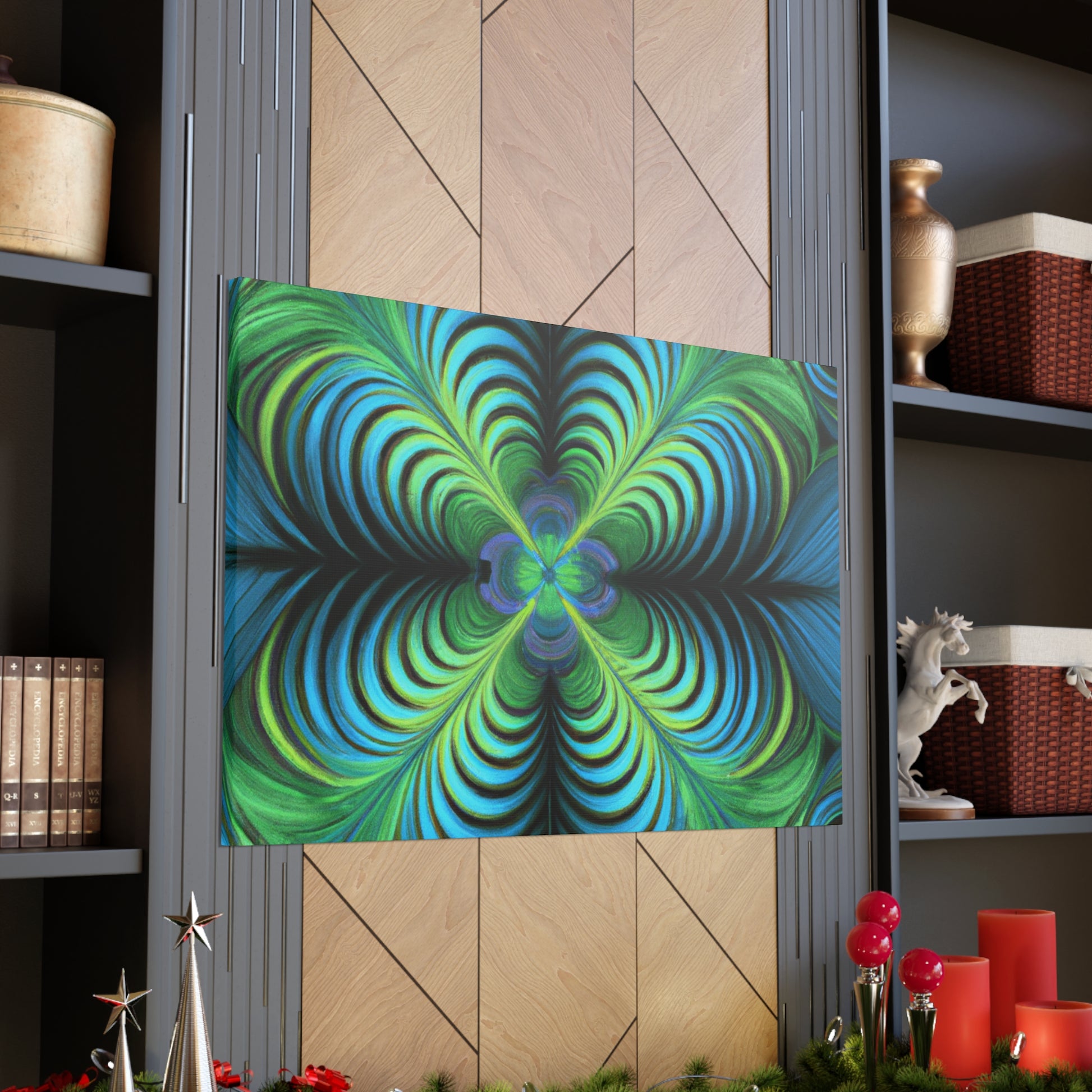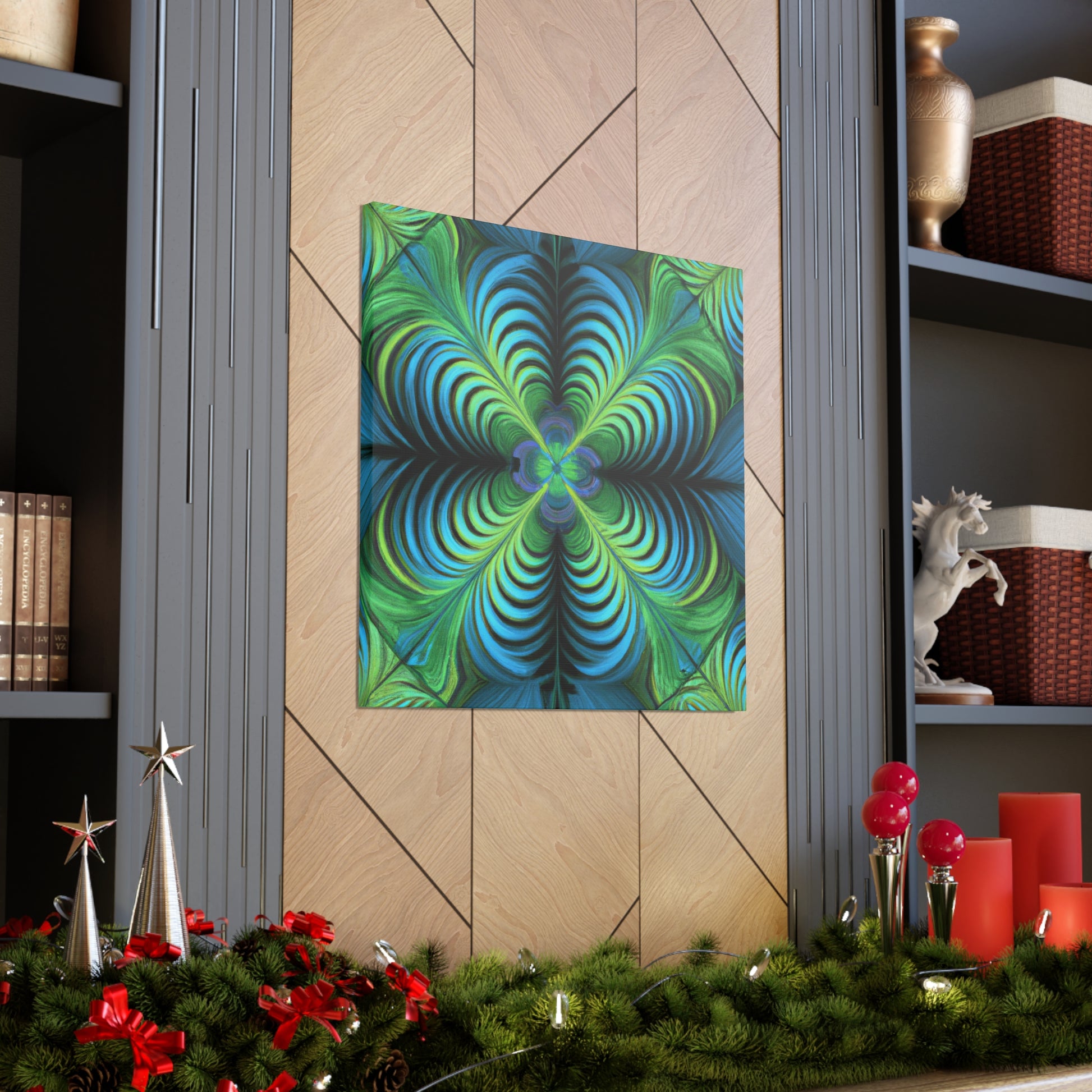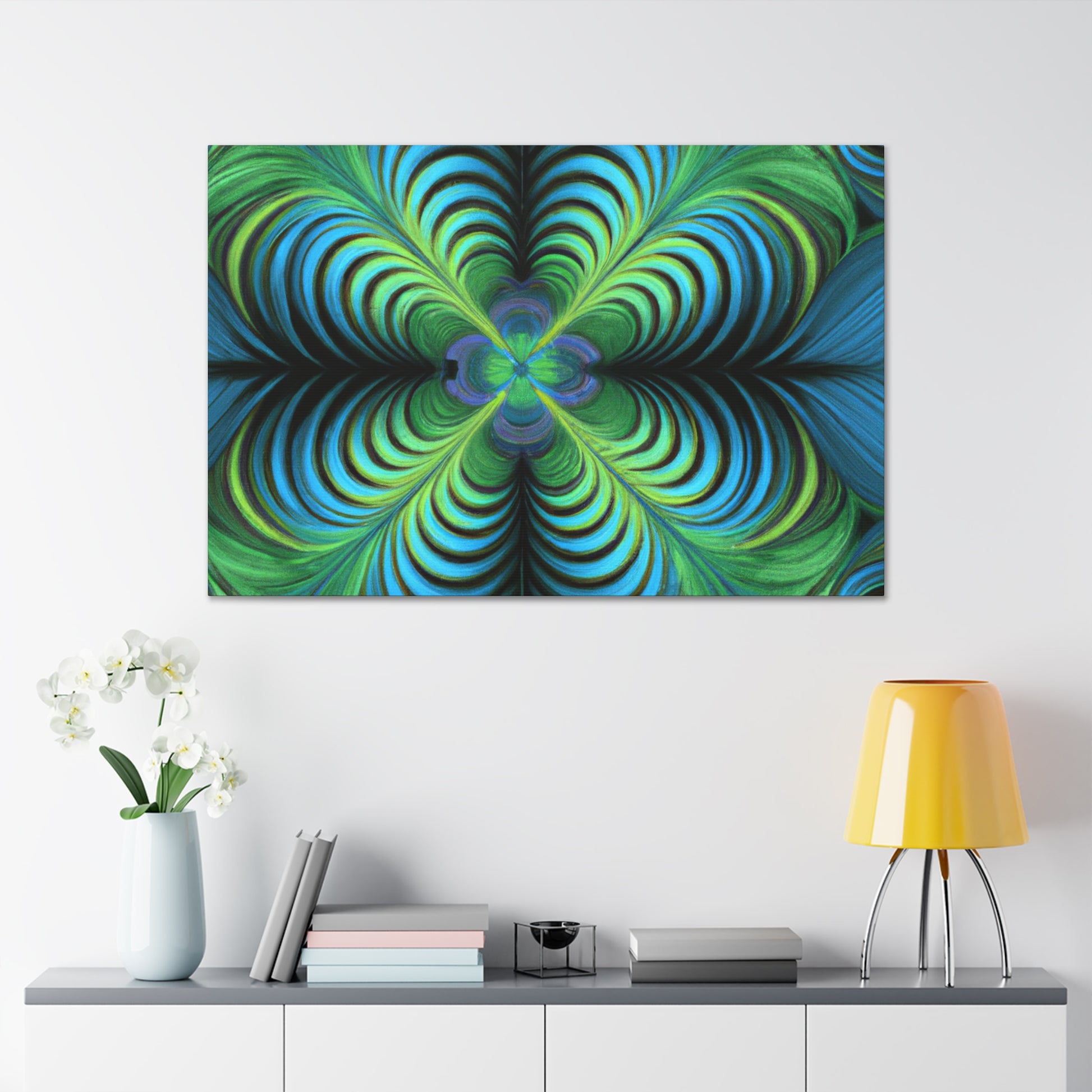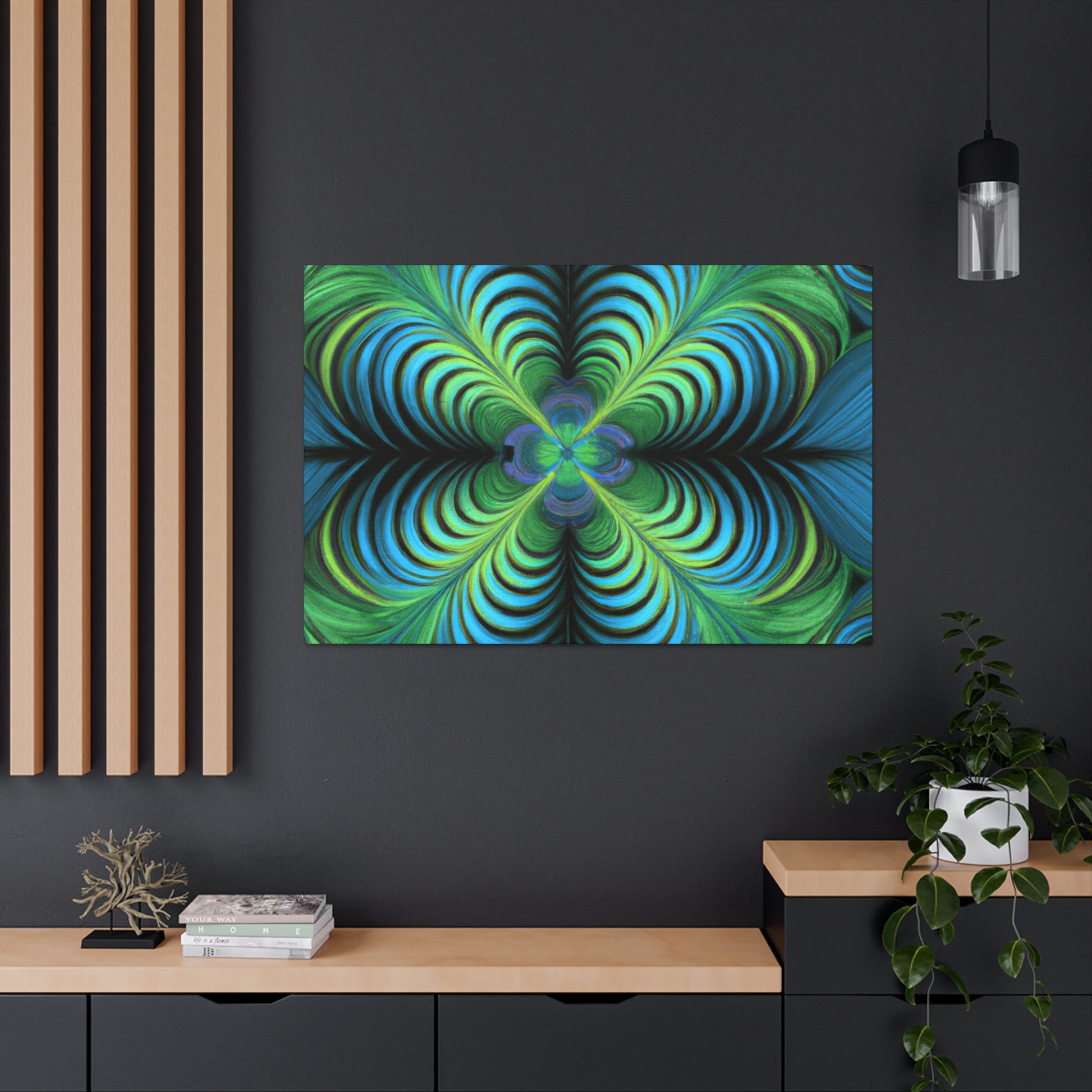 This one-of-a-kind canvas blends trippy geometric shapes, kaleidoscope visuals, abstract images, vibrant colors, 3D lines, and intricate fractals to create an eye-catching work of art. Hanging this canvas in your living space is sure to make an impact! #trippyart #geometricart #abstractart #digitalart #kaleidoscope #vibrantcolors #3Dlines #fractals #canvasart #canvaswallart #artwork