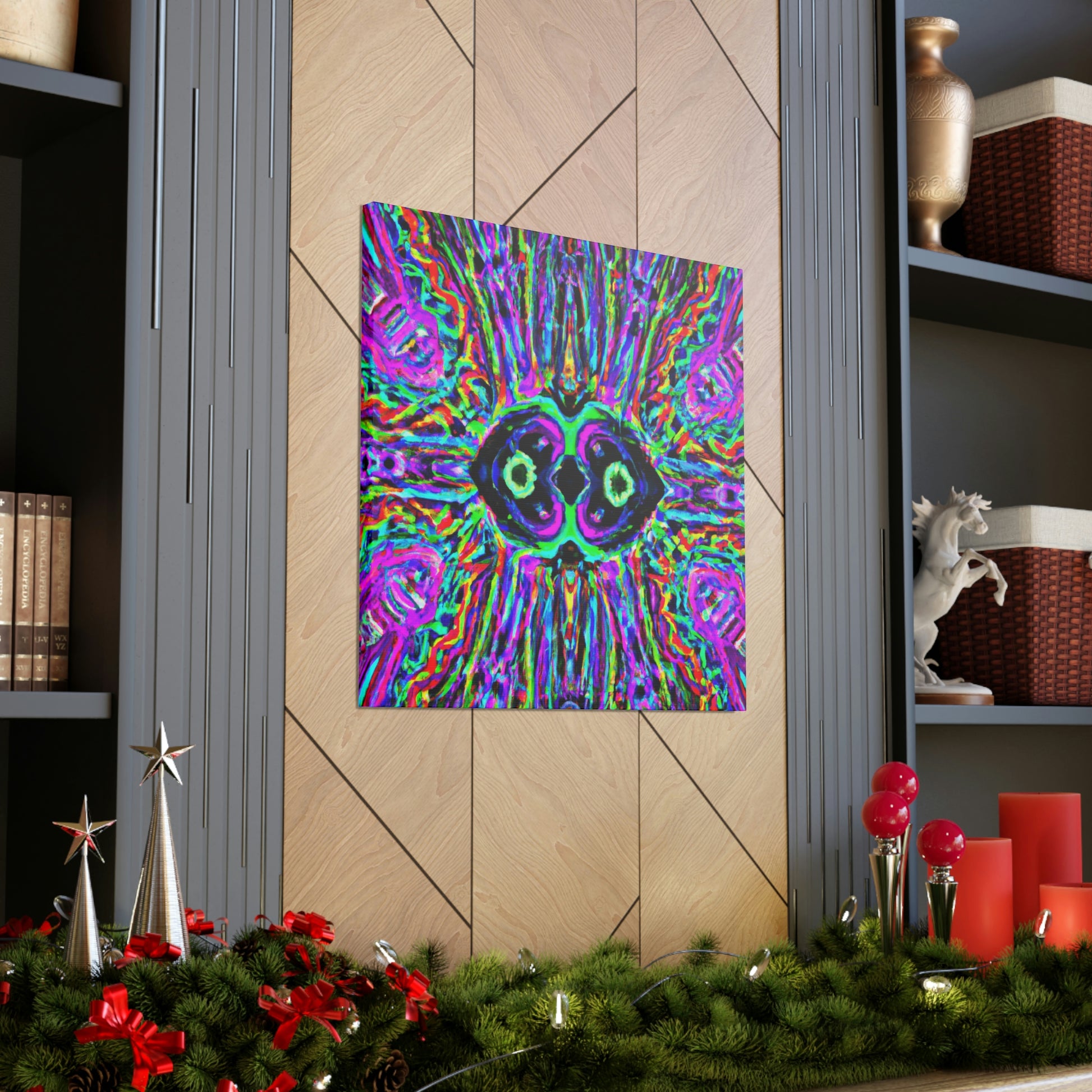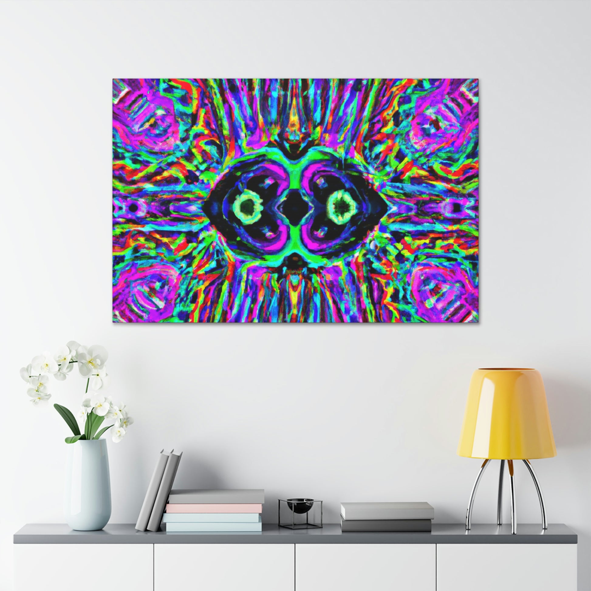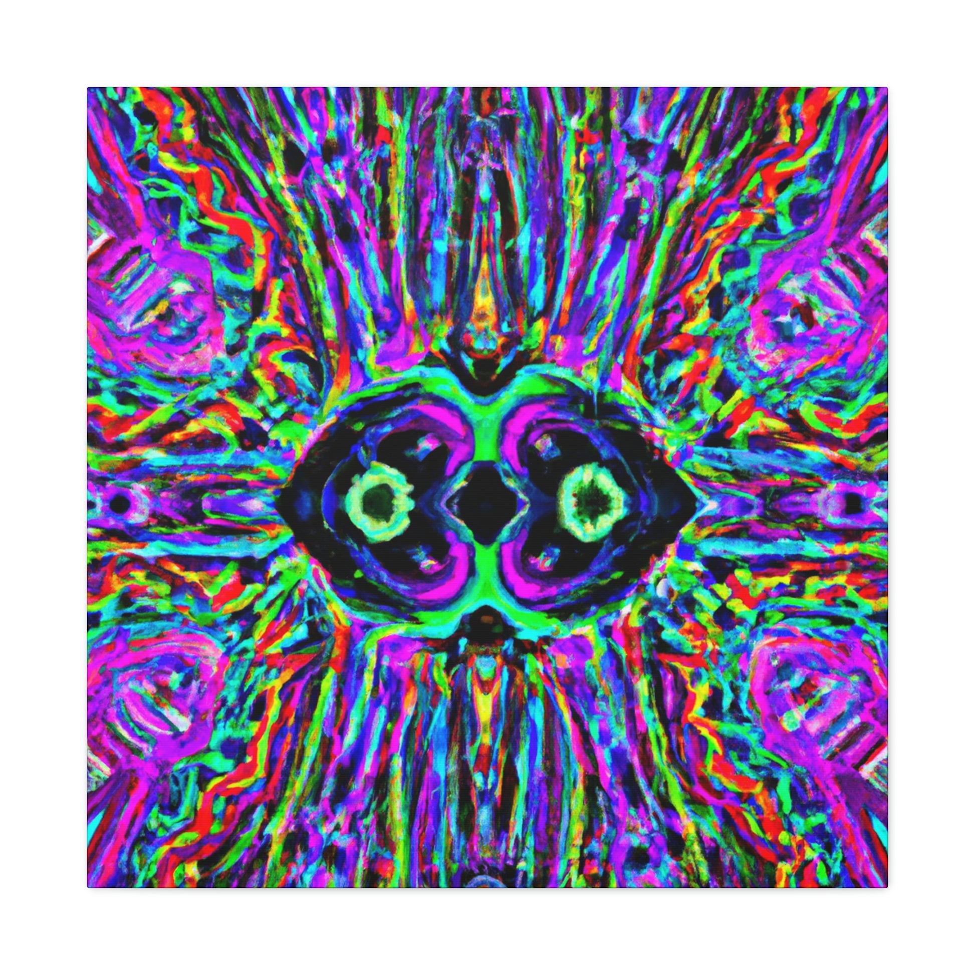 This vibrant modern abstract canvas art features layers of trippy mushrooms, kaleidoscope, and 3D lines that come alive in neon colors. The piece has a dynamic energy to it, perfect for lightening up any space. It is a unique display of digital art that will draw the eye in and captivate the viewer. #colorful #canvas #modernart #wallart #homedecor #trippymushrooms #kaleidoscope #abstractart #digitallines #3dlines #vibrantcolors