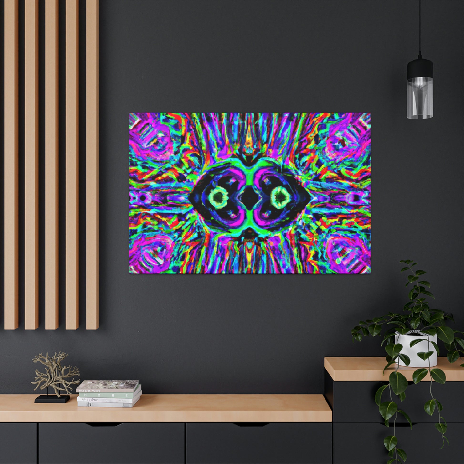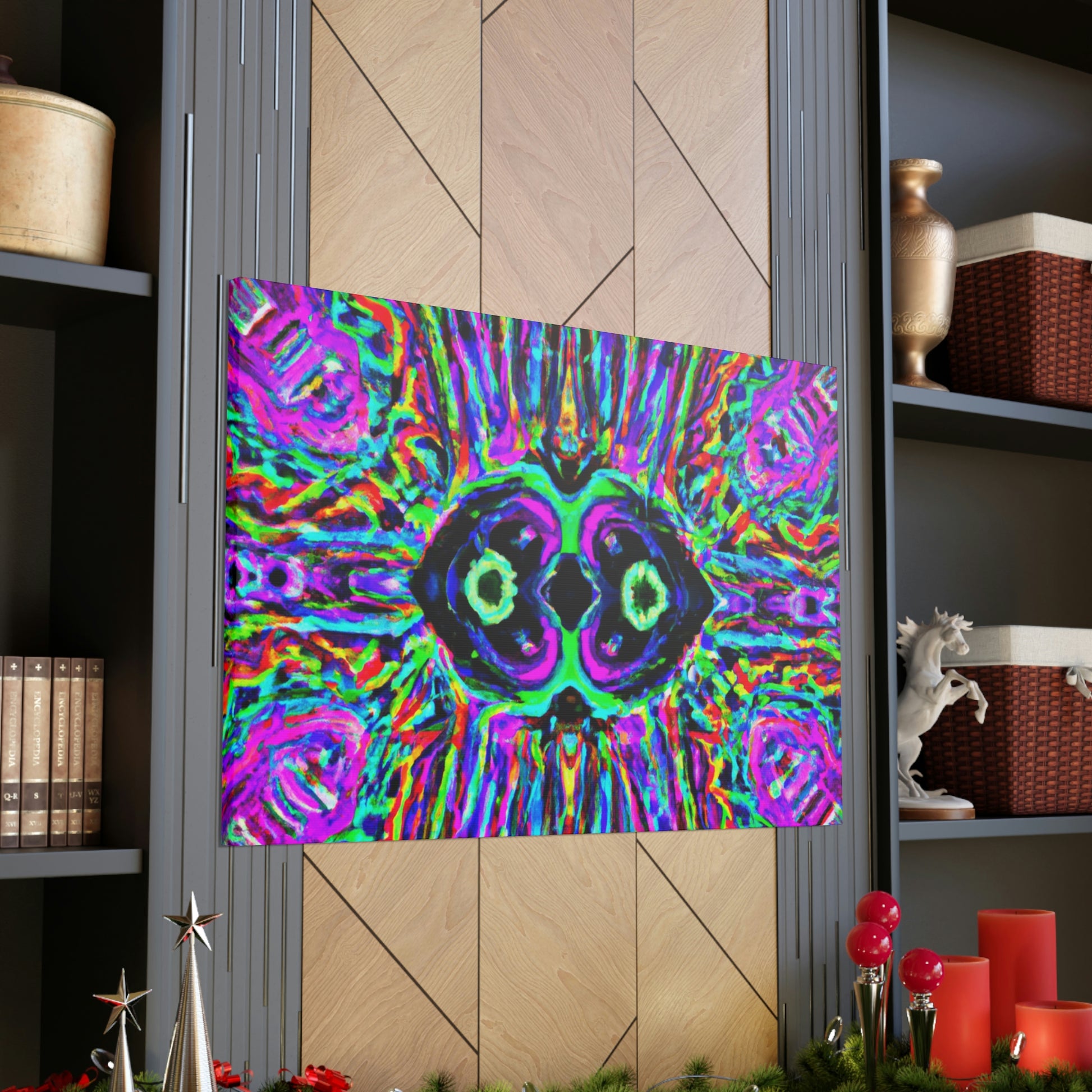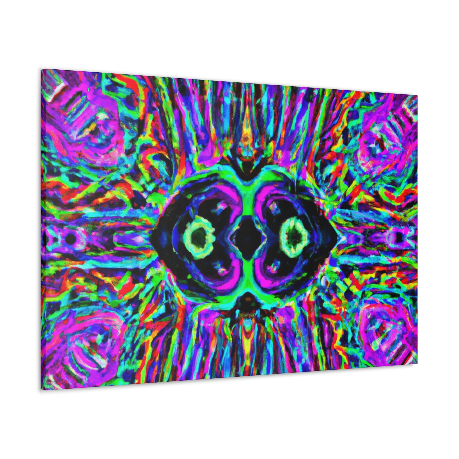 This vibrant modern abstract canvas art features layers of trippy mushrooms, kaleidoscope, and 3D lines that come alive in neon colors. The piece has a dynamic energy to it, perfect for lightening up any space. It is a unique display of digital art that will draw the eye in and captivate the viewer. #colorful #canvas #modernart #wallart #homedecor #trippymushrooms #kaleidoscope #abstractart #digitallines #3dlines #vibrantcolors