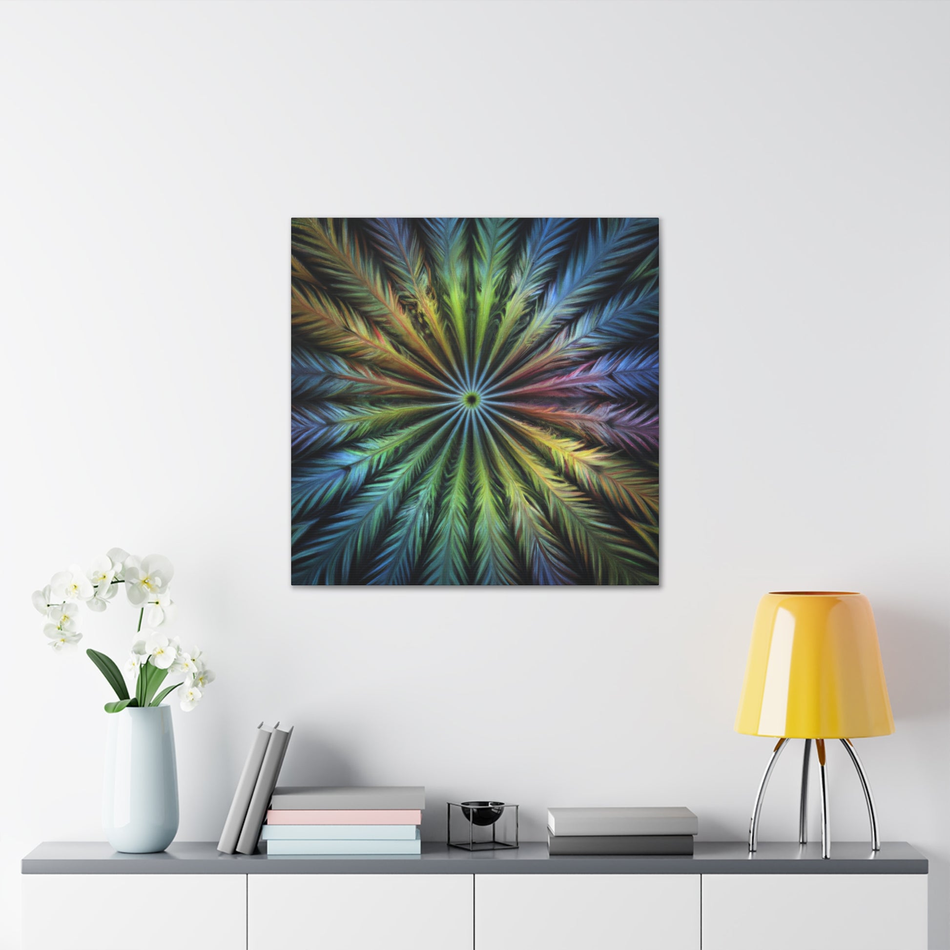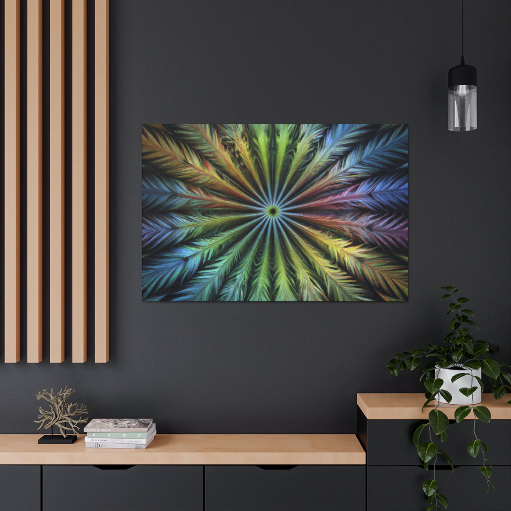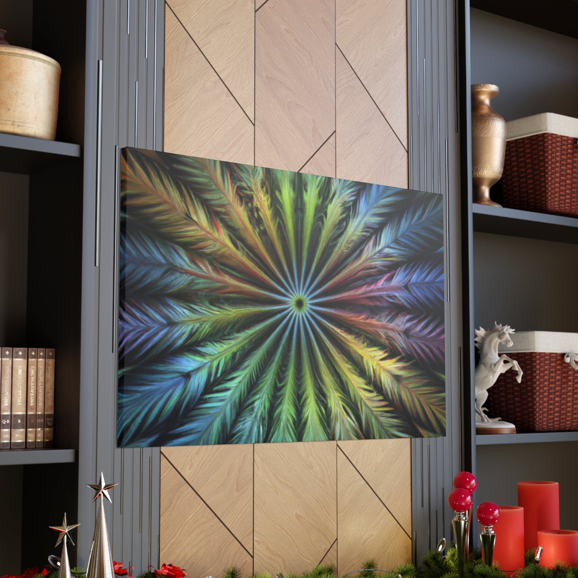 This eye-catching canvas art will be the focal point of any room. Featuring a trippy geometric pattern of palm leaves, kaleidoscope, abstract, digital art, vibrant colors, 3D lines, and fractal, this artistic piece will be the perfect addition to any modern or contemporary home. Place this beautiful canvas in your living room, bedroom, or office to liven up any wall and bring positive vibes to the atmosphere. #3Dart #fractal #kaleidoscope #palmleaves #abstractart #canvas #vibrantcolors #digitalart #geometricshapes #homestyle #homeart