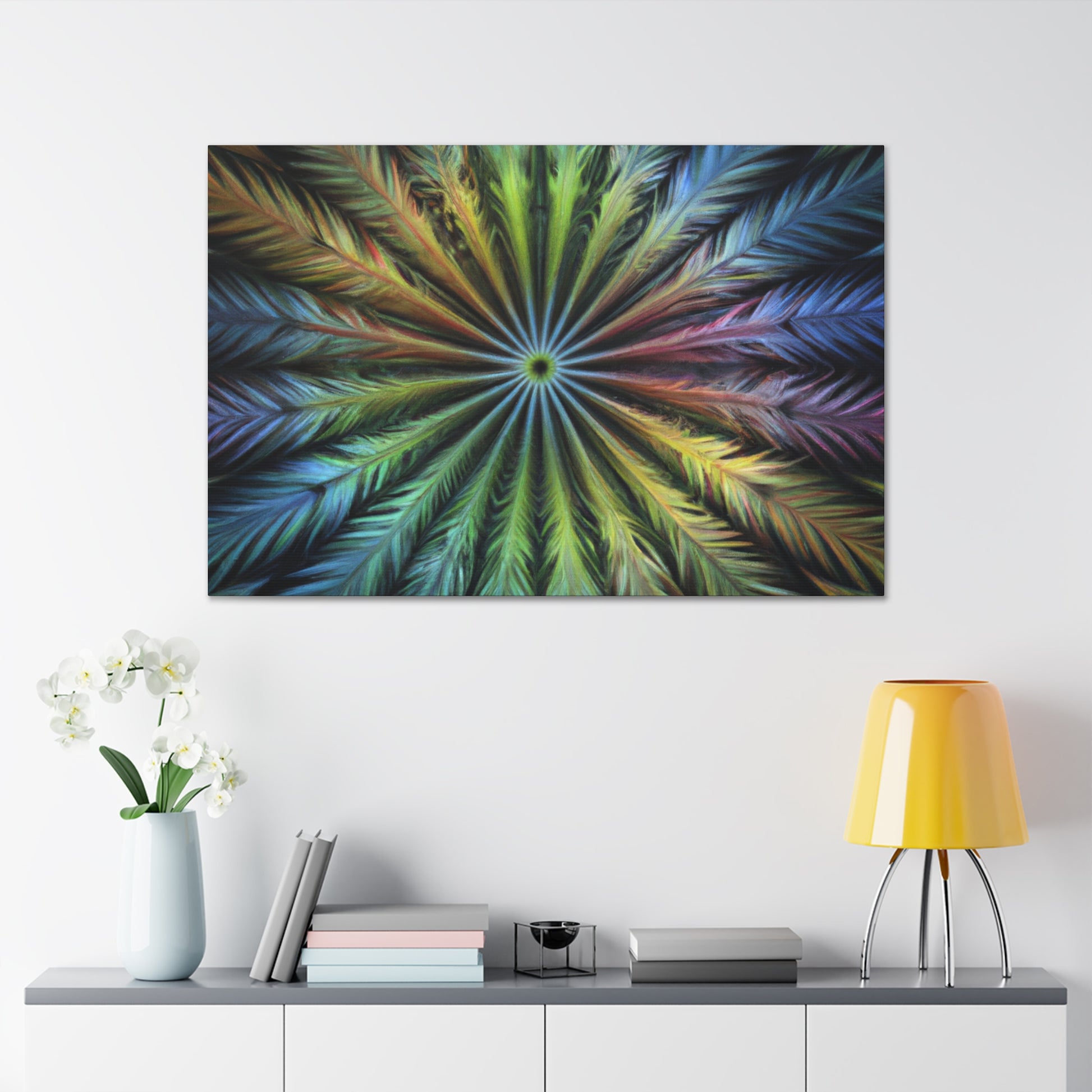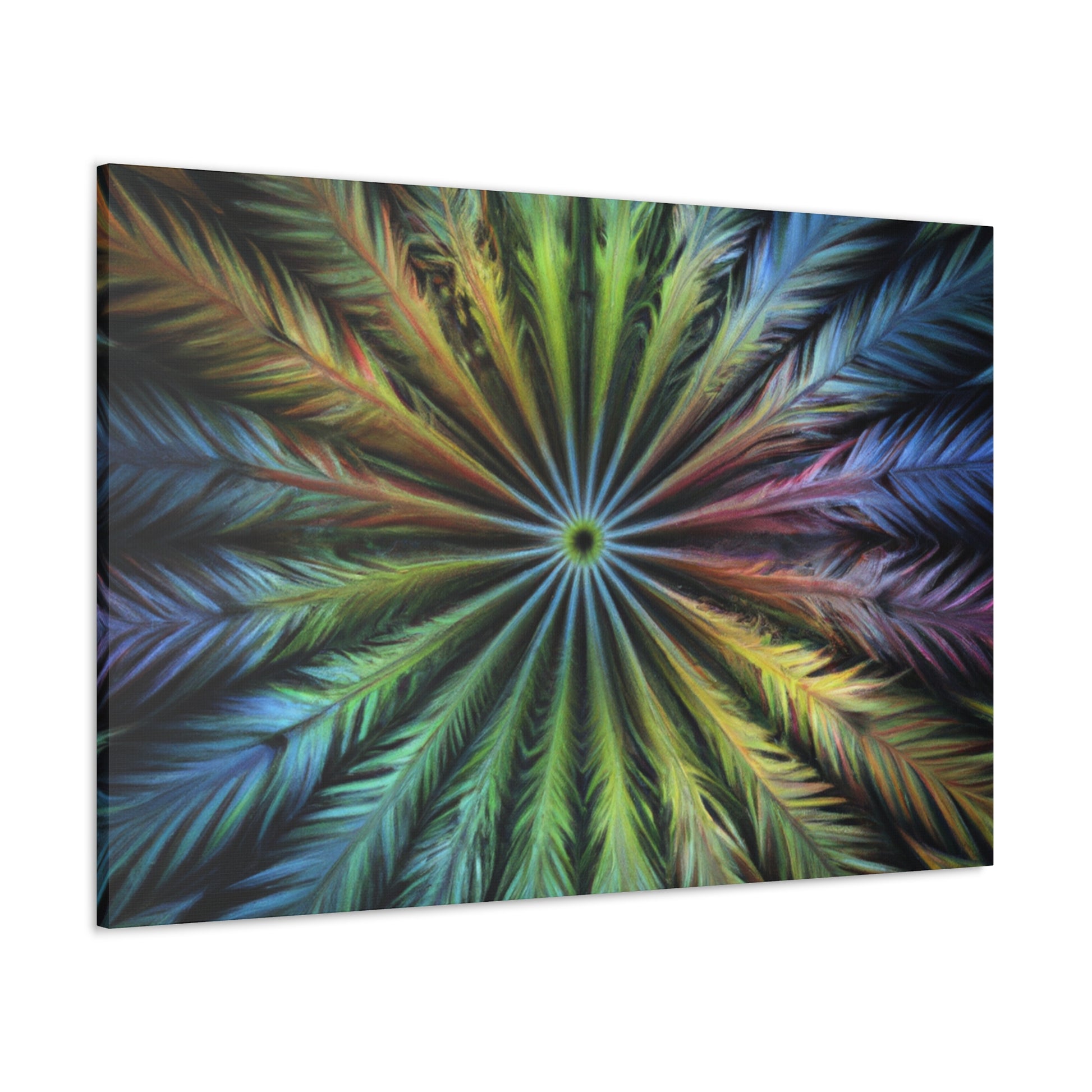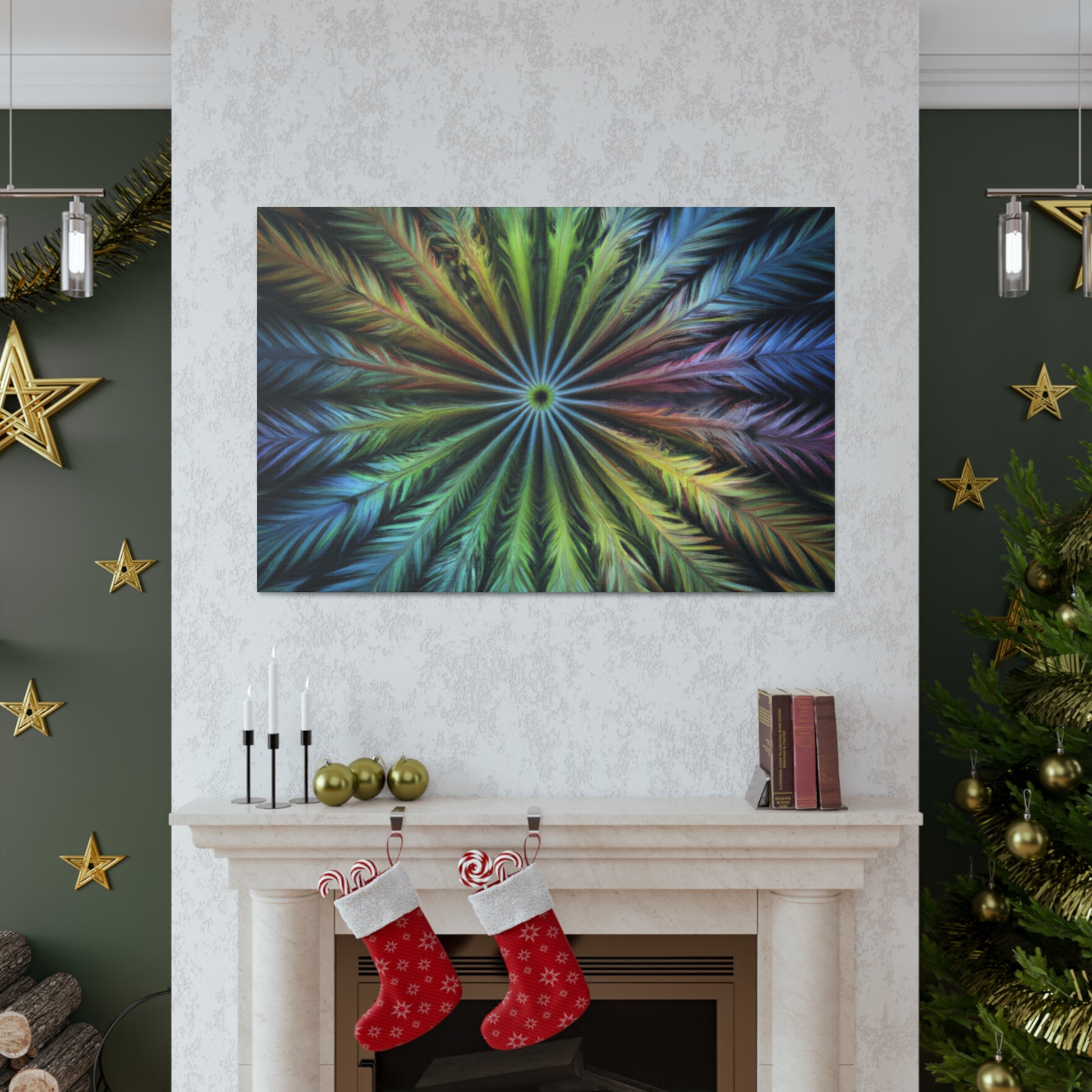 This eye-catching canvas art will be the focal point of any room. Featuring a trippy geometric pattern of palm leaves, kaleidoscope, abstract, digital art, vibrant colors, 3D lines, and fractal, this artistic piece will be the perfect addition to any modern or contemporary home. Place this beautiful canvas in your living room, bedroom, or office to liven up any wall and bring positive vibes to the atmosphere. #3Dart #fractal #kaleidoscope #palmleaves #abstractart #canvas #vibrantcolors #digitalart #geometricshapes #homestyle #homeart