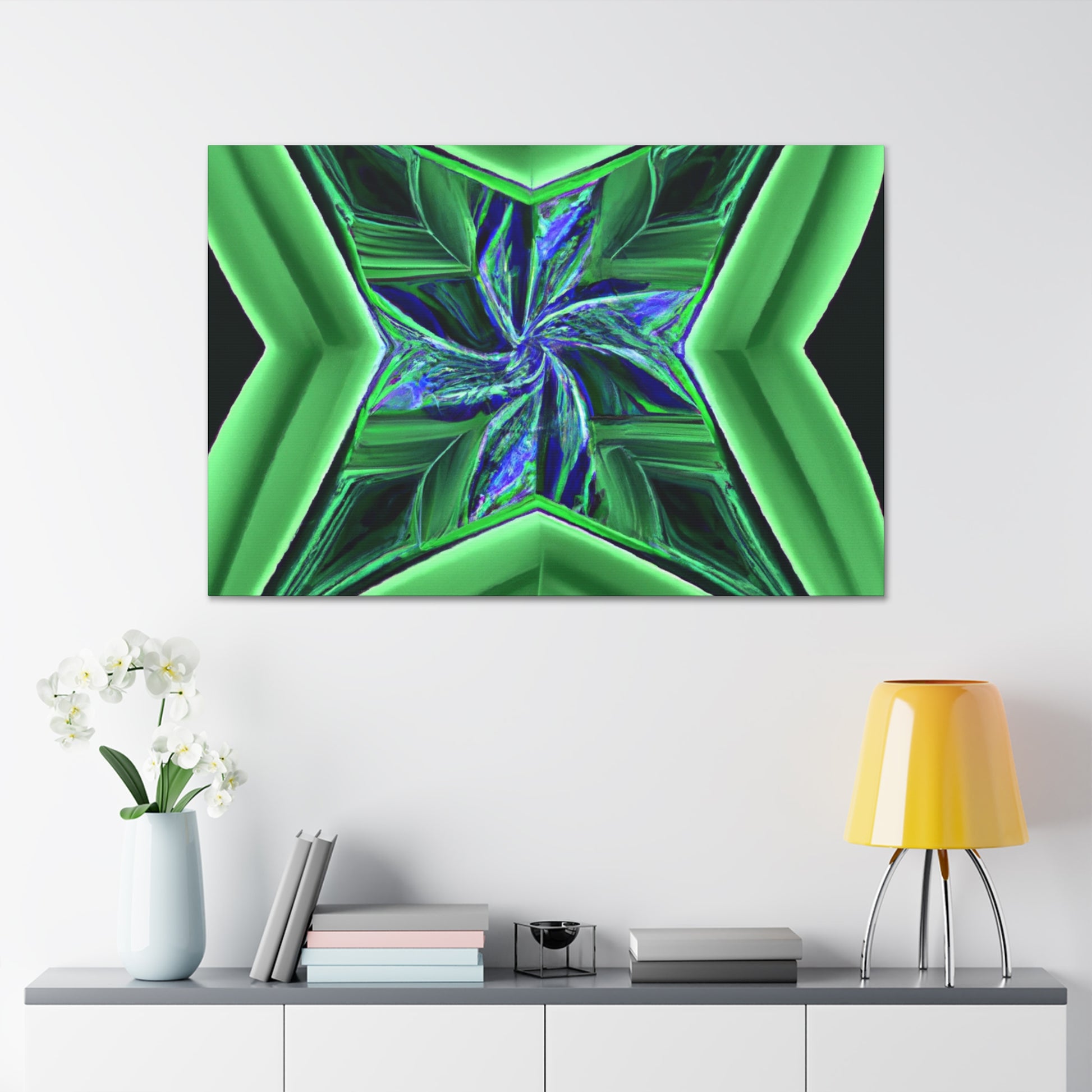 This canvas of abstract art is truly mesmerizing, featuring vibrant colors and a kaleidoscopic array of geometric palm leaves. Digital art with 3D lines creates a fractal-like illusion that is deeply engaging. This piece will add an exciting and unique touch to your wall decor. #abstractart #trippy #geometric #palmleaves #kaleidoscope #digitart #vibrantcolors #3Dlines #fractal #wallart #decor