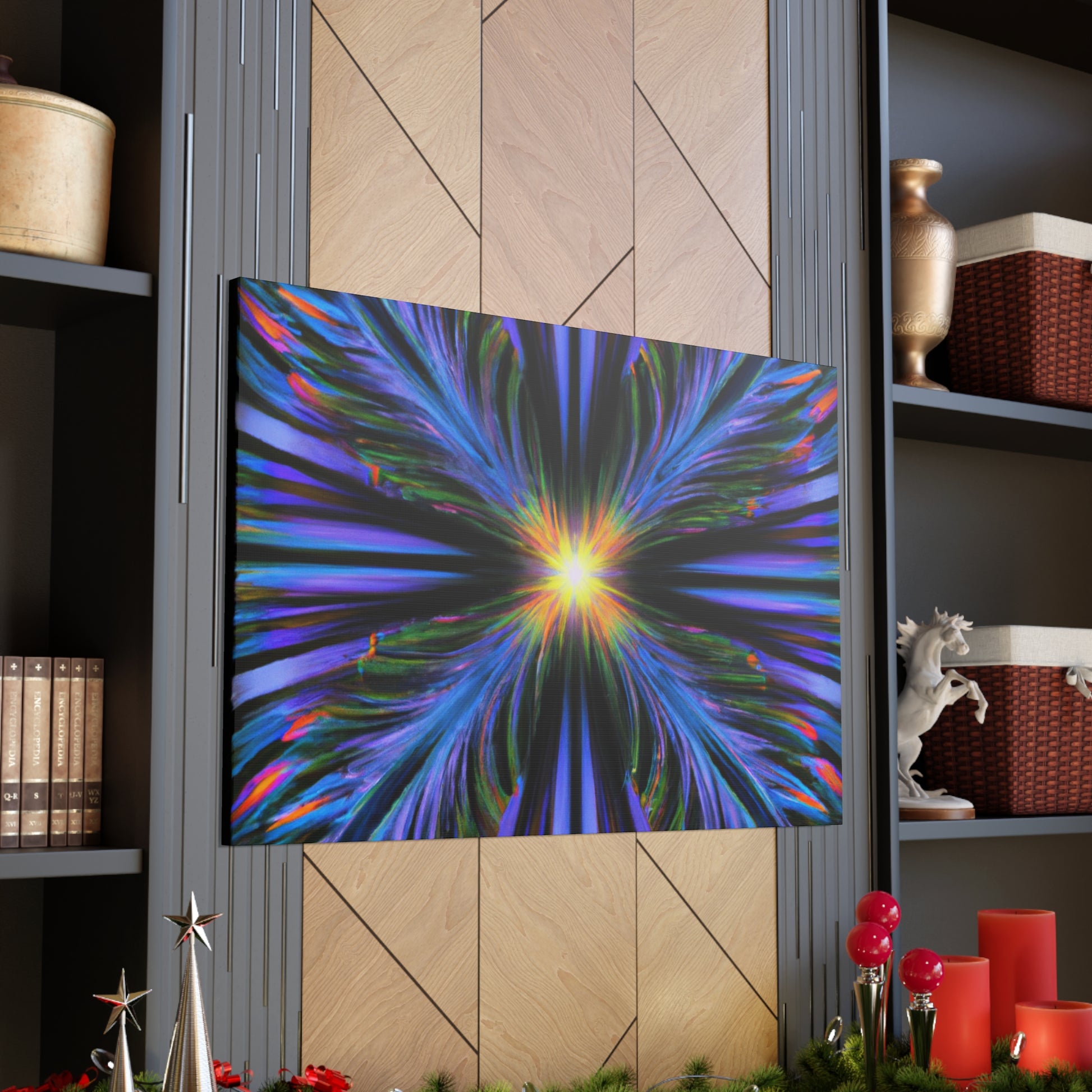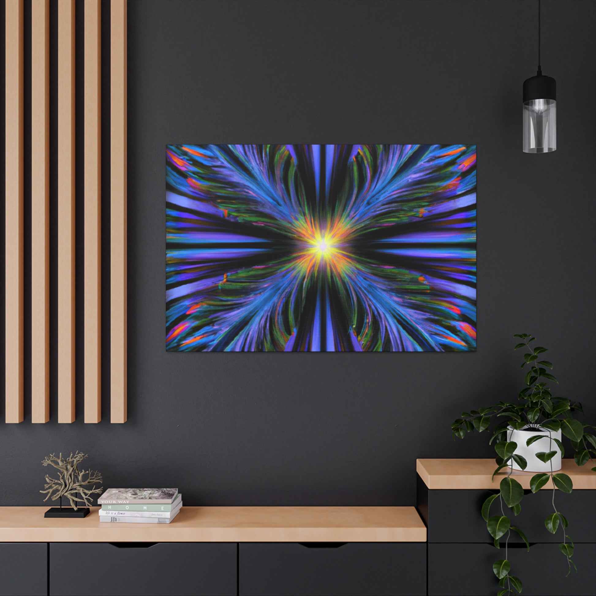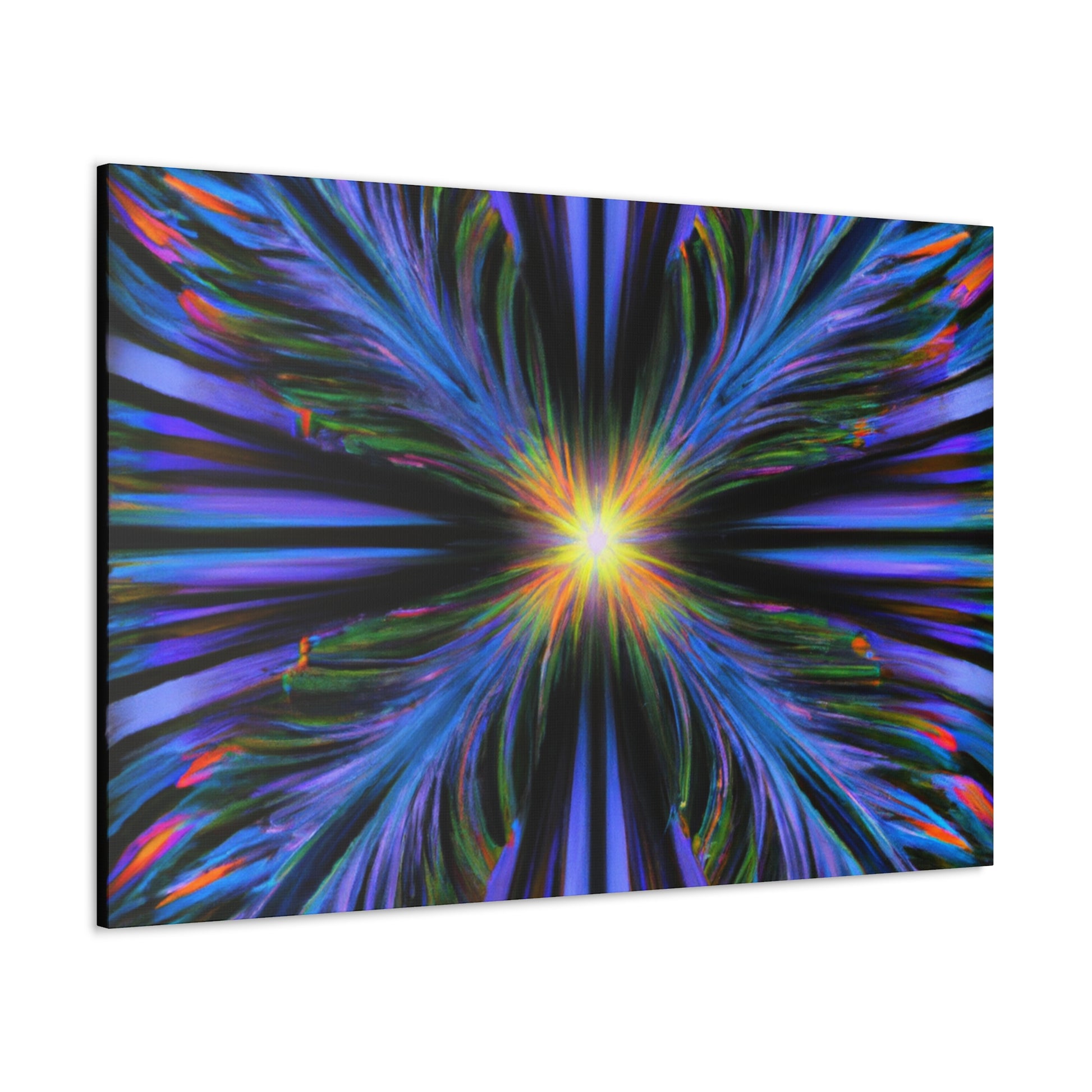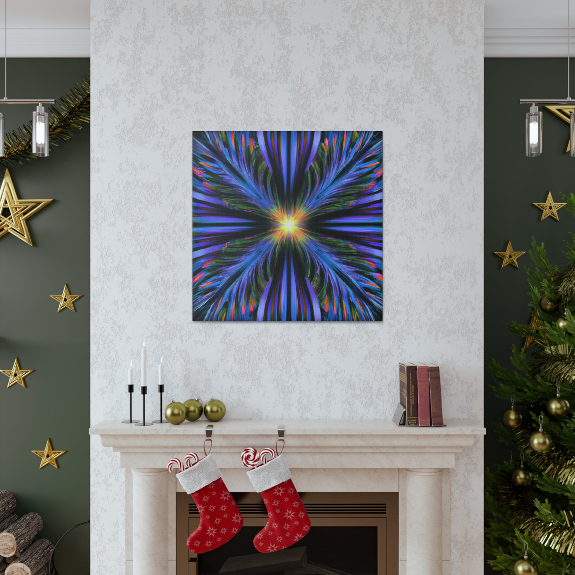 Make a statement with this captivating canvas featuring bold abstract art with an explosion of trippy geometric palm leaves, kaleidoscope, 3D lines and fractal. The vibrant colors and mesmerizing patterning will bring life and movement to any space, and is sure to be a conversation starter. #interiordesign #digitalart #wallart #statementpiece #canvasprint #kaleidoscope #palmleaves #trippy #fractal #abstractart #vibrantcolors