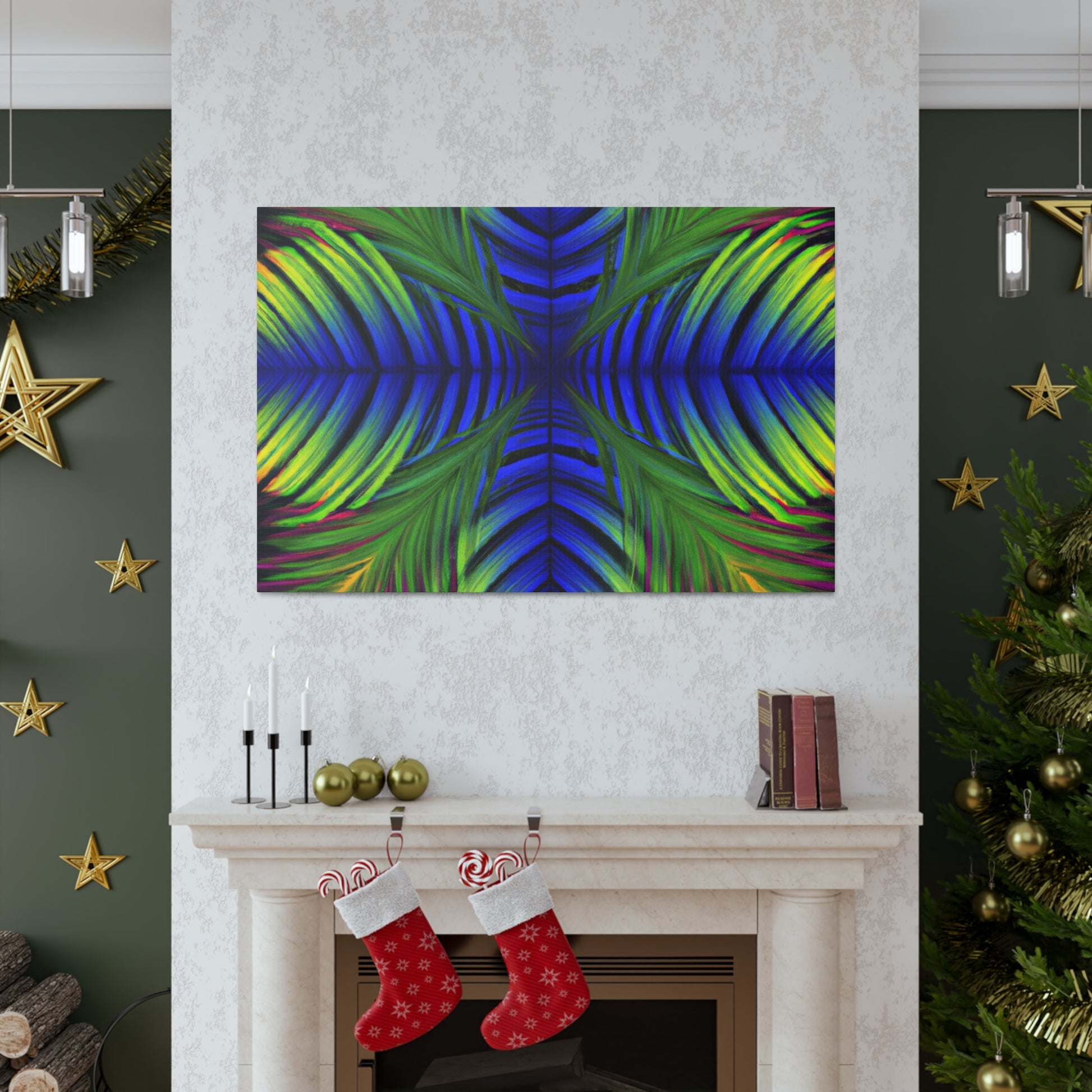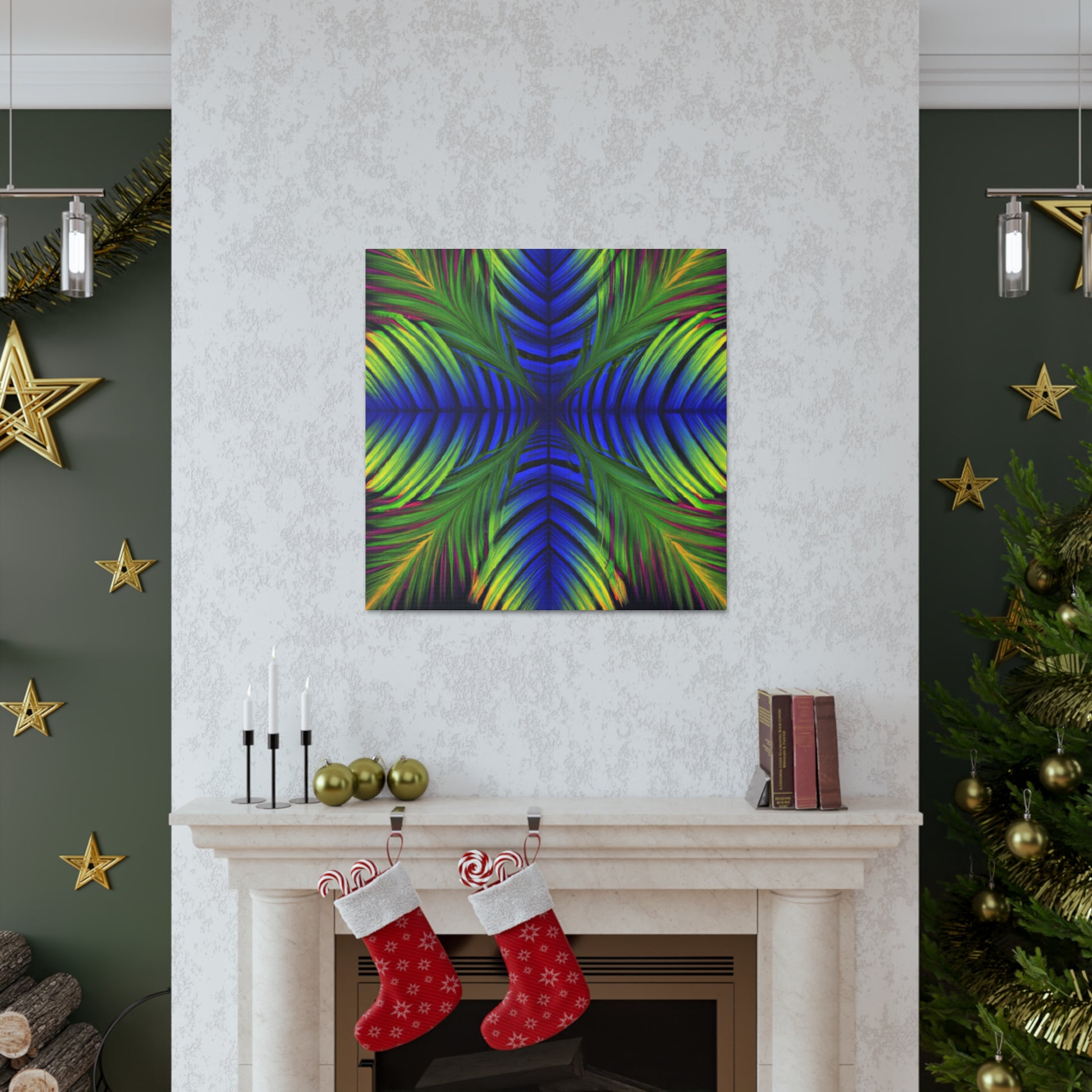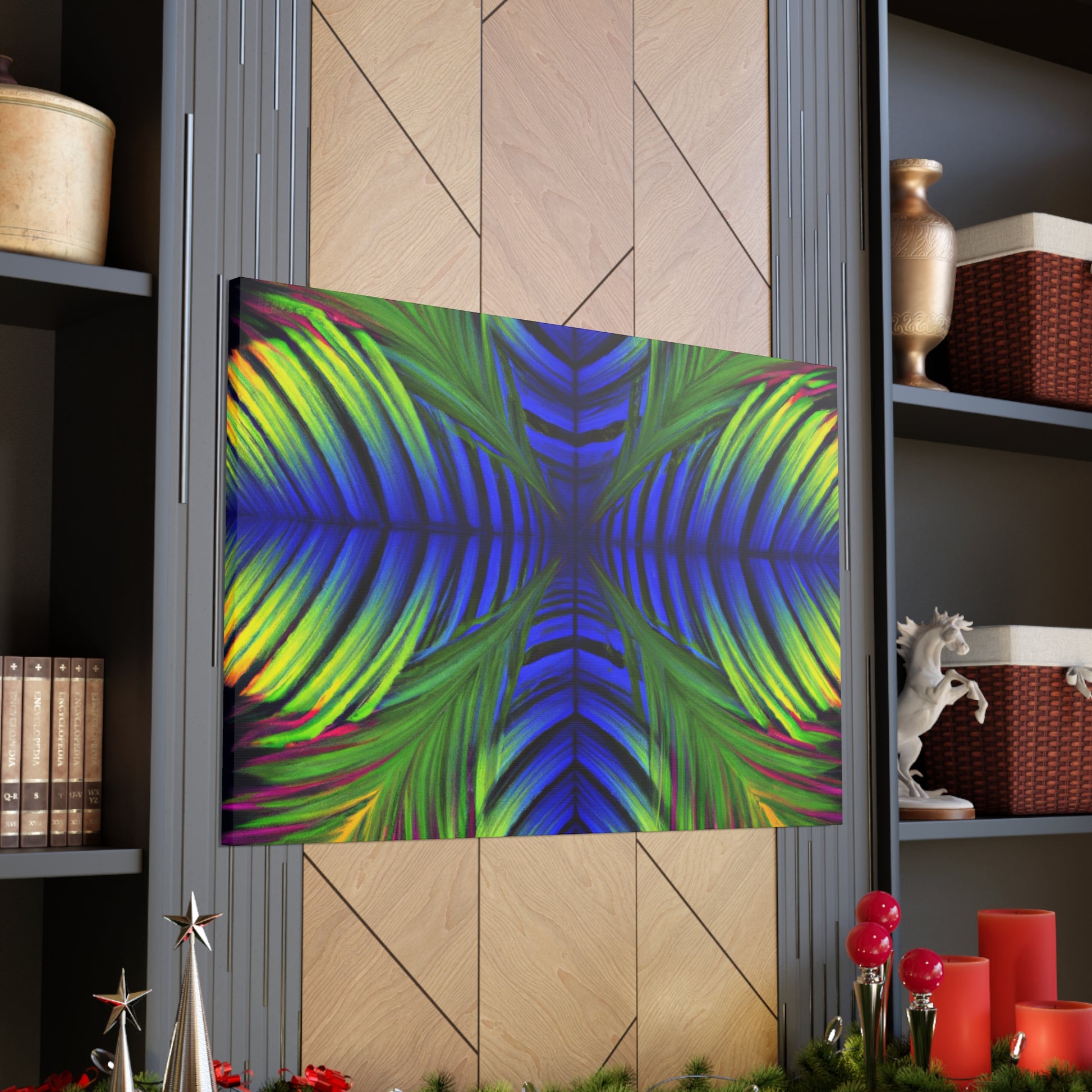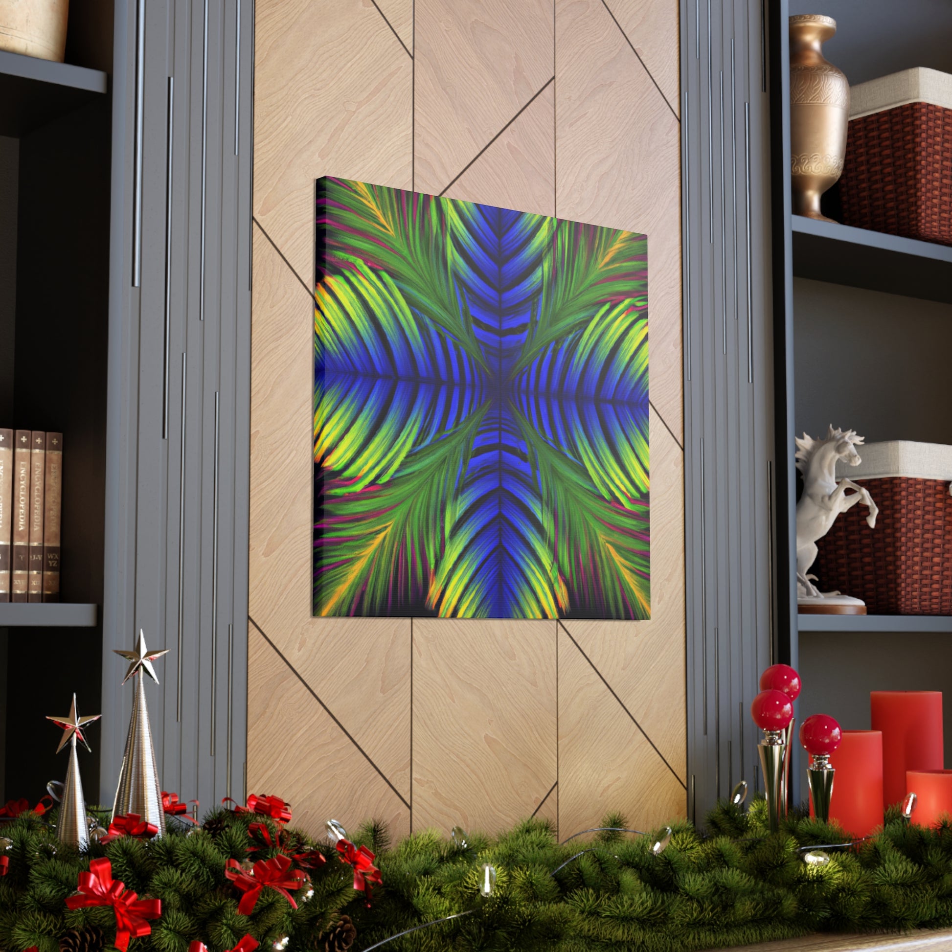 This canvas displays an exotic Trippy Geometric Palm Leaf with a myriad of abstract shapes, vibrant colors, deep 3D lines, and a hypnotizing Fractal. It's a modern combination of vibrant digital art and psychedelic design, creating a captivating work of art that will bring life and color to any space! #canvasart #trippyart #modernart #kaleidoscope #psychedelicdesign #abstractart #fractalart #colorsplash #3Dlines #vibrantcolors #palmleafart