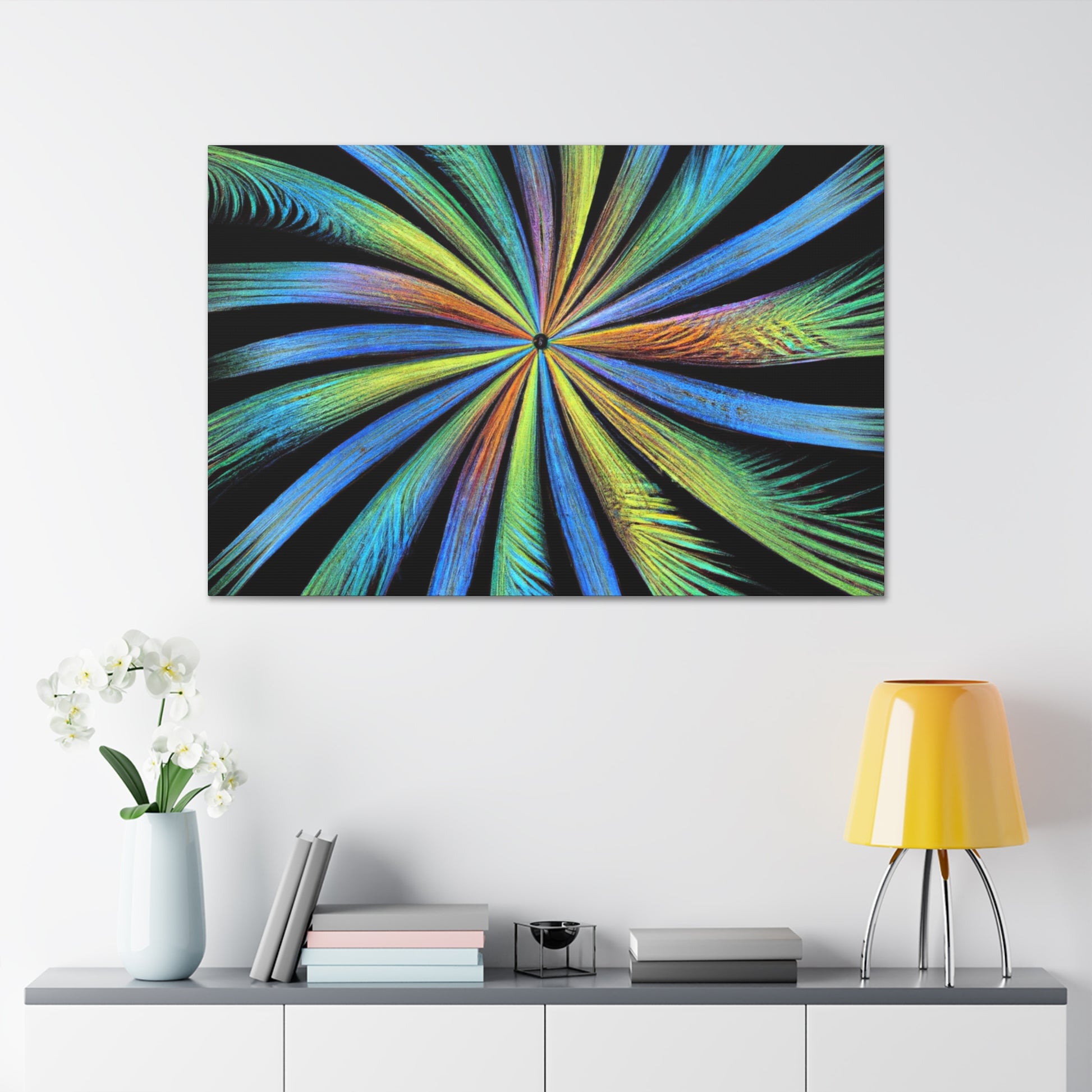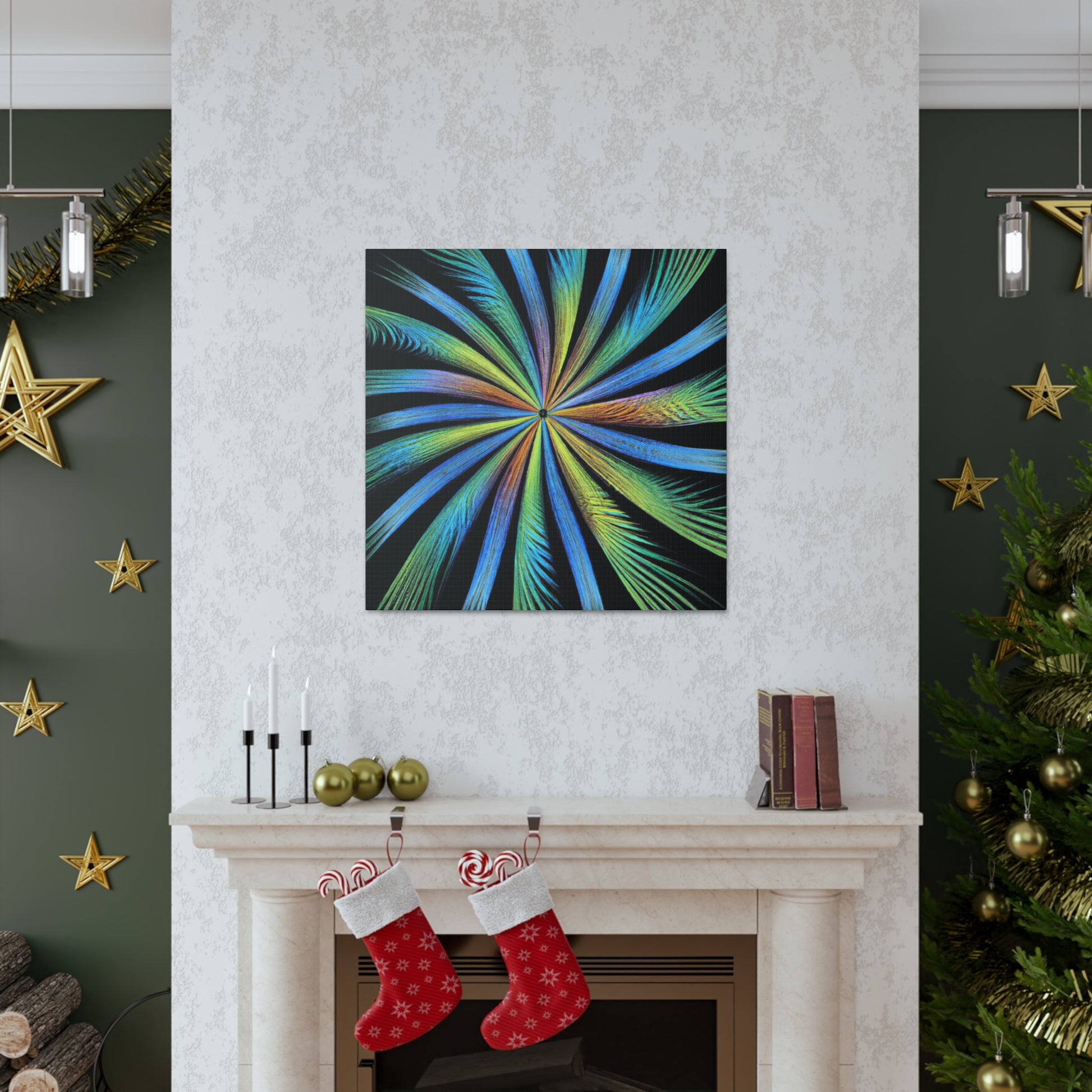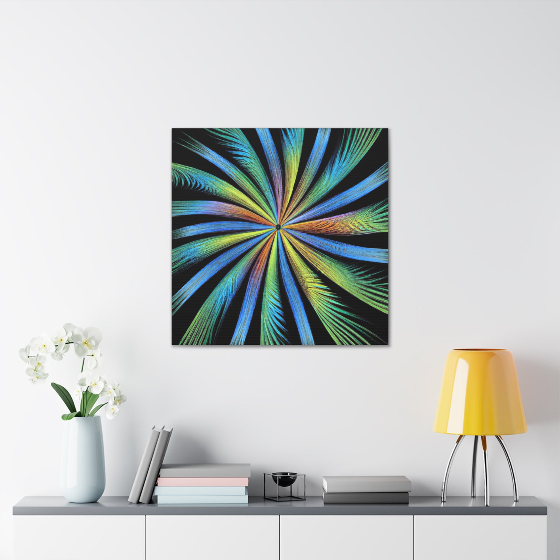 This stunning and vibrant canvas features a psychedelic blend of geometric palm leaves, kaleidoscope, abstract, and digital art! With its 3D lines and fractal design, you'll be captivated by its bold range of radiant colors. Perfect for any room in your home or office, add modern style and energy to any space! #vibrantcolors #3Dlines #modernstyle #geometricart #palmleaves #abstractart #kaleidoscope #fractaldesign #trippyart #digitalart #vibrantenergy