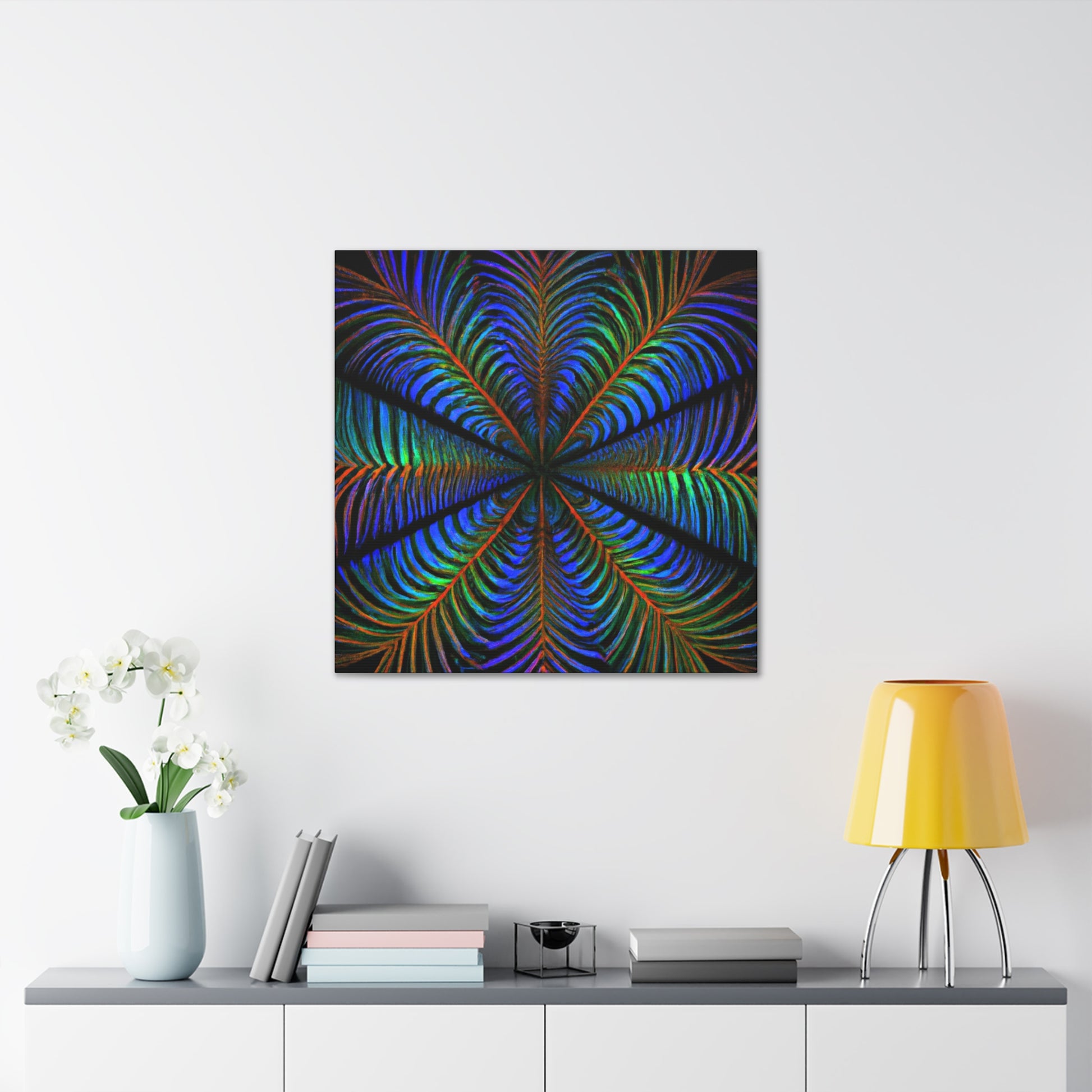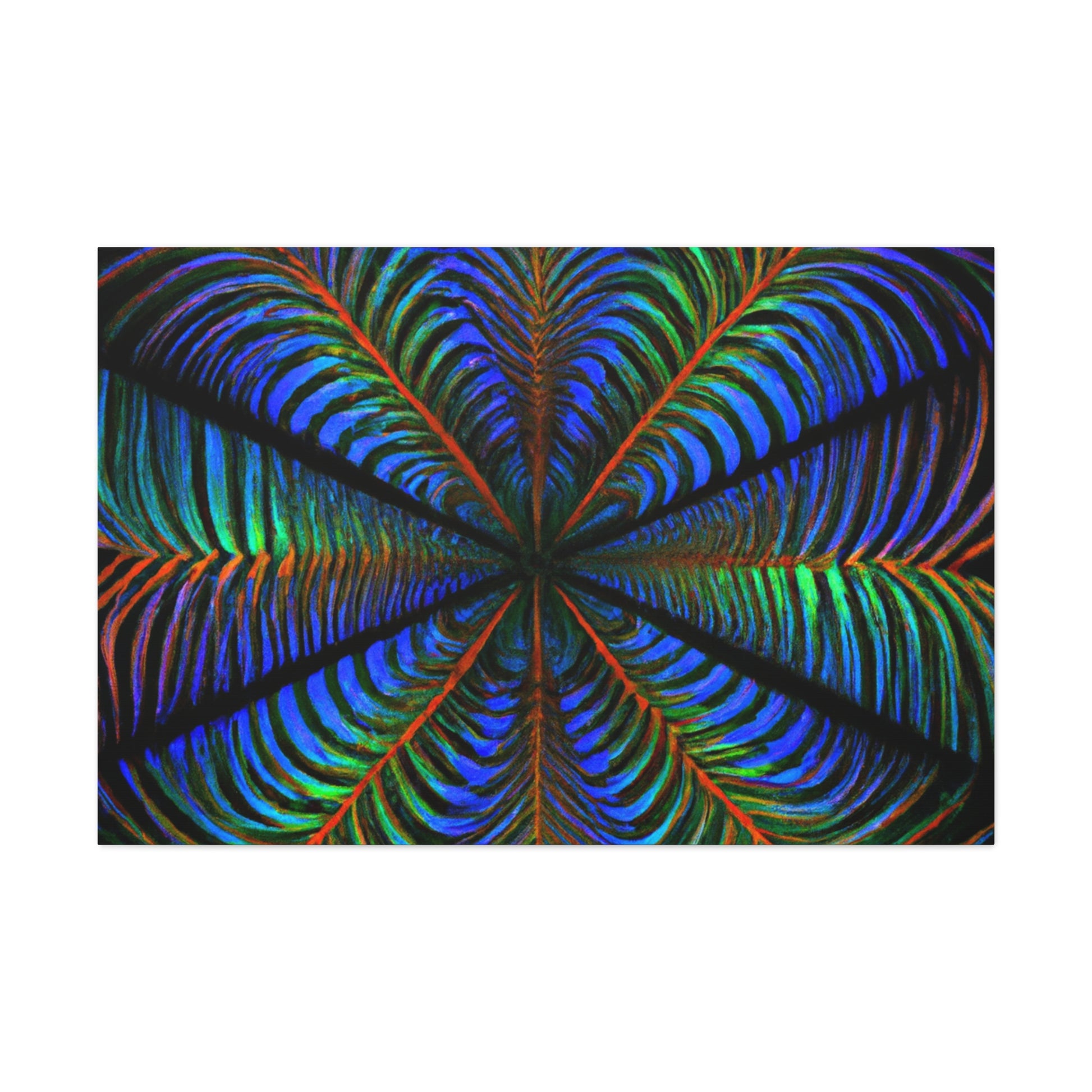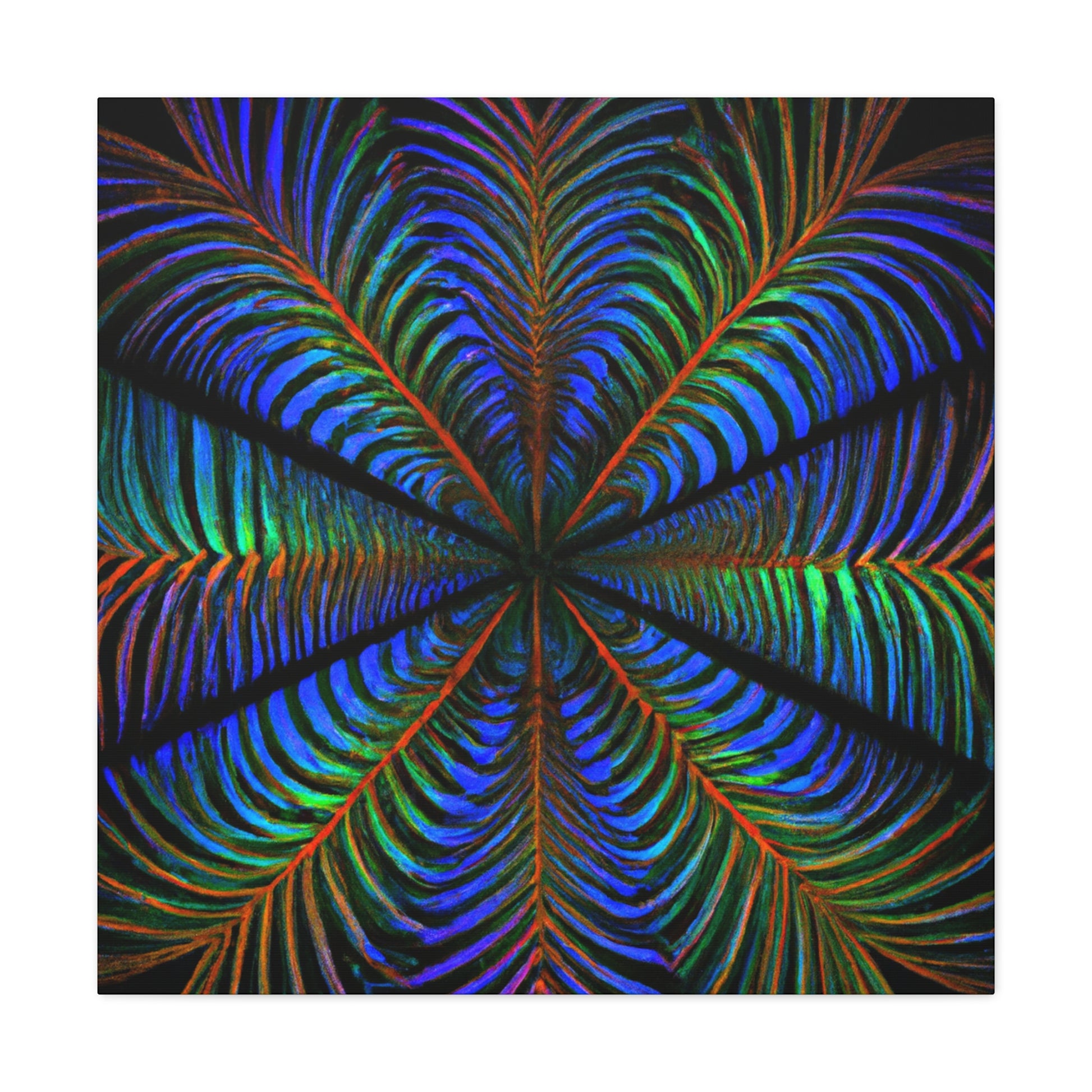 Elevate your walls with this stunning canvas art of trippy geometric palm leaves, kaleidoscope, abstract art, and vibrant colors! This eye-catching digital print features intricate 3D lines, fractals, and majestic patterns that will enliven any living space. Add this statement piece to your collection and admire its unique color palette and brilliant textures. #trippy #kaleidoscope #abstractart #3dlines #fractal #vibrantcolors #palmleaves #digitalprint #statementpiece #canvasart #modernart