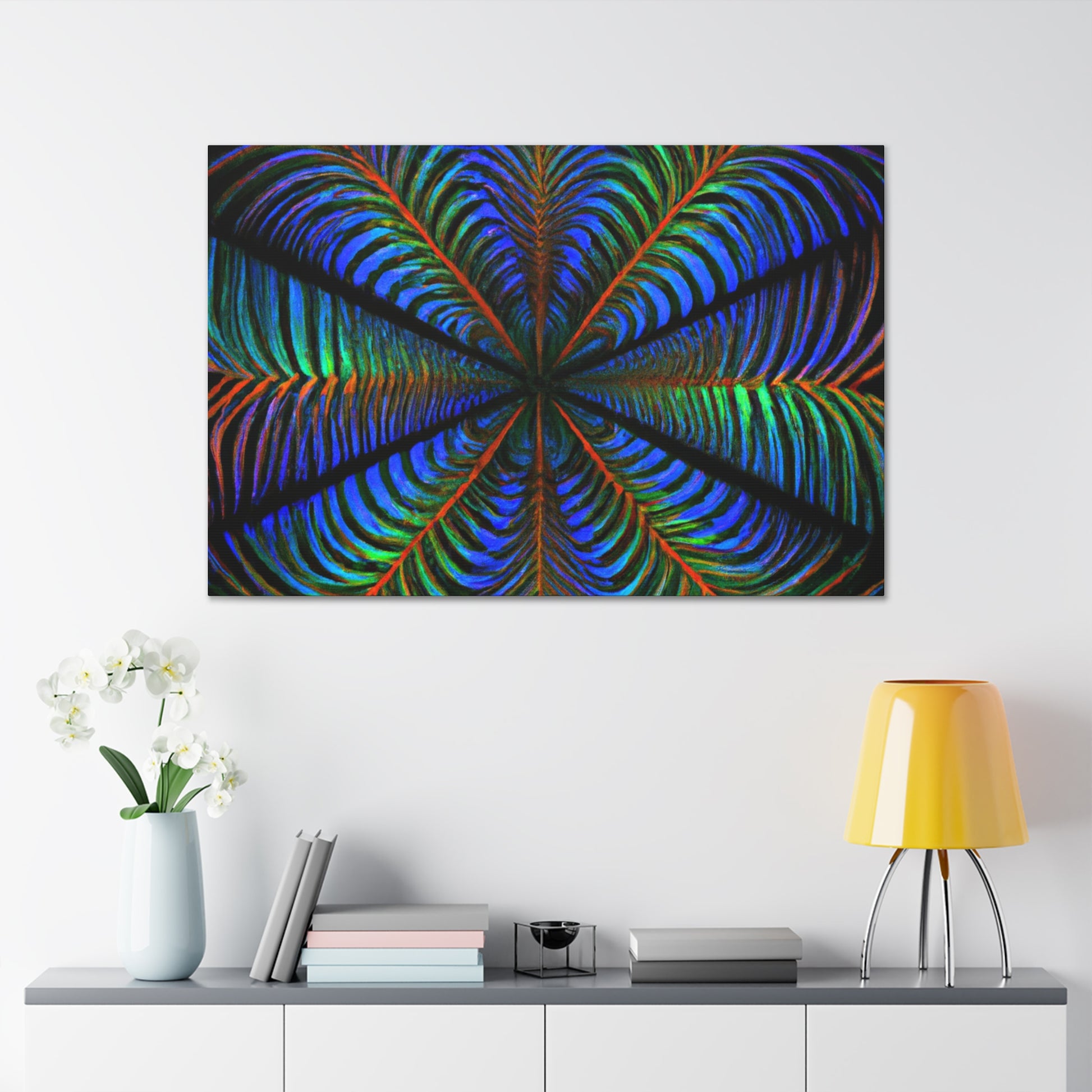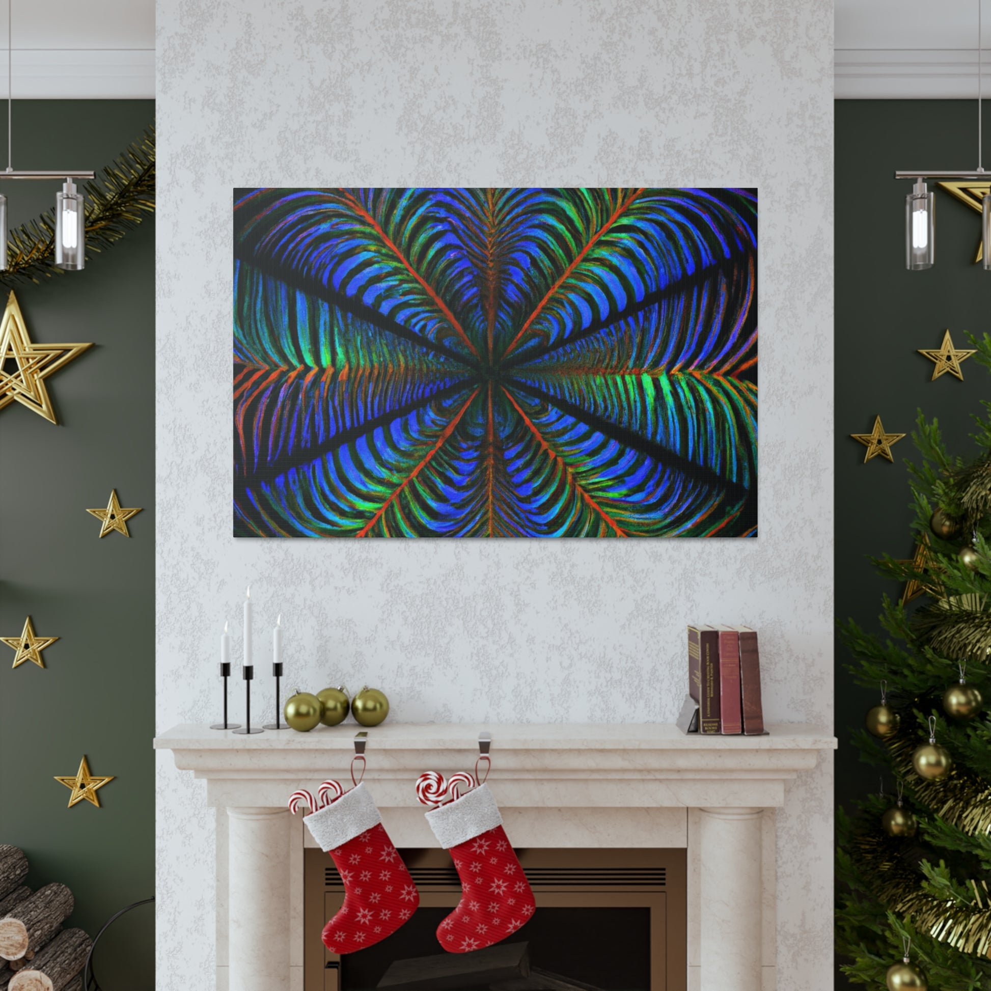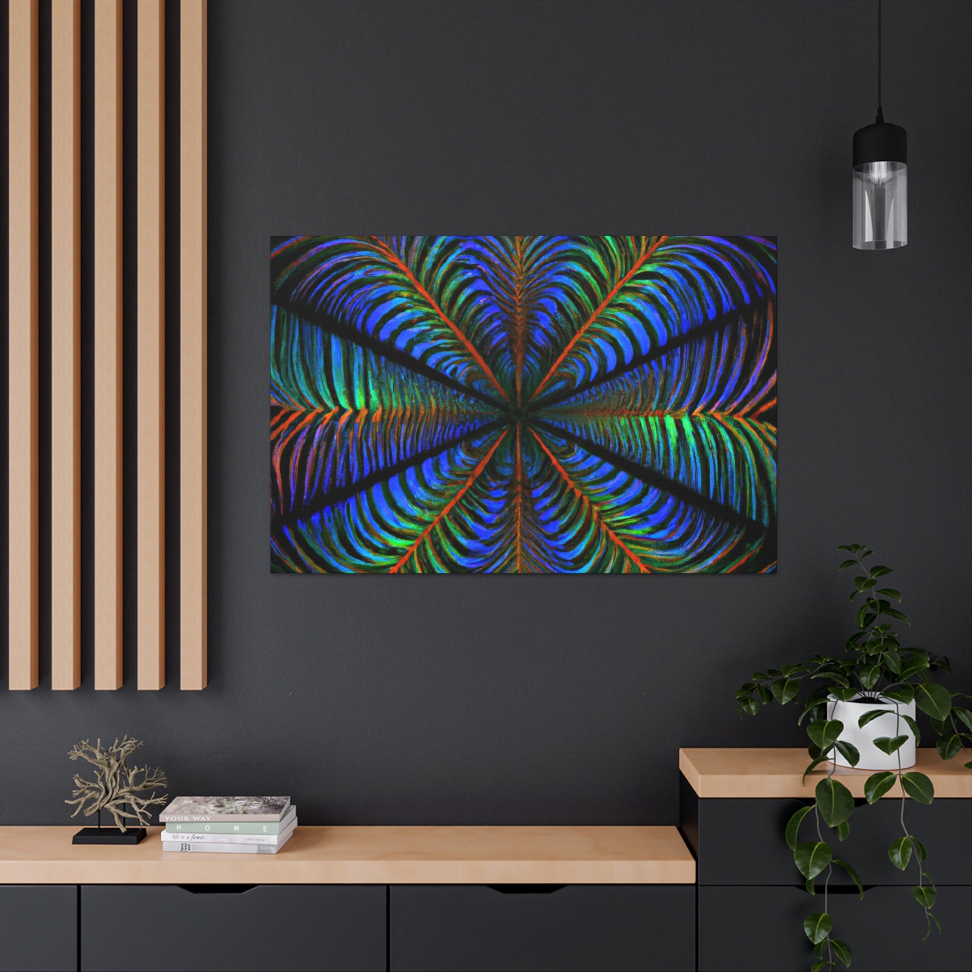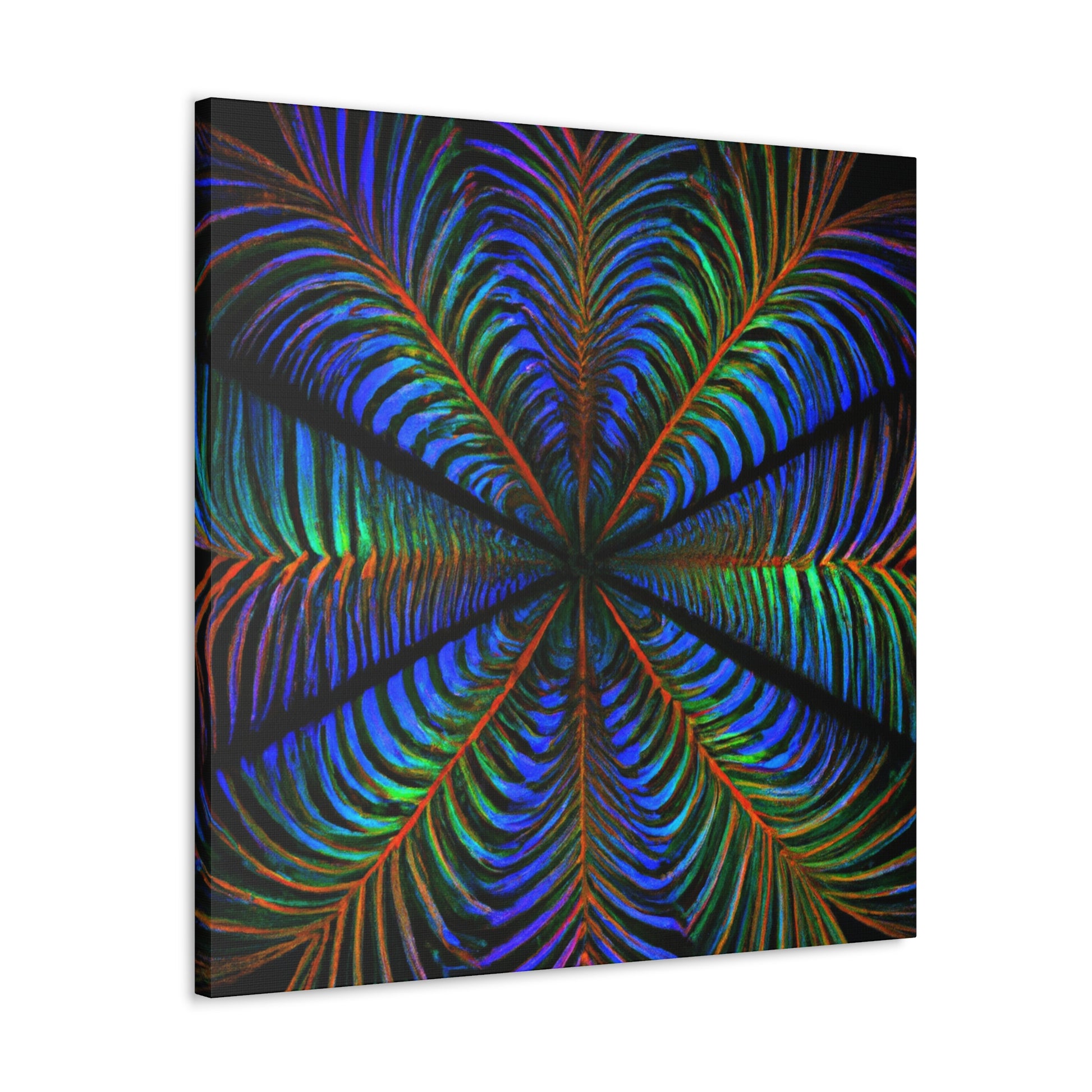 Elevate your walls with this stunning canvas art of trippy geometric palm leaves, kaleidoscope, abstract art, and vibrant colors! This eye-catching digital print features intricate 3D lines, fractals, and majestic patterns that will enliven any living space. Add this statement piece to your collection and admire its unique color palette and brilliant textures. #trippy #kaleidoscope #abstractart #3dlines #fractal #vibrantcolors #palmleaves #digitalprint #statementpiece #canvasart #modernart