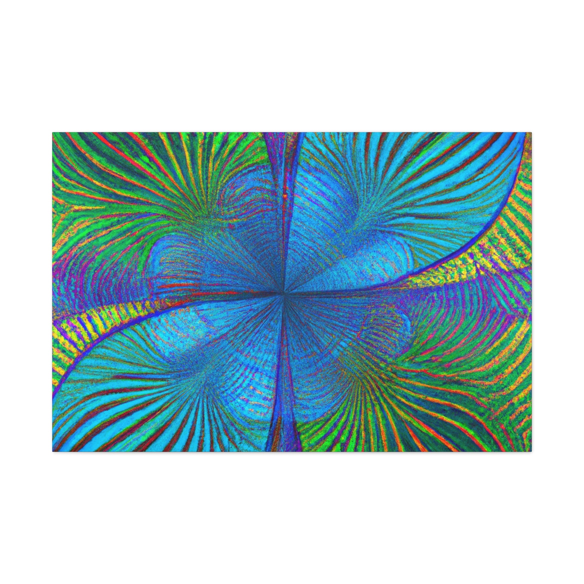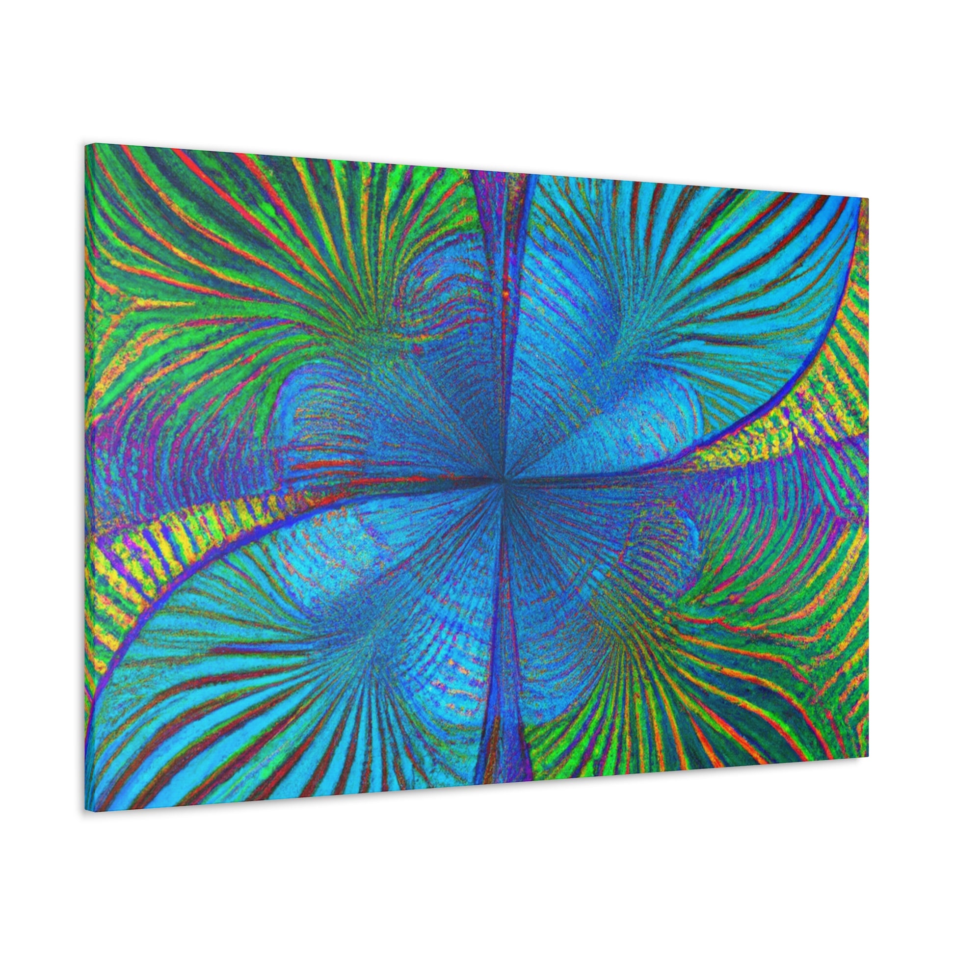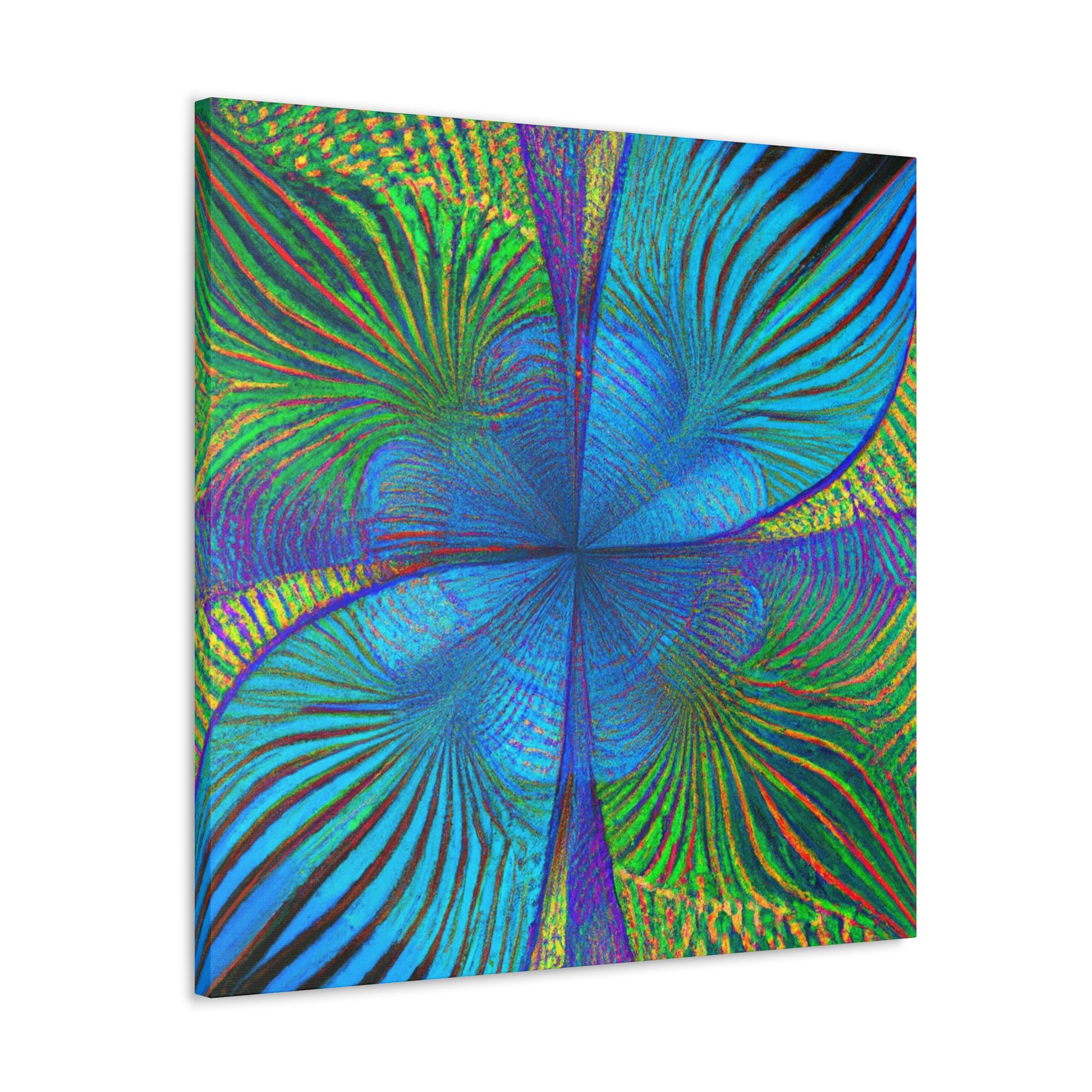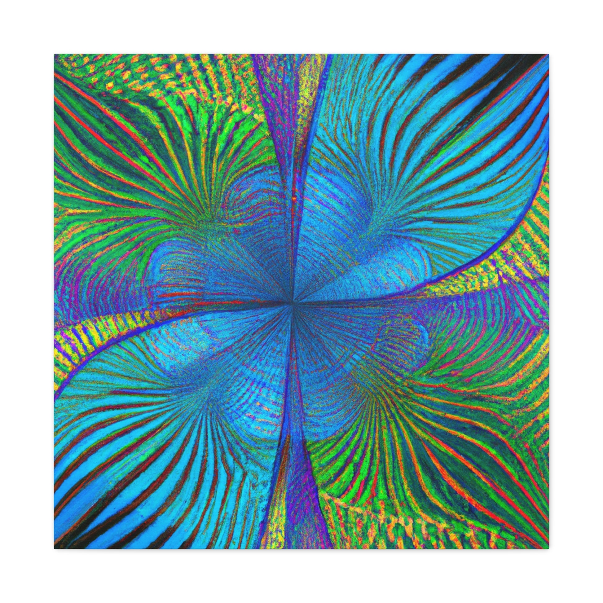 This vivid, abstract canvas features a distinct geometric pattern of kaleidoscope palm leaves in luxurious, eye-catching 3D lines and an electric color palette. The combination of ultra-modern and depth creates a mesmerizing effect that will make a statement in any room. Invite a luxurious, trippy vibe into your living space and experience the energy this art brings. #abstractart #digitalart #vibrantcolors #kaleidoscope #fractal #trippyart #palmleaves #3Dlines #geometricart #interiorinspo #modernart