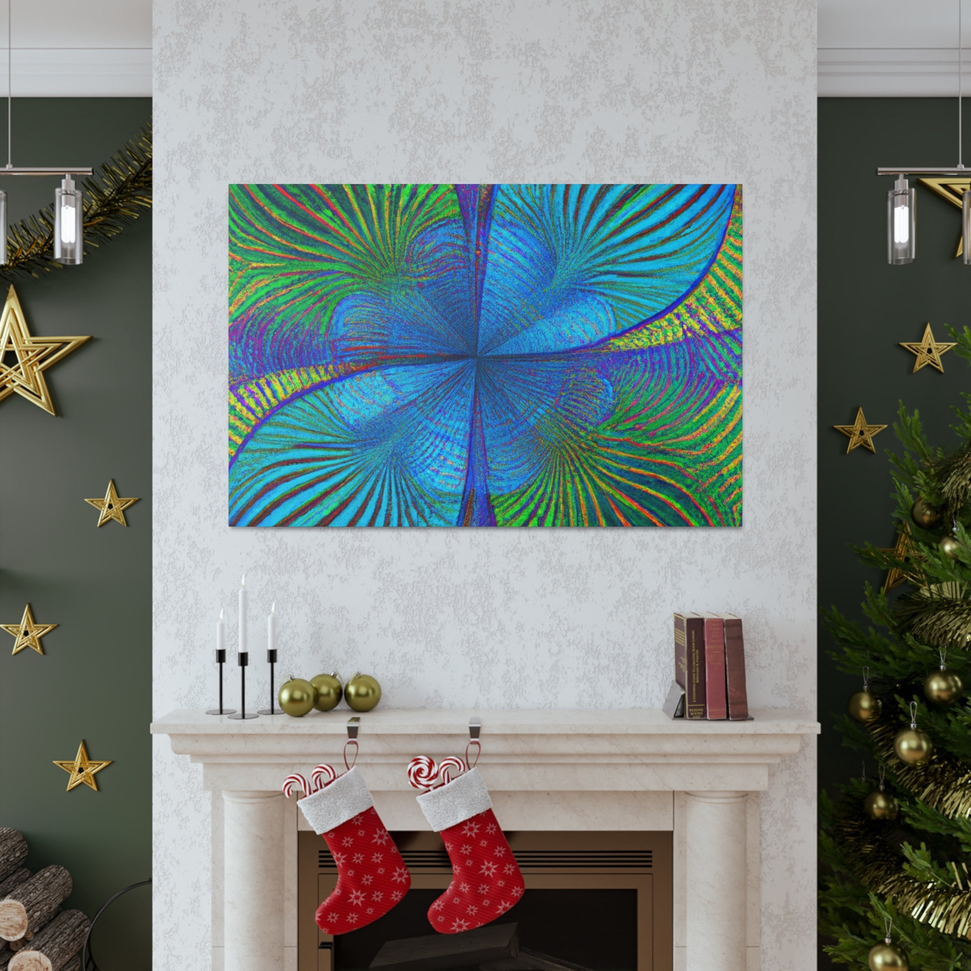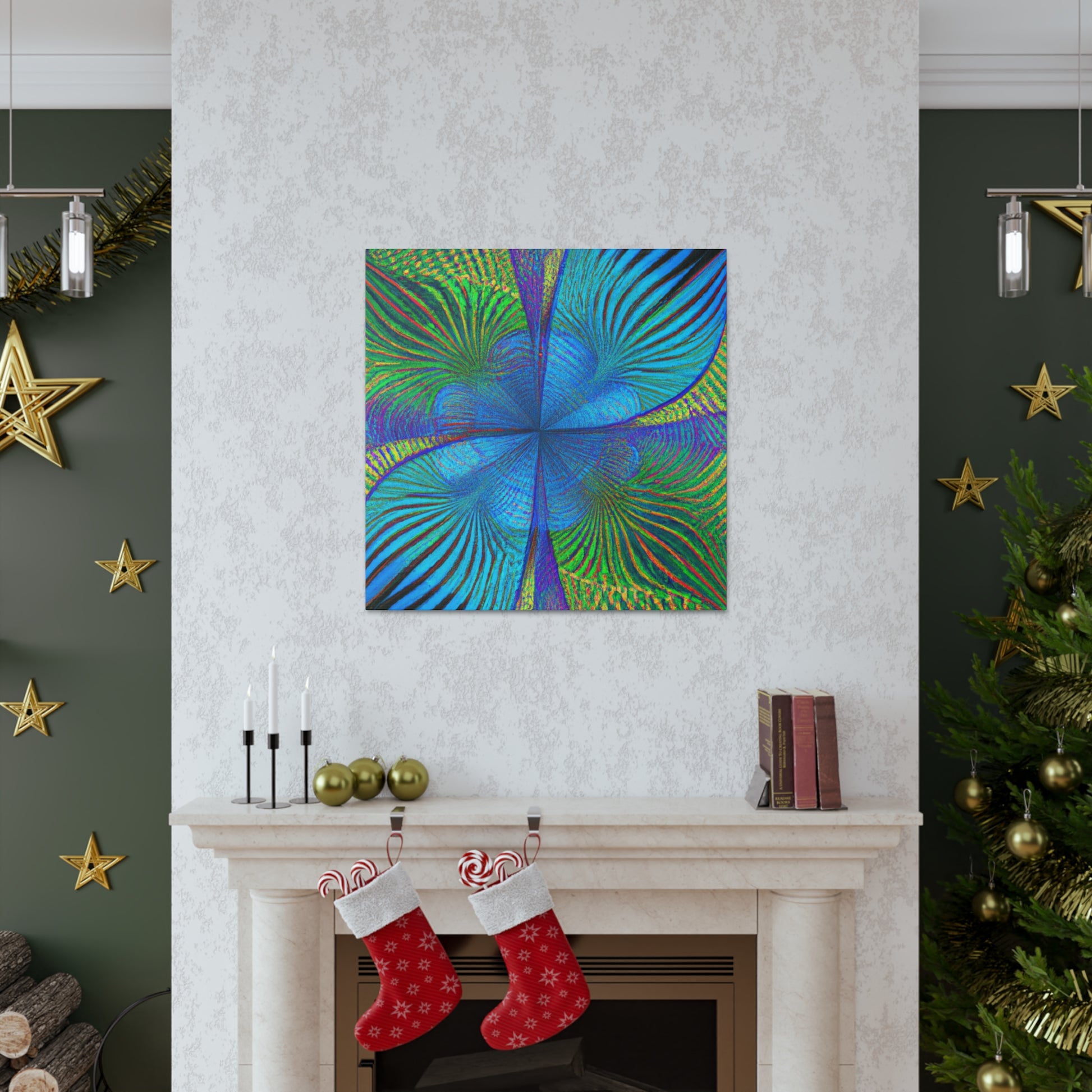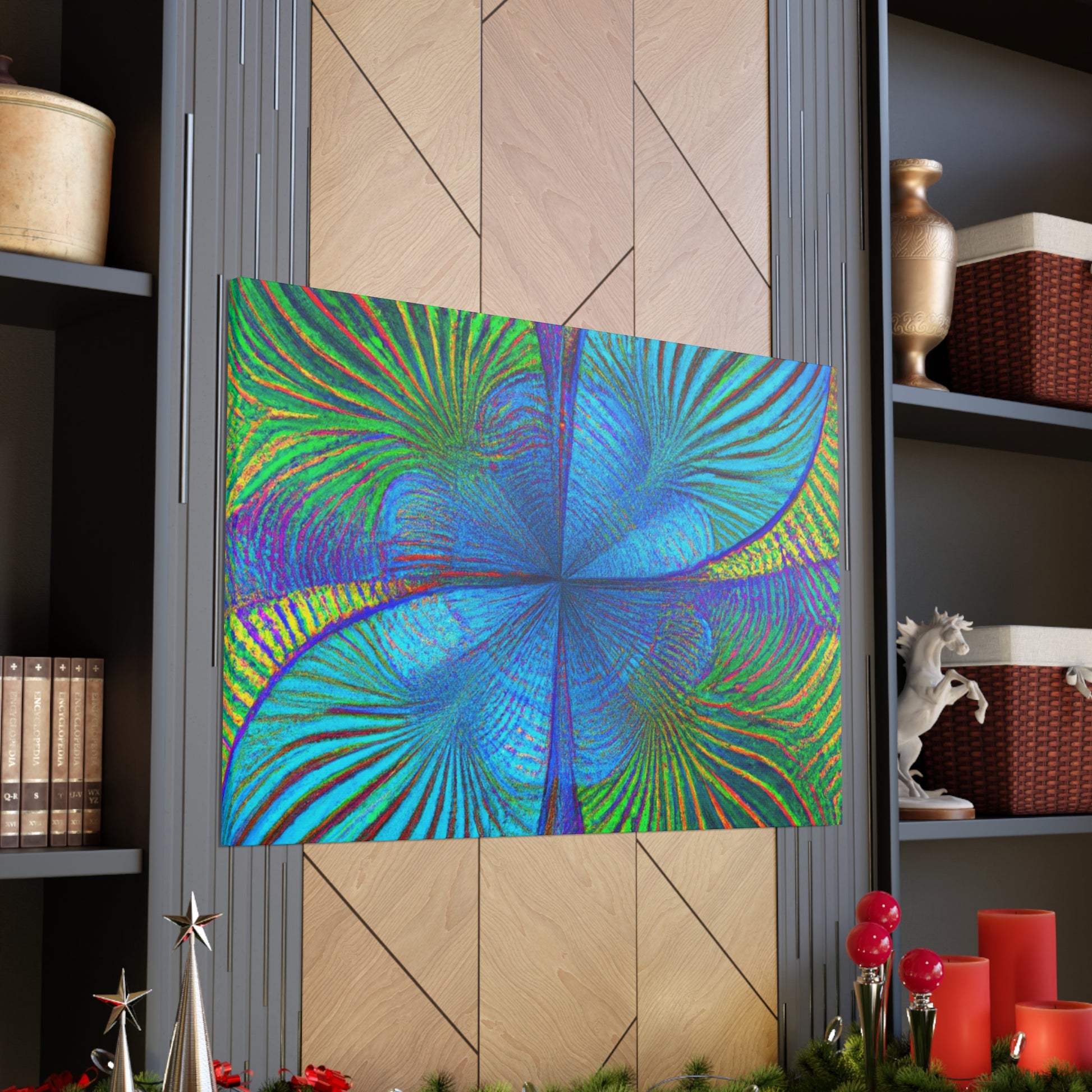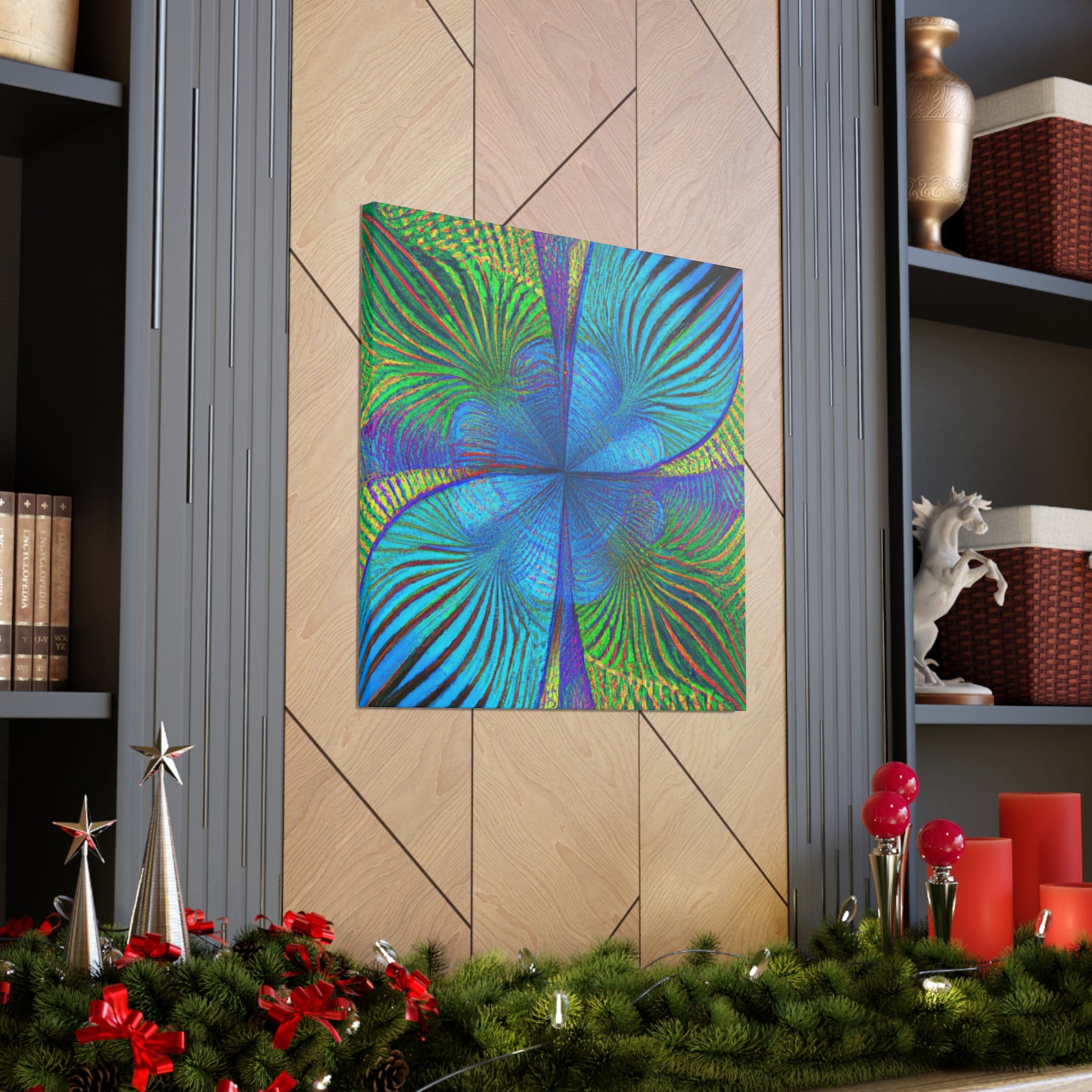 This vivid, abstract canvas features a distinct geometric pattern of kaleidoscope palm leaves in luxurious, eye-catching 3D lines and an electric color palette. The combination of ultra-modern and depth creates a mesmerizing effect that will make a statement in any room. Invite a luxurious, trippy vibe into your living space and experience the energy this art brings. #abstractart #digitalart #vibrantcolors #kaleidoscope #fractal #trippyart #palmleaves #3Dlines #geometricart #interiorinspo #modernart