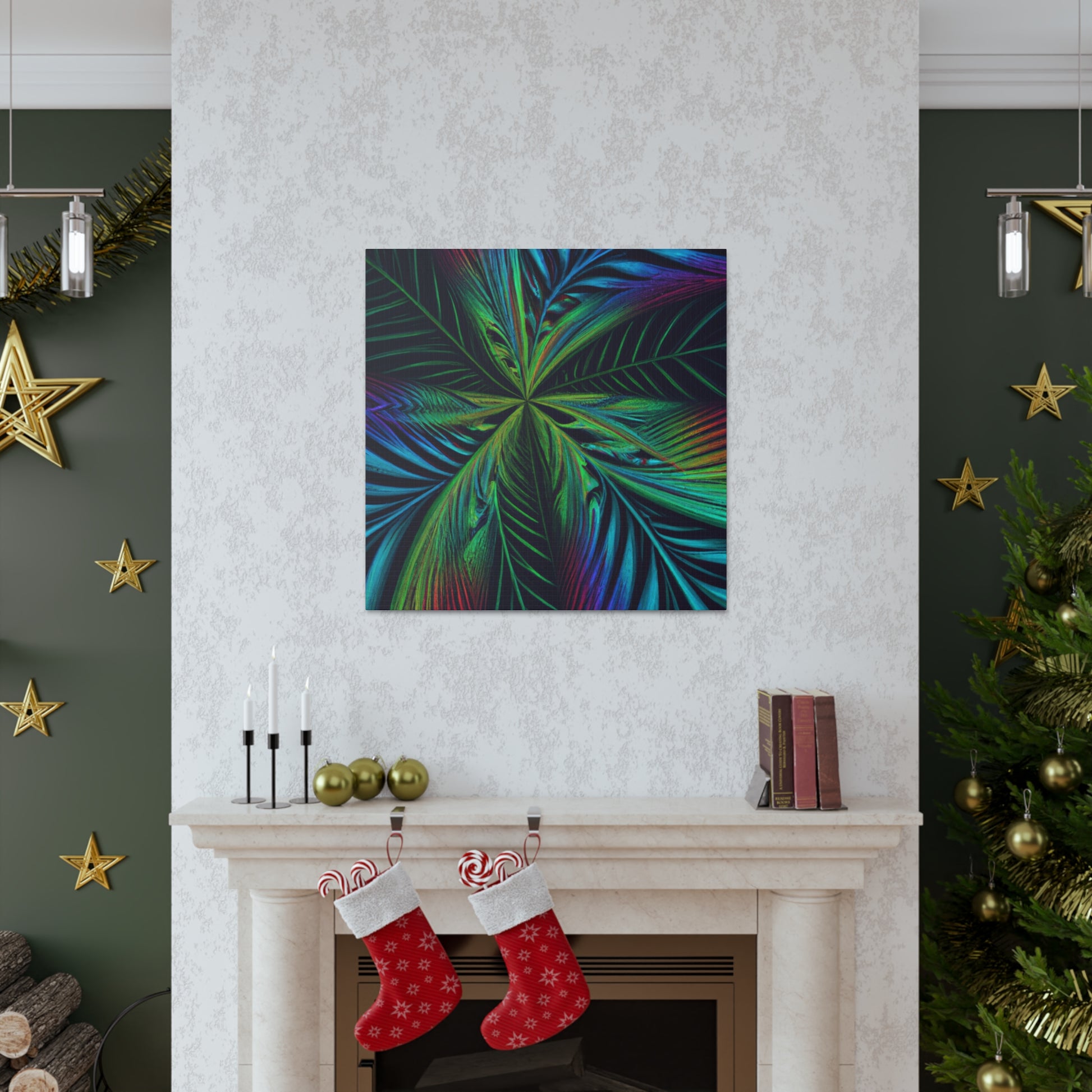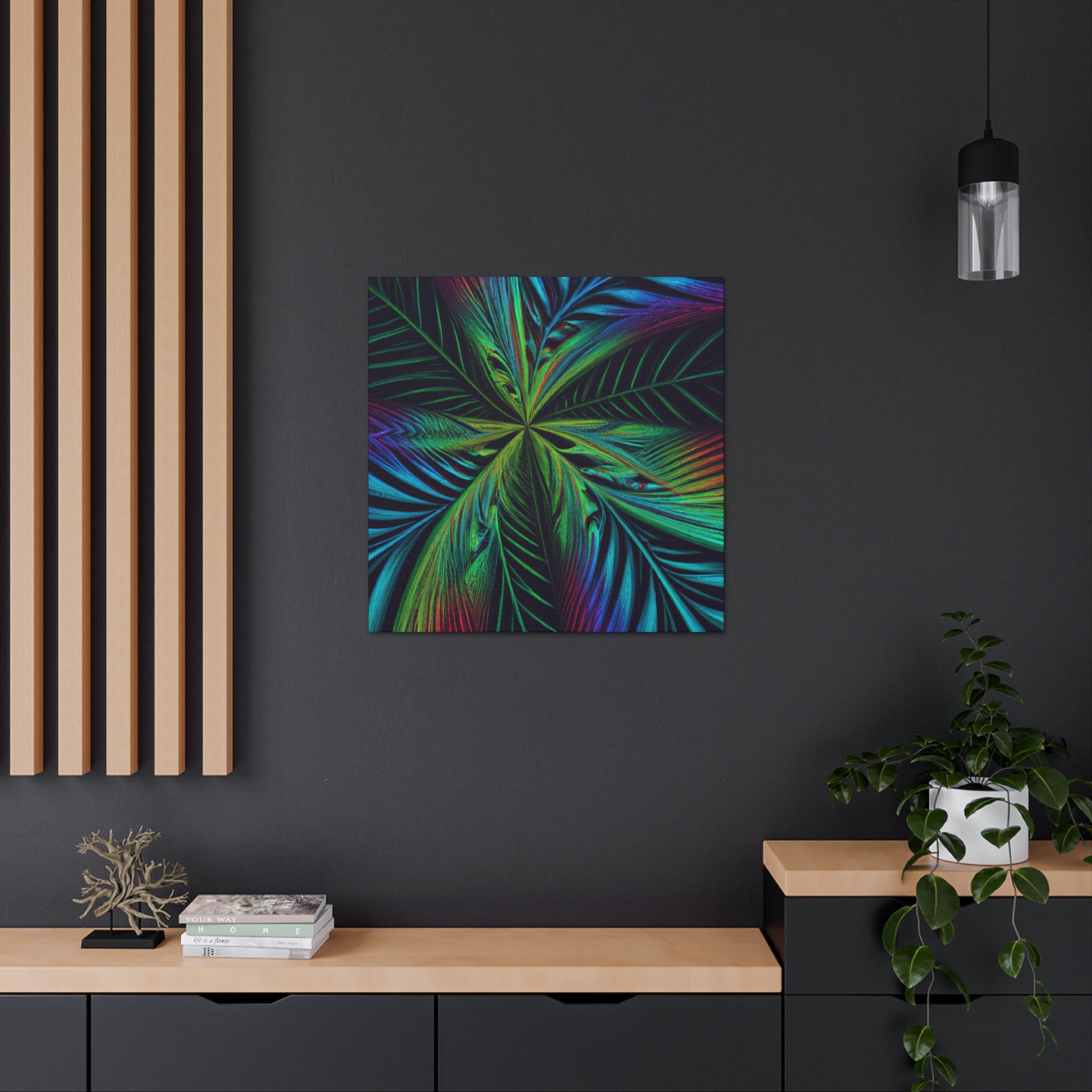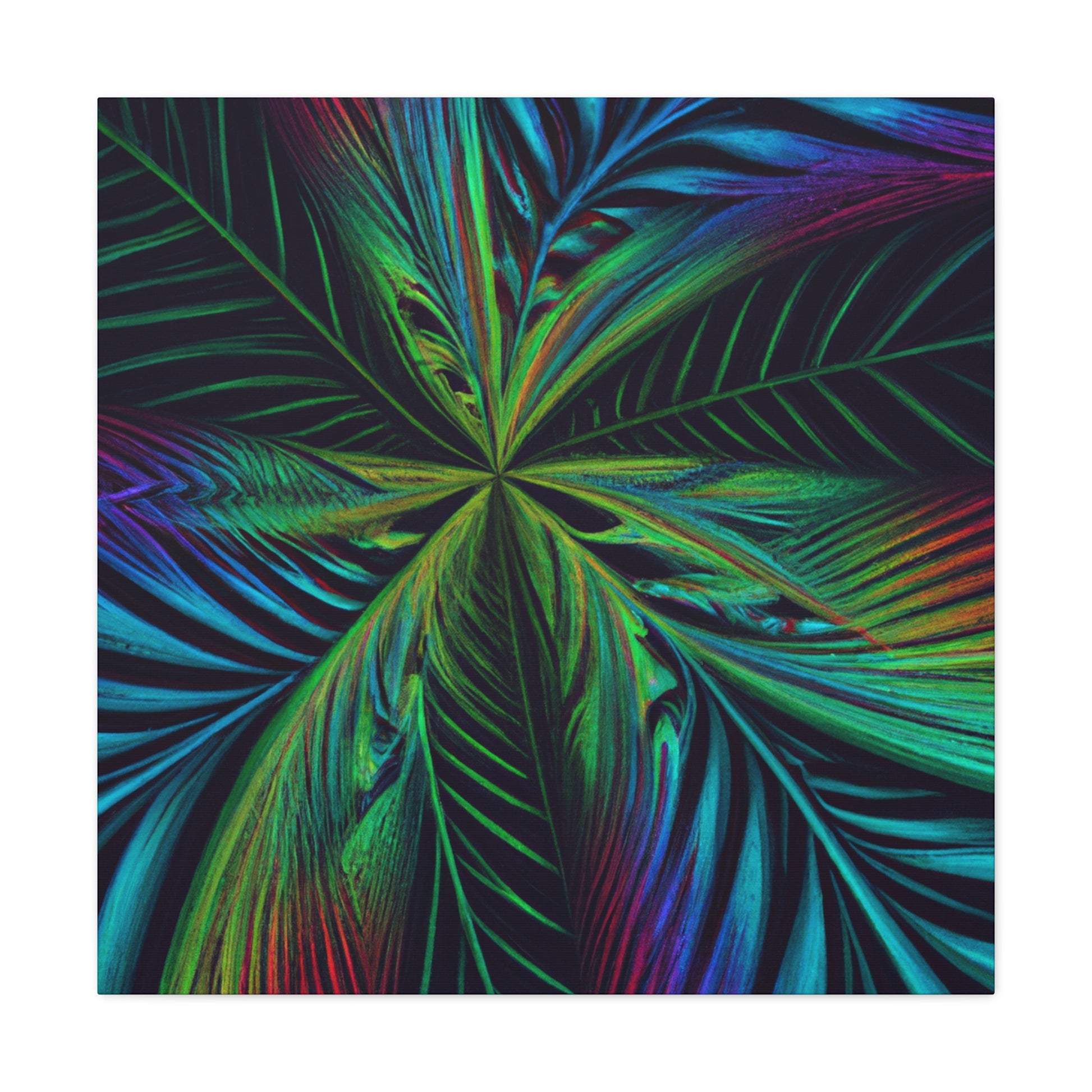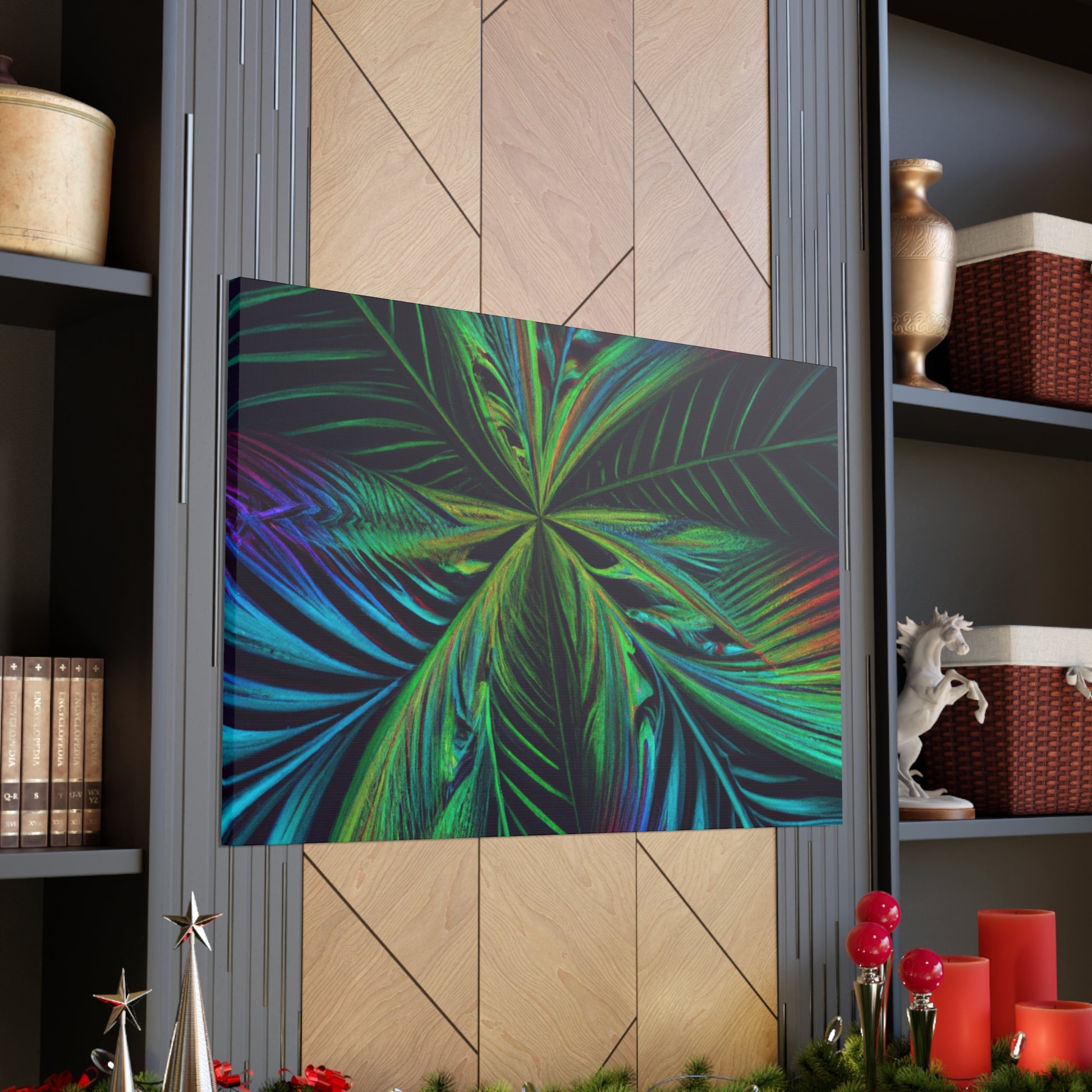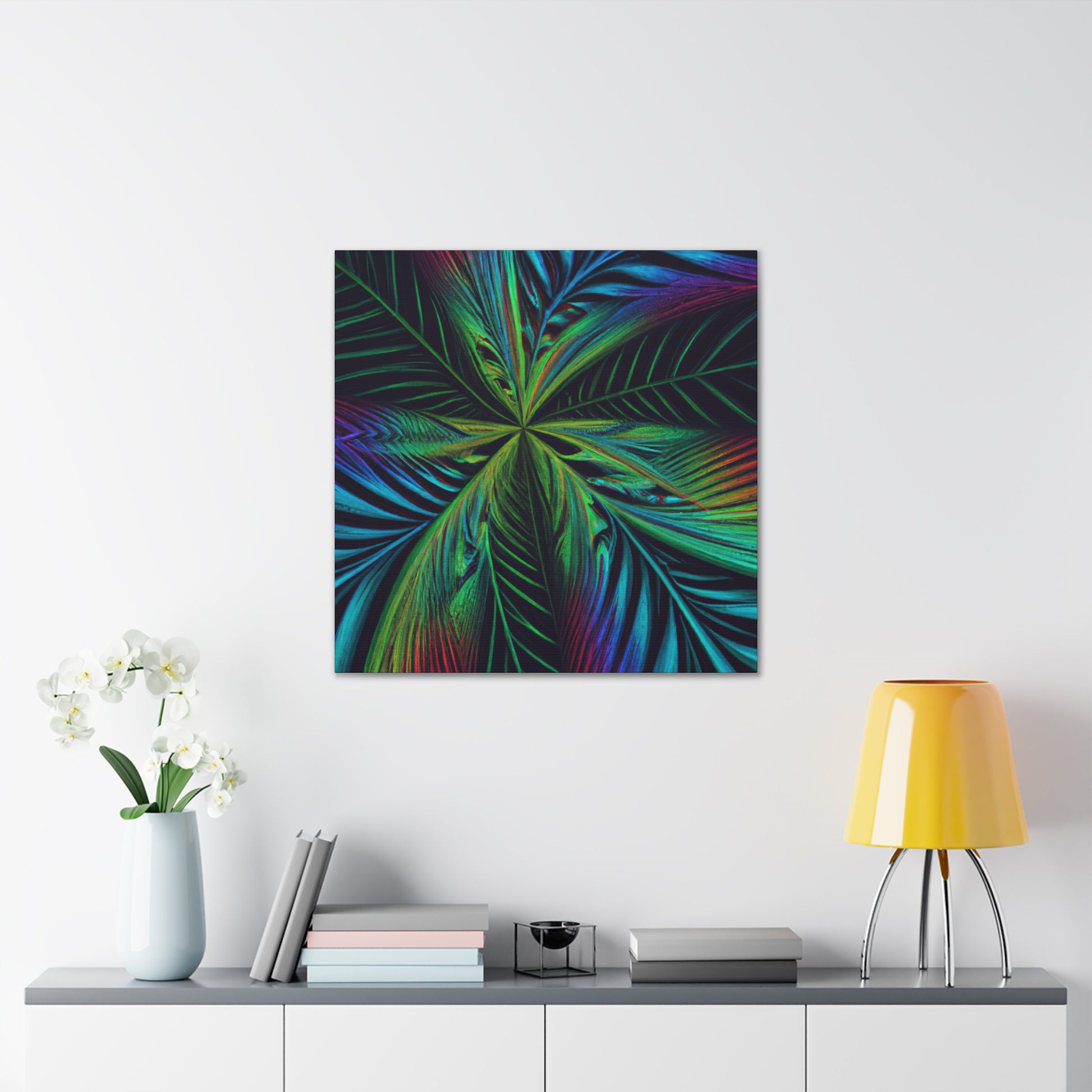 This canvas of Trippy Geometric Palm Leaves is sure to add a captivating touch to any space. It features kaleidoscope patterns, abstract shapes, vivid colors and 3D lines. The mix of intricate fractals creates an intriguing optical illusion. Bring this dynamic artwork into your home and you won't be disappointed! #abstractart #trippypalmleaves #kaleidoscope #fractaleffect #visualillusion #fractaldesign #intricatepatterns #mystifyinglook #visualenhancement #vibrantcolors #abstractshapes