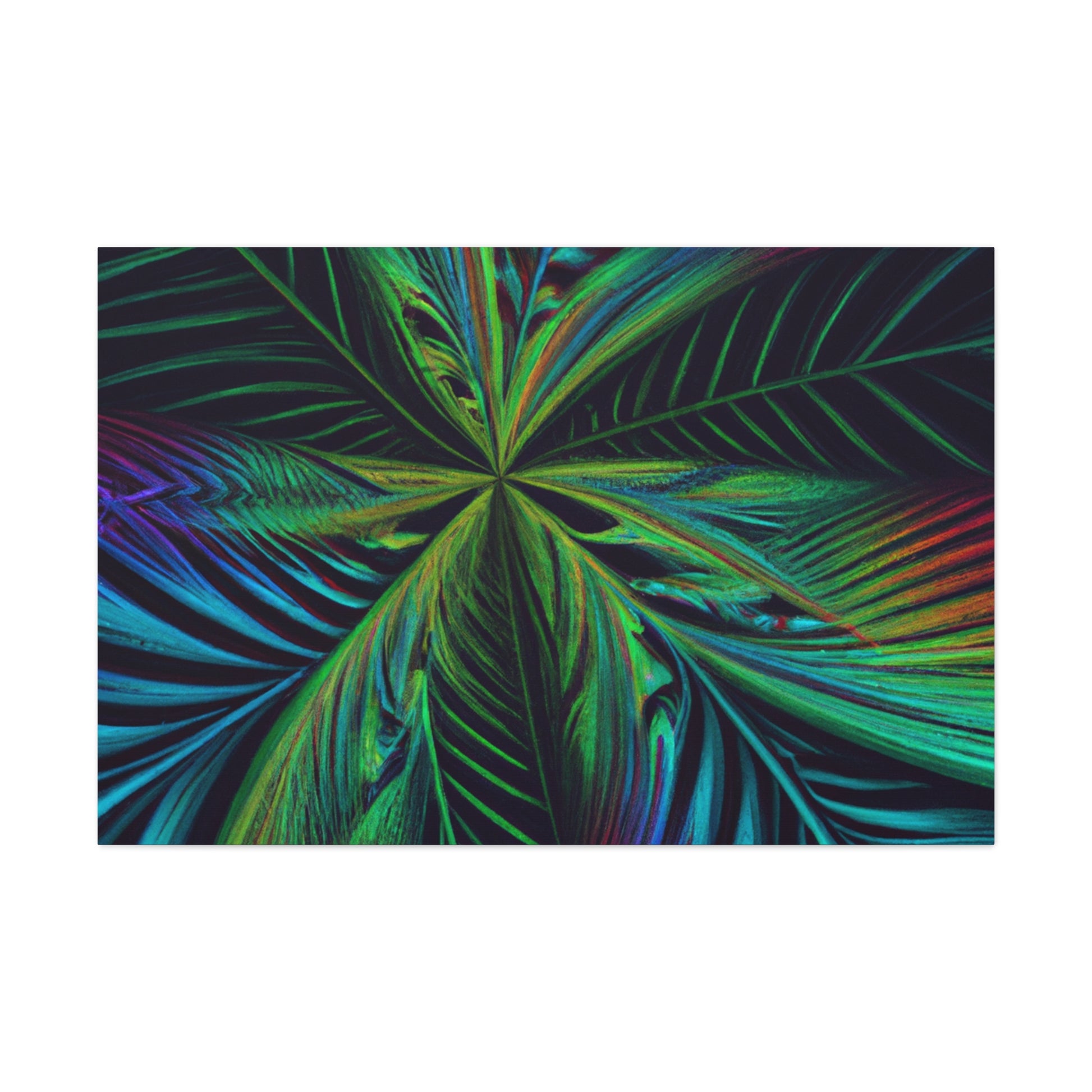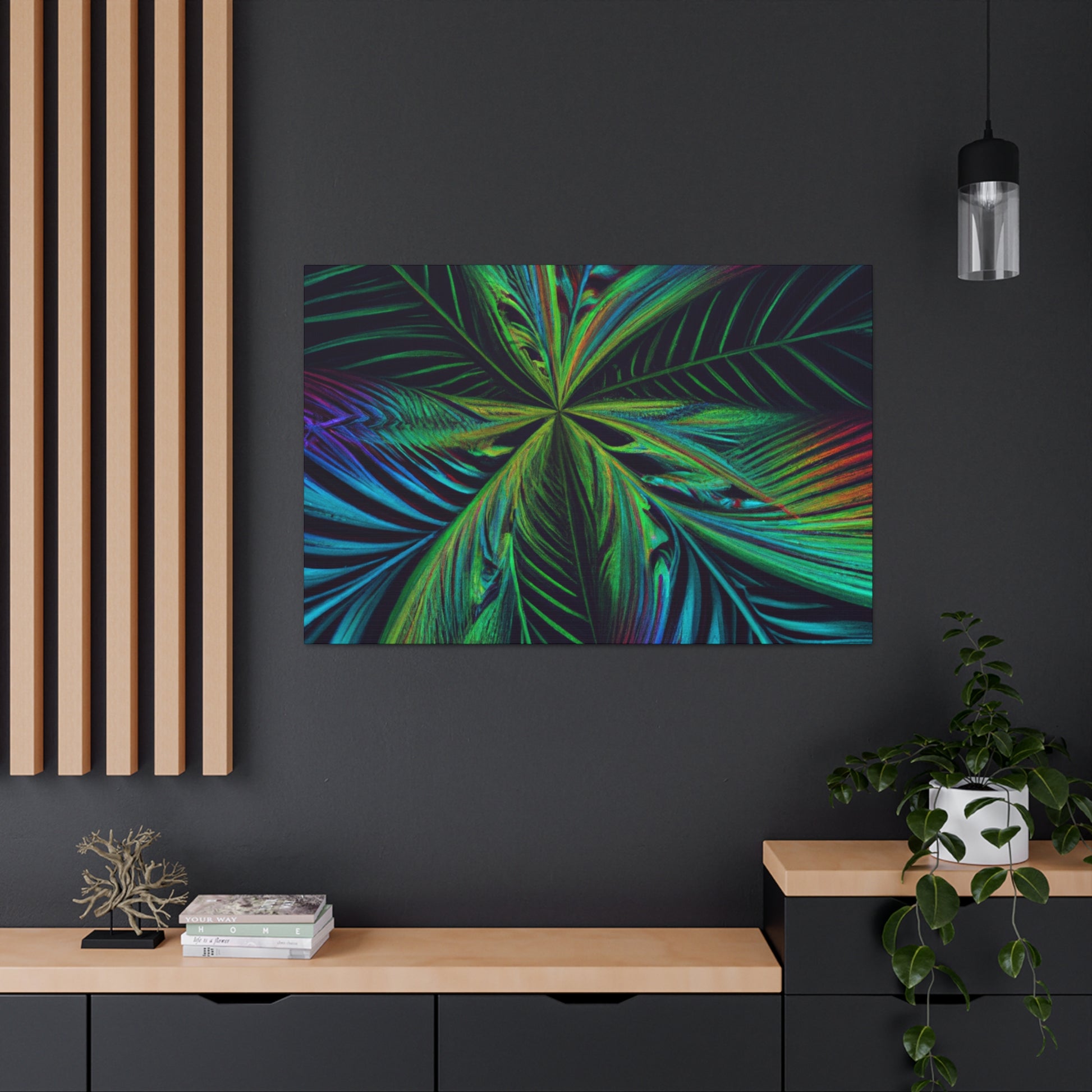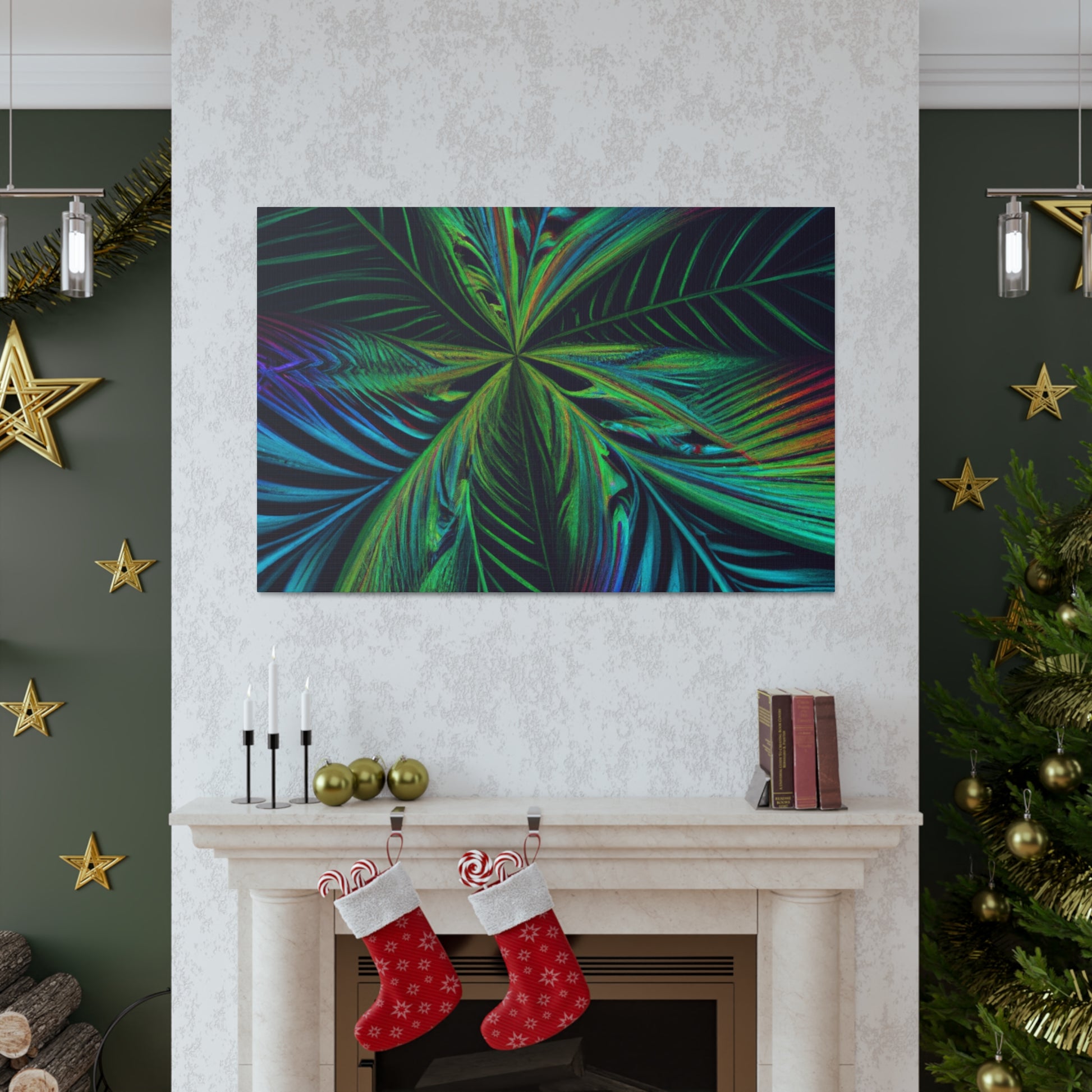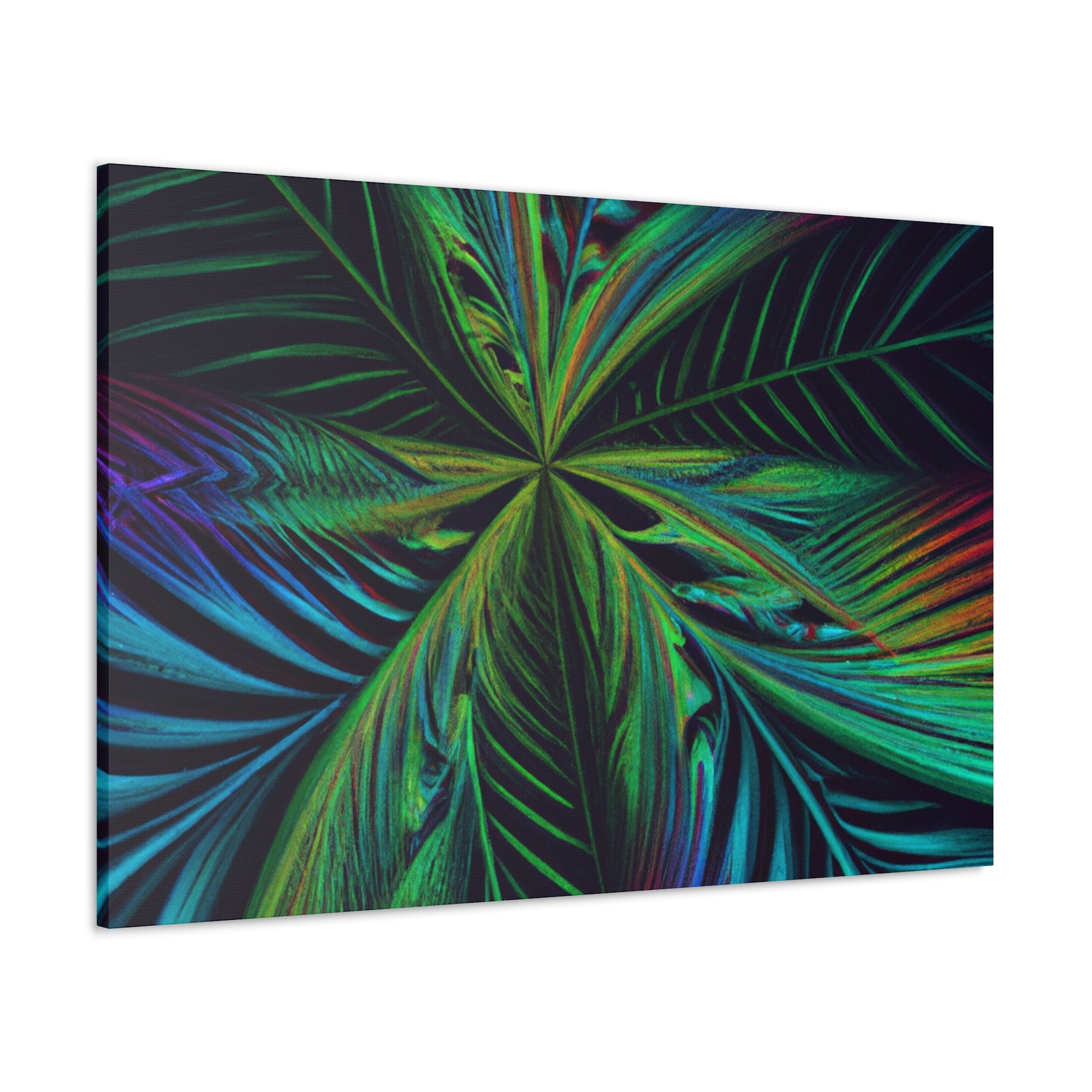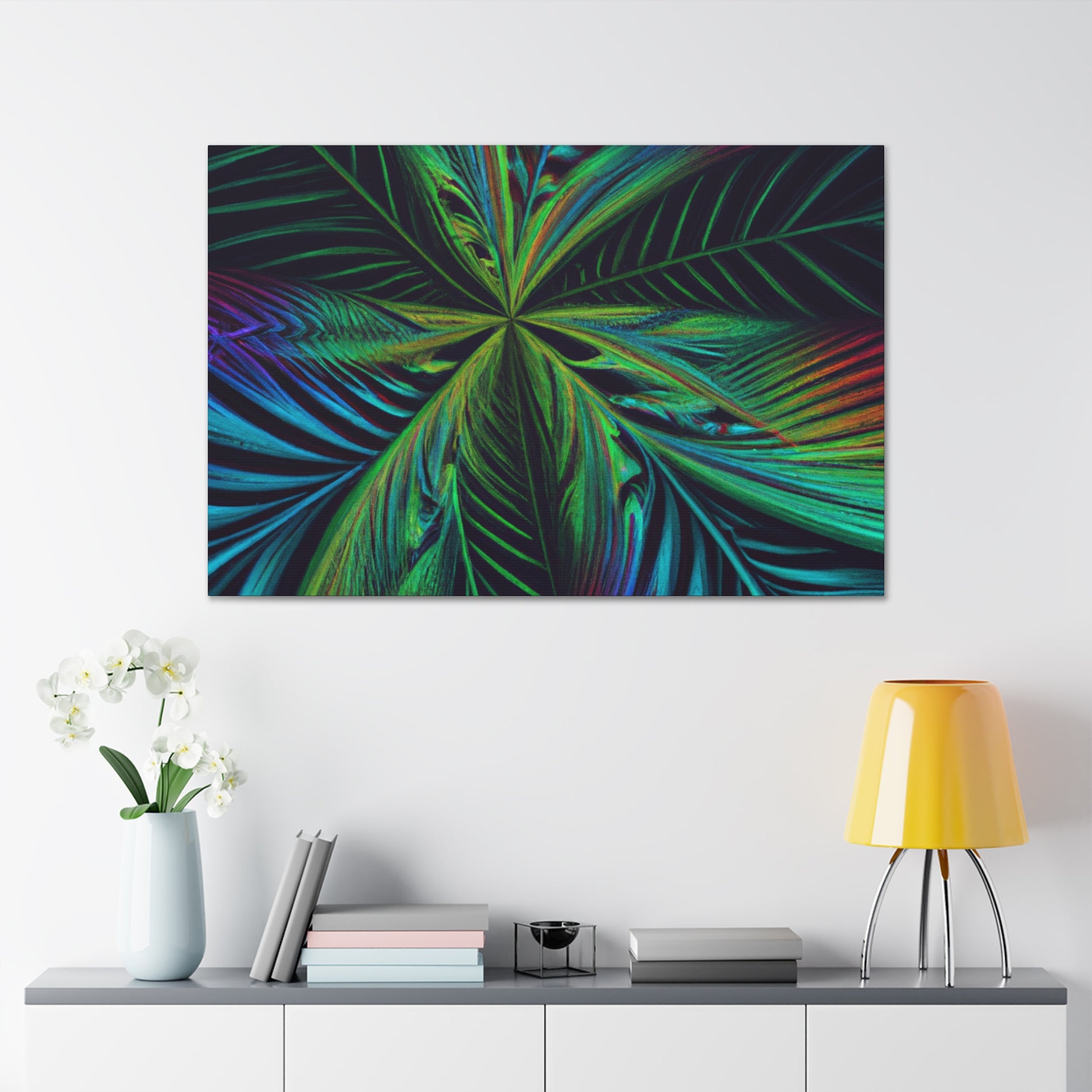 This canvas of Trippy Geometric Palm Leaves is sure to add a captivating touch to any space. It features kaleidoscope patterns, abstract shapes, vivid colors and 3D lines. The mix of intricate fractals creates an intriguing optical illusion. Bring this dynamic artwork into your home and you won't be disappointed! #abstractart #trippypalmleaves #kaleidoscope #fractaleffect #visualillusion #fractaldesign #intricatepatterns #mystifyinglook #visualenhancement #vibrantcolors #abstractshapes