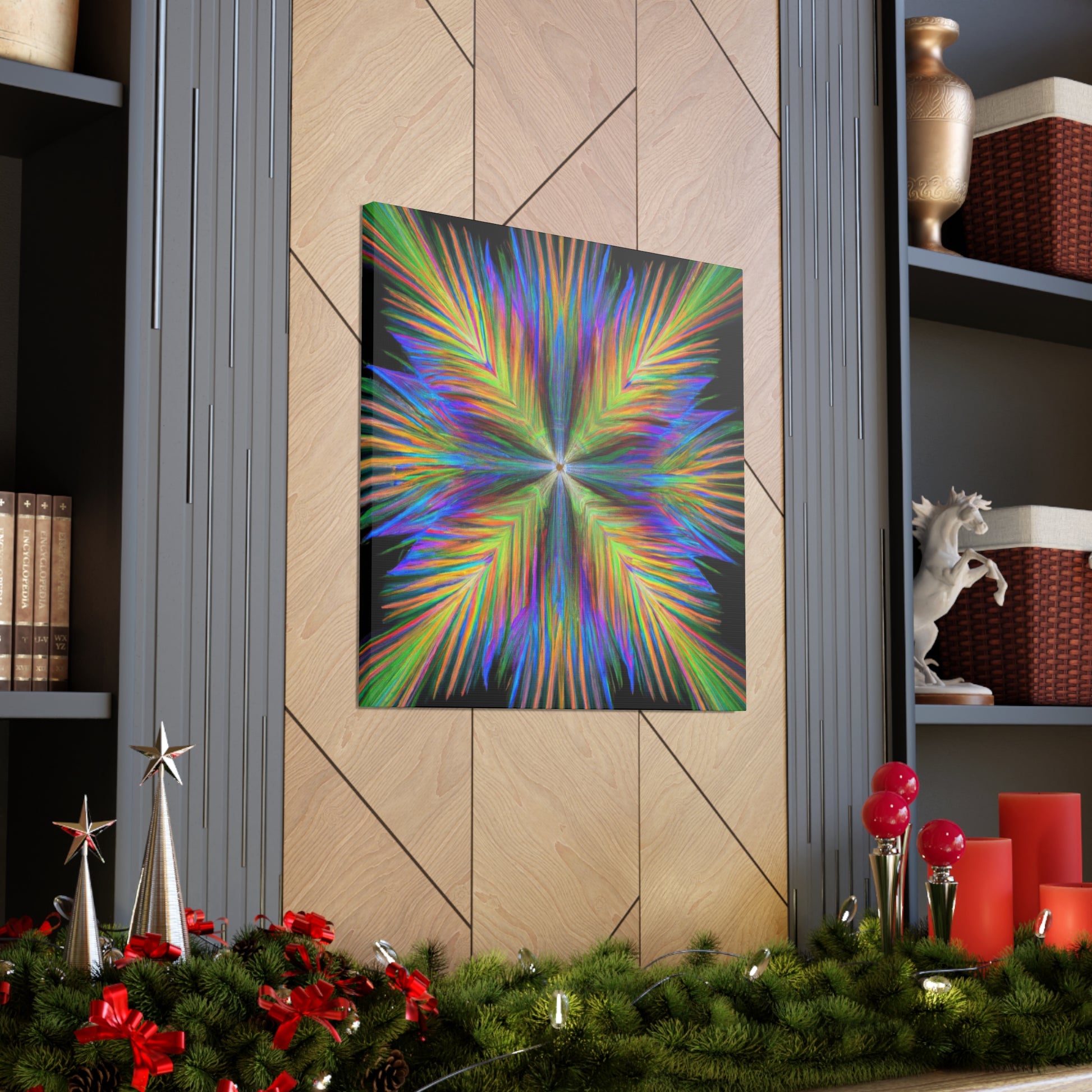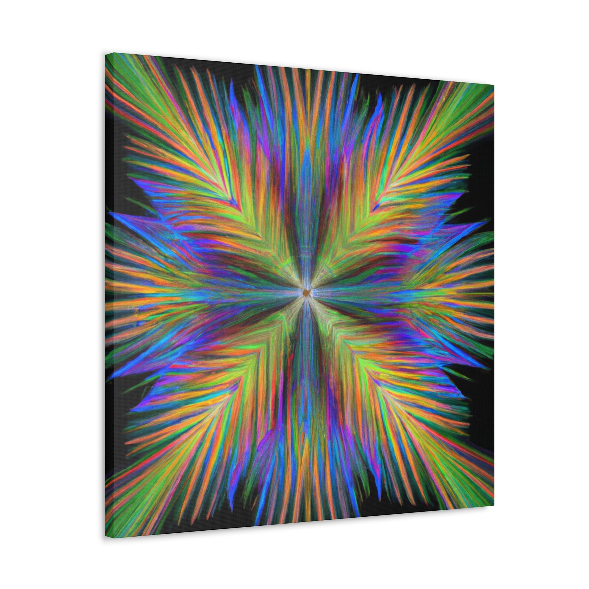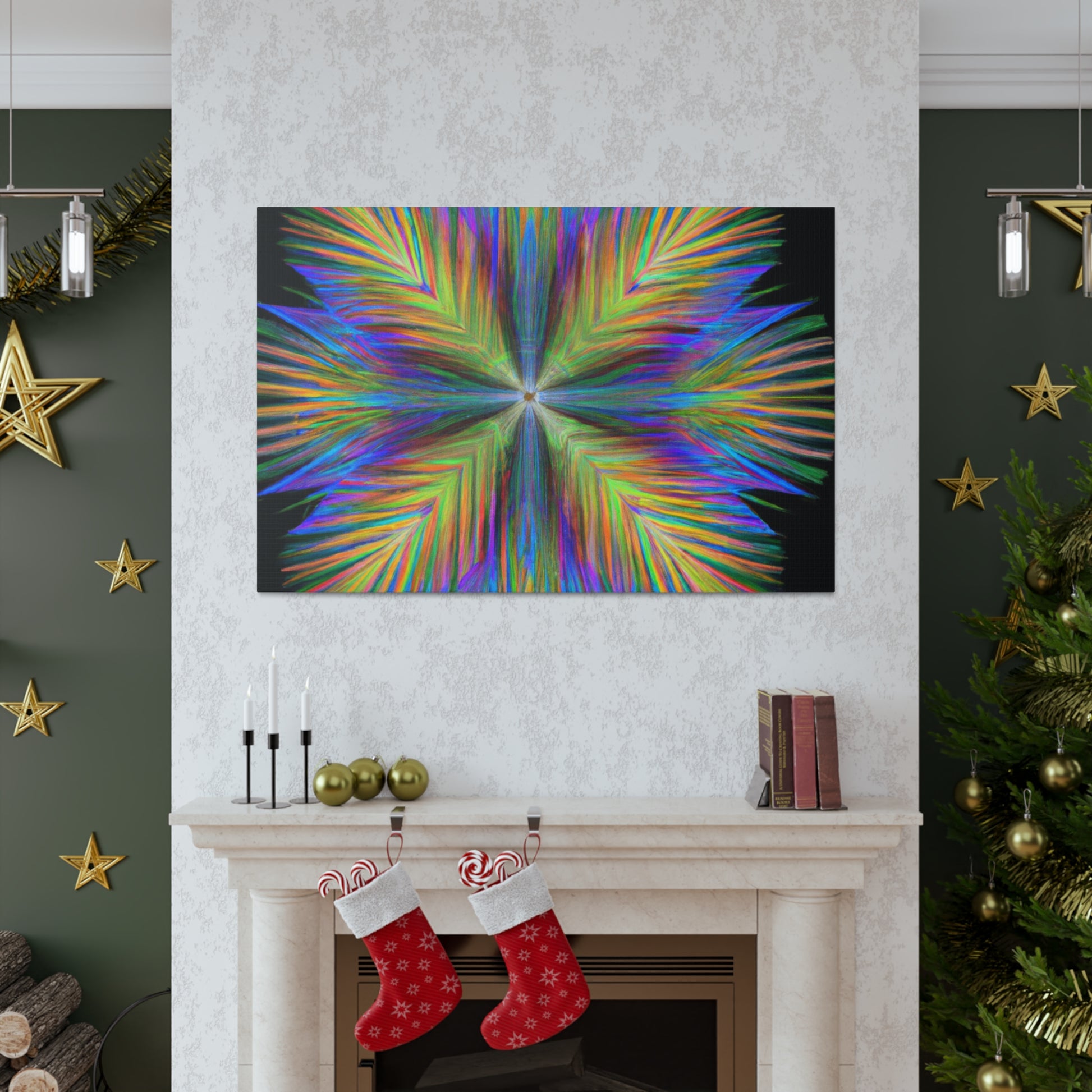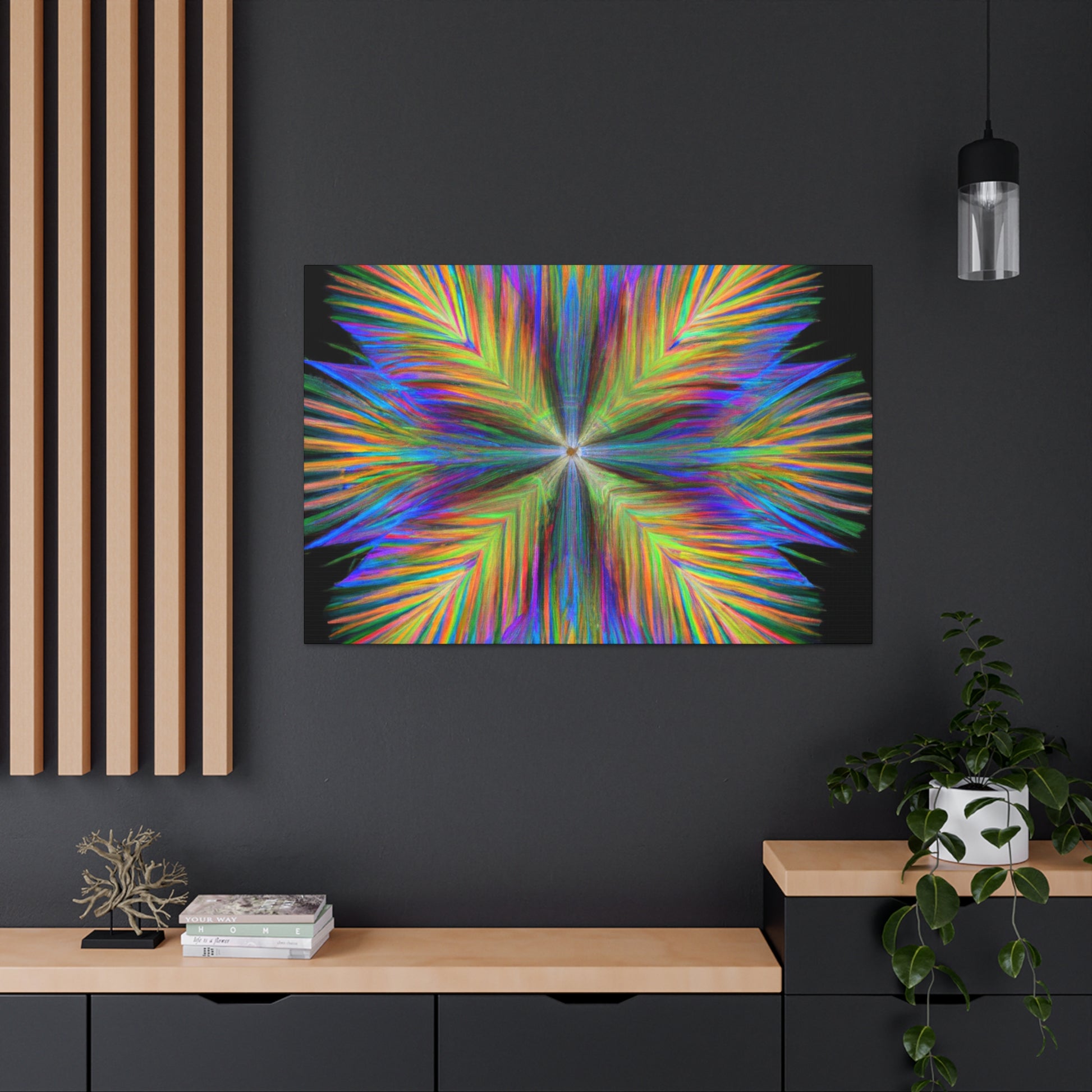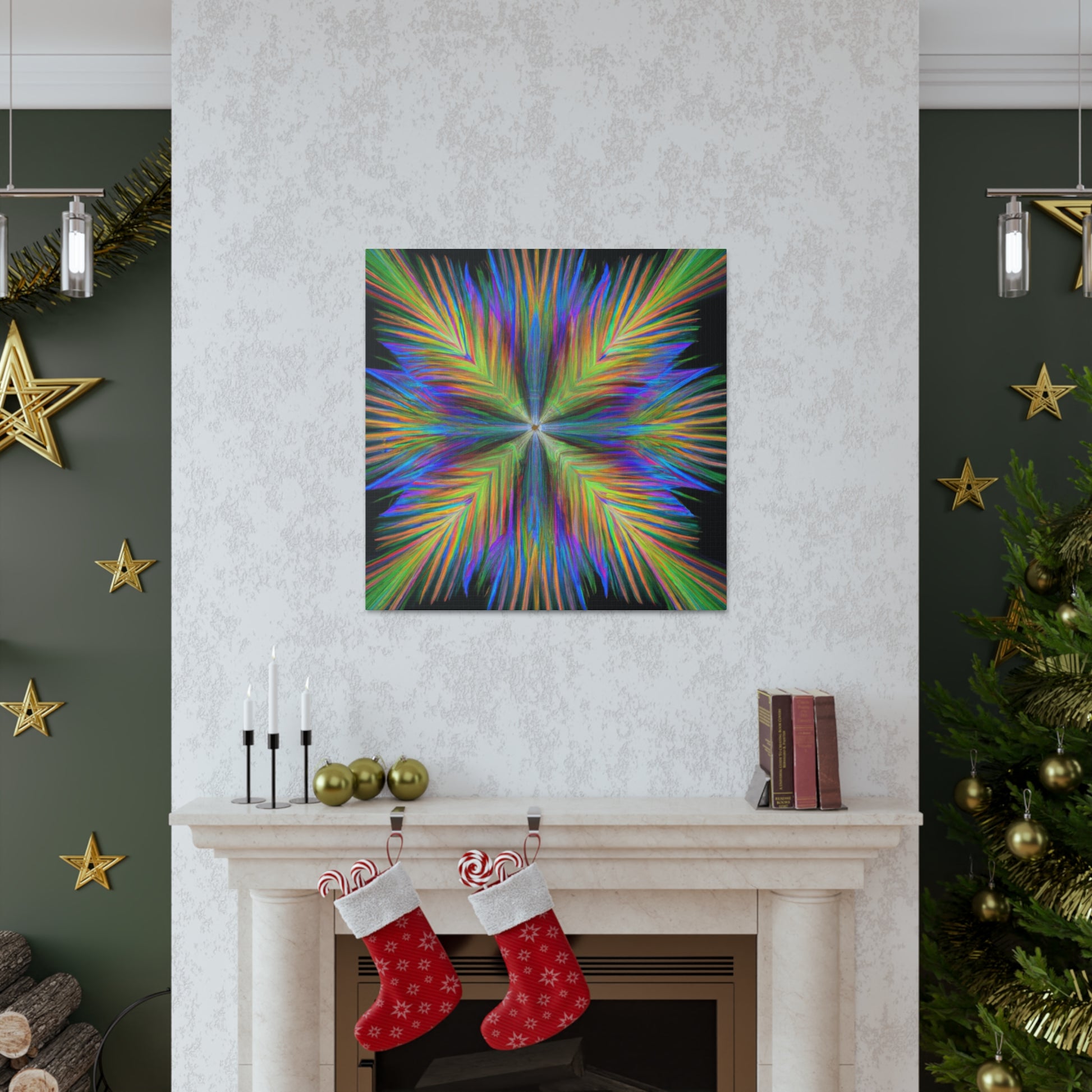 This Trippy geometric palm Leaves, kaleidoscope, abstract, digital art, vibrant colors, 3D lines, and fractal canvas is sure to bring some life to your living space! The combination of the colors will draw the eye and leave viewers captivated. Perfect for a bedroom, living room, or any space in need of some bright and lively cheer. #trippy #abstractart #artdecor #geometricart #vibrantcolors #kaleidoscope #palmleaves #3Dlines #fractal #digitalart #canvasart