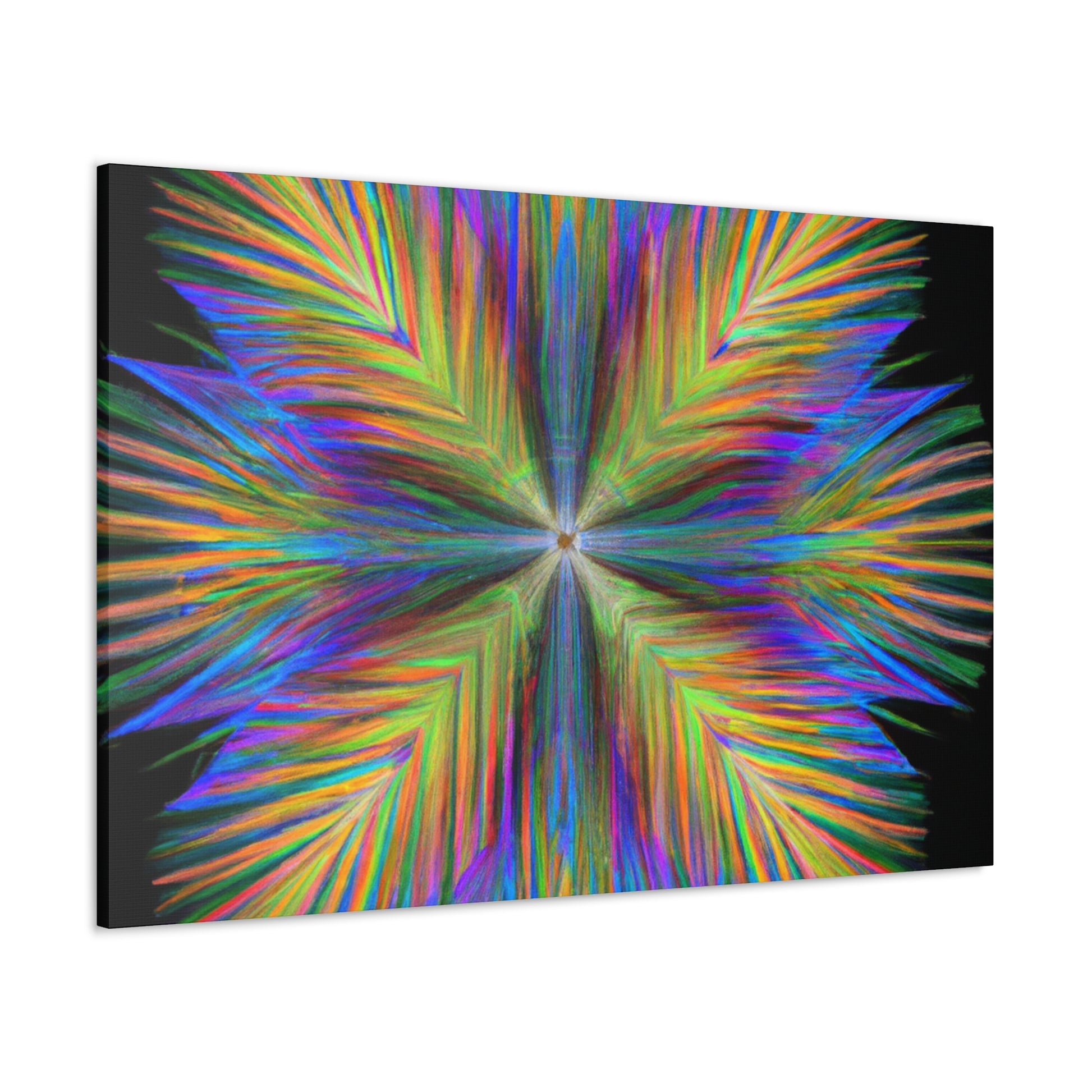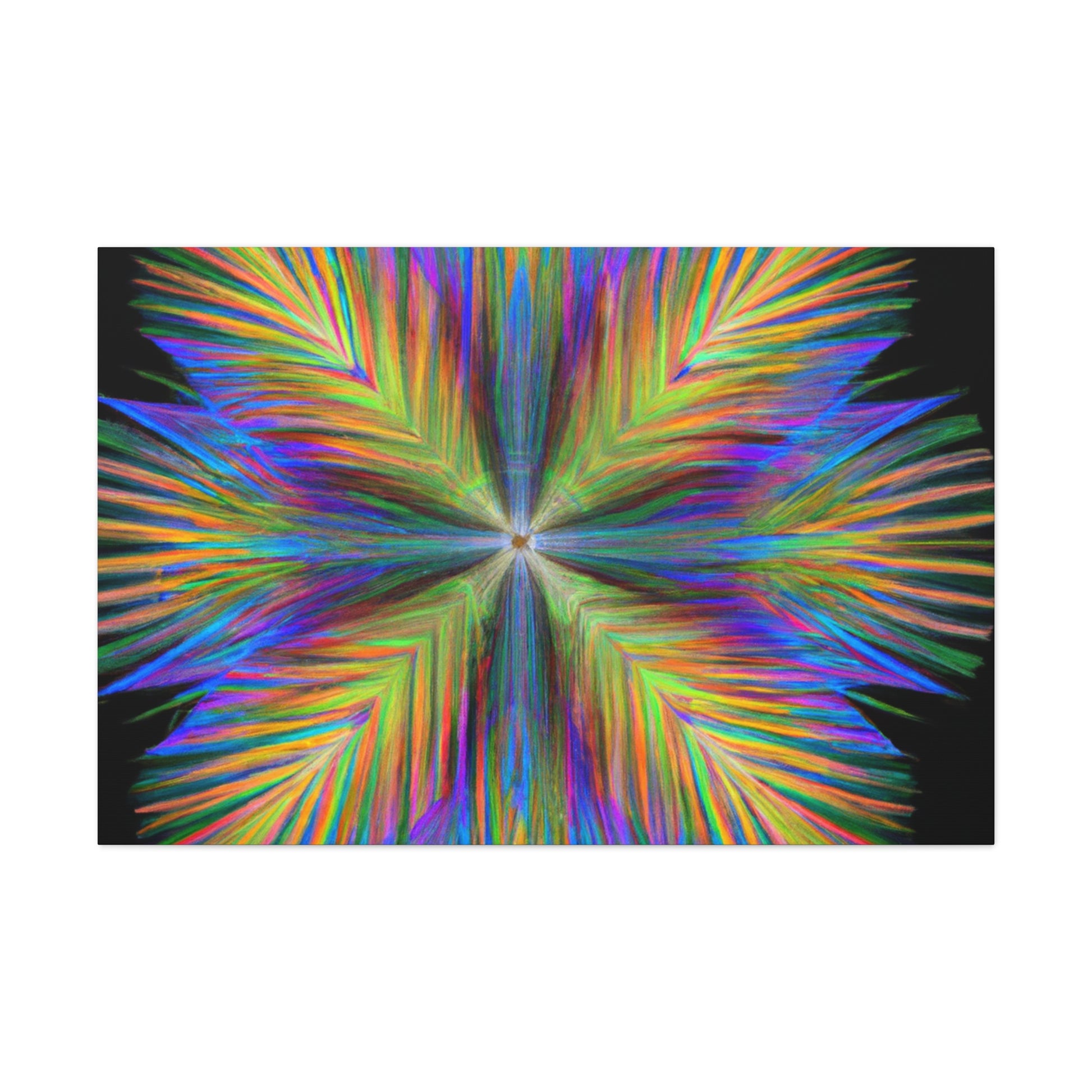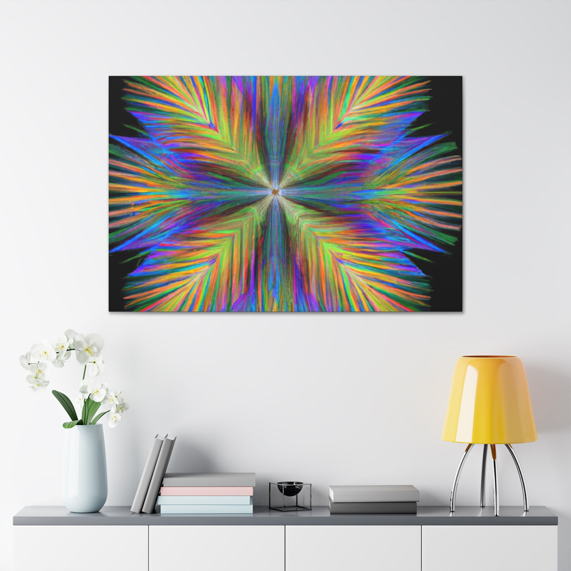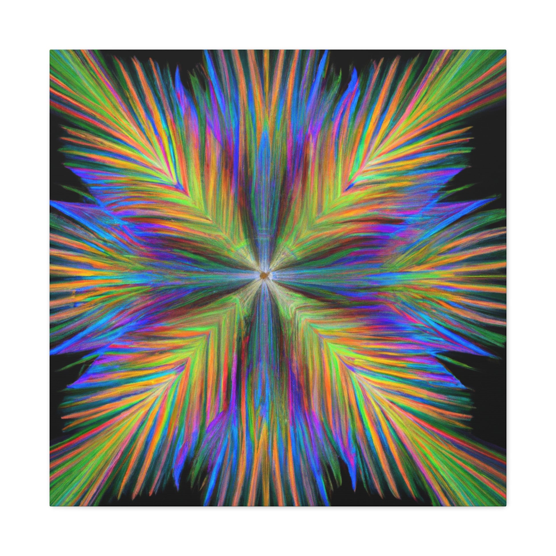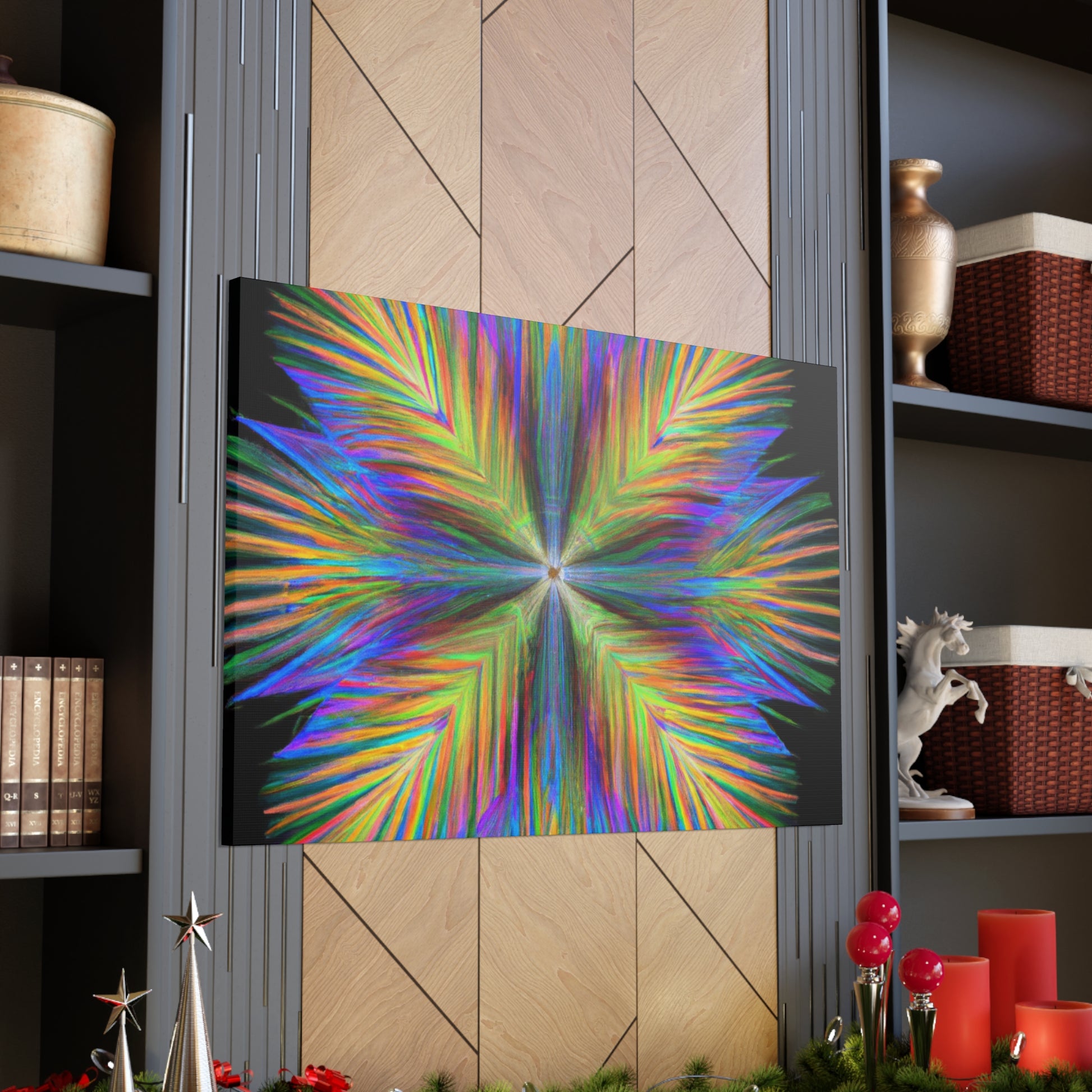 This Trippy geometric palm Leaves, kaleidoscope, abstract, digital art, vibrant colors, 3D lines, and fractal canvas is sure to bring some life to your living space! The combination of the colors will draw the eye and leave viewers captivated. Perfect for a bedroom, living room, or any space in need of some bright and lively cheer. #trippy #abstractart #artdecor #geometricart #vibrantcolors #kaleidoscope #palmleaves #3Dlines #fractal #digitalart #canvasart