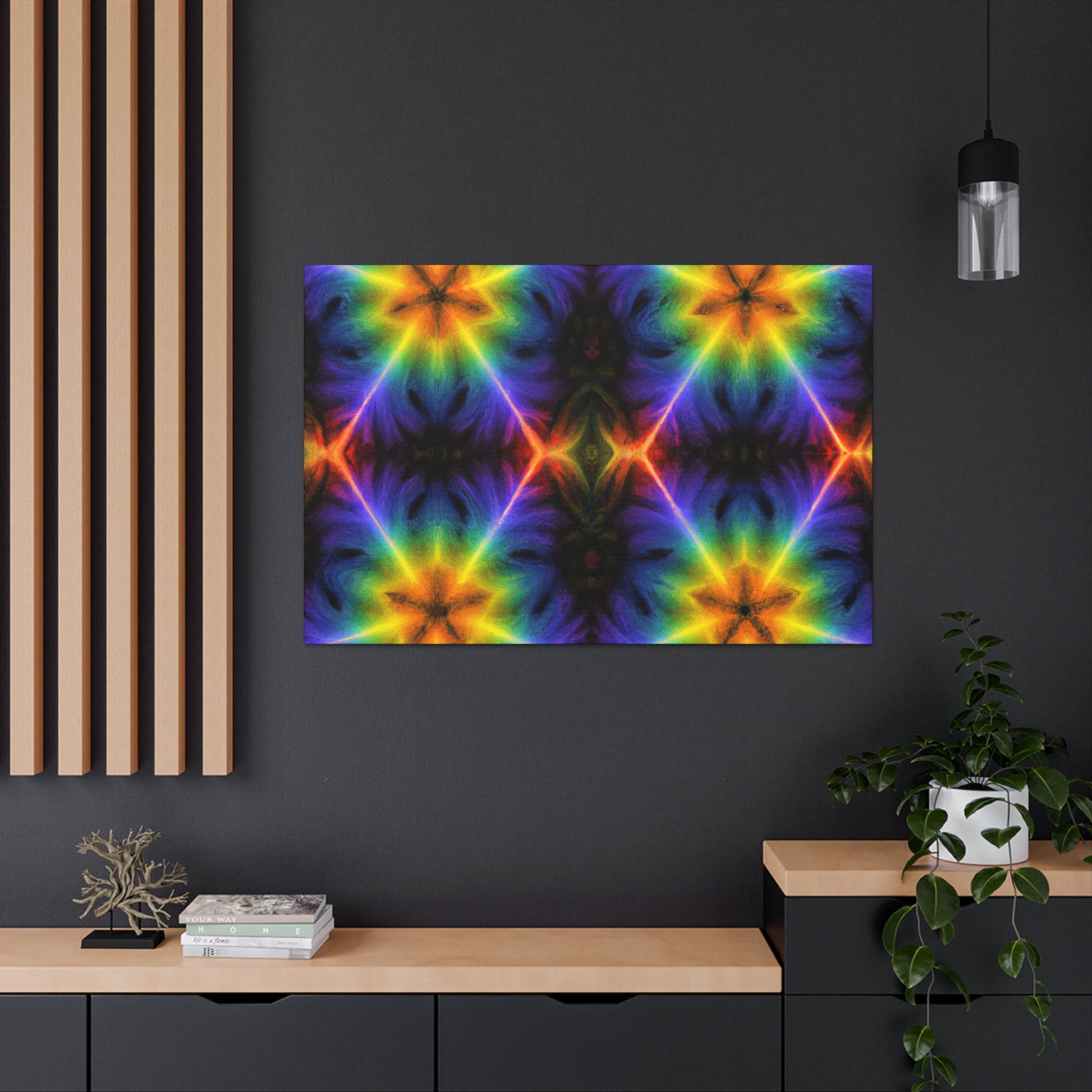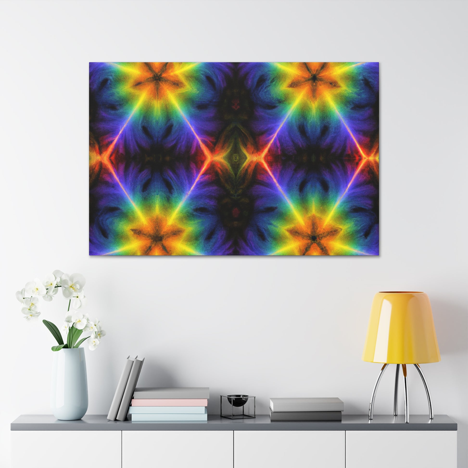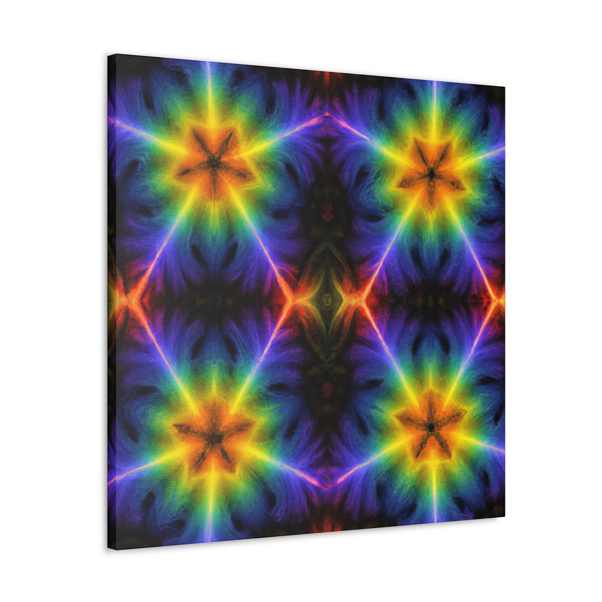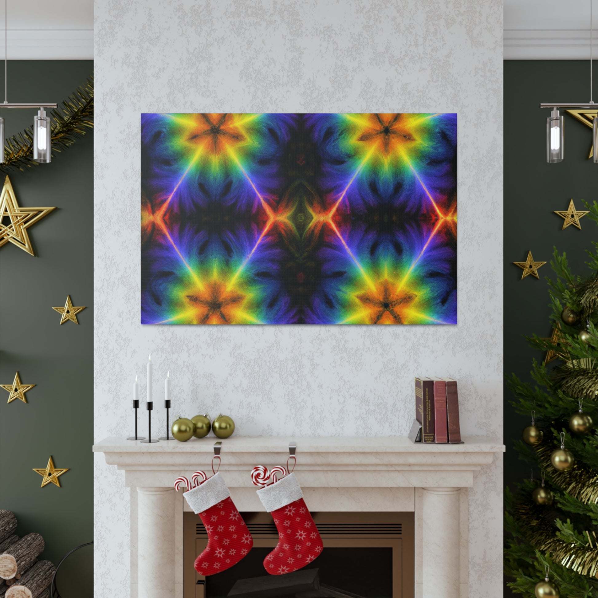 This vibrant digital art of Trippy stars, kaleidoscope, and abstract HD canvas will brighten up any room. This striking abstract painting has symmetrical patterns of various colors. Create a modern wall décor in style with this expressive work of art! #digitalart #abstractpainting #kaleidoscope #vibrantcolors #canvasart #symmetrical #highdefinition #trippystars #wallart #modernart #canvaspainting