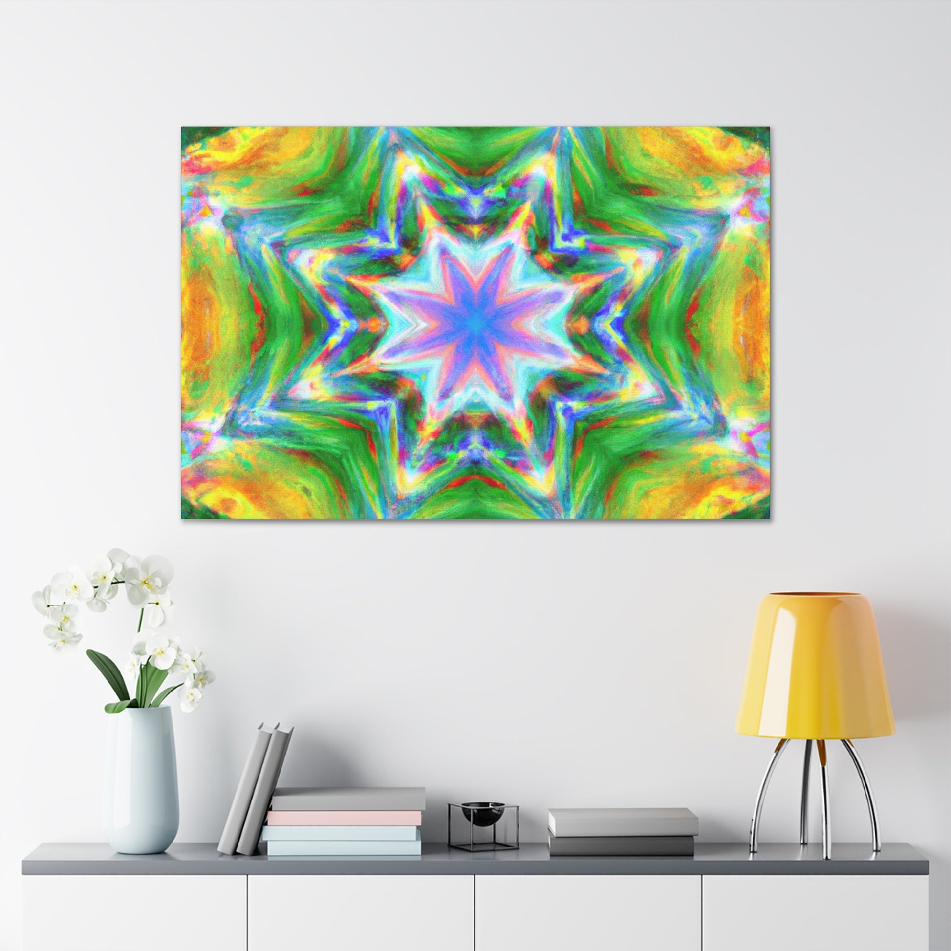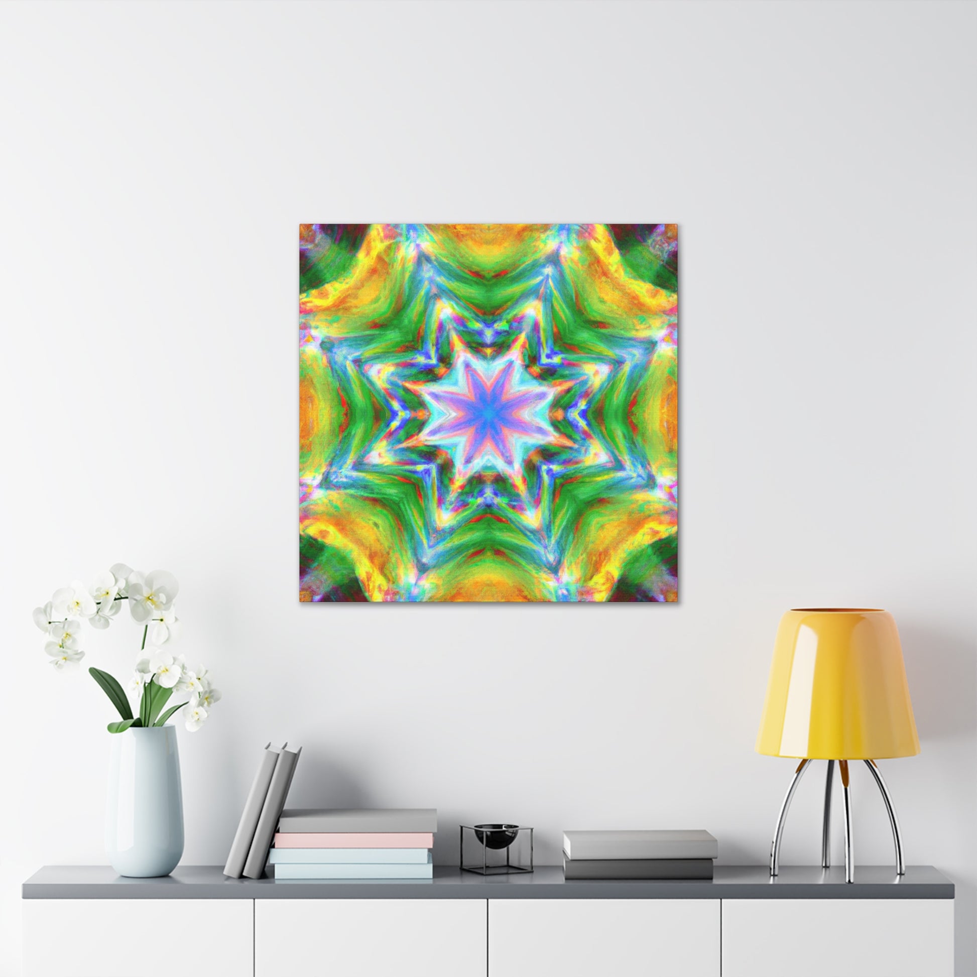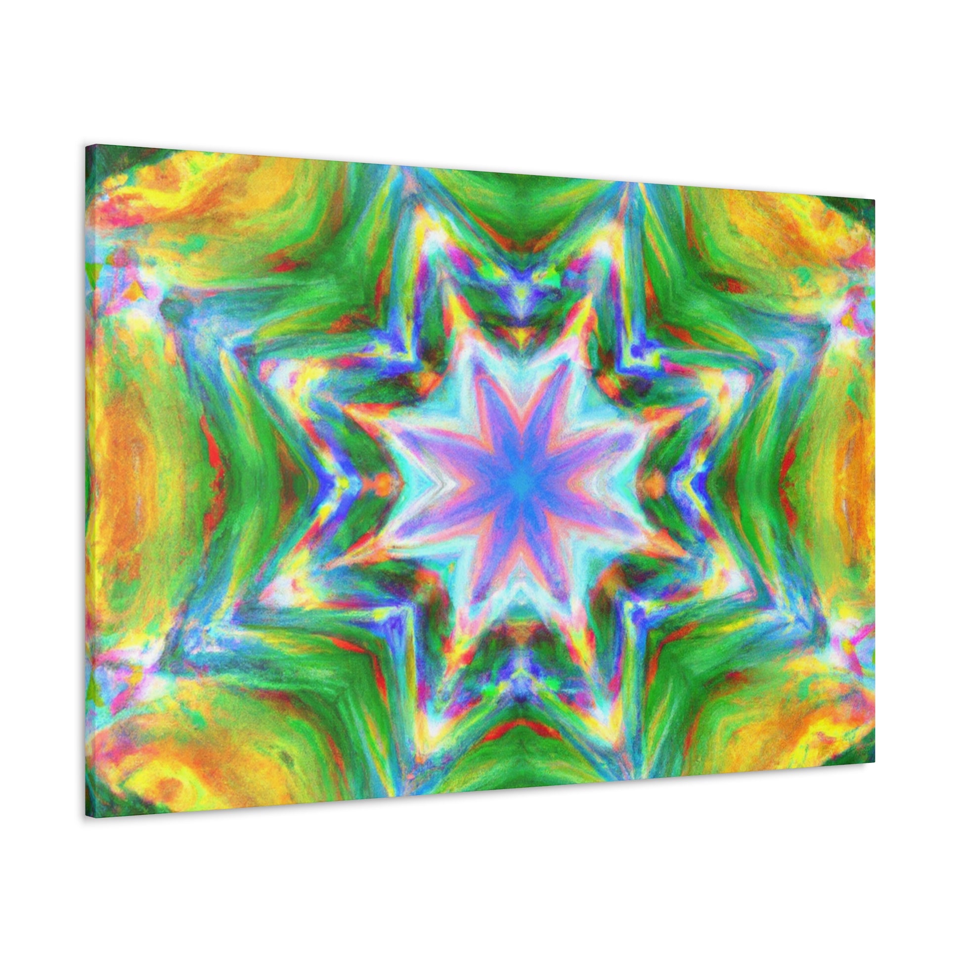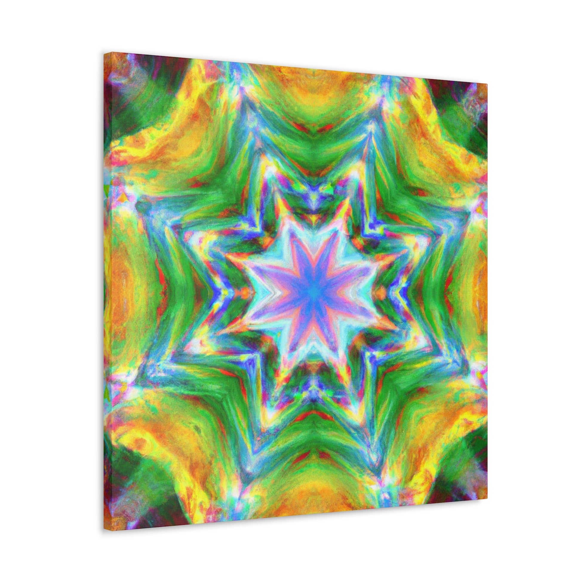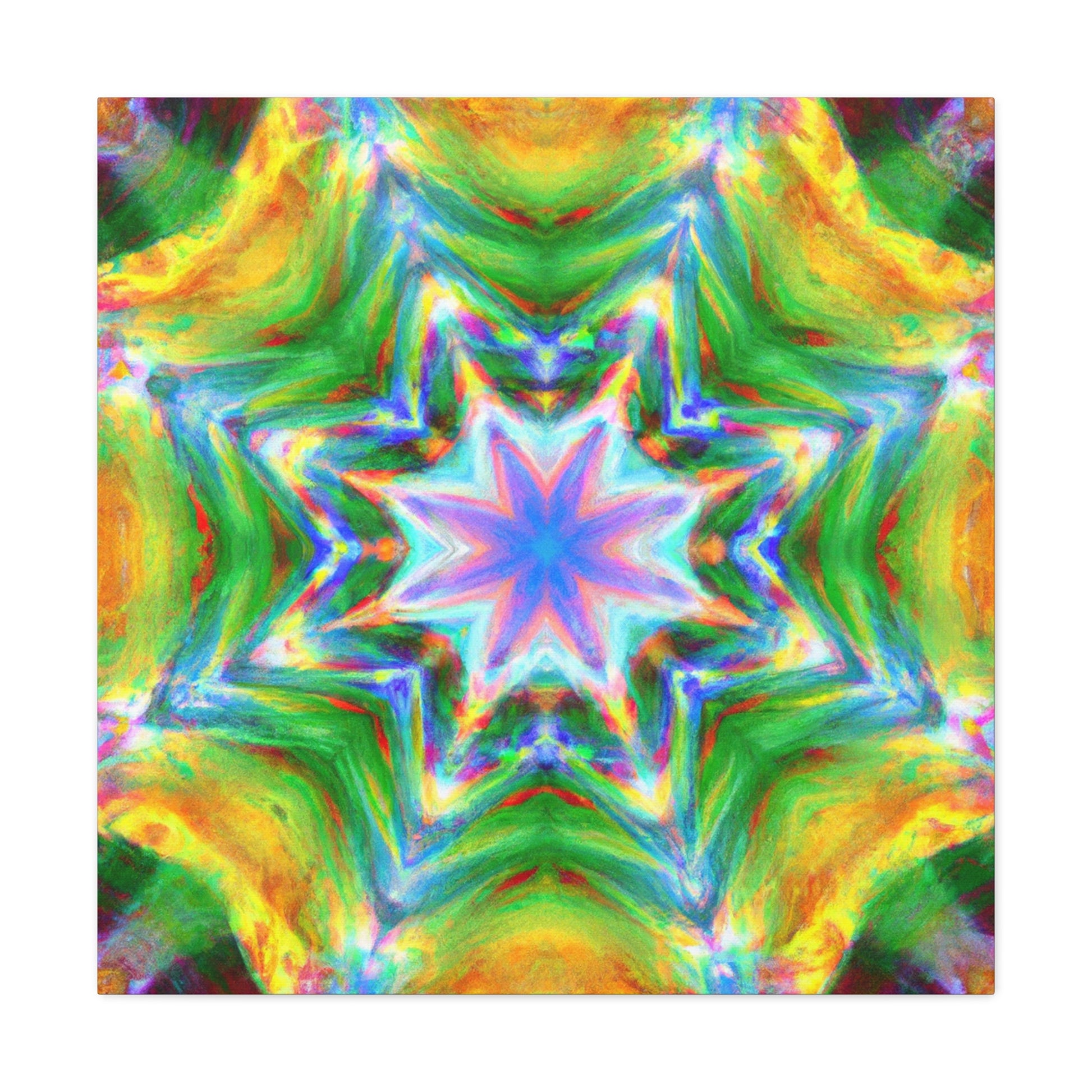 This vibrant, HD, digital art canvas is perfectly symmetrical and full of colors. With its Kaleidoscope stars, Trippy abstract shapes, and vibrant tones, you could hang this piece of abstract art in any room and add a unique, interesting touch. Get ready to be mesmerized - #abstractart #digitalart #symmetry #vibrantart #kaleidoscope #trippystars #canvasart #hdart #vibrantcolors #abstractpaintingand #digitalpainting