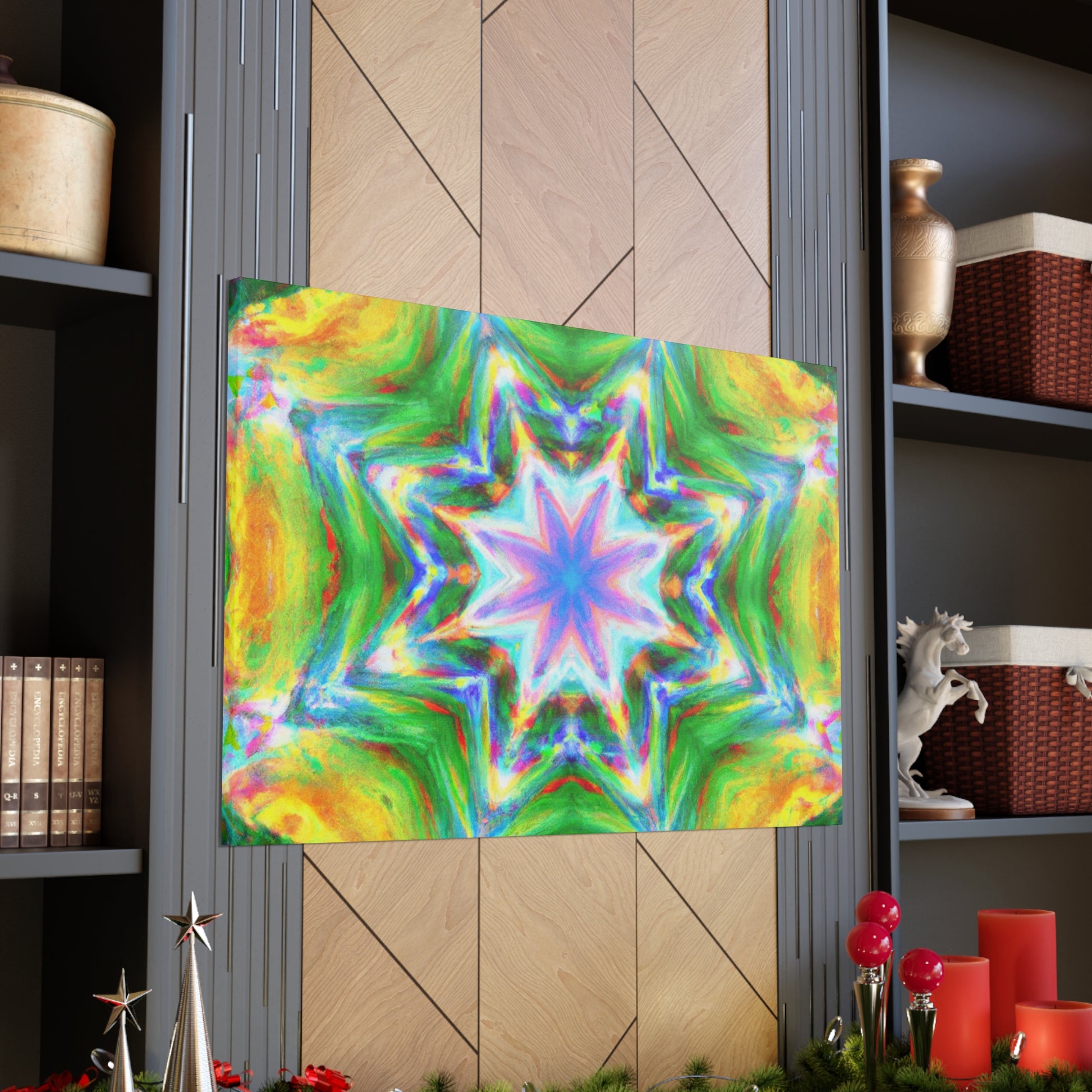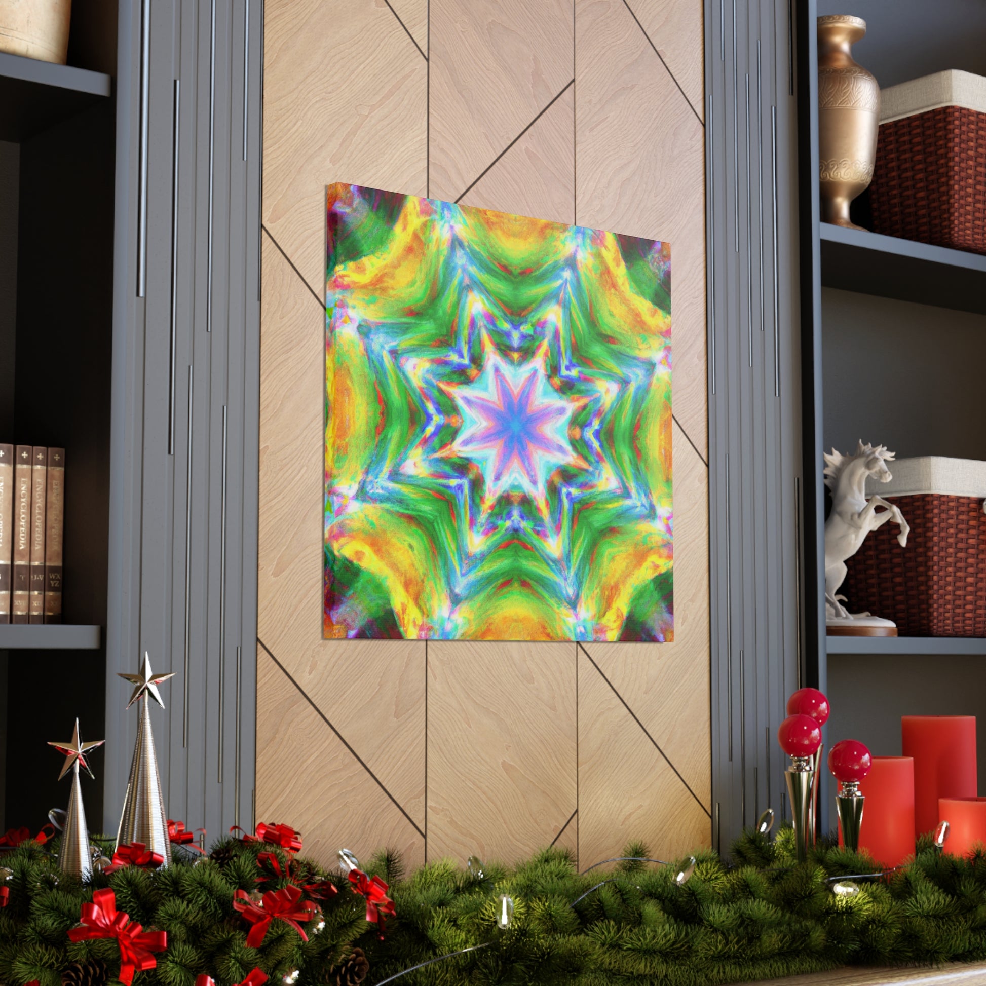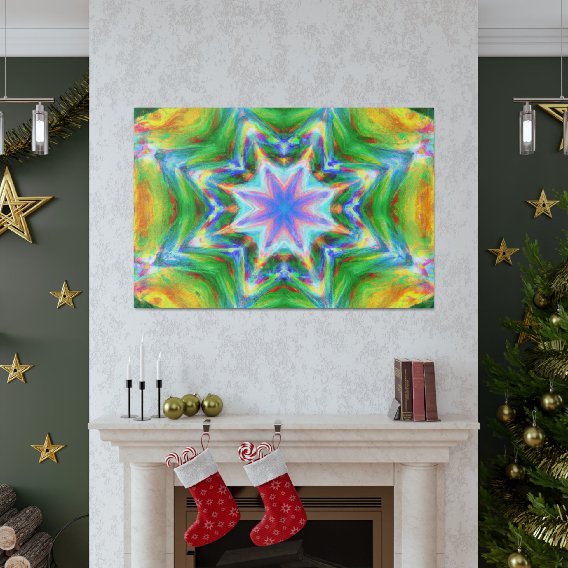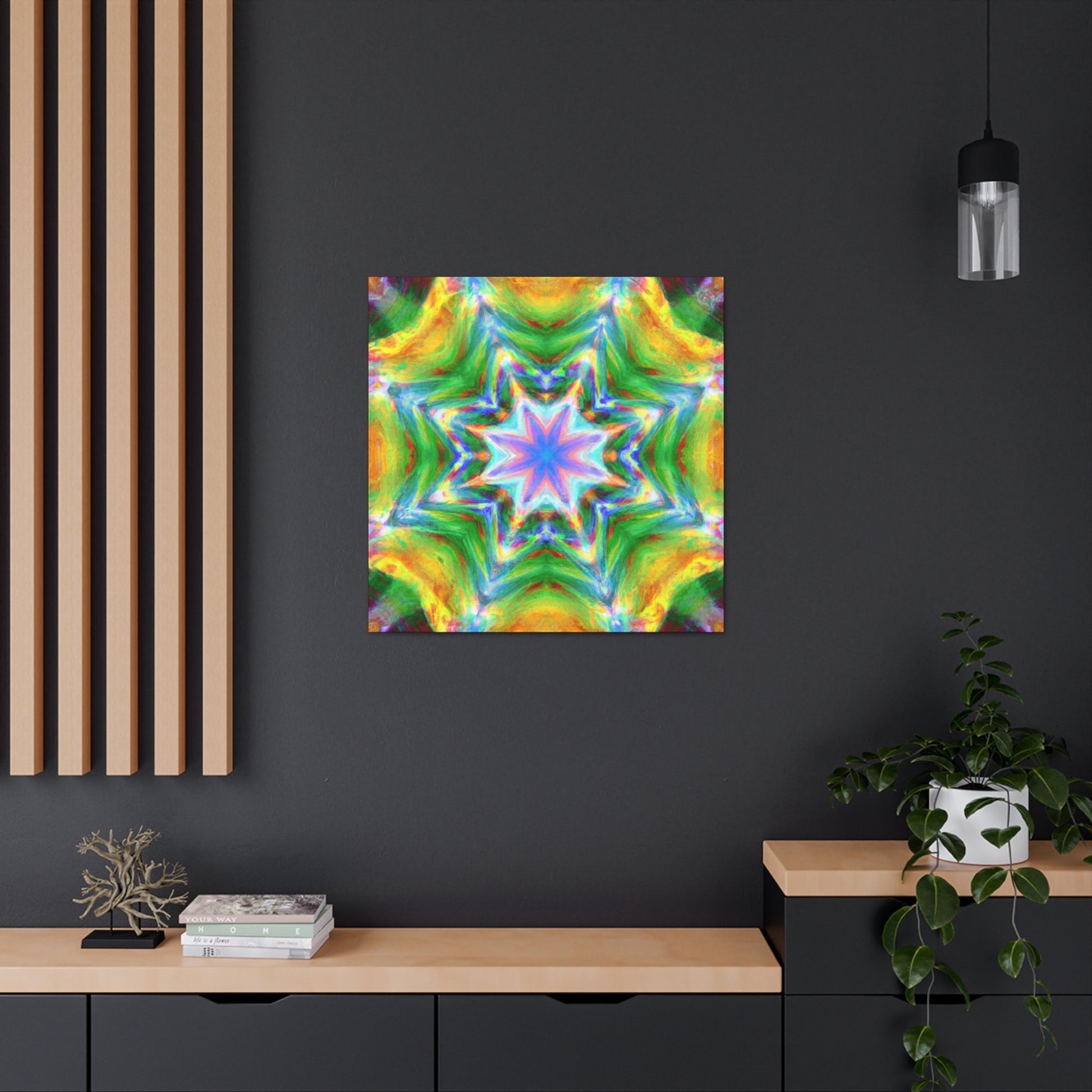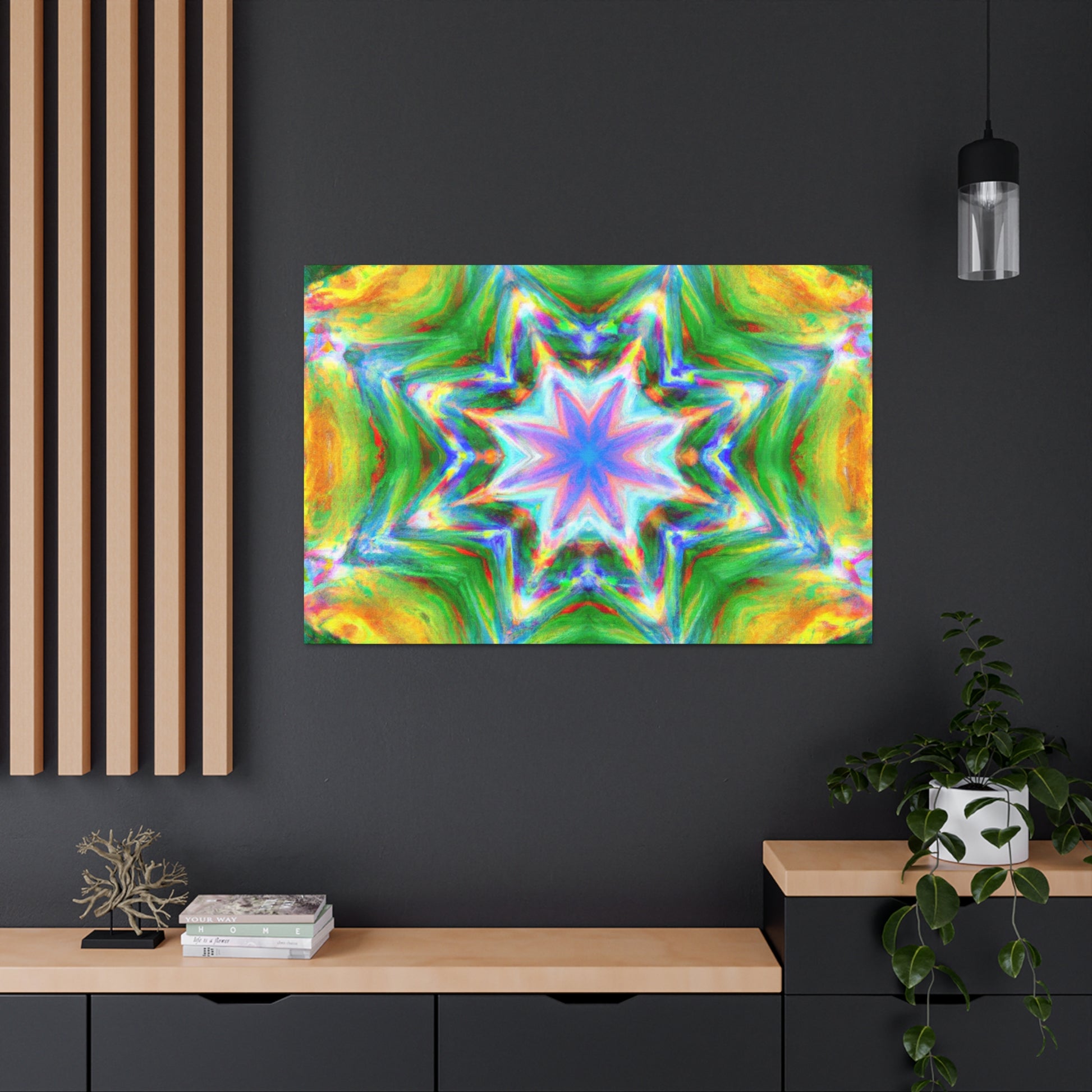 This vibrant, HD, digital art canvas is perfectly symmetrical and full of colors. With its Kaleidoscope stars, Trippy abstract shapes, and vibrant tones, you could hang this piece of abstract art in any room and add a unique, interesting touch. Get ready to be mesmerized - #abstractart #digitalart #symmetry #vibrantart #kaleidoscope #trippystars #canvasart #hdart #vibrantcolors #abstractpaintingand #digitalpainting