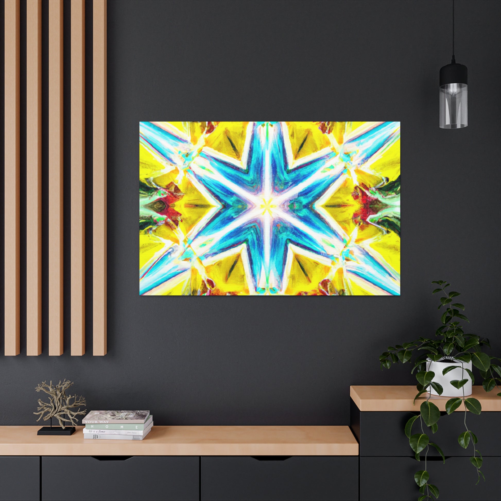 This beautiful Trippy Stars, Kaleidoscope, Abstract, Digital Art canvas features bold, vibrant colors and high-definition artwork. Perfectly symmetrical, this wall art piece is guaranteed to turn heads and bring life to any space. Add a burst of energy to your decor with this unique masterpiece! #trippystars #kaleidoscope #abstract #digitalart #vibrantcolors #hd #symmetrical #canvaswallart #wallart #modernart #homedecor