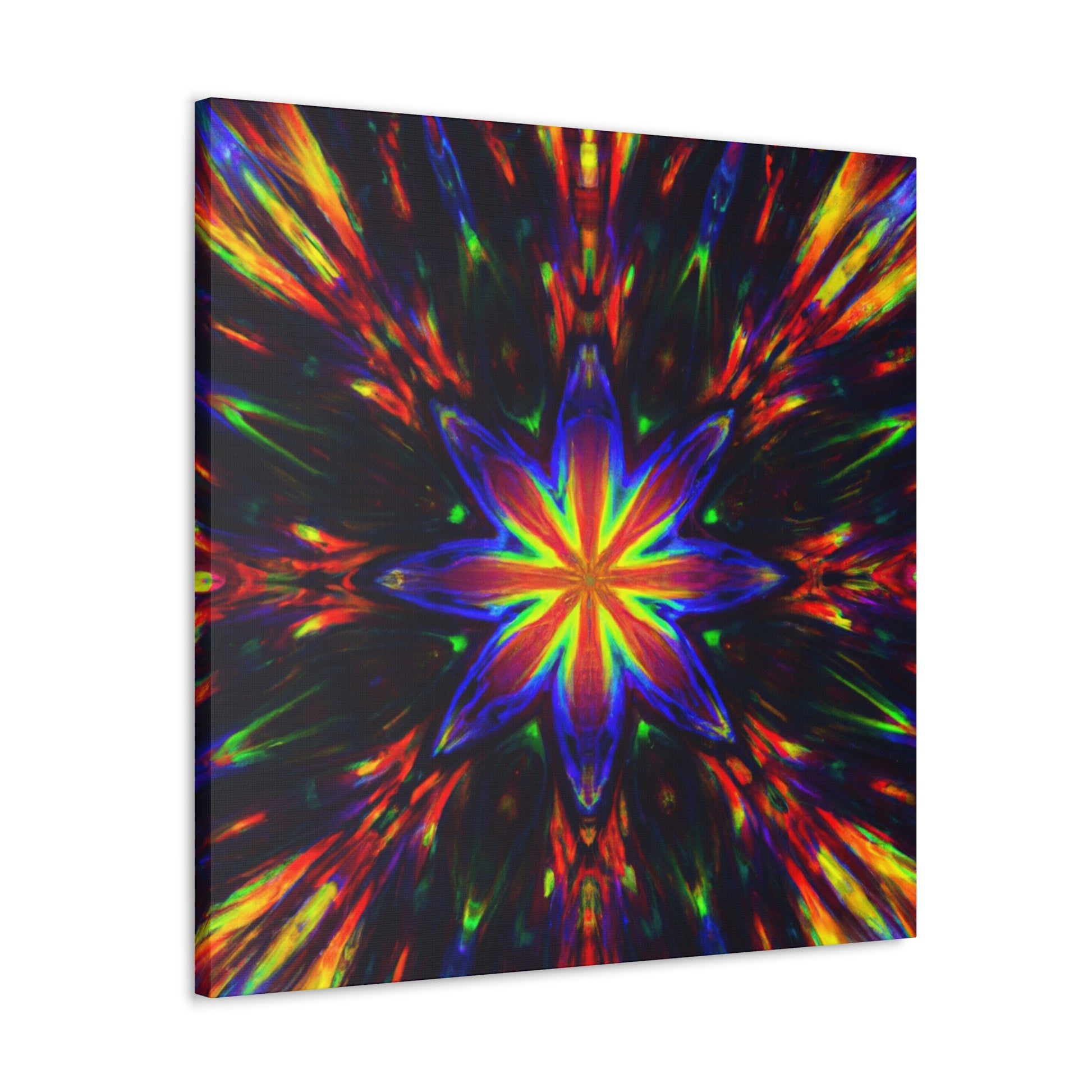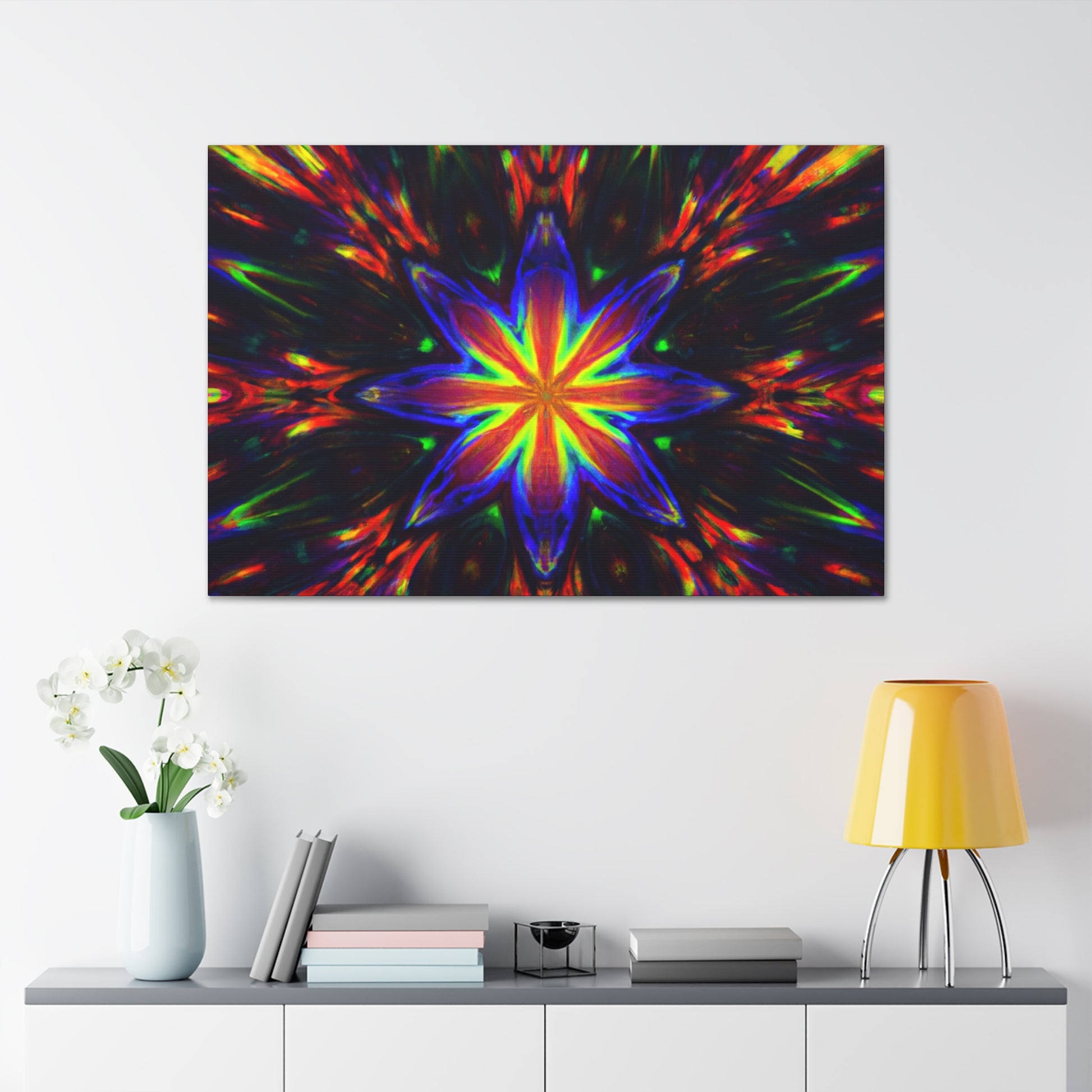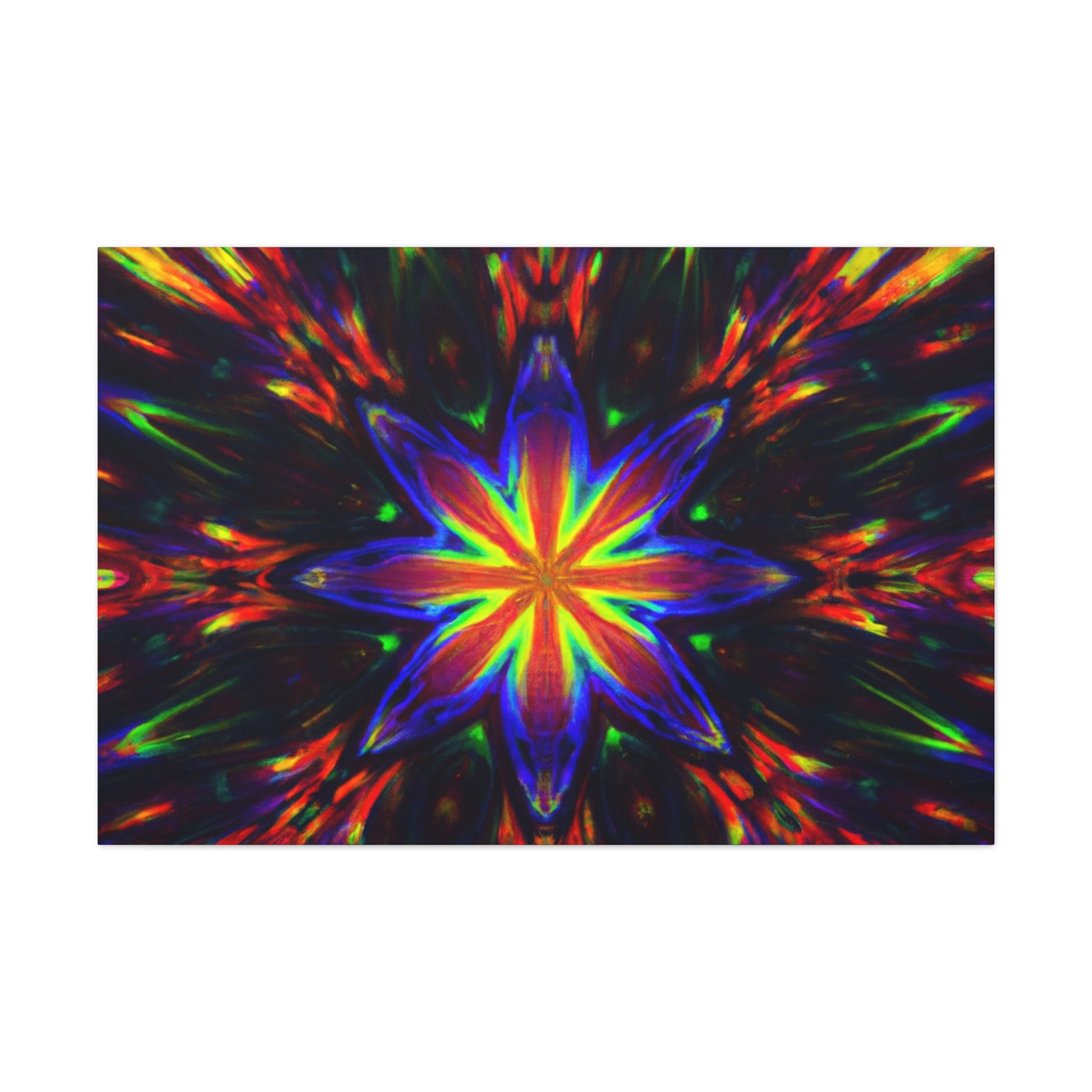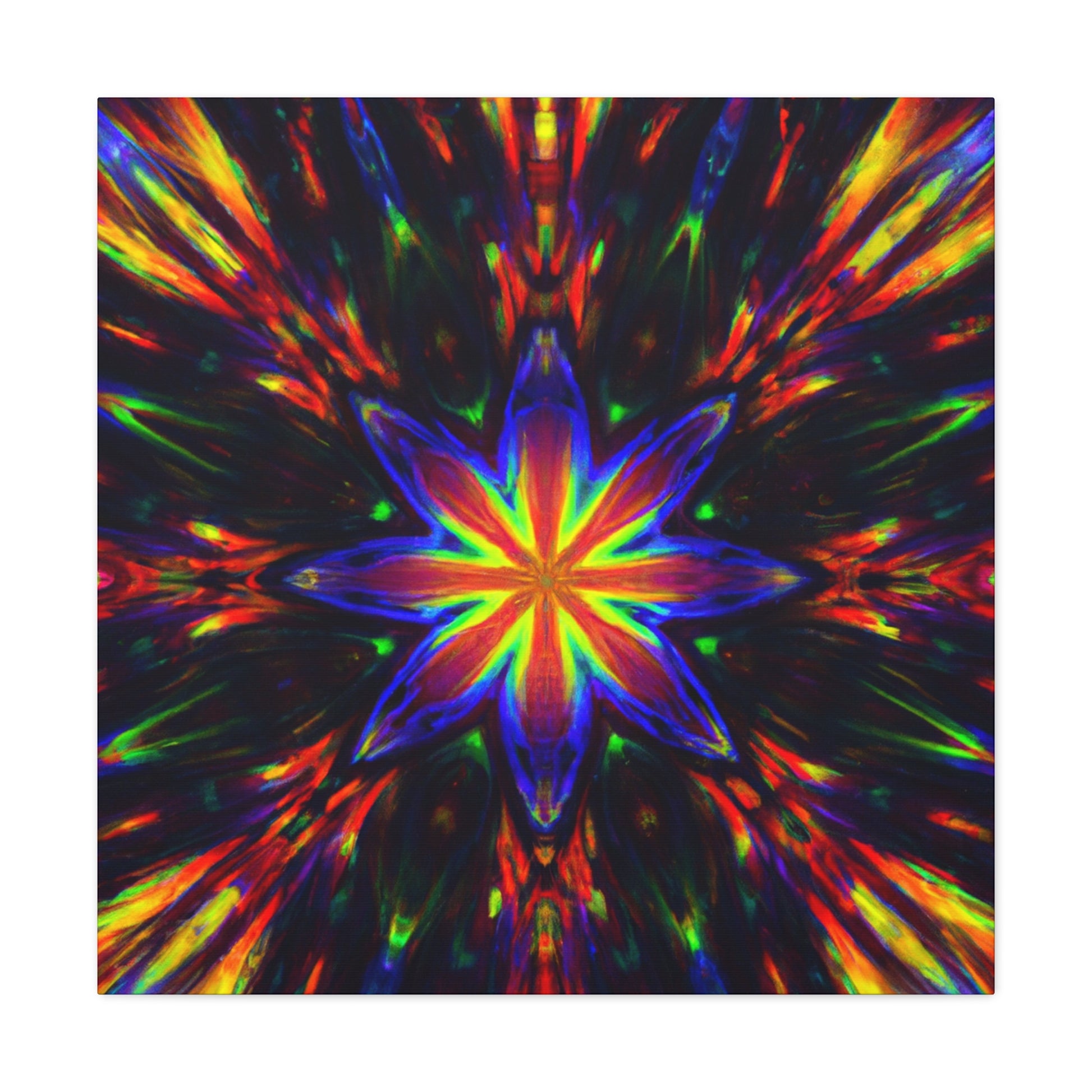 Brighten up your walls with this stunning abstract HD digital art canvas featuring vibrant colors and a hypnotic array of trippy stars and kaleidoscope in a symmetrical design. With stunning clarity, it's sure to catch the eye and be a show stopper in any room! #DigitalArt #Canvas #VibrantColors #Trippy #Symmetrical #Stars #Kaleidoscope #Abstract #HD #Decor #HomeDecor