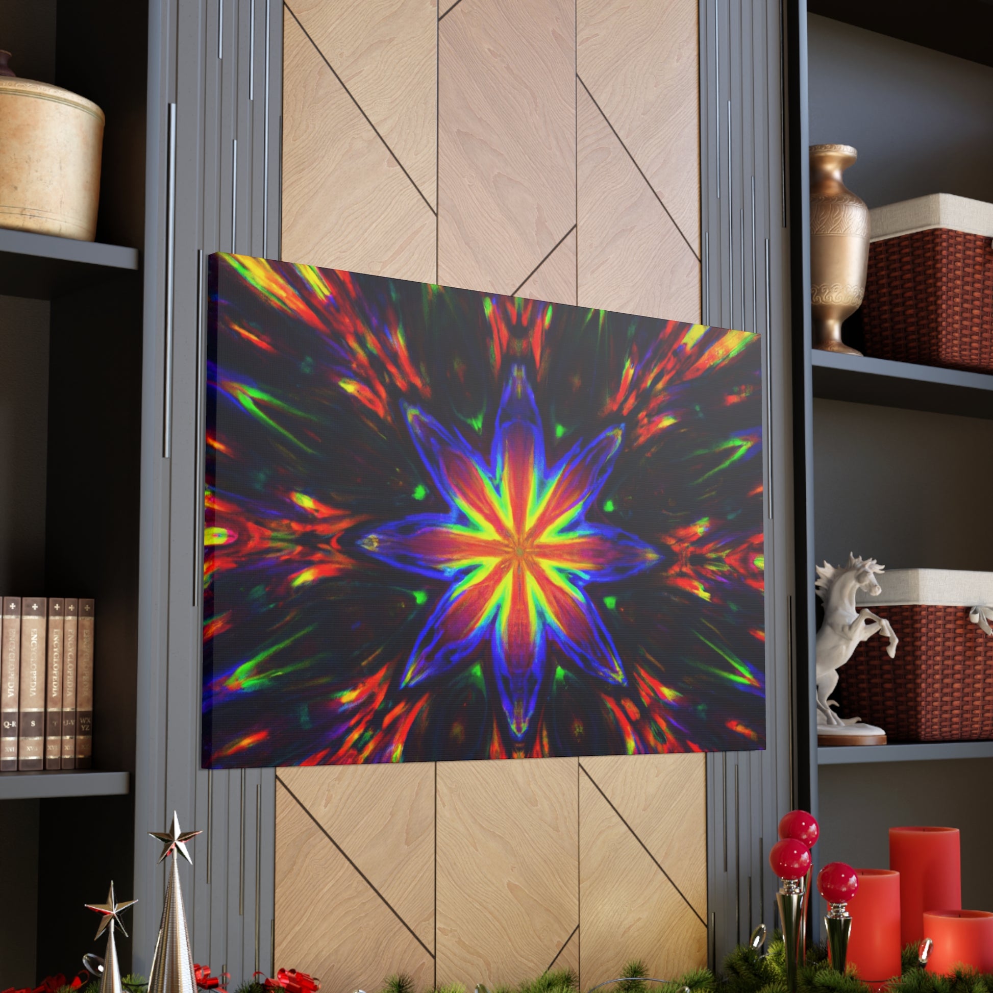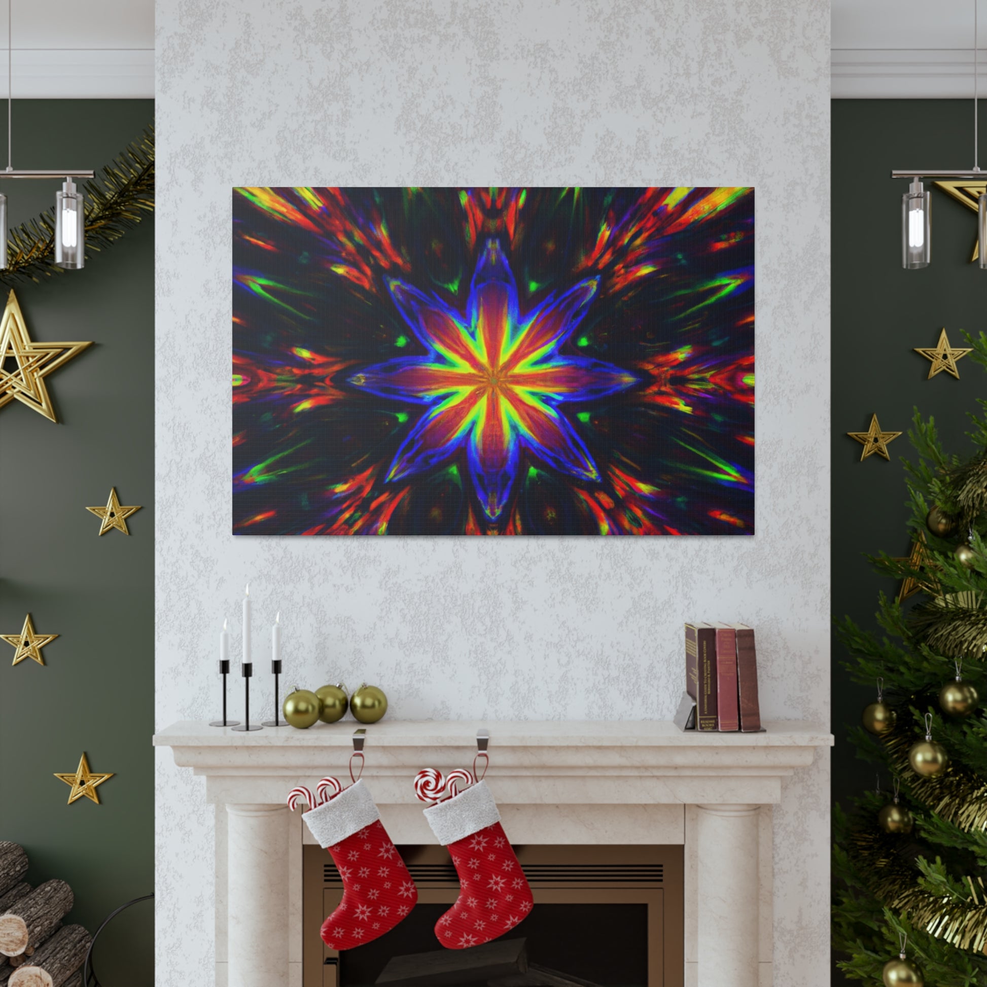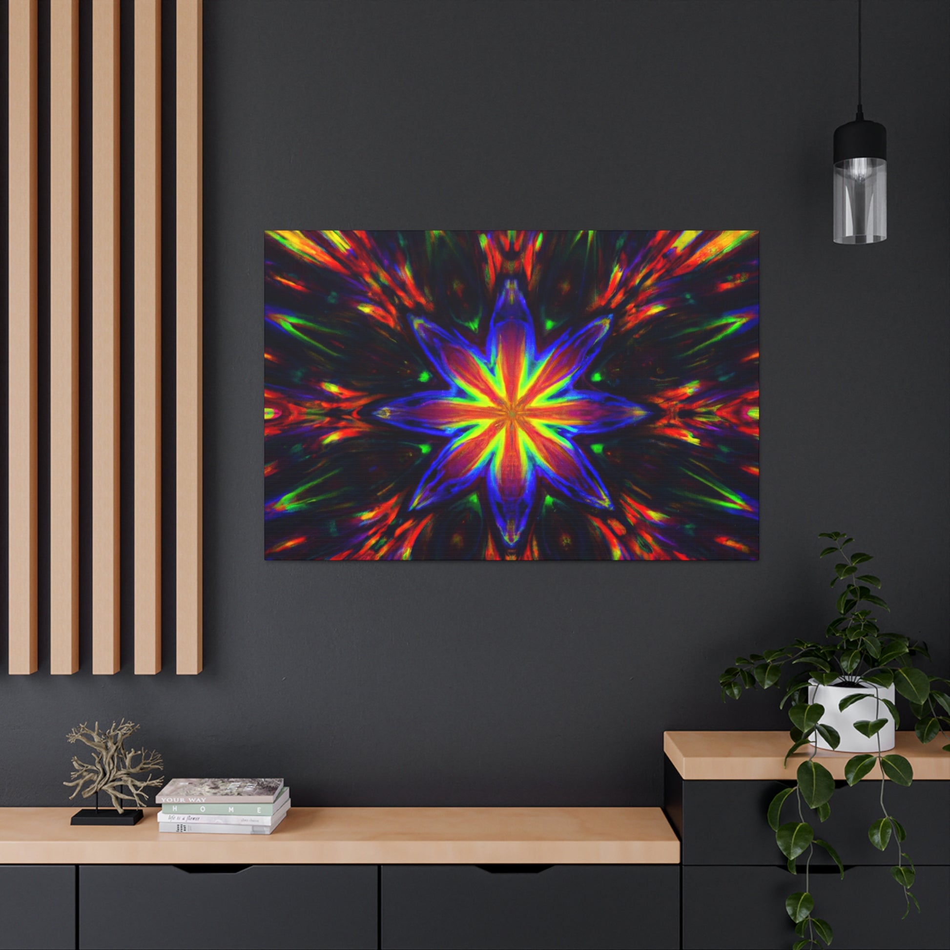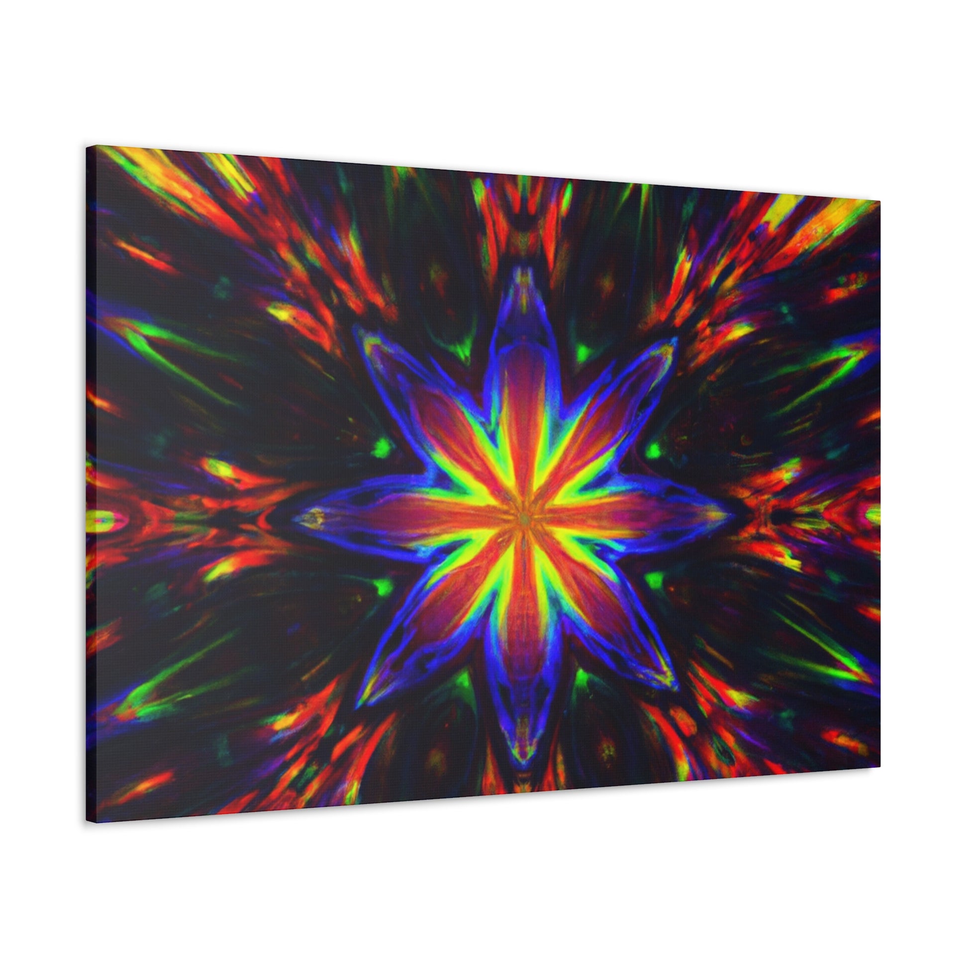 Brighten up your walls with this stunning abstract HD digital art canvas featuring vibrant colors and a hypnotic array of trippy stars and kaleidoscope in a symmetrical design. With stunning clarity, it's sure to catch the eye and be a show stopper in any room! #DigitalArt #Canvas #VibrantColors #Trippy #Symmetrical #Stars #Kaleidoscope #Abstract #HD #Decor #HomeDecor