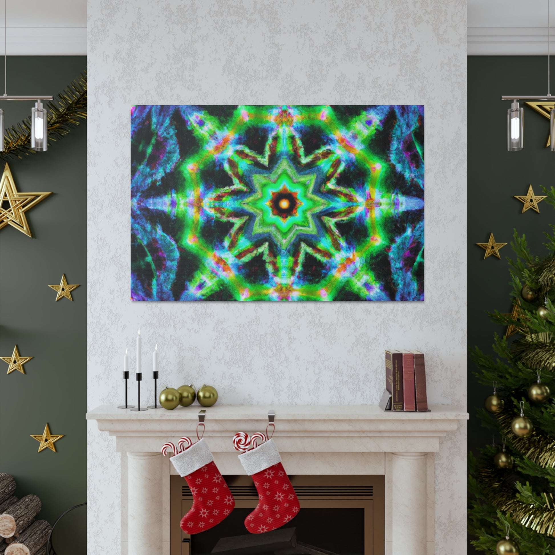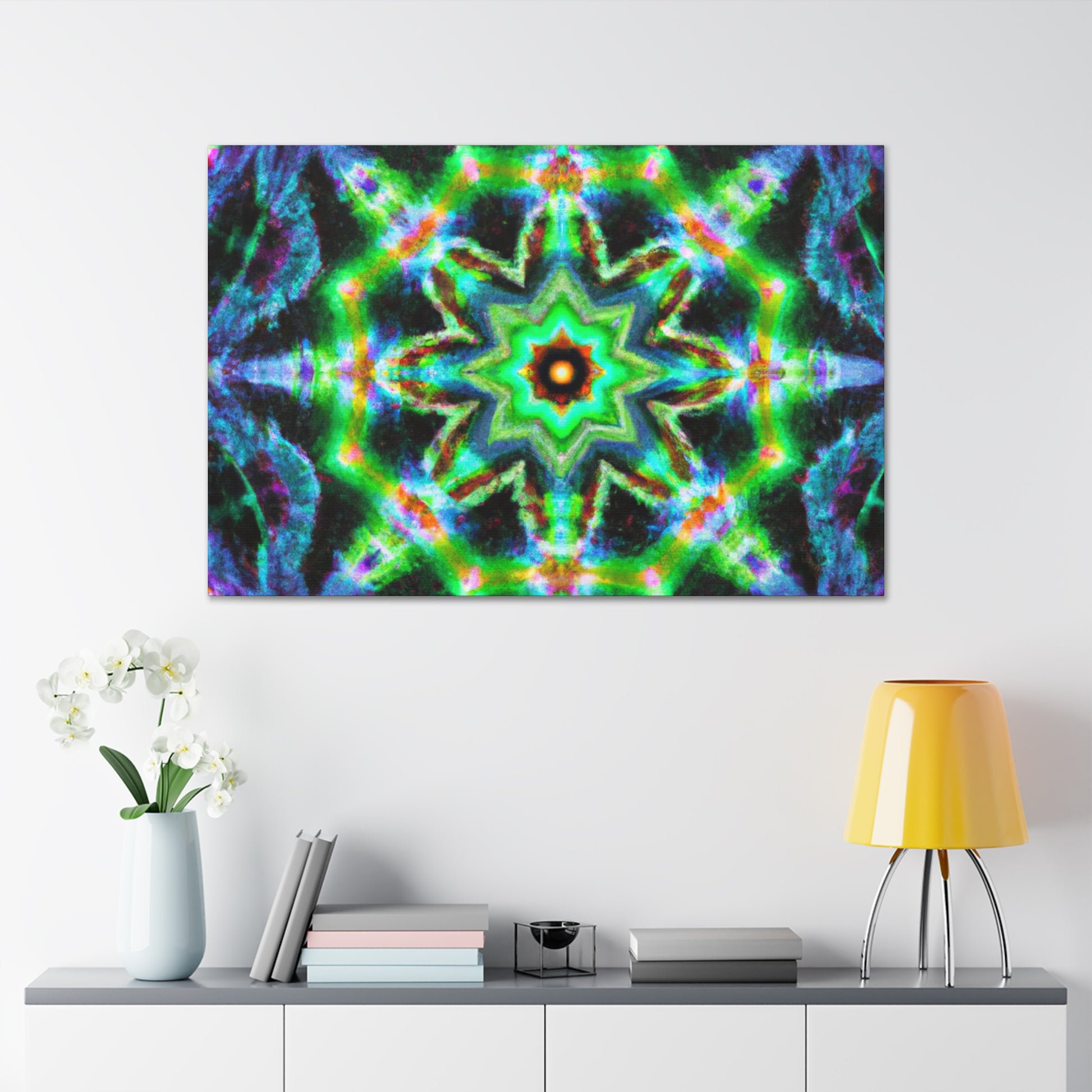 This bold and vibrant canvas features an abstract starscape made up of captivating digital colors. Witness the star-studded kaleidoscope in HD and symmetrical perfection, grounding the space with its eye-catching print. Captivate and entice your guests with this unique statement piece. #TrippyStars #Kaleidoscope #AbstractArt #DigitalArt #VibrantColors #HD #Centered #Symmetrical #StatementPiece #UniqueWallArt #HomeDecor