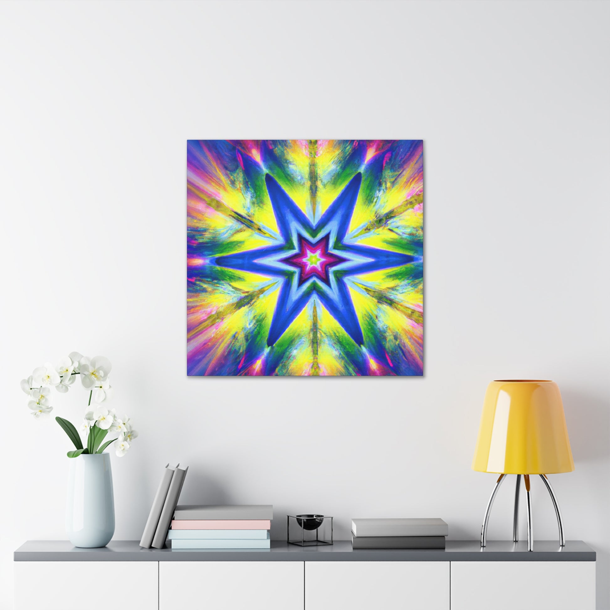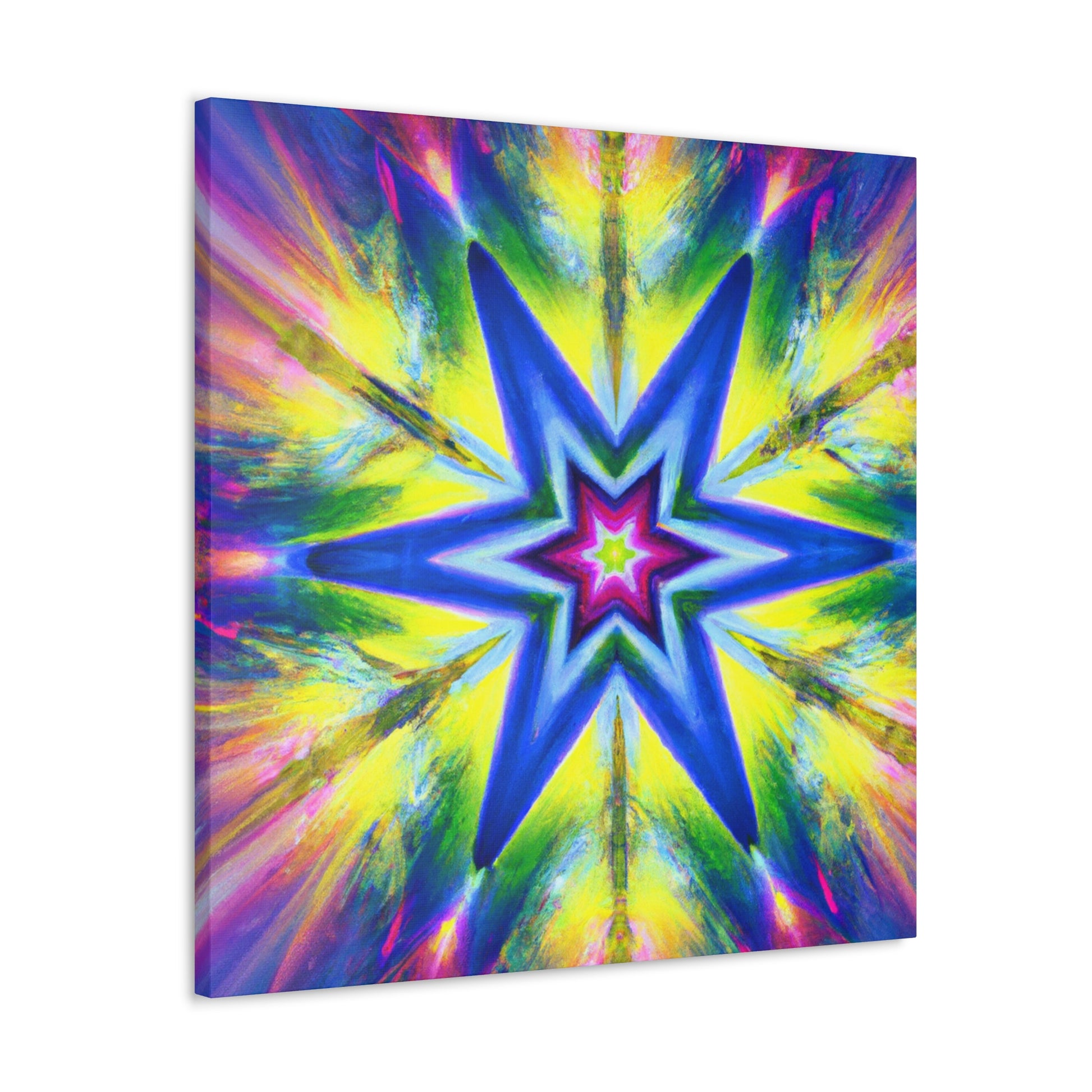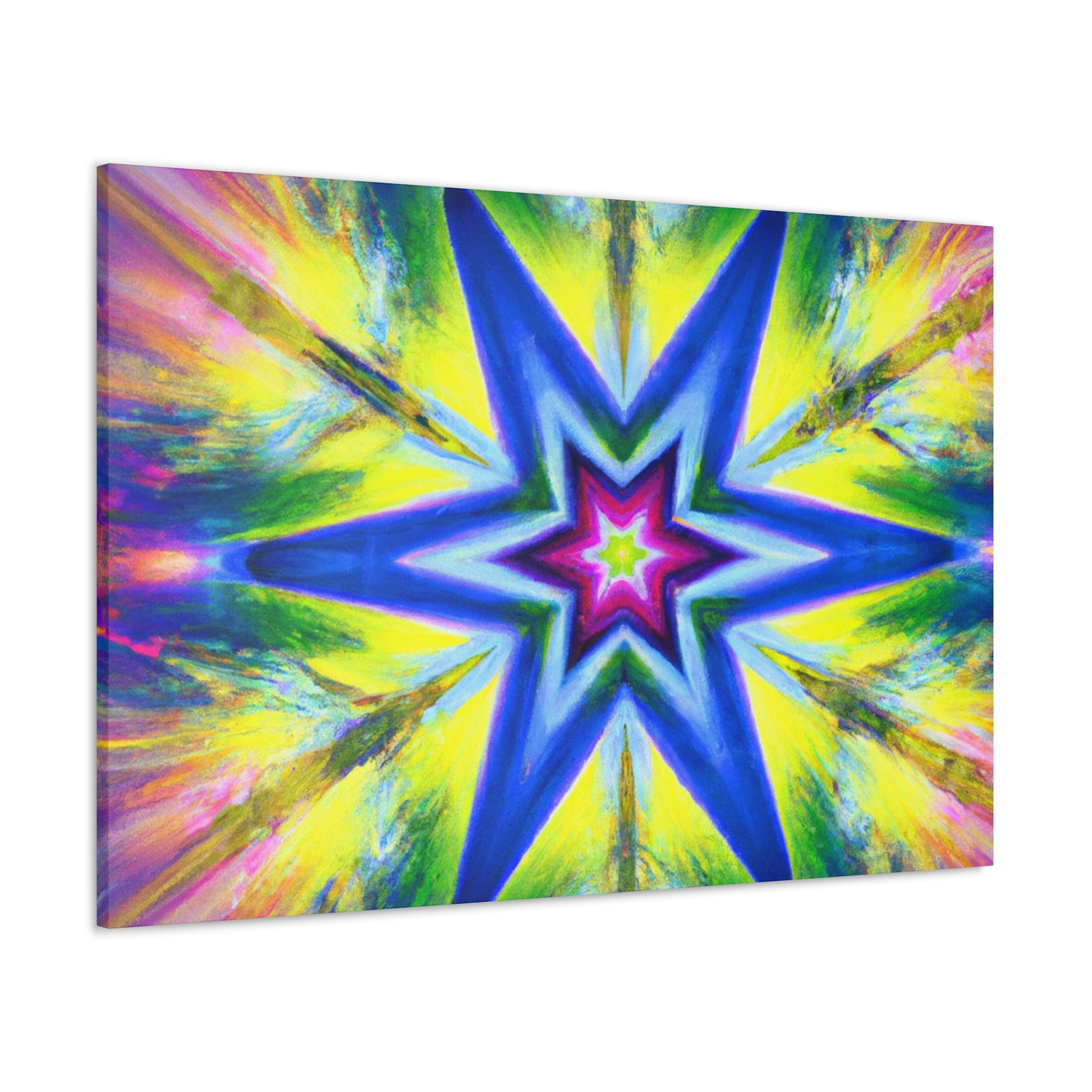 This vivid canvas art is sure to command attention with its mesmerizing symmetrical pattern. Rich, HD colors blend together to create an eye-catching tripsy stars, kaleidoscope, abstract, and digital artwork. Hang this canvas to give your living space a unique, vibrant look! #art #canvasart #TrippyStars #Kaleidoscope #Abstract #DigitalArt #VibrantColors #HD #Symmetrical #Design #Style