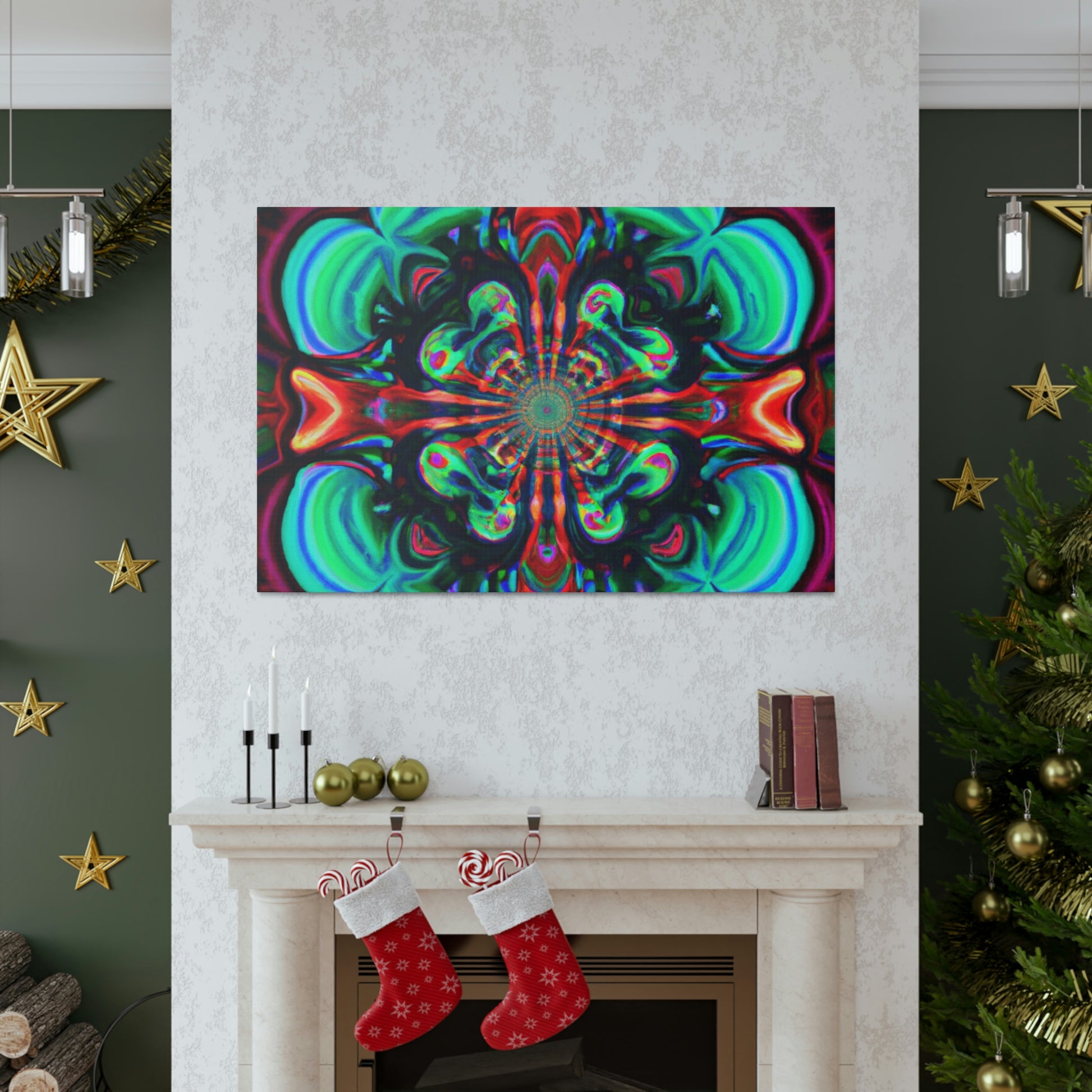 This modern abstract digital art on canvas will give your room instant vibrancy. Its surrealistic trippy mushrooms and kaleidoscopic, 3D lines are full of vibrant colors and will be sure to make a statement. Dive into the world of digital art and transform any living space into something extraordinary. #trippy #mushrooms #kaleidoscope #abstractart #digitalart #3D #vibrant #colors #canvas #interiordesign #statementart