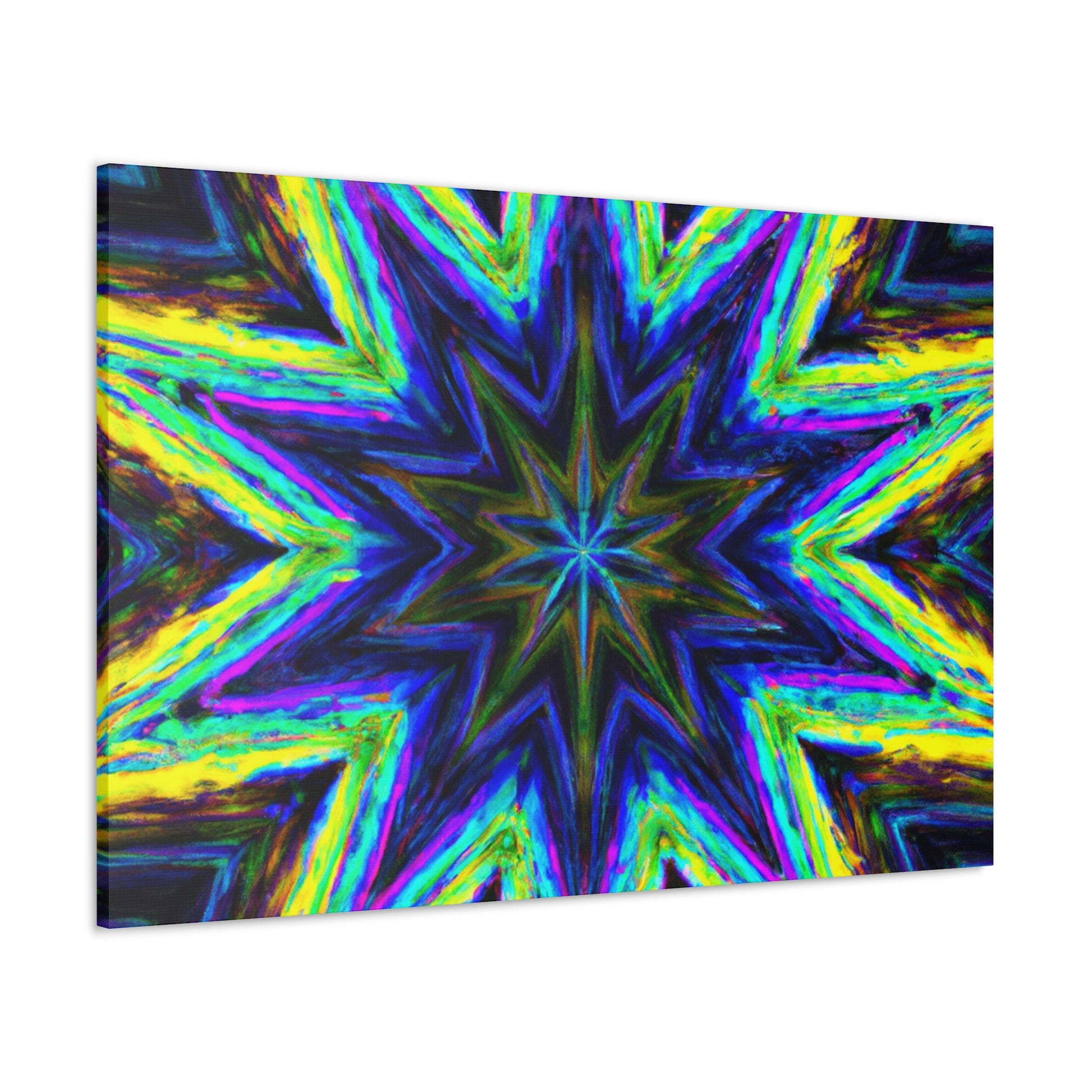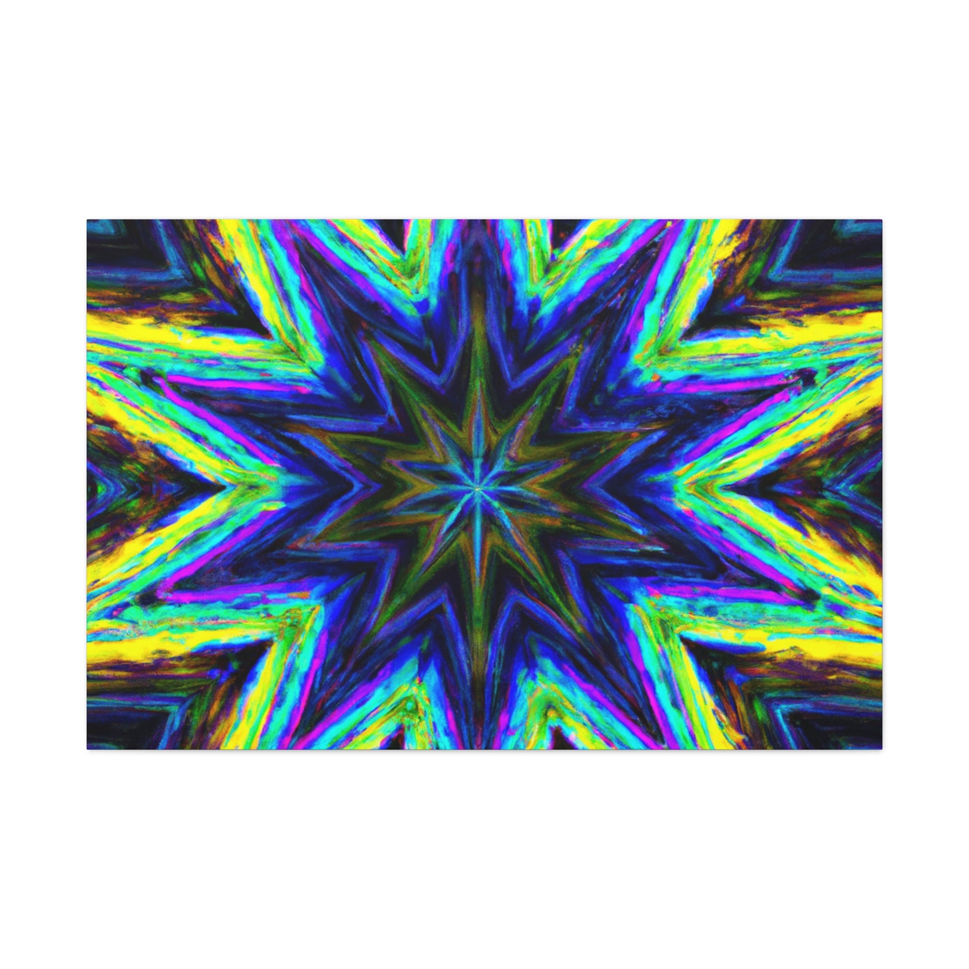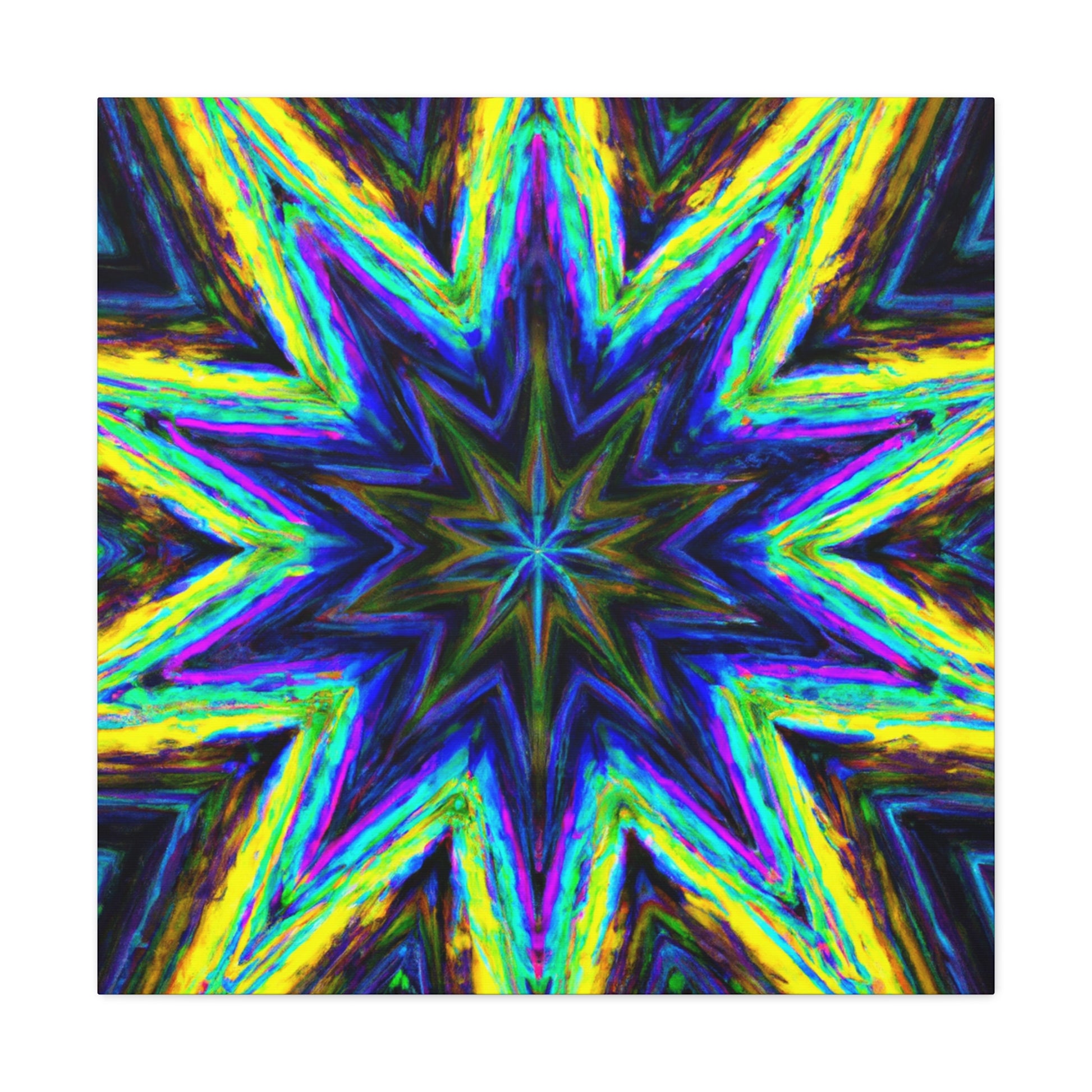 This captivating Trippy Stars canvas combines kaleidoscope, abstract, and digital art with vibrant colors and amazing HD vibrancy. This breathtaking visual symmetry will add an eye-catching, unique look to any room! #trippystars #kaleidoscope #abstract #digitalart #vibrantcolors #HD #wallart #symmetry #homedecor #homeinspo #artwork