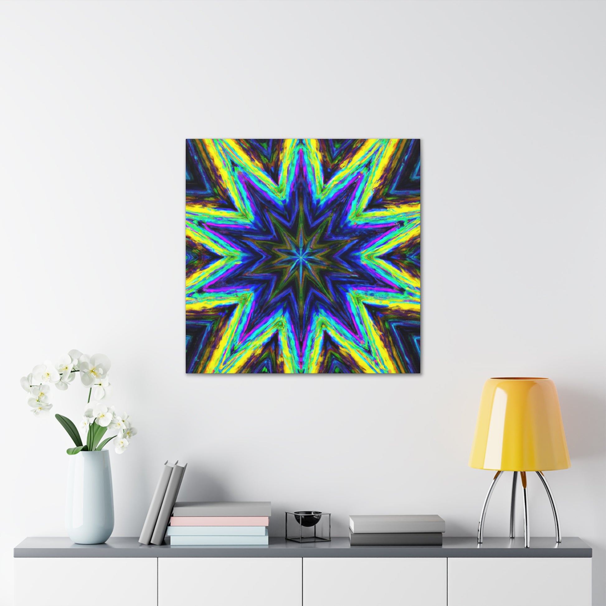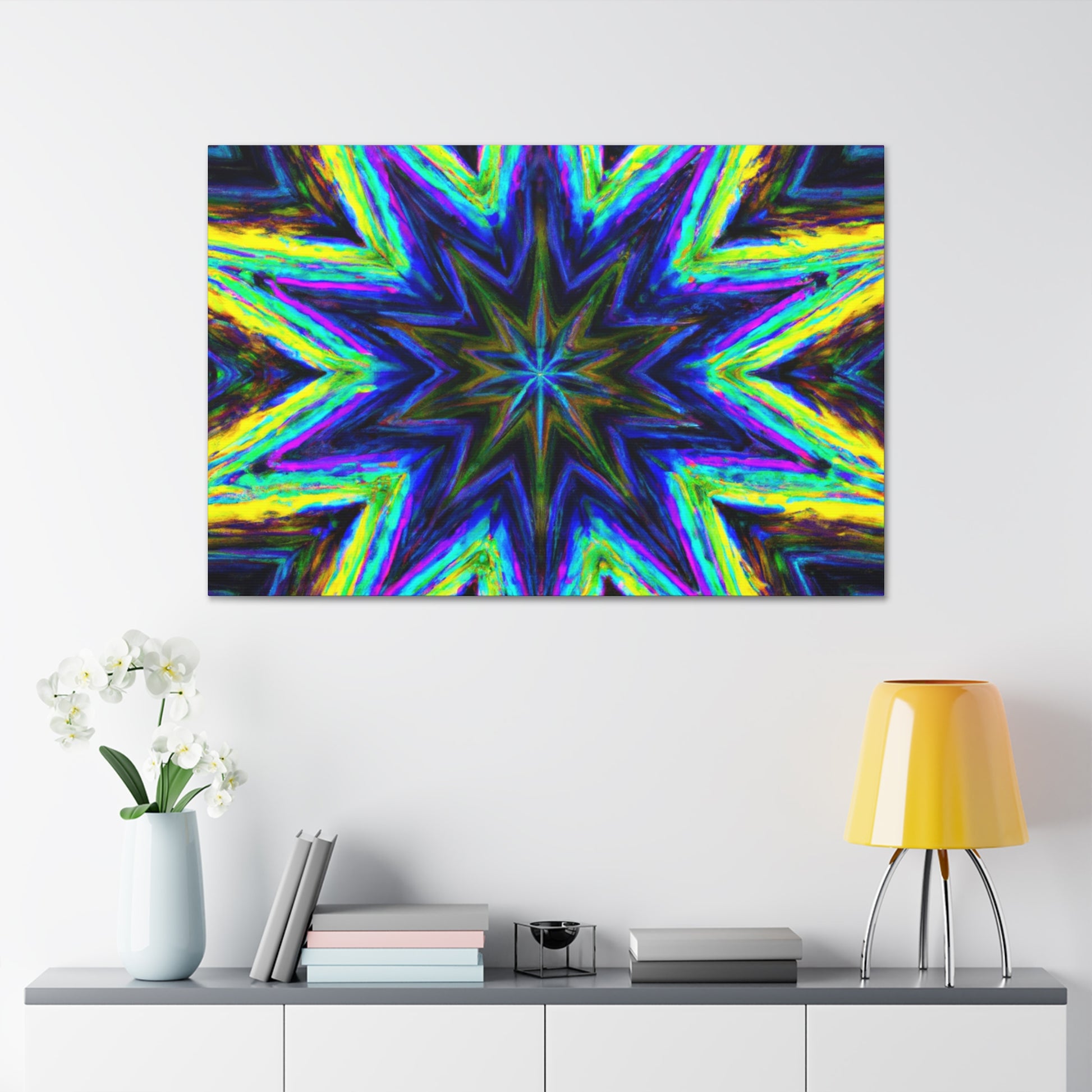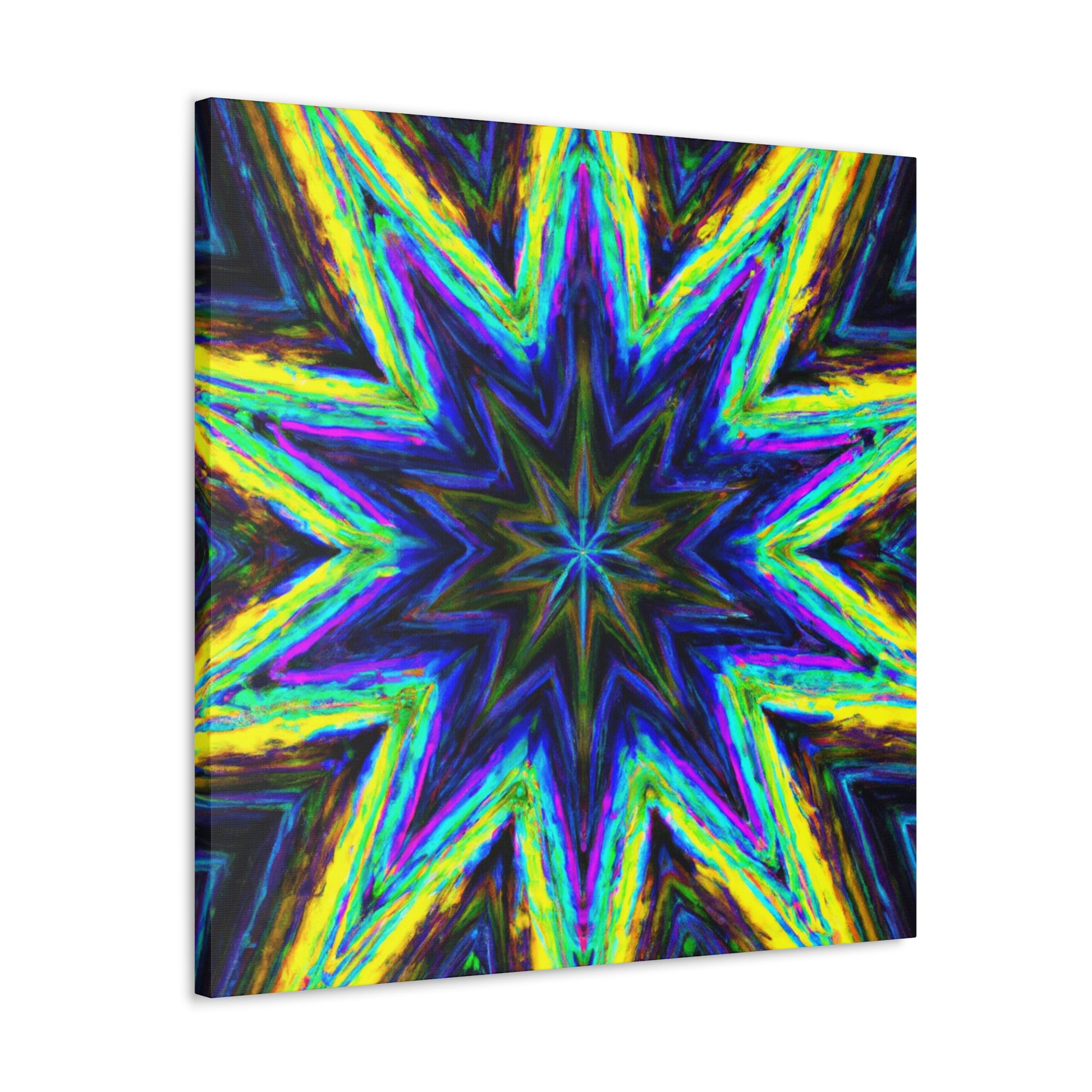 This captivating Trippy Stars canvas combines kaleidoscope, abstract, and digital art with vibrant colors and amazing HD vibrancy. This breathtaking visual symmetry will add an eye-catching, unique look to any room! #trippystars #kaleidoscope #abstract #digitalart #vibrantcolors #HD #wallart #symmetry #homedecor #homeinspo #artwork
