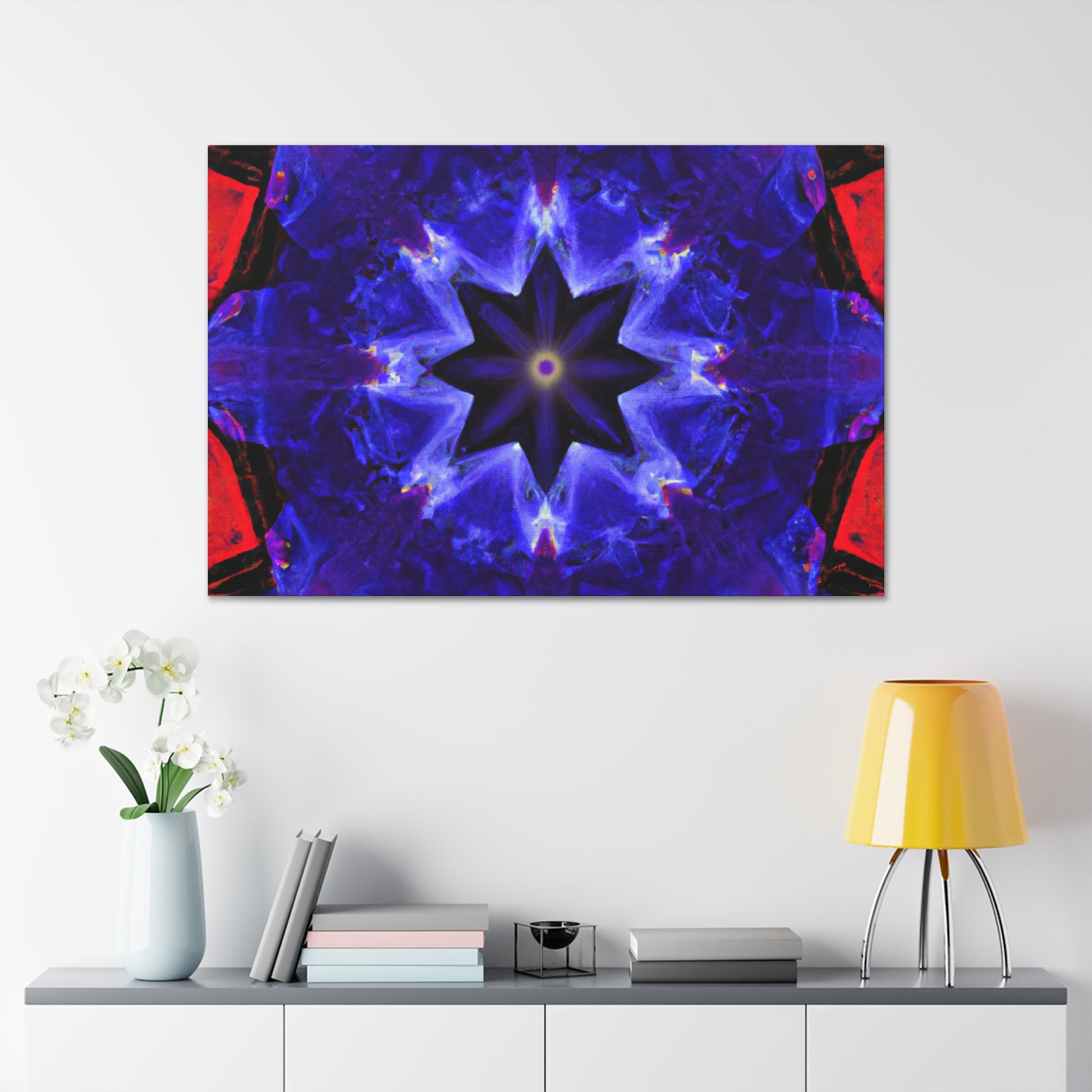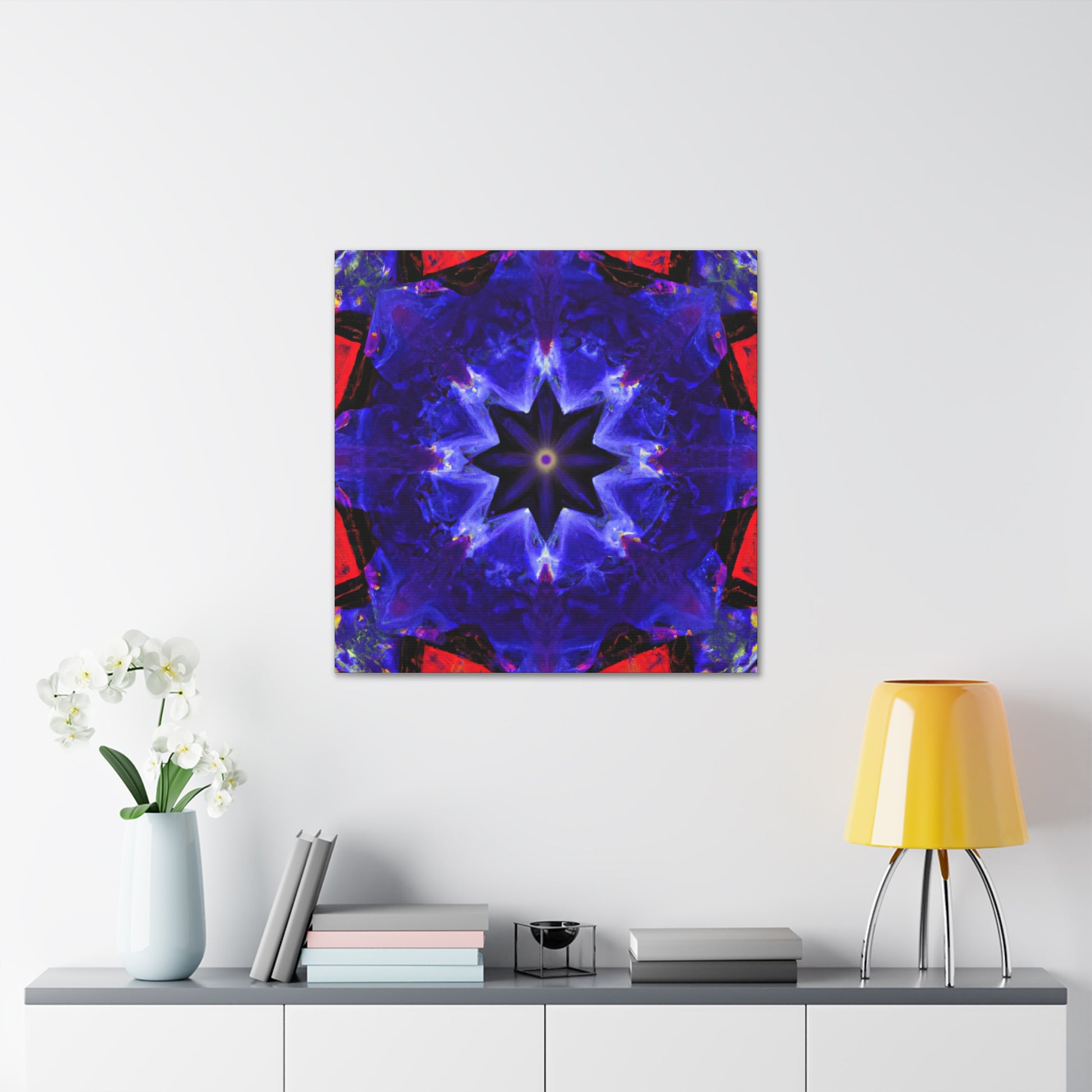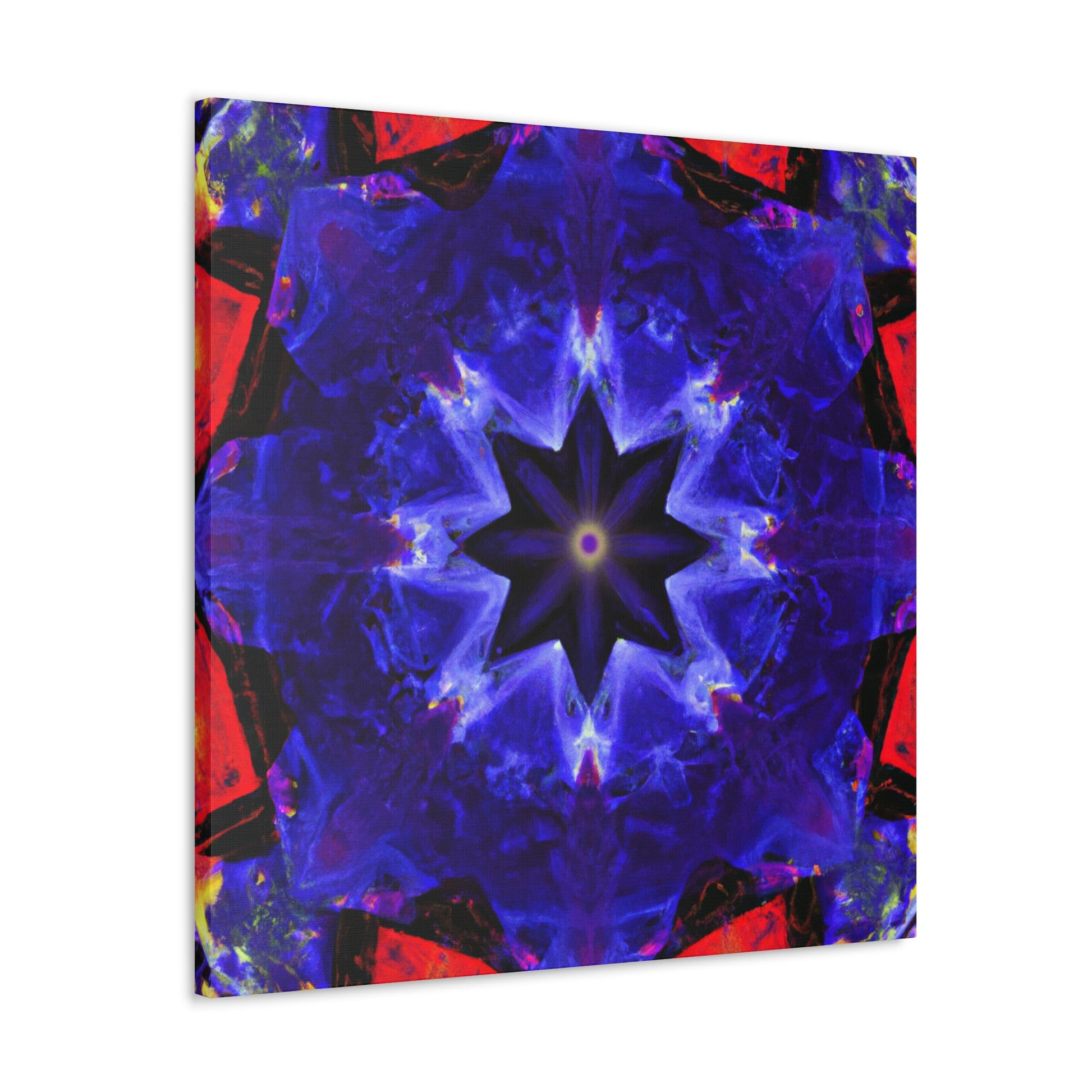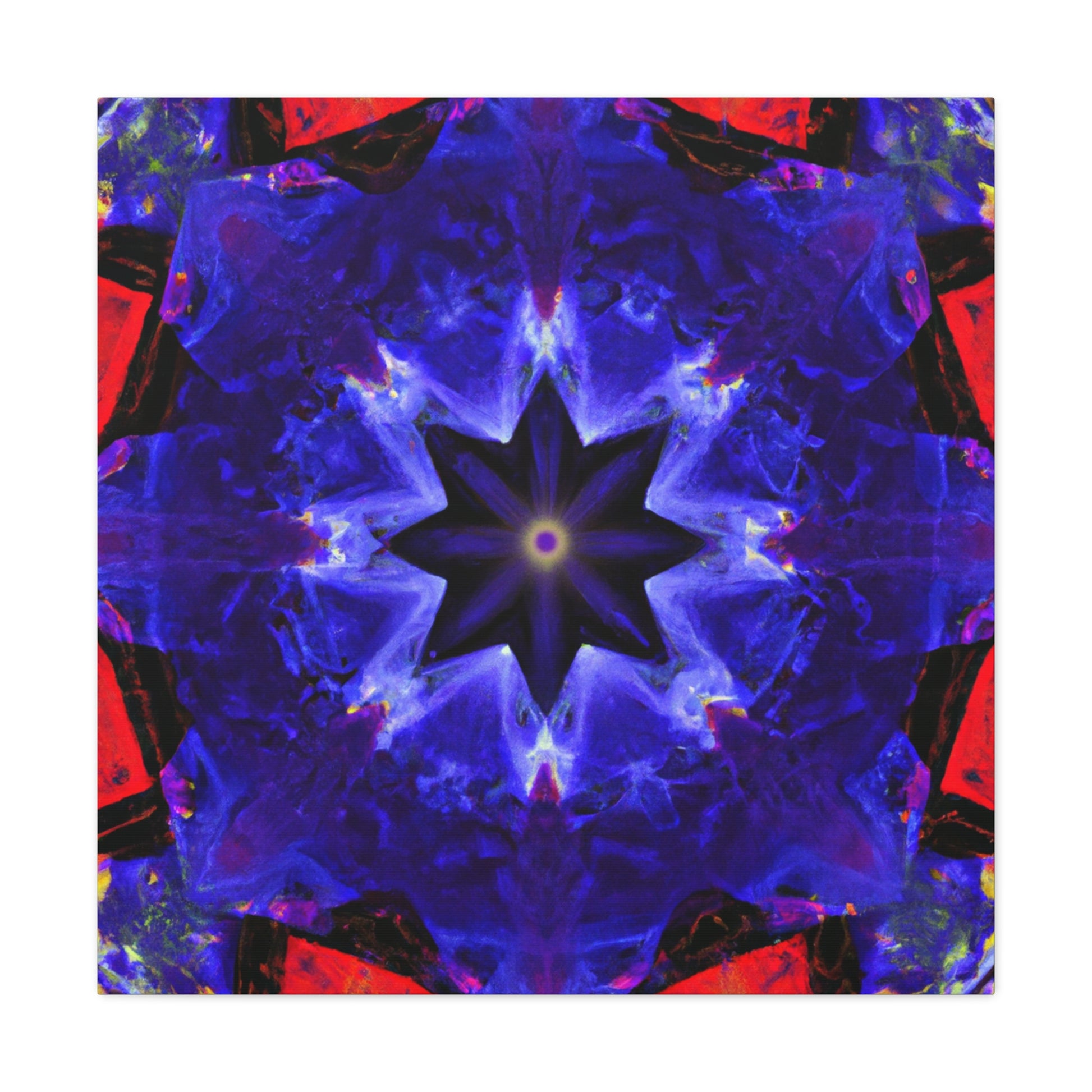This high definition printed canvas is the perfect addition to any wall! Featuring a trippy stars abstract design, with vibrant colors and kaleidoscope patterns that come together to create a symmetrical pattern full of visual interest and energy. Hang this piece in your creative space and marvel at its beauty. #abstractart #wallart #trippystars #kaleidoscope #vibrantcolors #HD #symmetry #canvasart #digitalart #moderninterior #creativespace