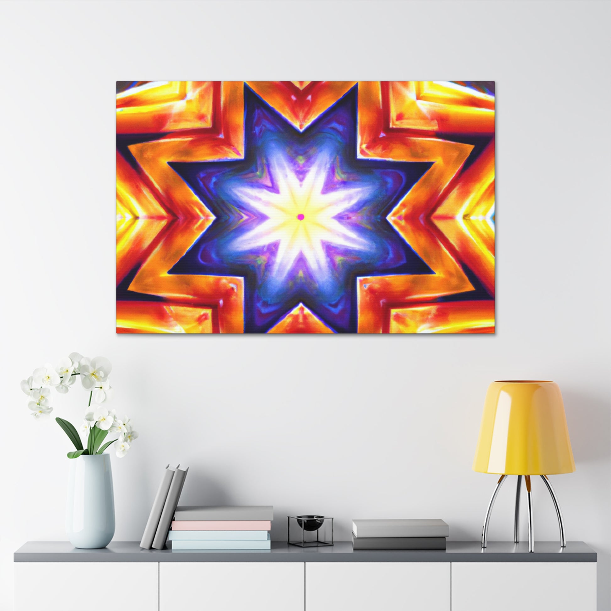 Look no further for the perfect piece of art to add pizzazz to your home or office space! This awesome High-Definition canvas is sure to impress with its trippy stars, kaleidoscope, and abstract design, rendered in vivid and vibrant colors. It is guaranteed to bring harmony and symmetry to the interior of your walls, with a masterful and mesmerizing aesthetics that is sure to stand out. #CanvasArt #DigitalArt #VibrantColors #HD #Abstract #Kaleidoscope #Symmetrical #Trippy #HomeDesign #ArtLovers #InteriorDesign